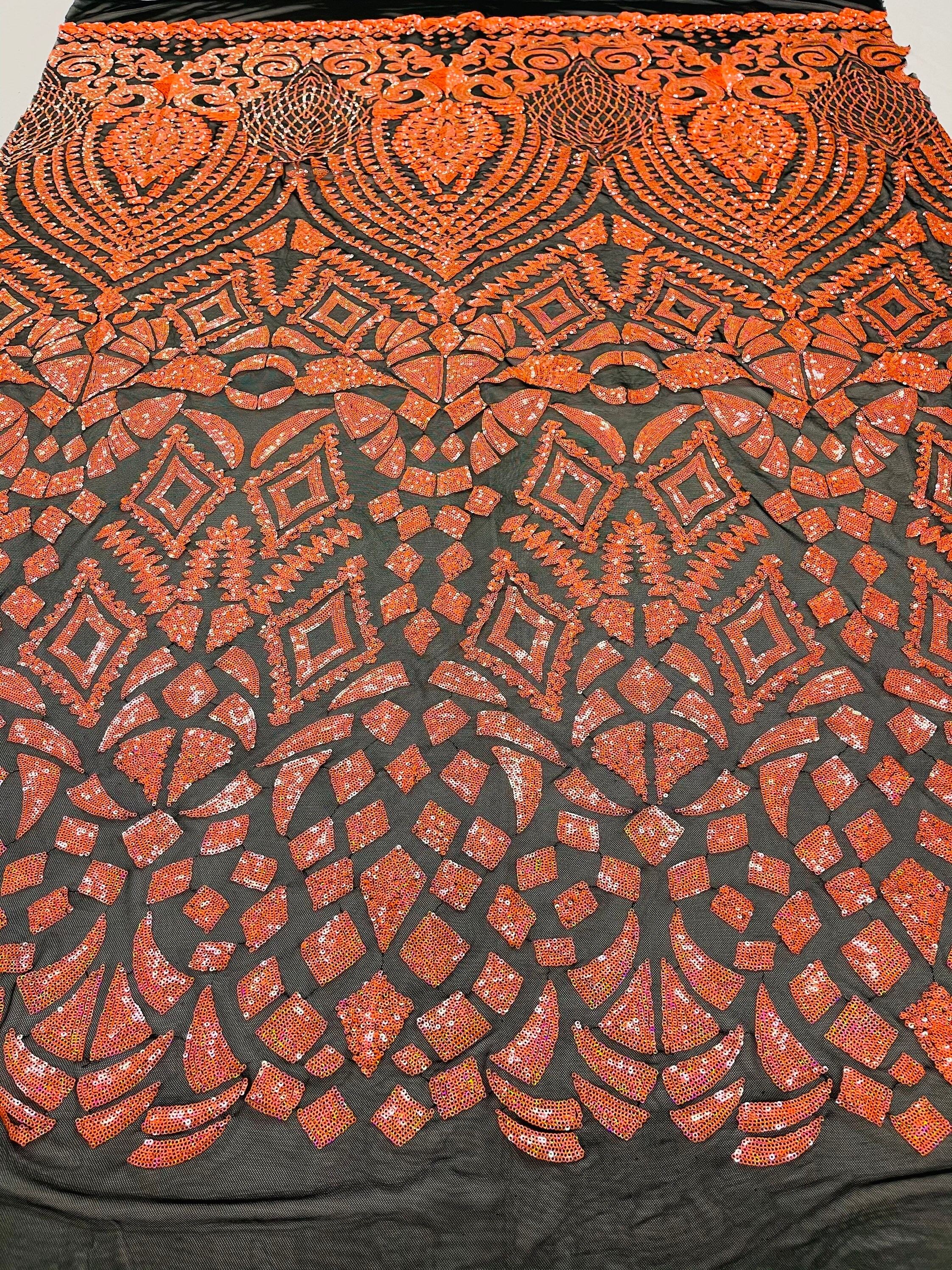 This sequins material has a unique geometric design on the mesh.