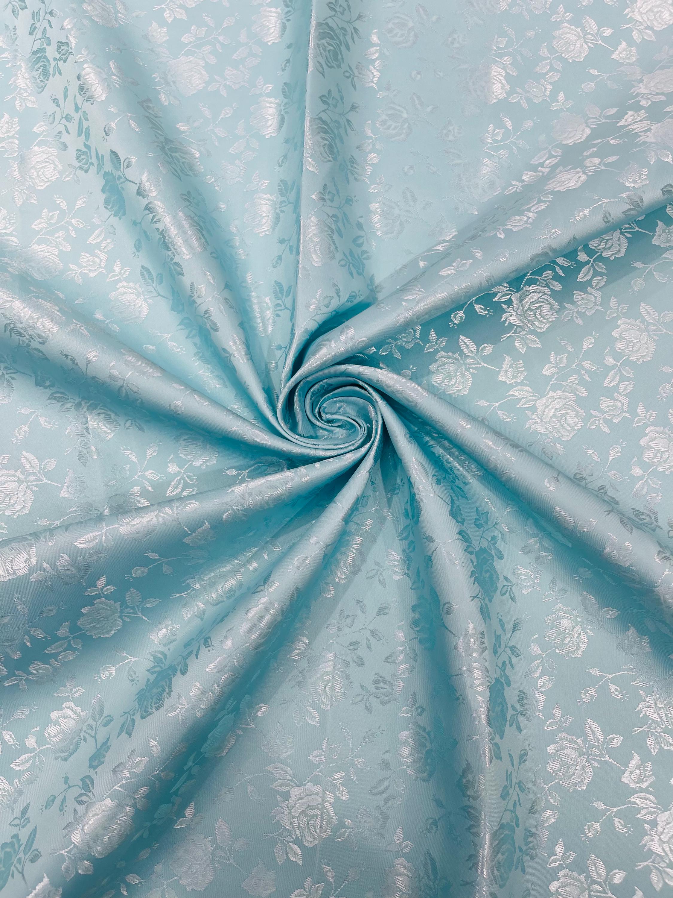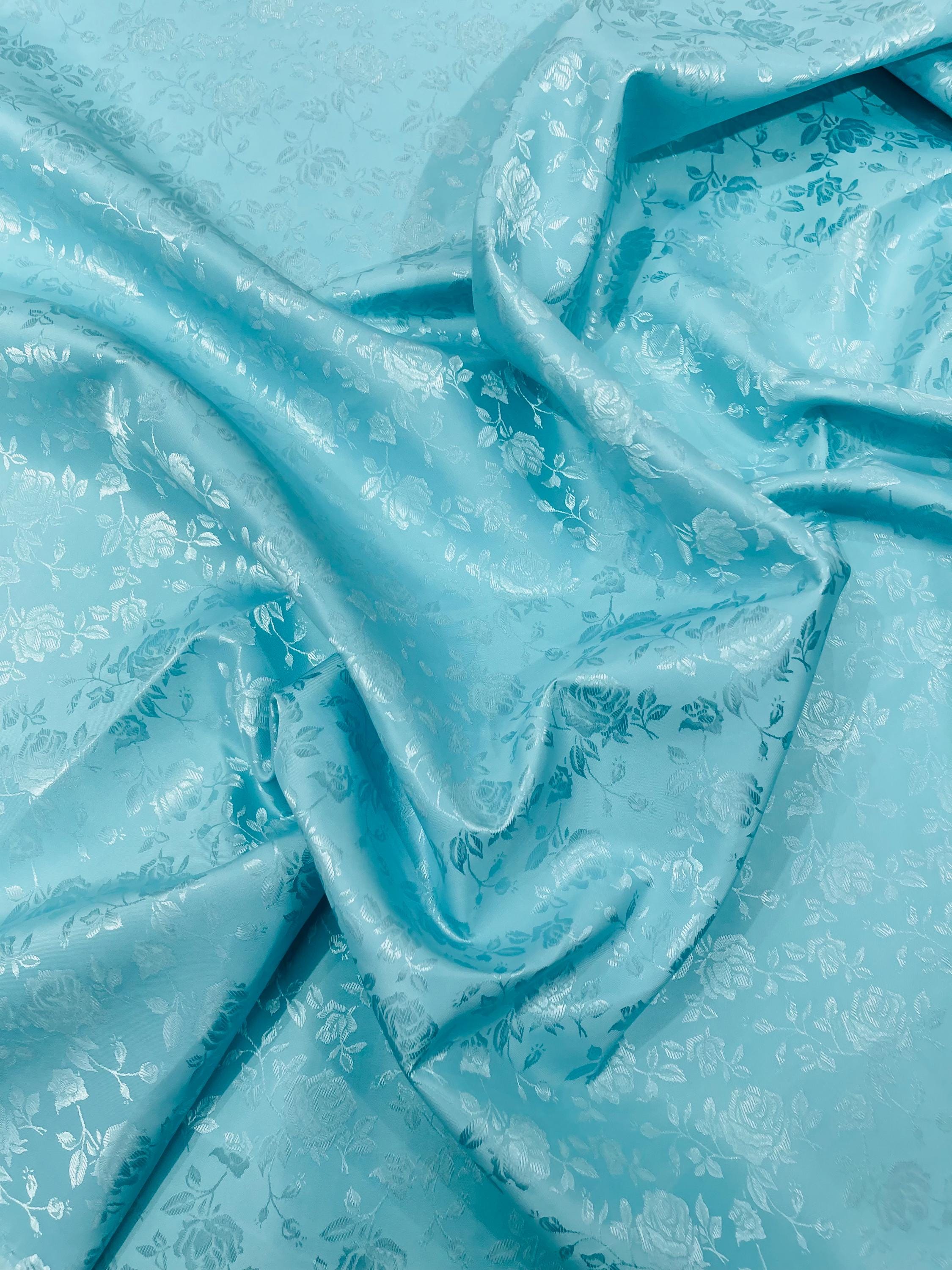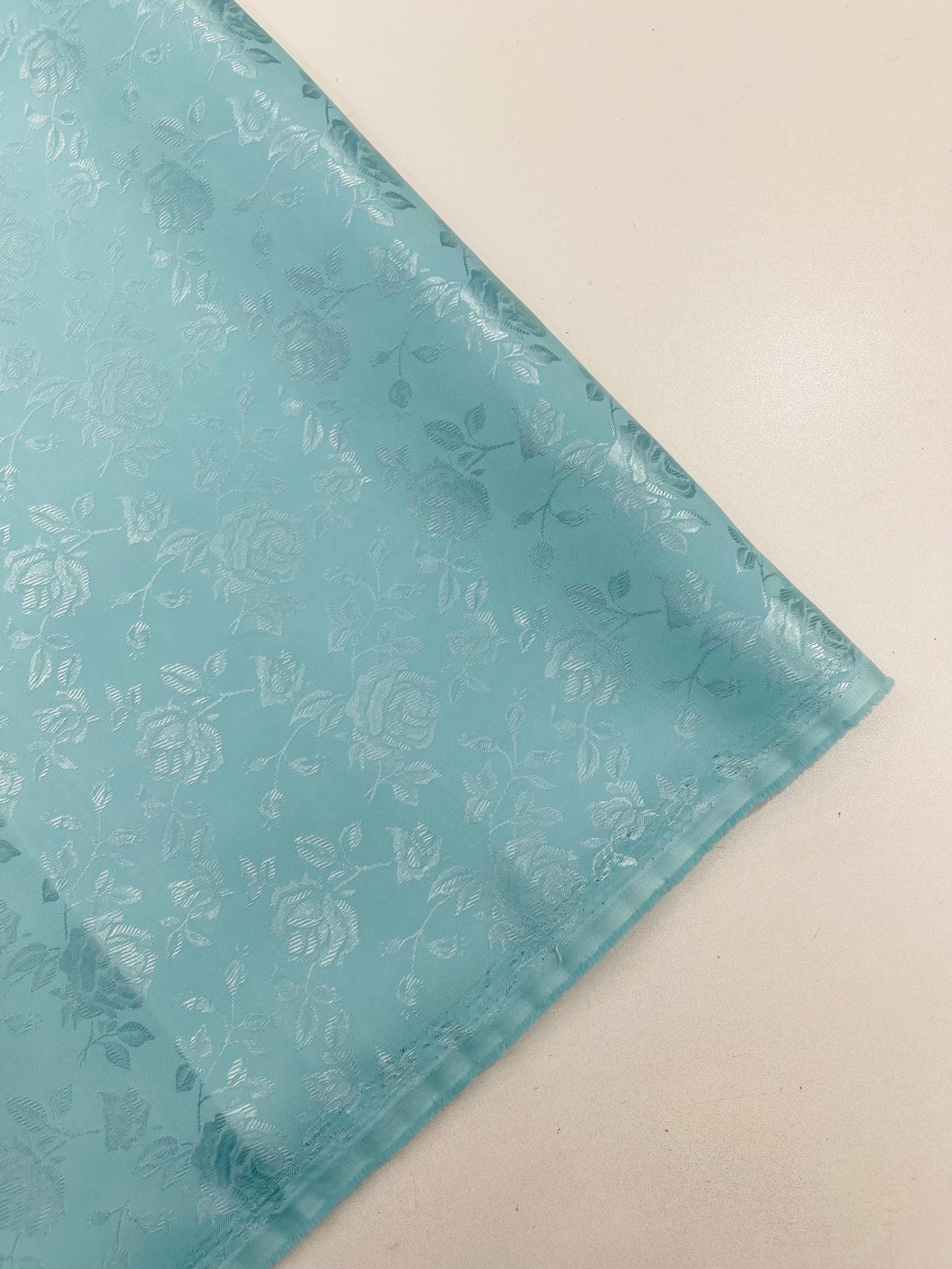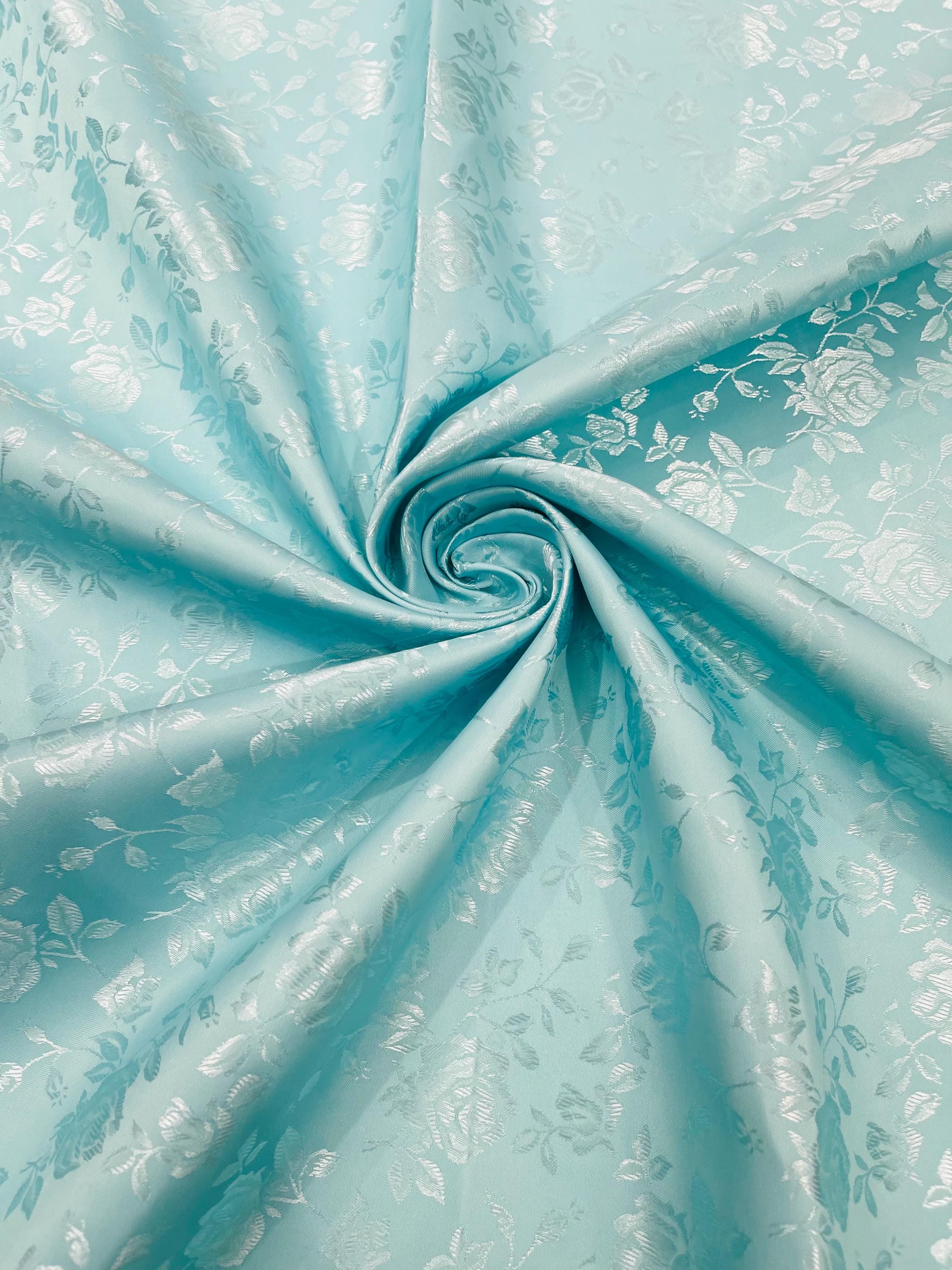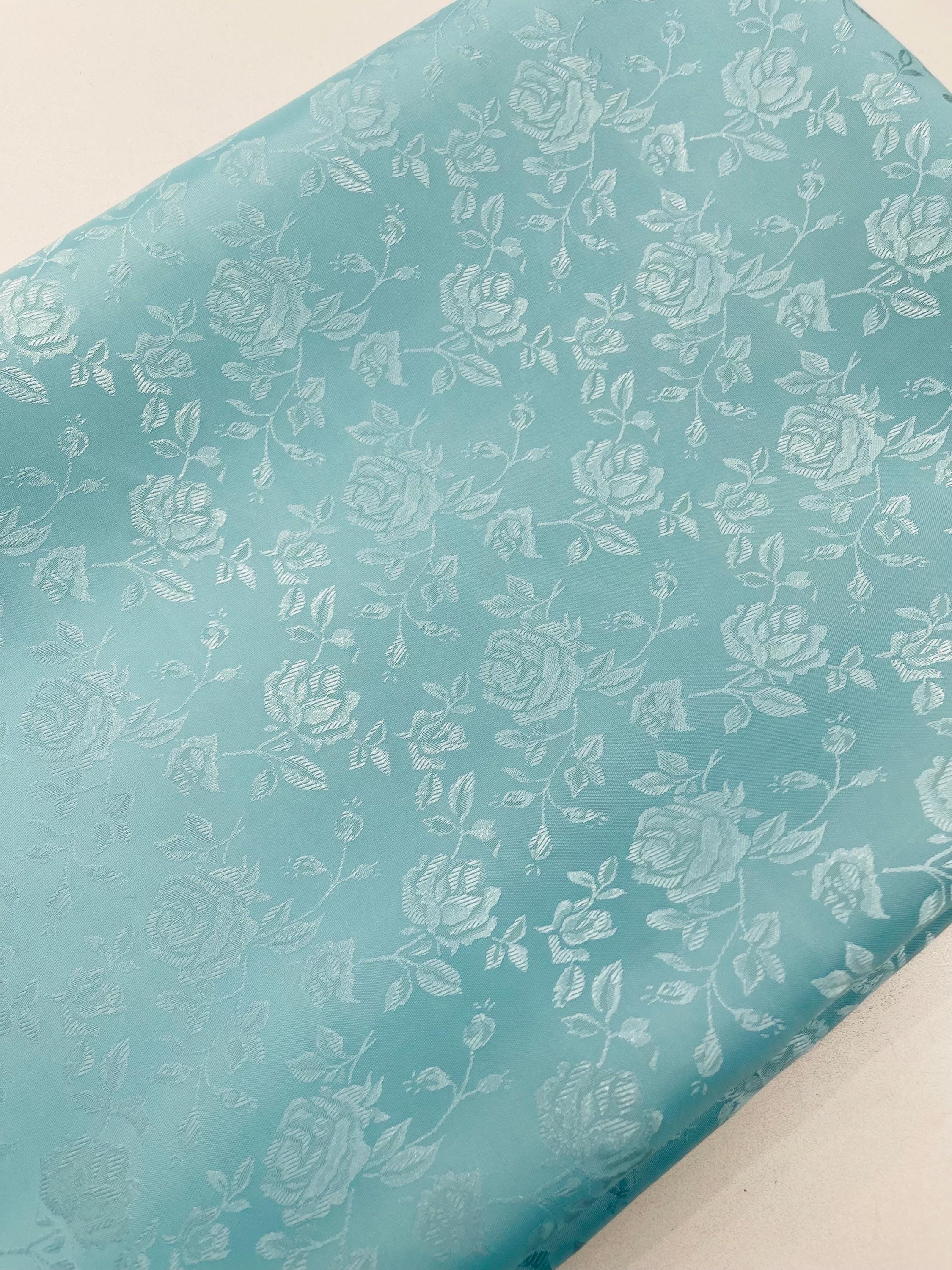 The subtle beauty of the floral pattern stitched into this fabric grows more apparent the closer you look. The fabric has a slight shine, but the pattern is stitched with a matte thread producing a very unique effect as it moves through the light. Note that the flower images are slightly different for each color (all are lovely) and since it is a brocade, the pattern is visible on both sides.