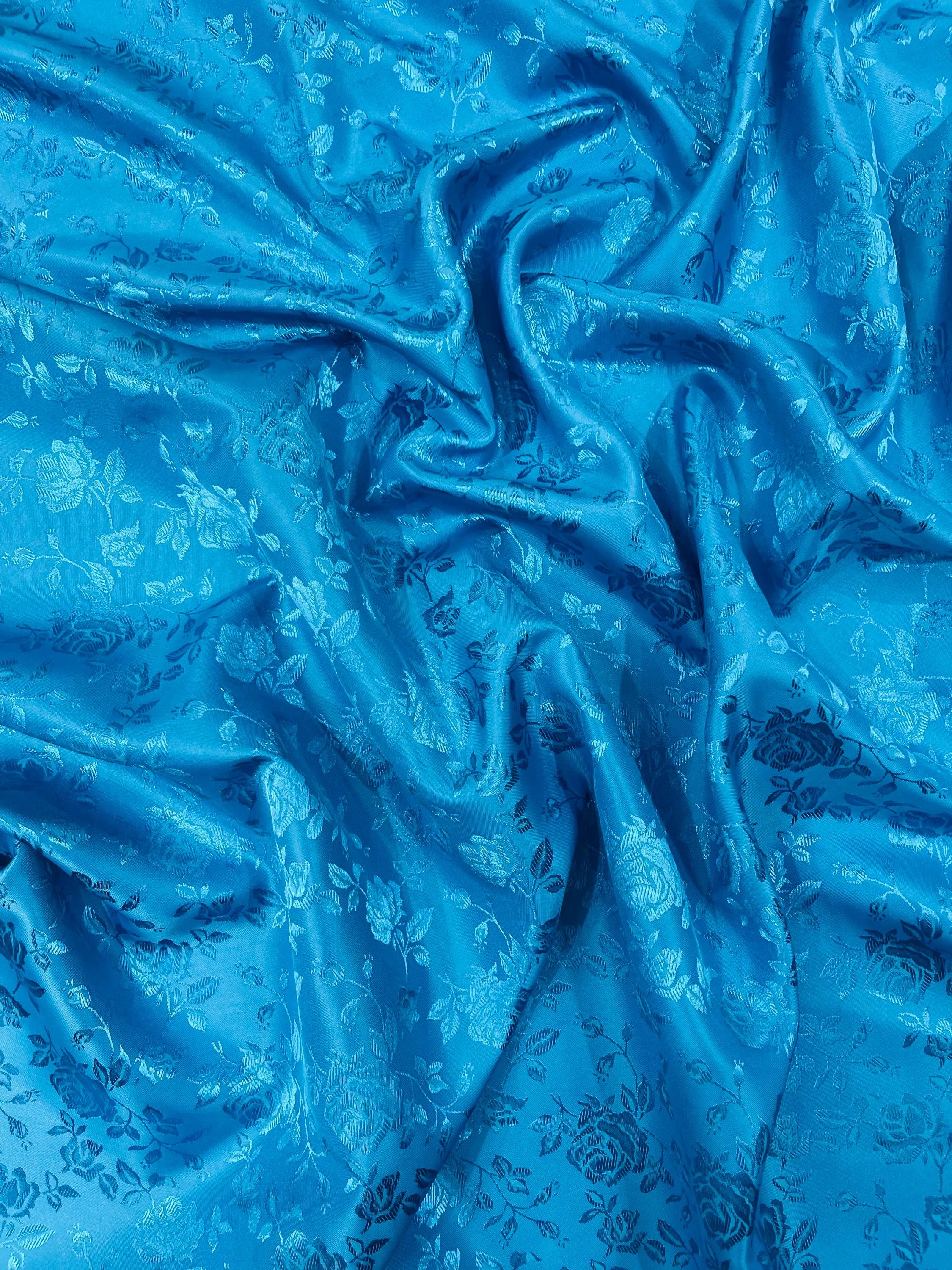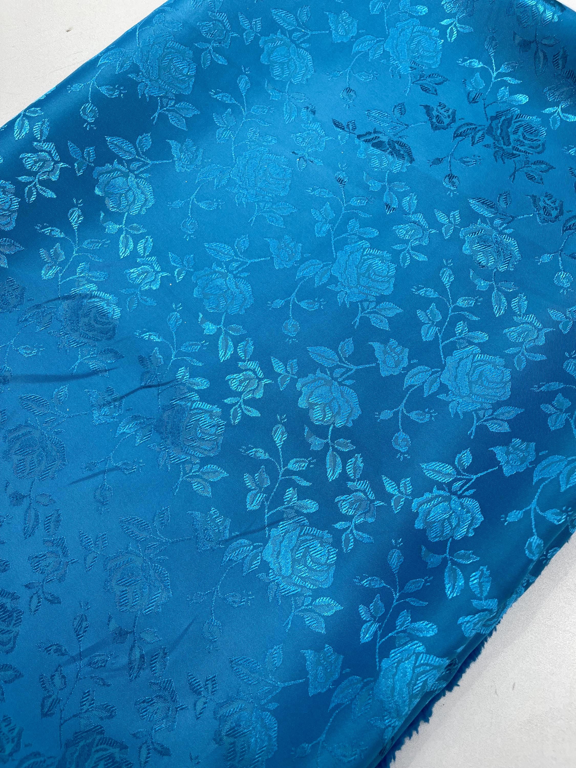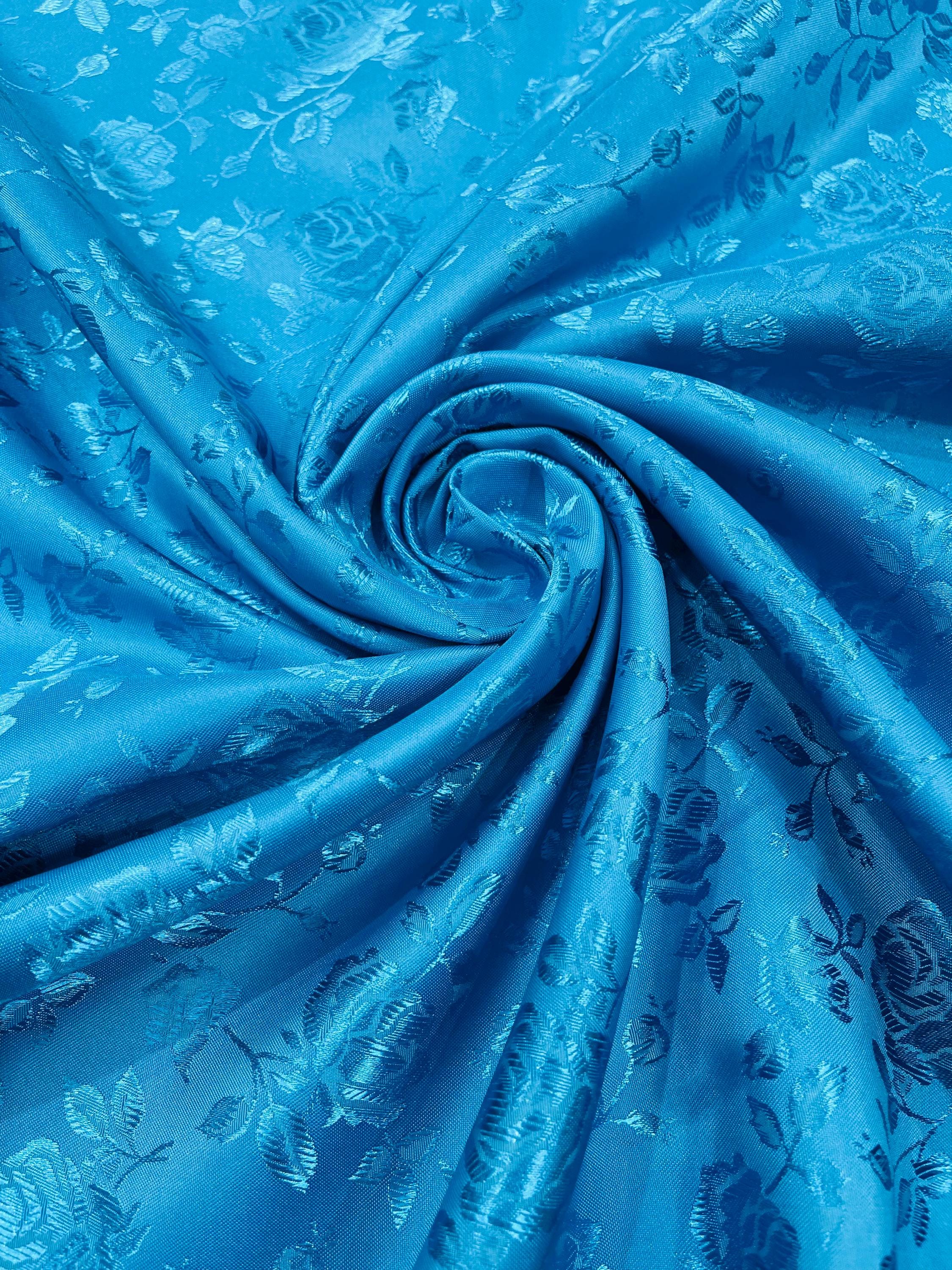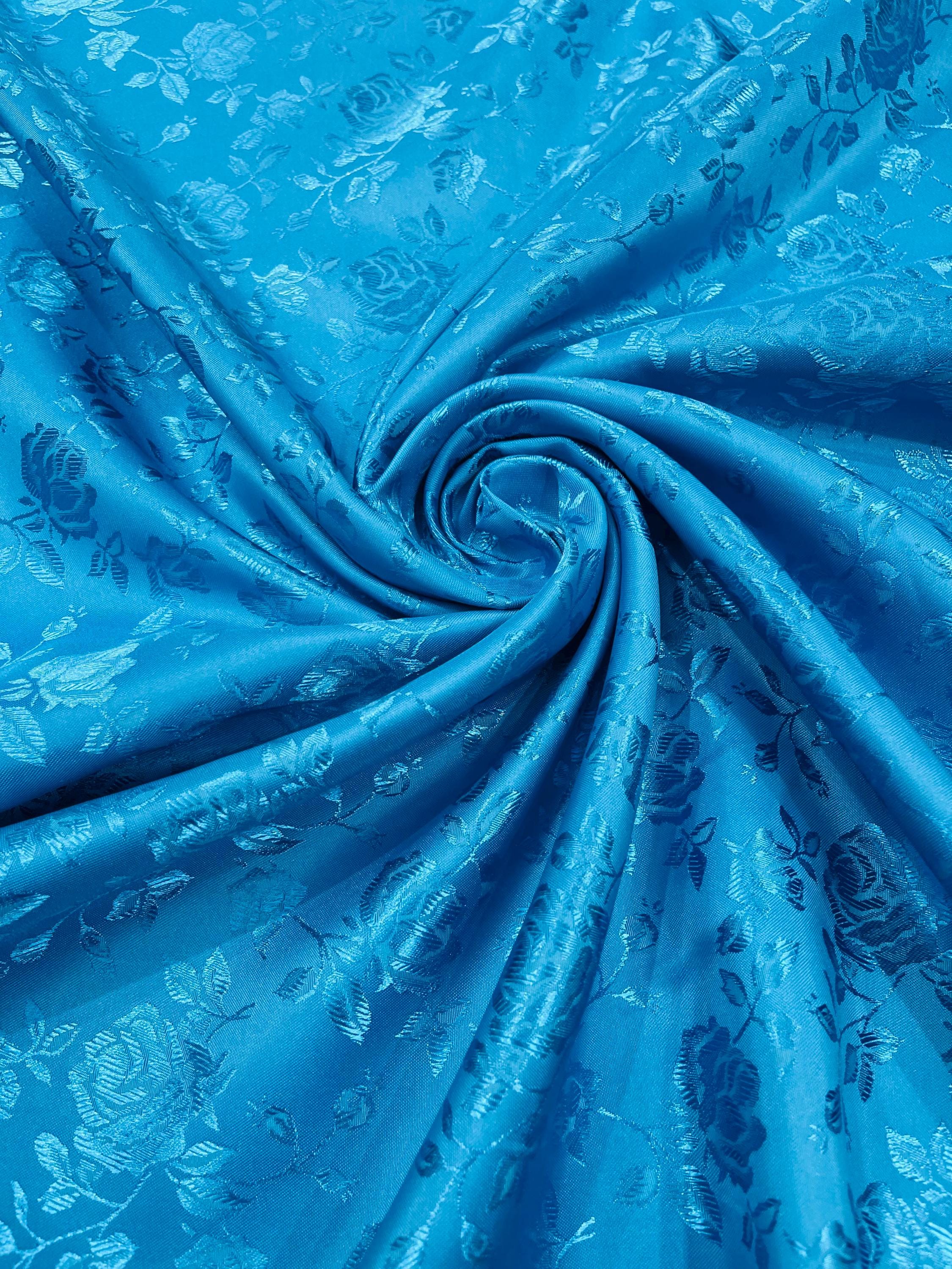 Turquoise Floral Brocade Jacquard Satin Fabric - 58/60" Wide