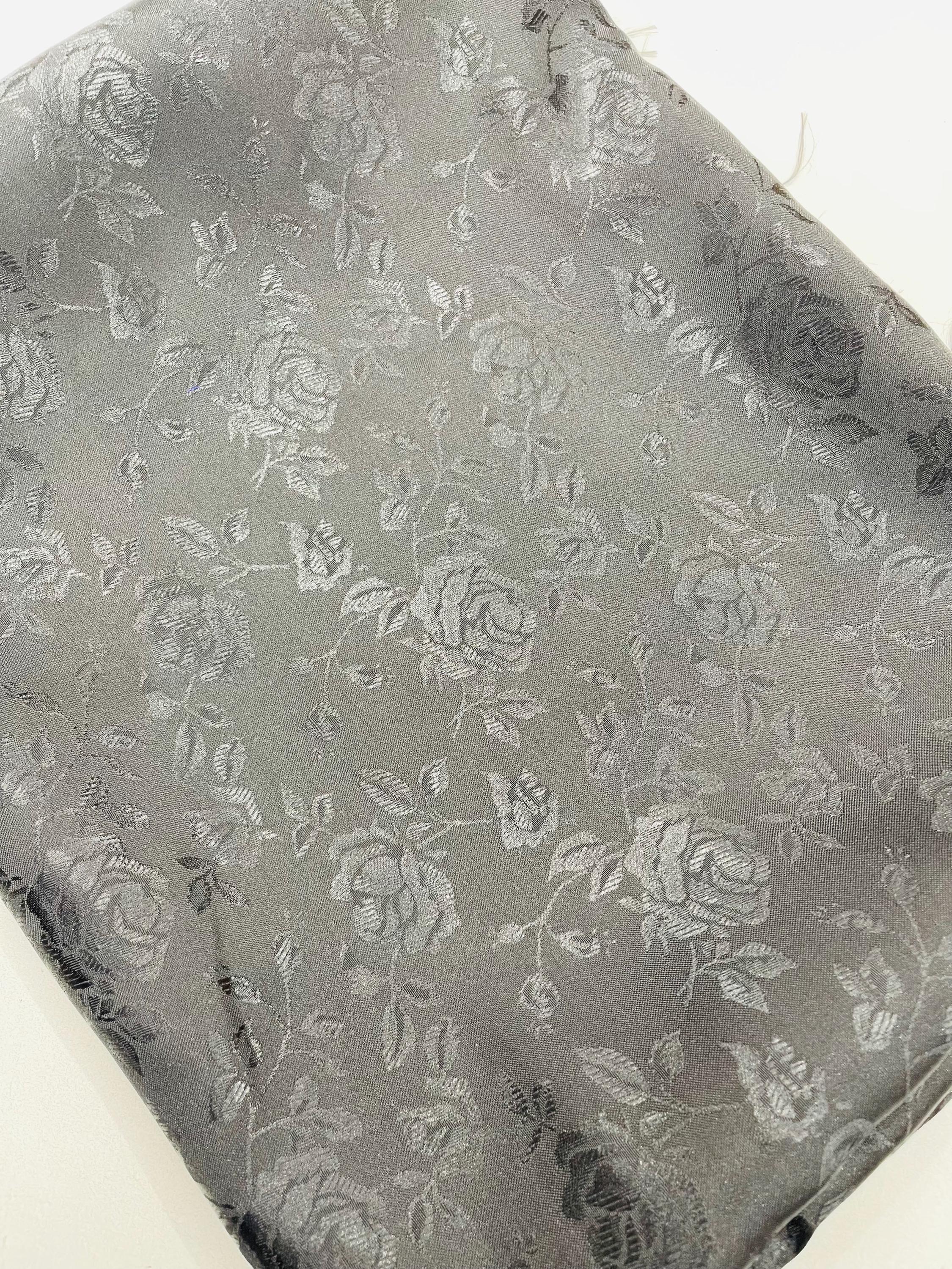 The subtle beauty of the floral pattern stitched into this fabric grows more apparent the closer you look. The fabric has a slight shine, but the pattern is stitched with a matte thread producing a very unique effect as it moves through the light. Note that the flower images are slightly different for each color (all are lovely) and since it is a brocade, the pattern is visible on both sides.