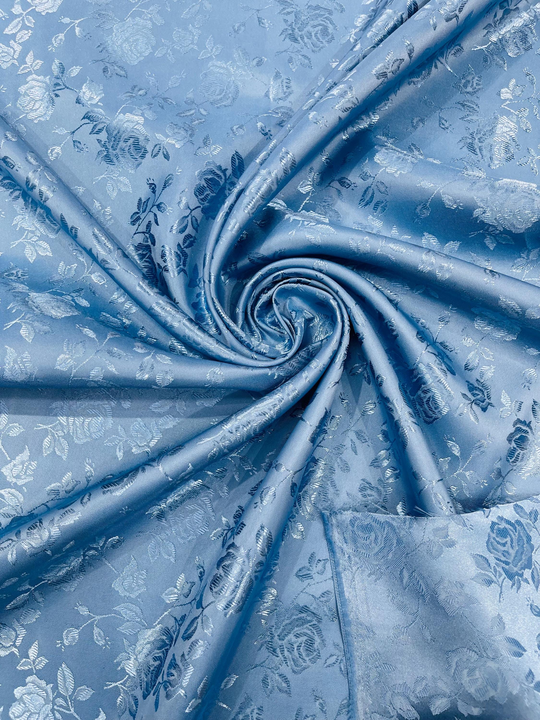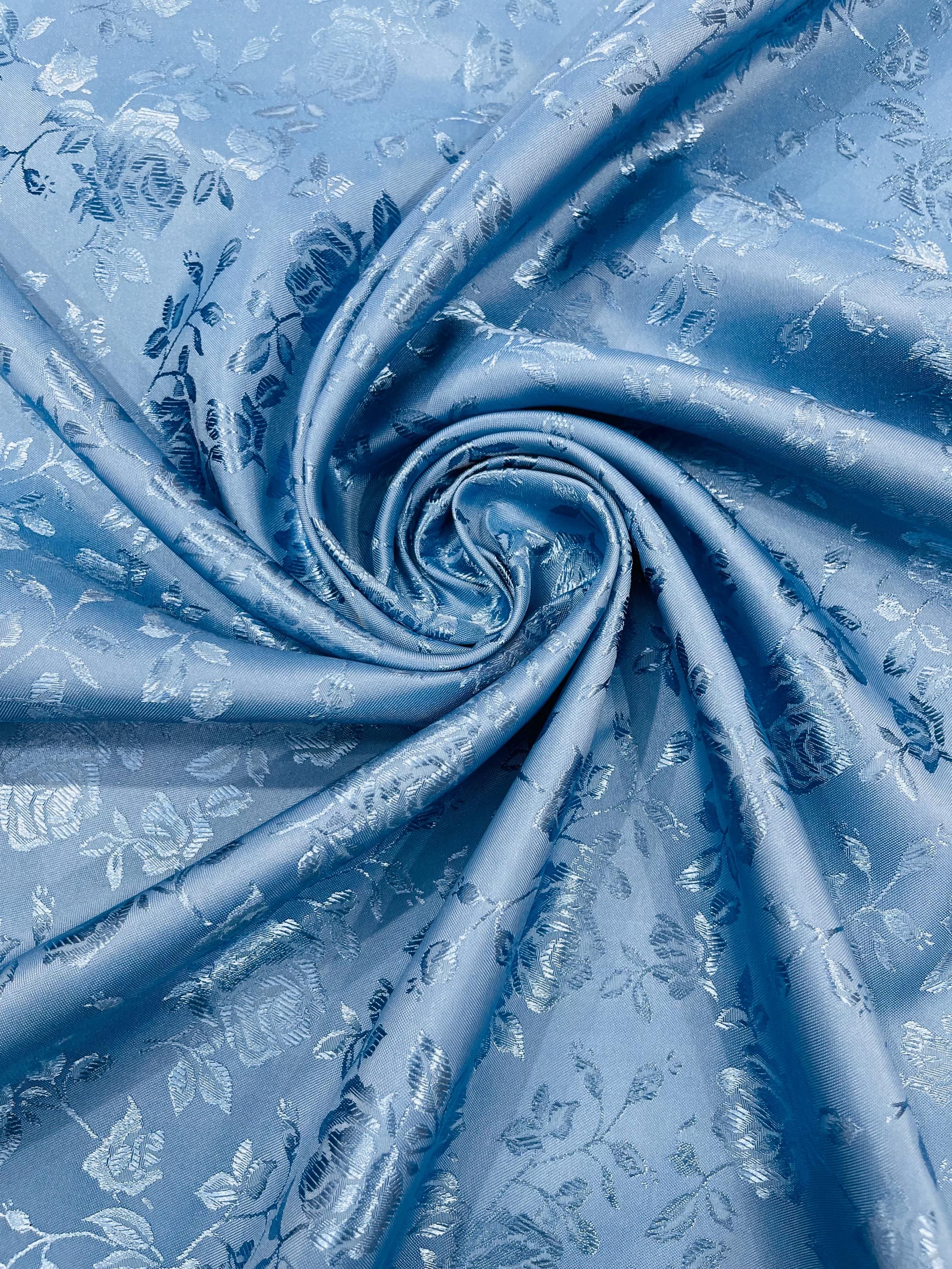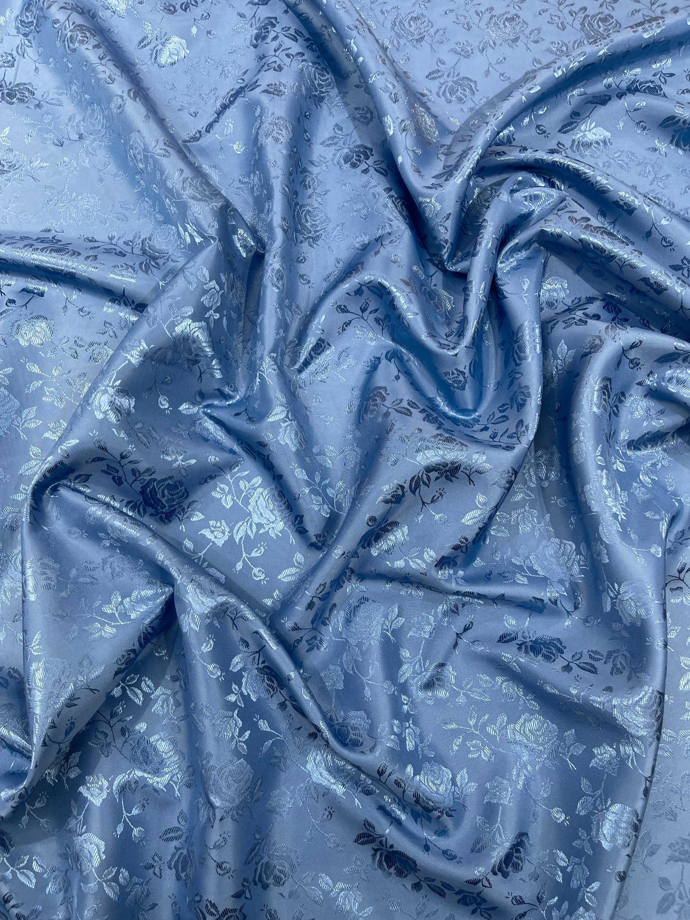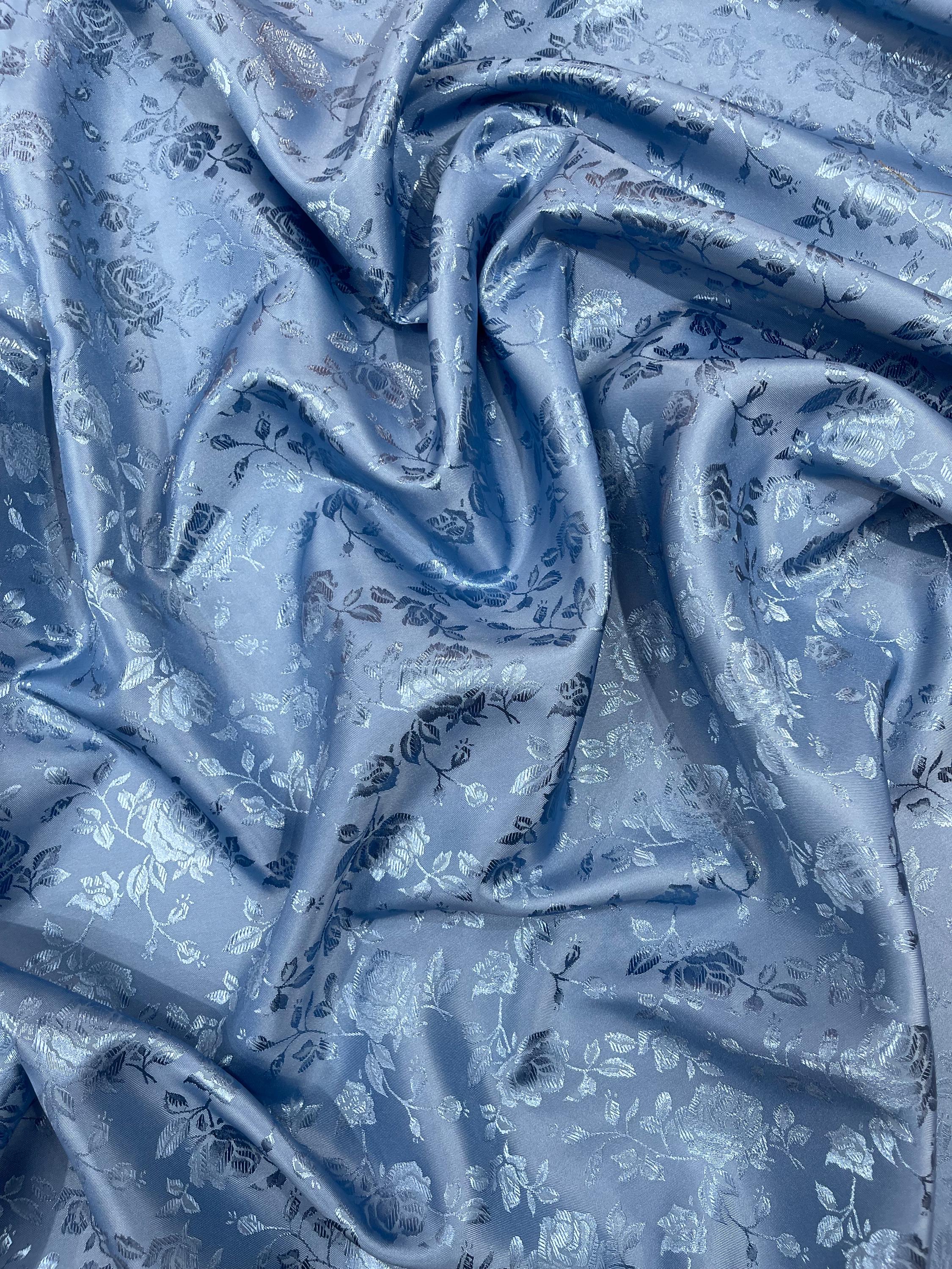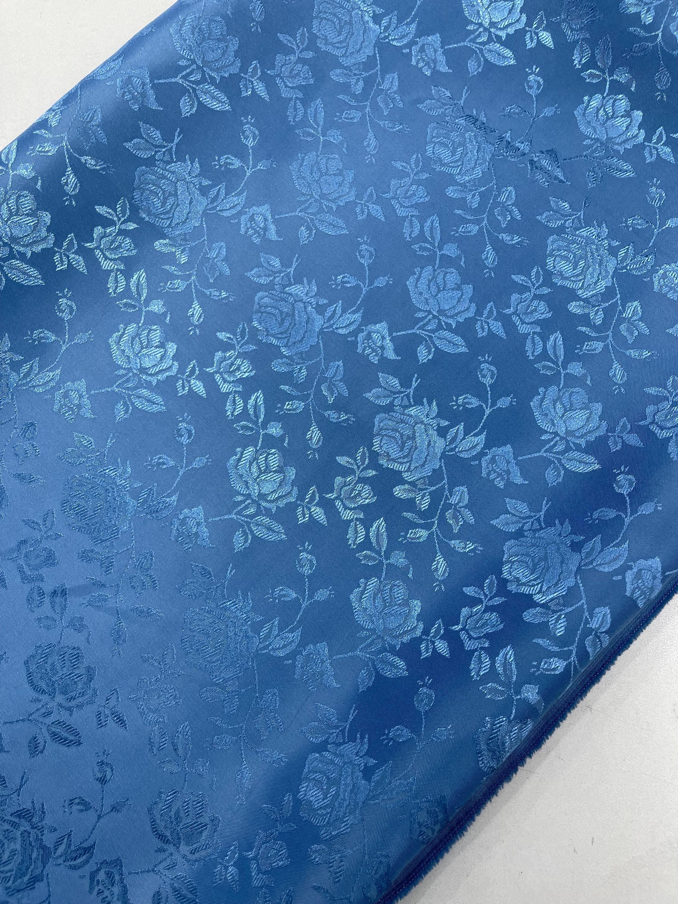 Coppen Blue Floral Brocade Jacquard Satin Fabric: 58/60" Wide Polyester, By The Yard