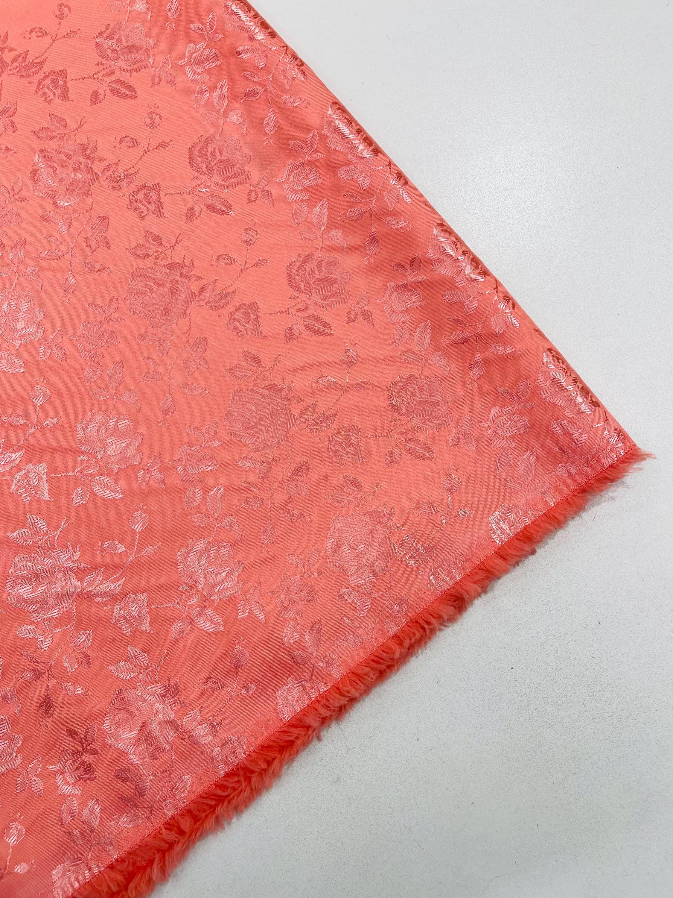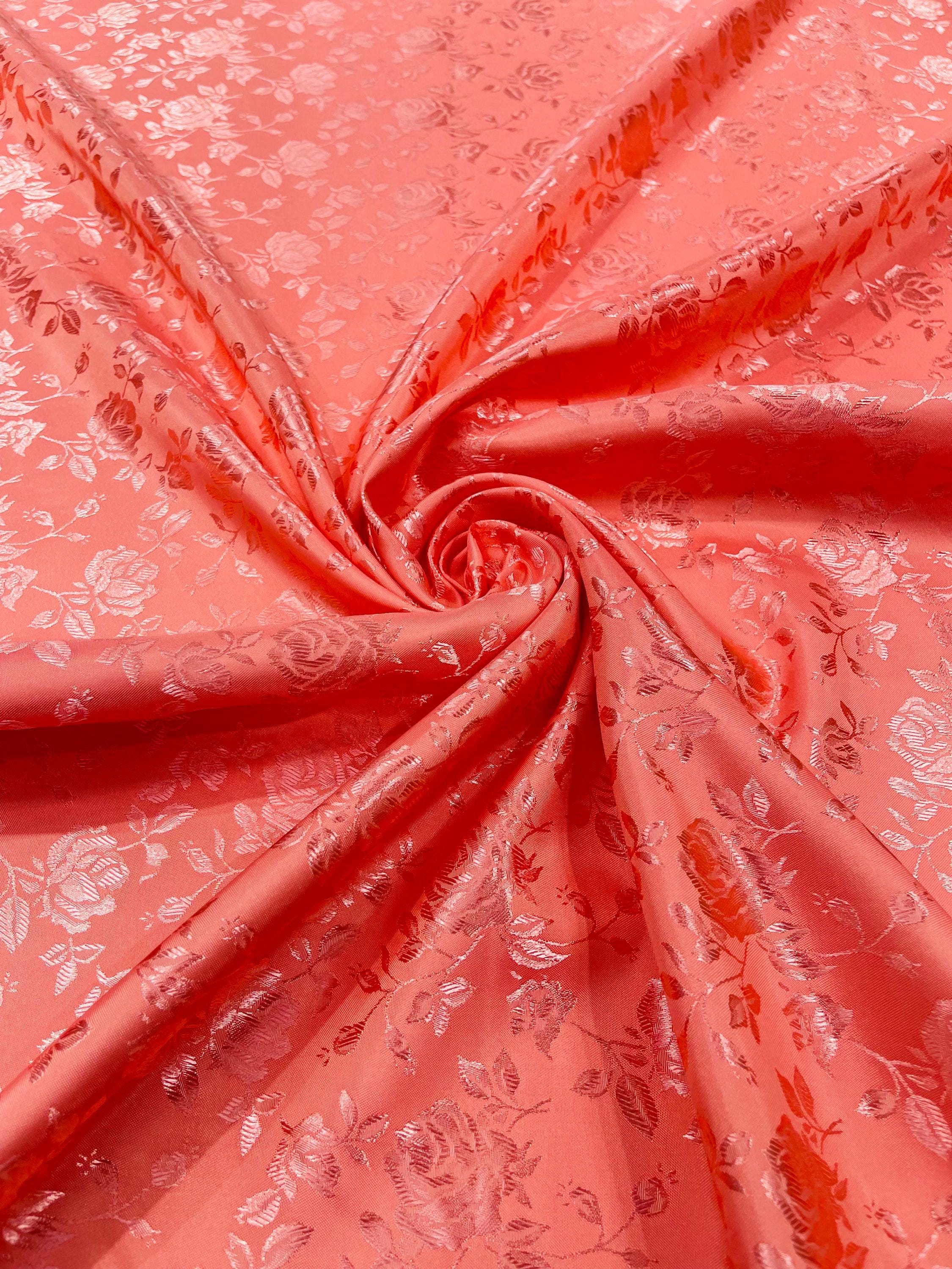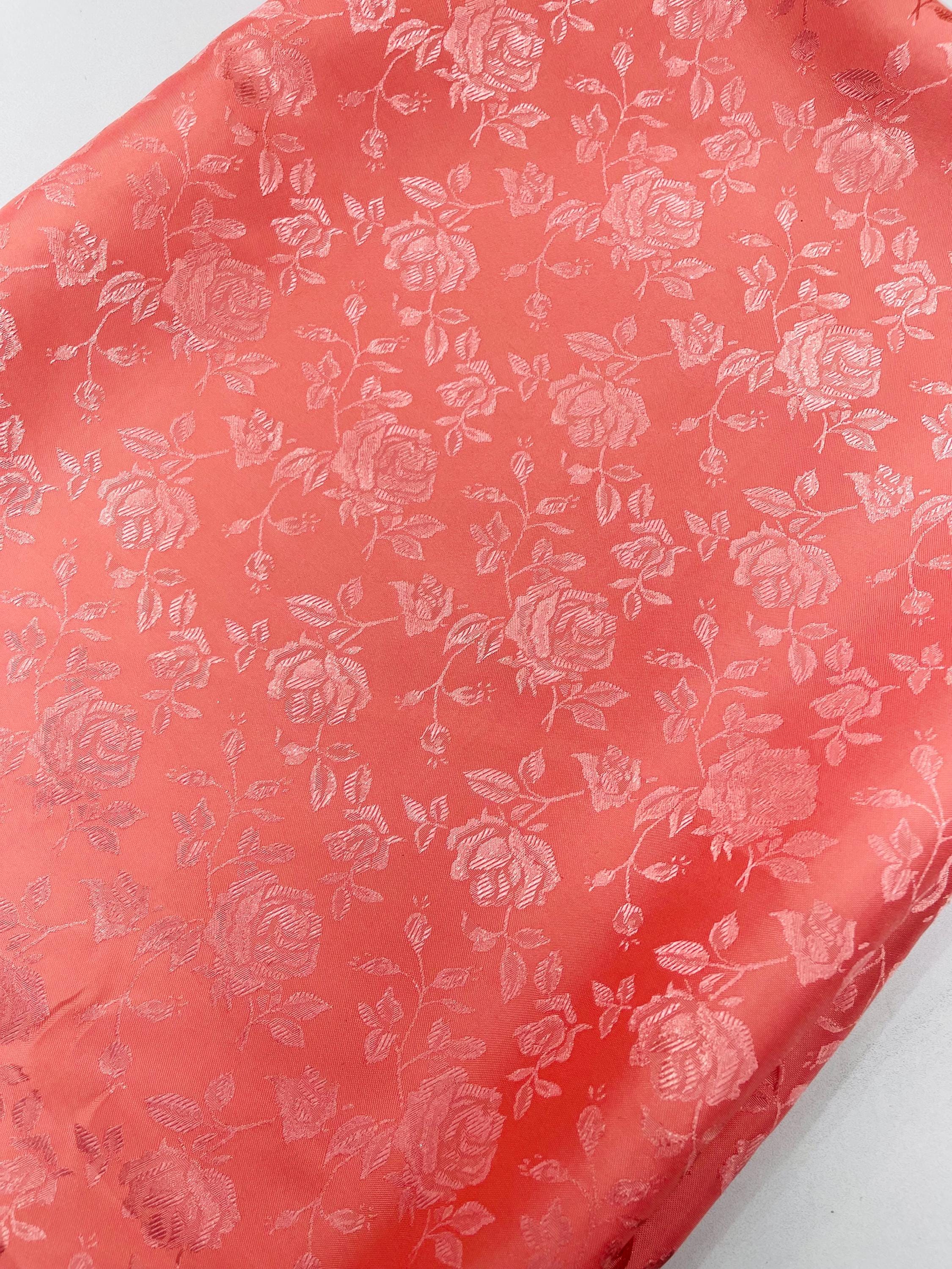 Coral Floral Brocade Jacquard Satin Fabric - 58/60" Wide