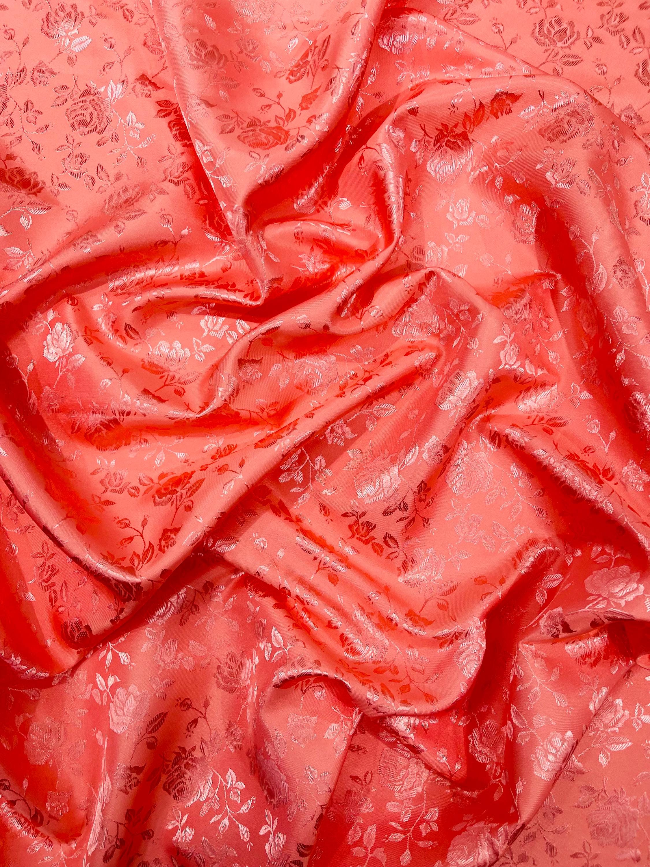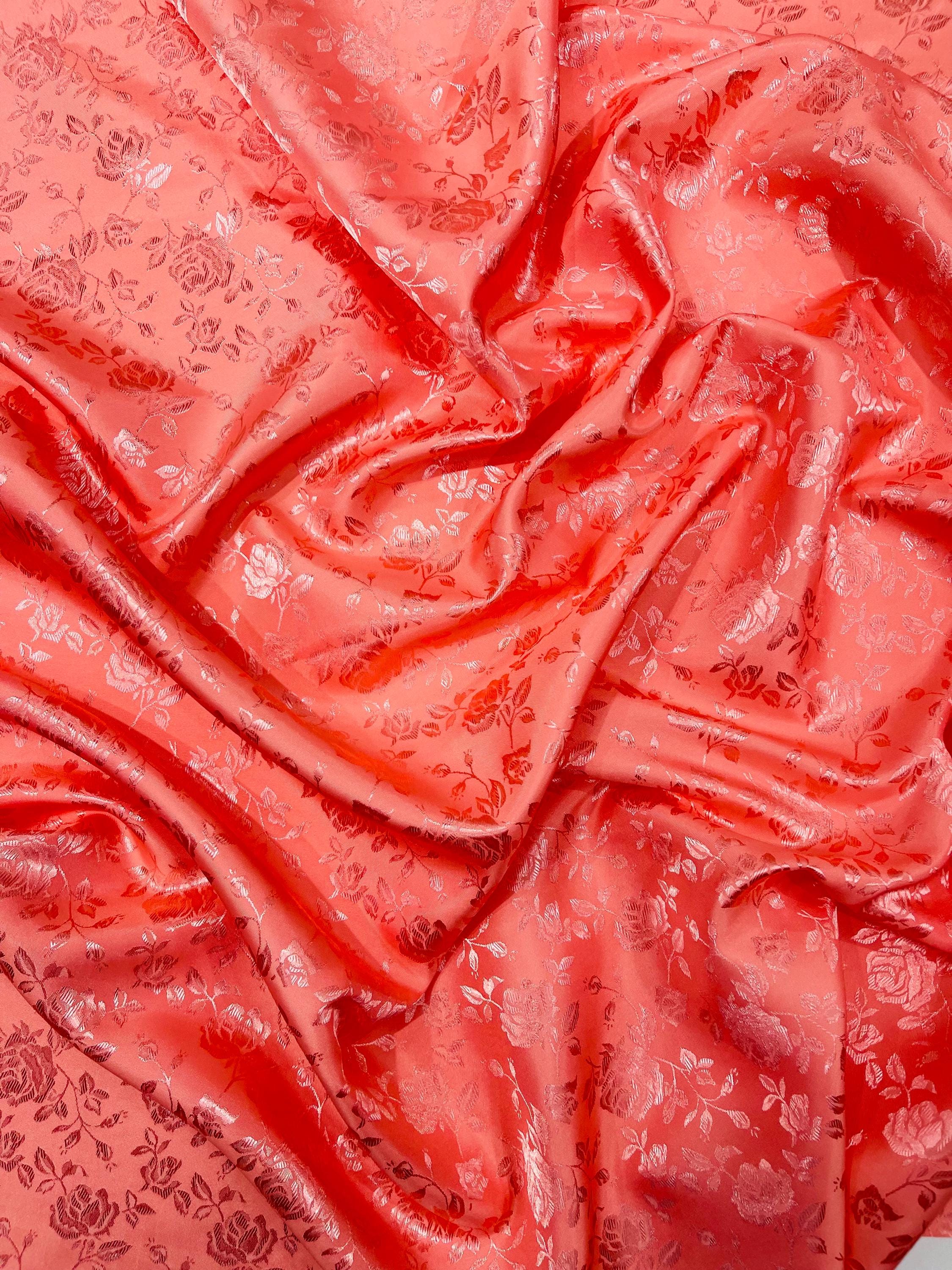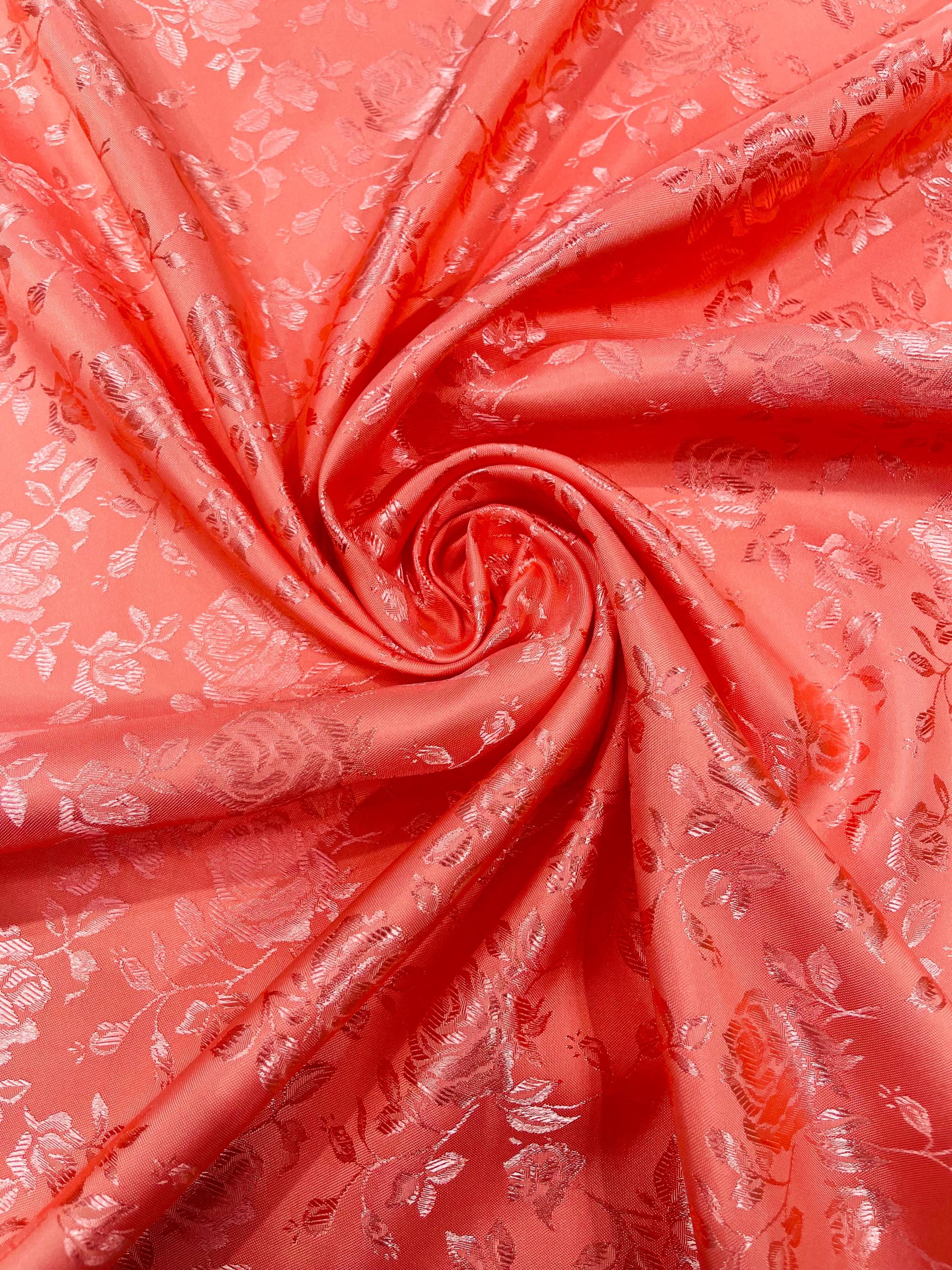 Coral Floral Brocade Jacquard Satin Fabric - 58/60" Wide