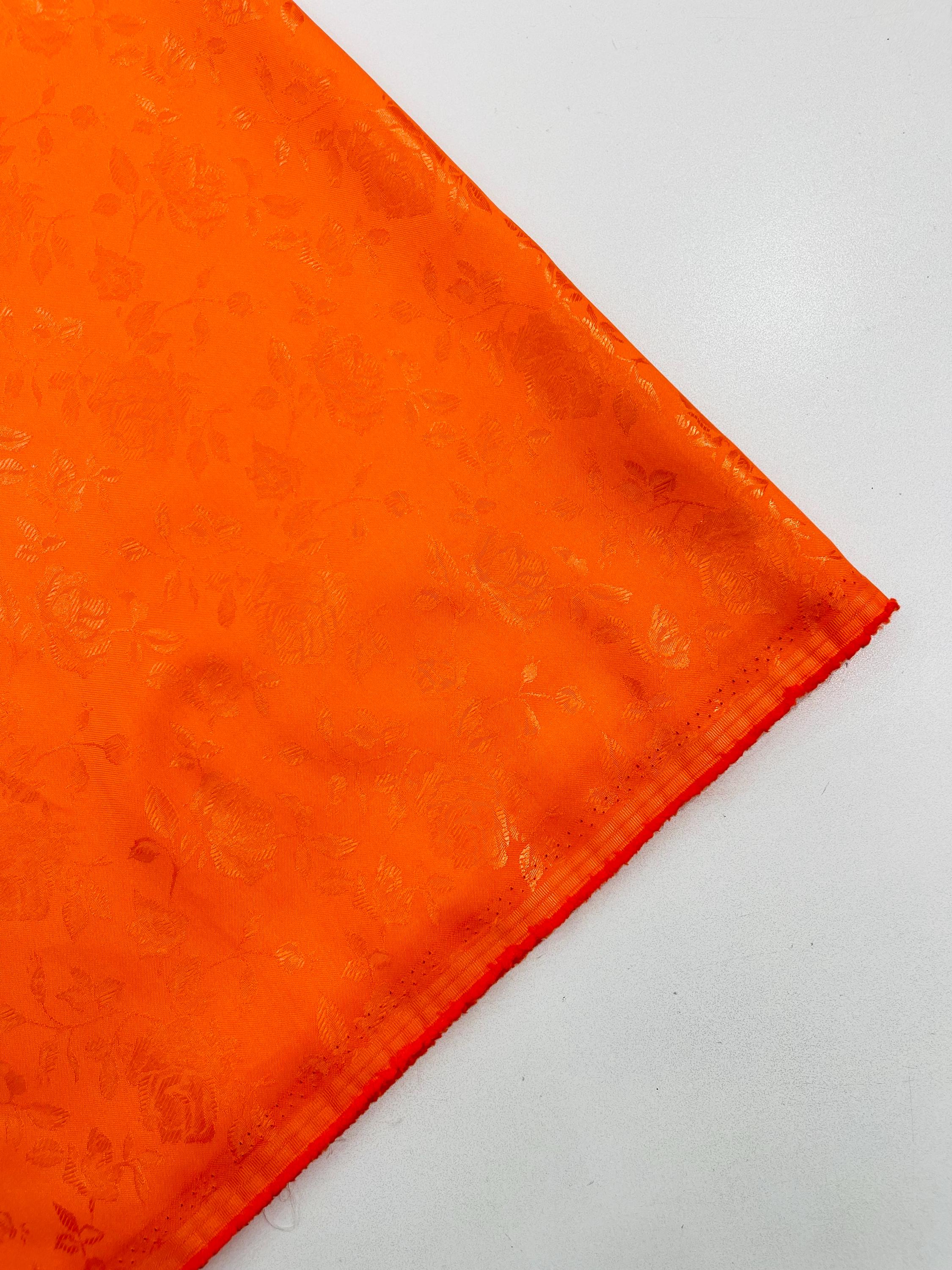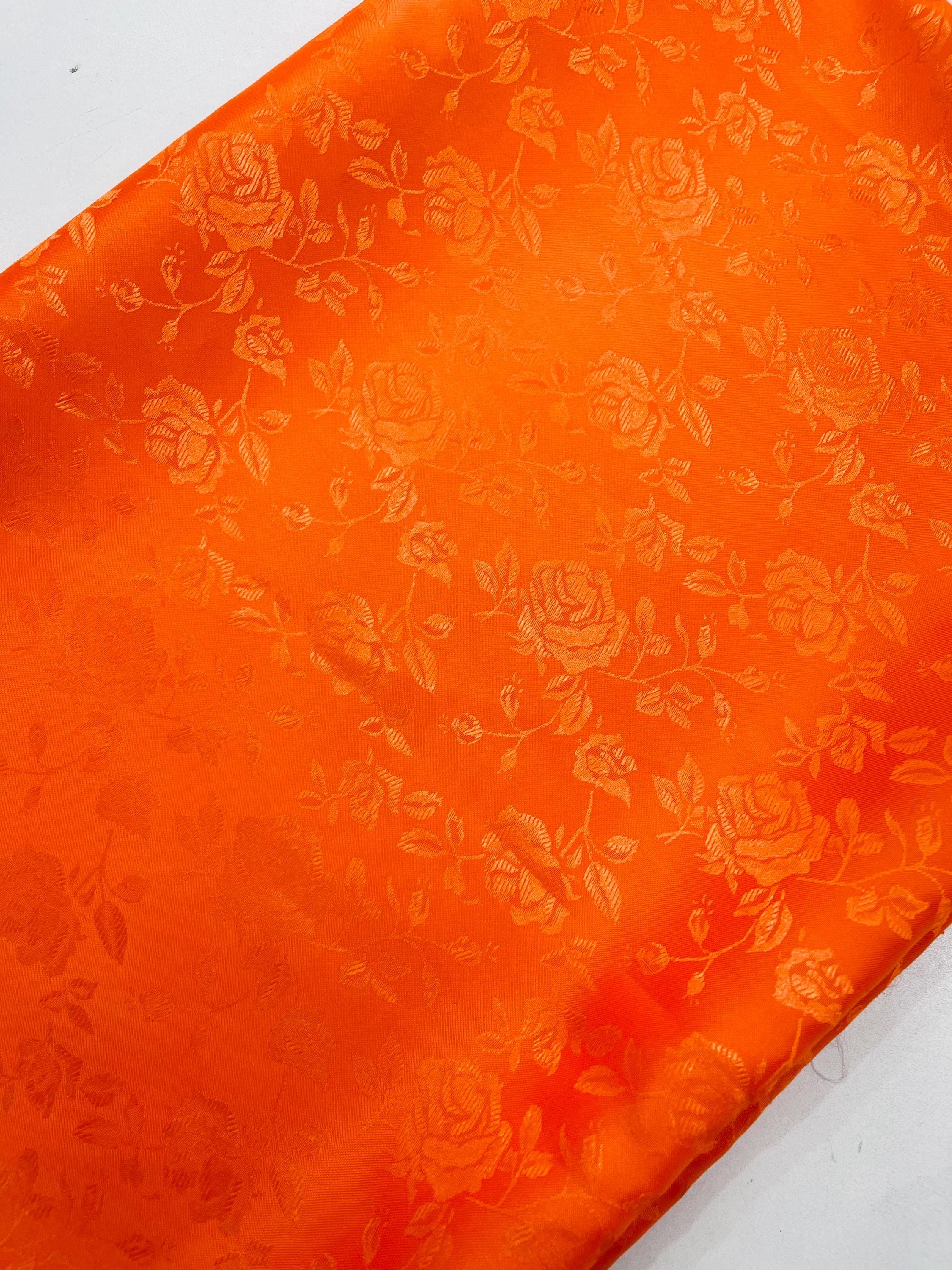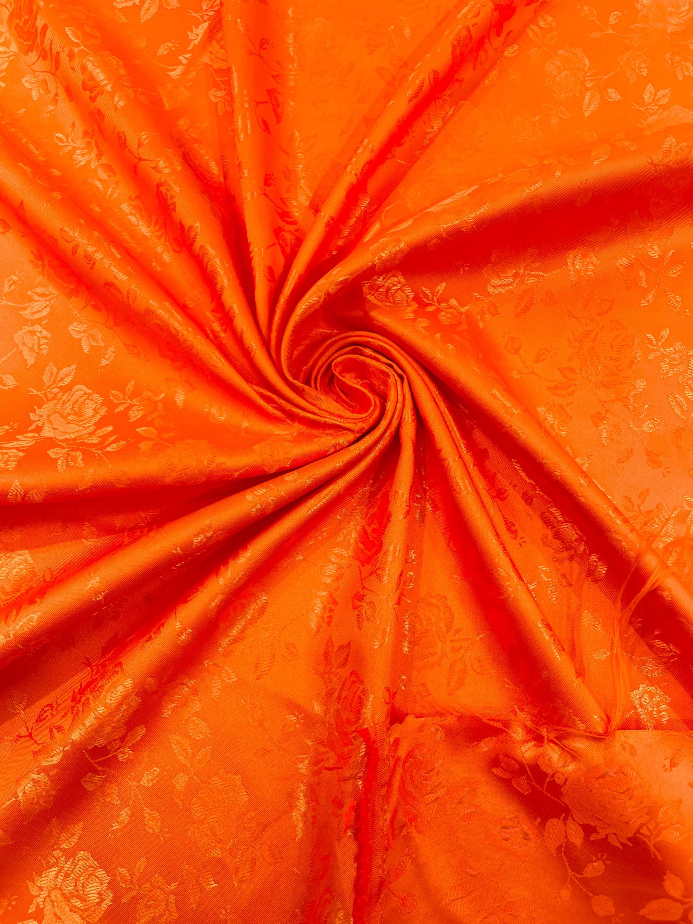 The subtle beauty of the floral pattern stitched into this fabric grows more apparent the closer you look. The fabric has a slight shine, but the pattern is stitched with a matte thread producing a very unique effect as it moves through the light. Note that the flower images are slightly different for each color (all are lovely) and since it is a brocade, the pattern is visible on both sides.