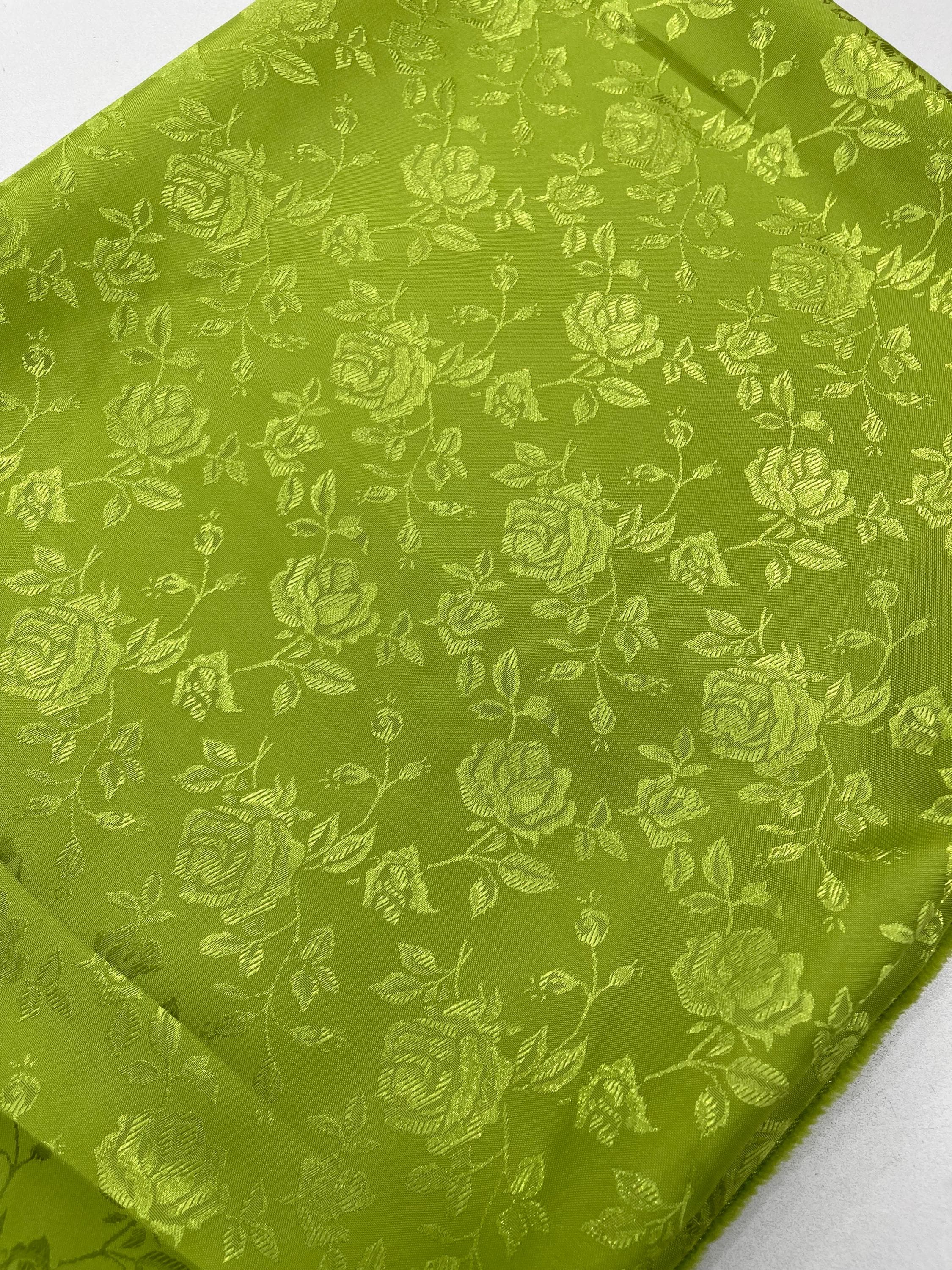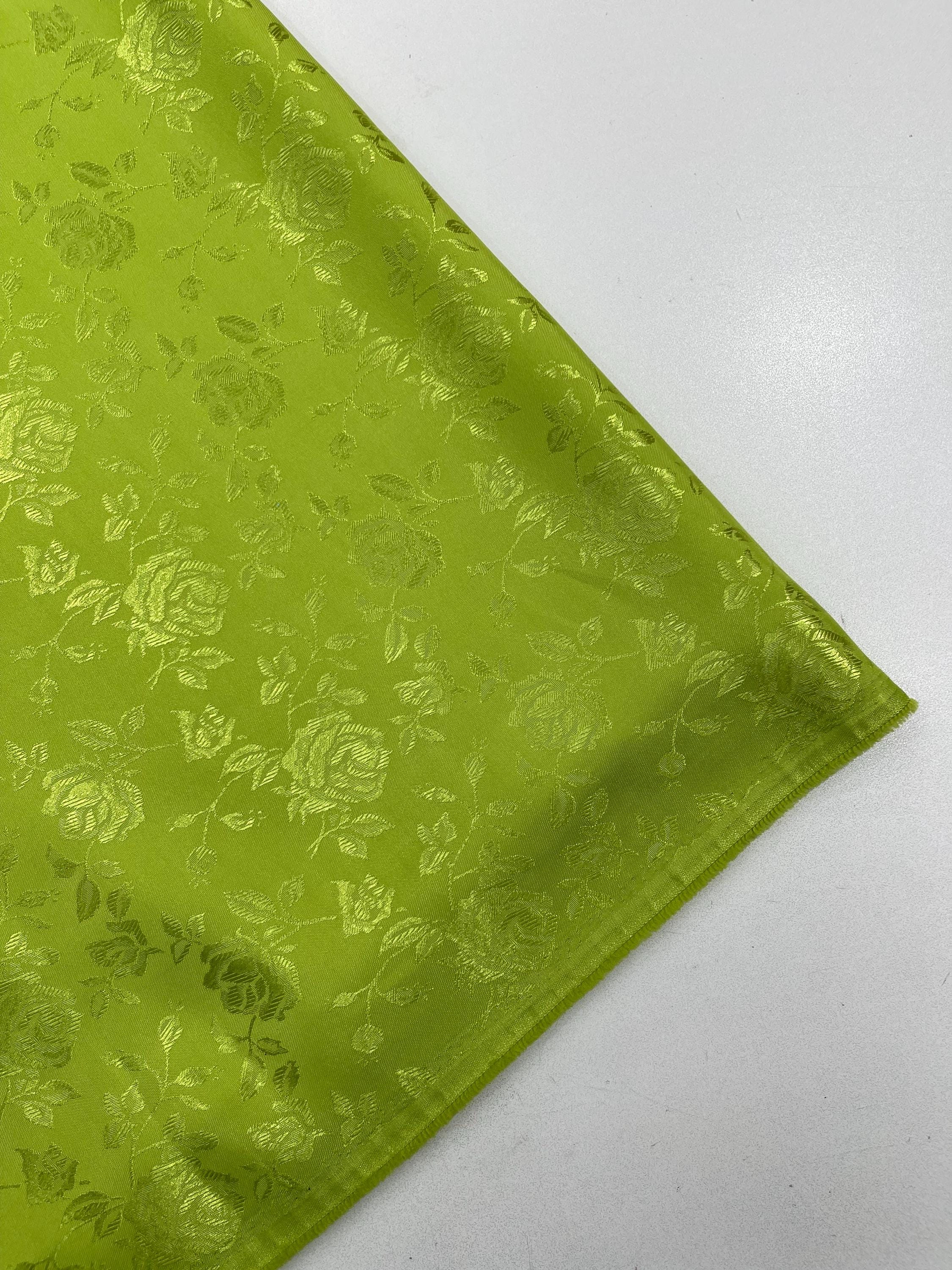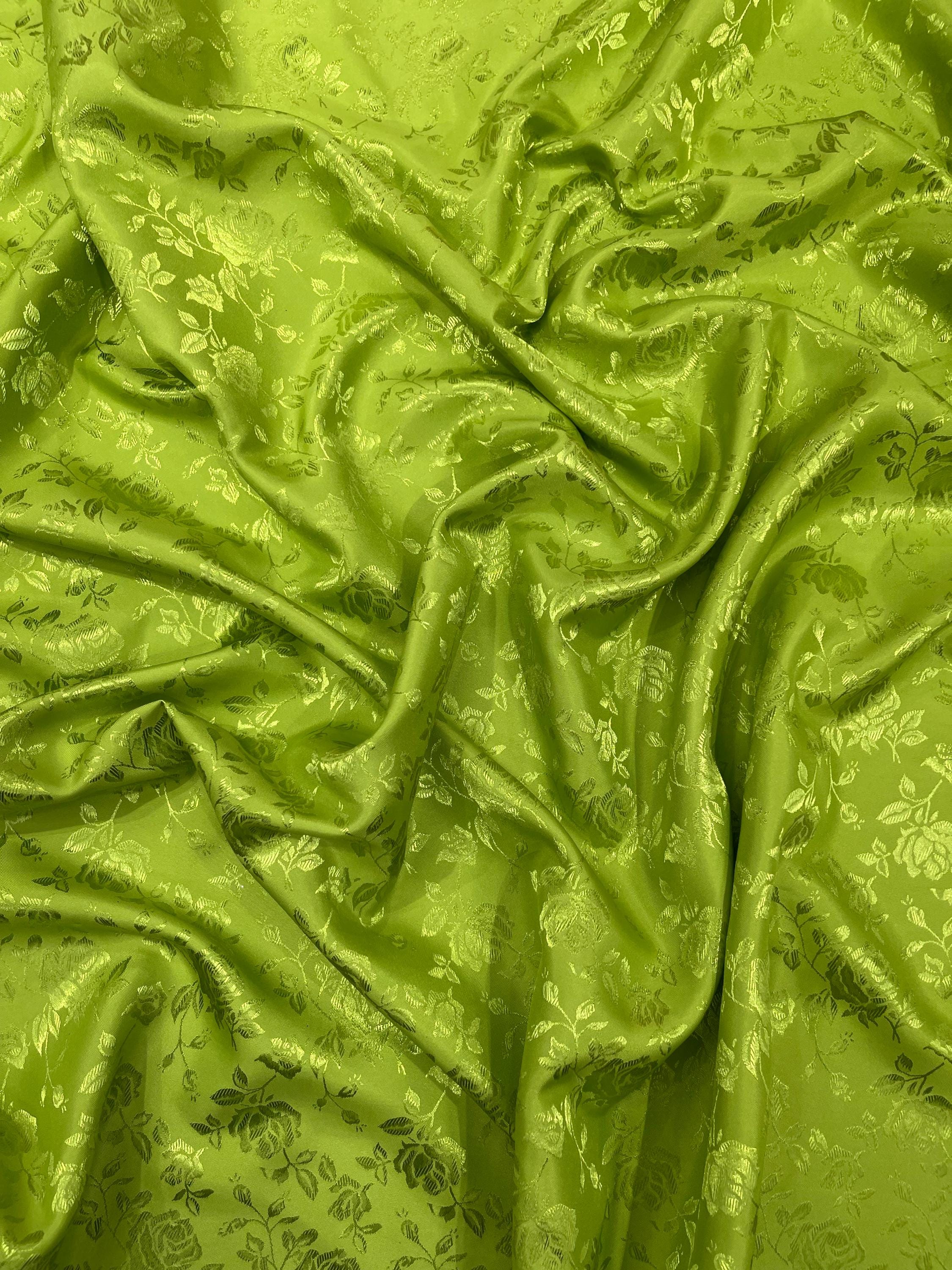 Kiwi Green Floral Brocade Jacquard Satin Fabric - 58/60" Wide