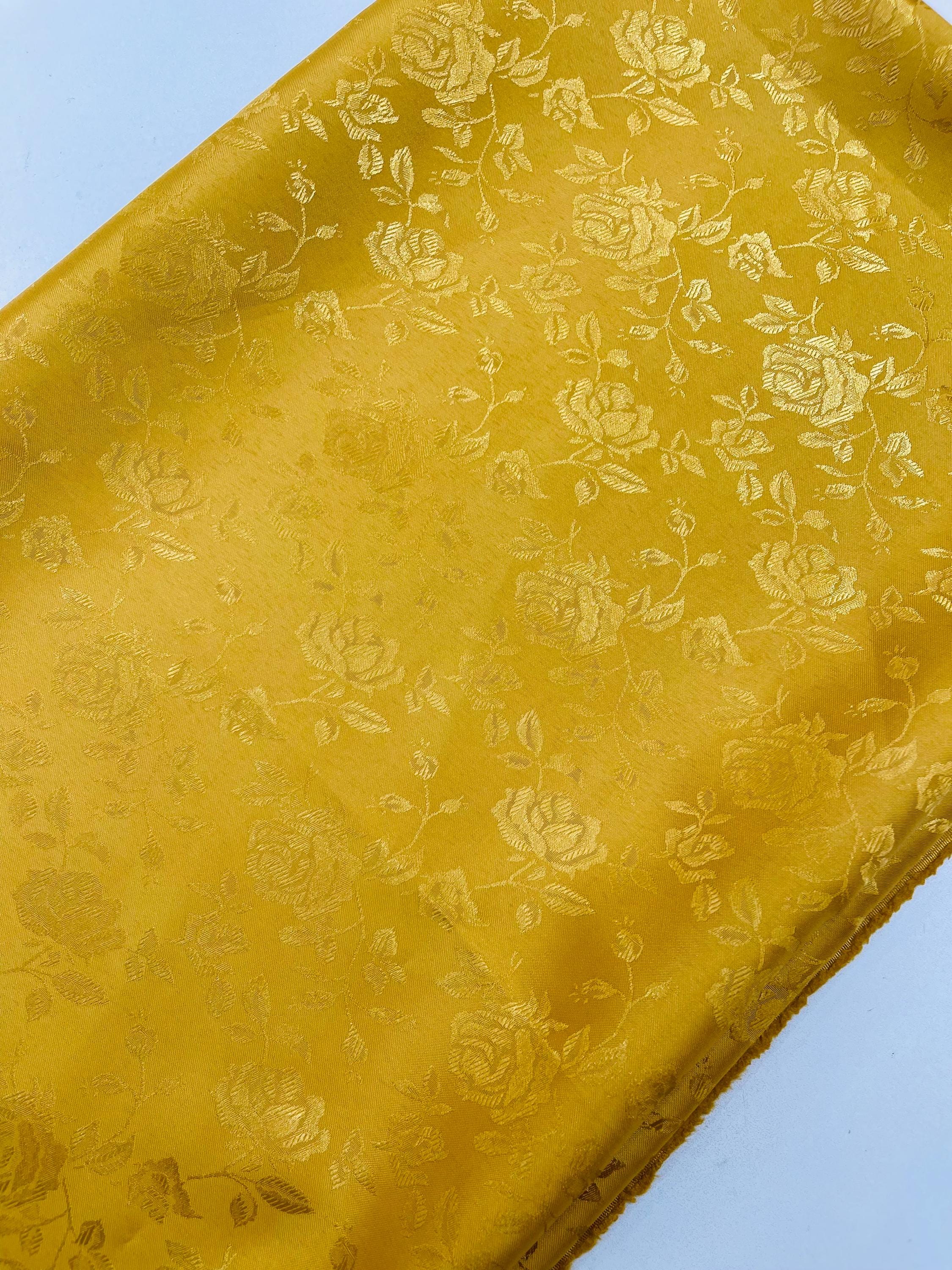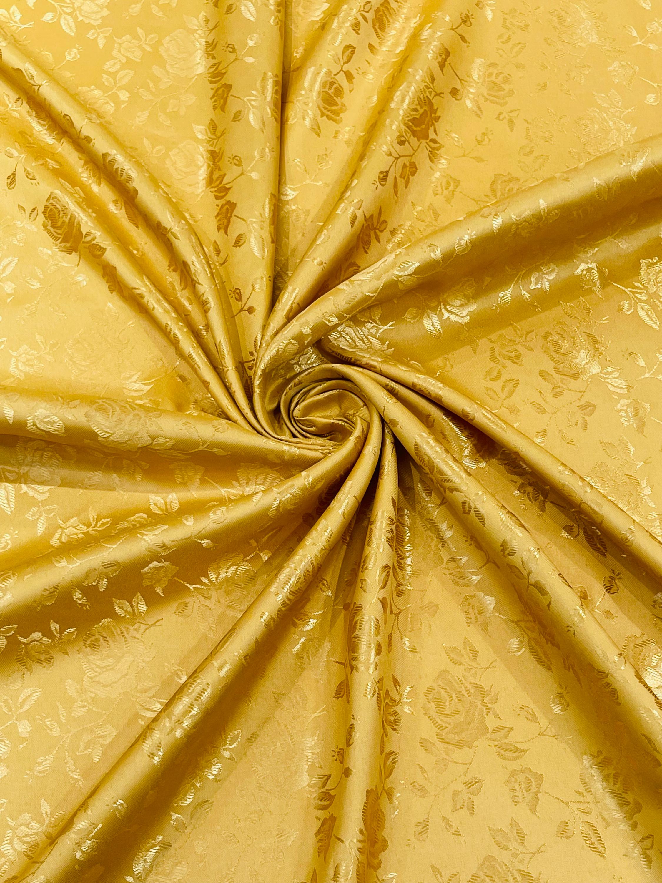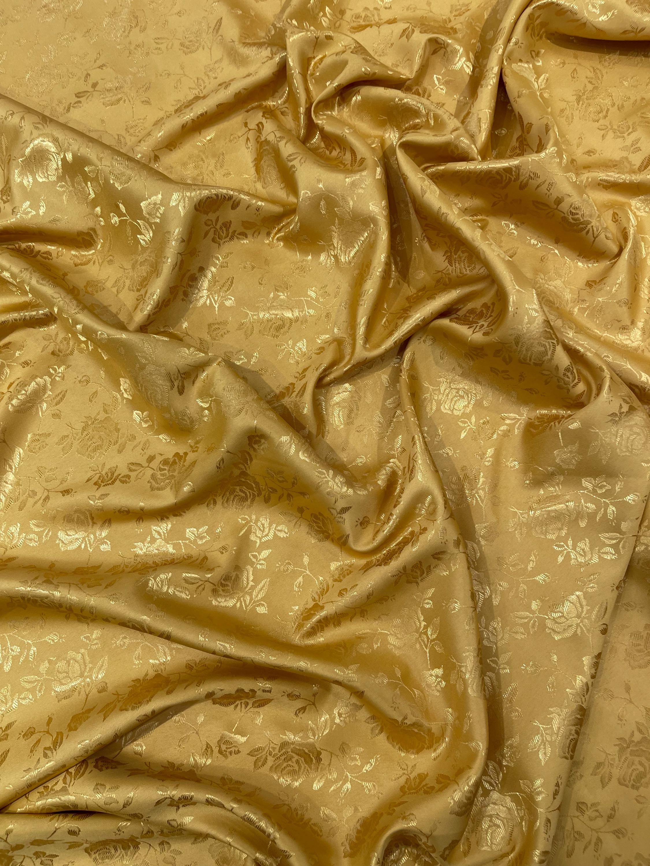 The subtle beauty of the floral pattern stitched into this fabric grows more apparent the closer you look. The fabric has a slight shine, but the pattern is stitched with a matte thread producing a very unique effect as it moves through the light. Note that the flower images are slightly different for each color (all are lovely) and since it is a brocade, the pattern is visible on both sides.