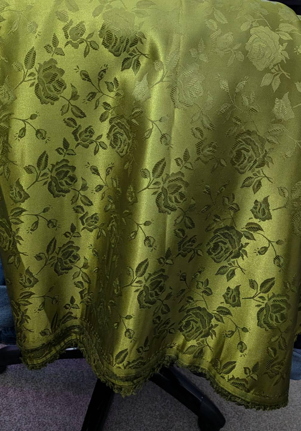 The subtle beauty of the floral pattern stitched into this fabric grows more apparent the closer you look. The fabric has a slight shine, but the pattern is stitched with a matte thread producing a very unique effect as it moves through the light. Note that the flower images are slightly different for each color (all are lovely) and since it is a brocade, the pattern is visible on both sides.