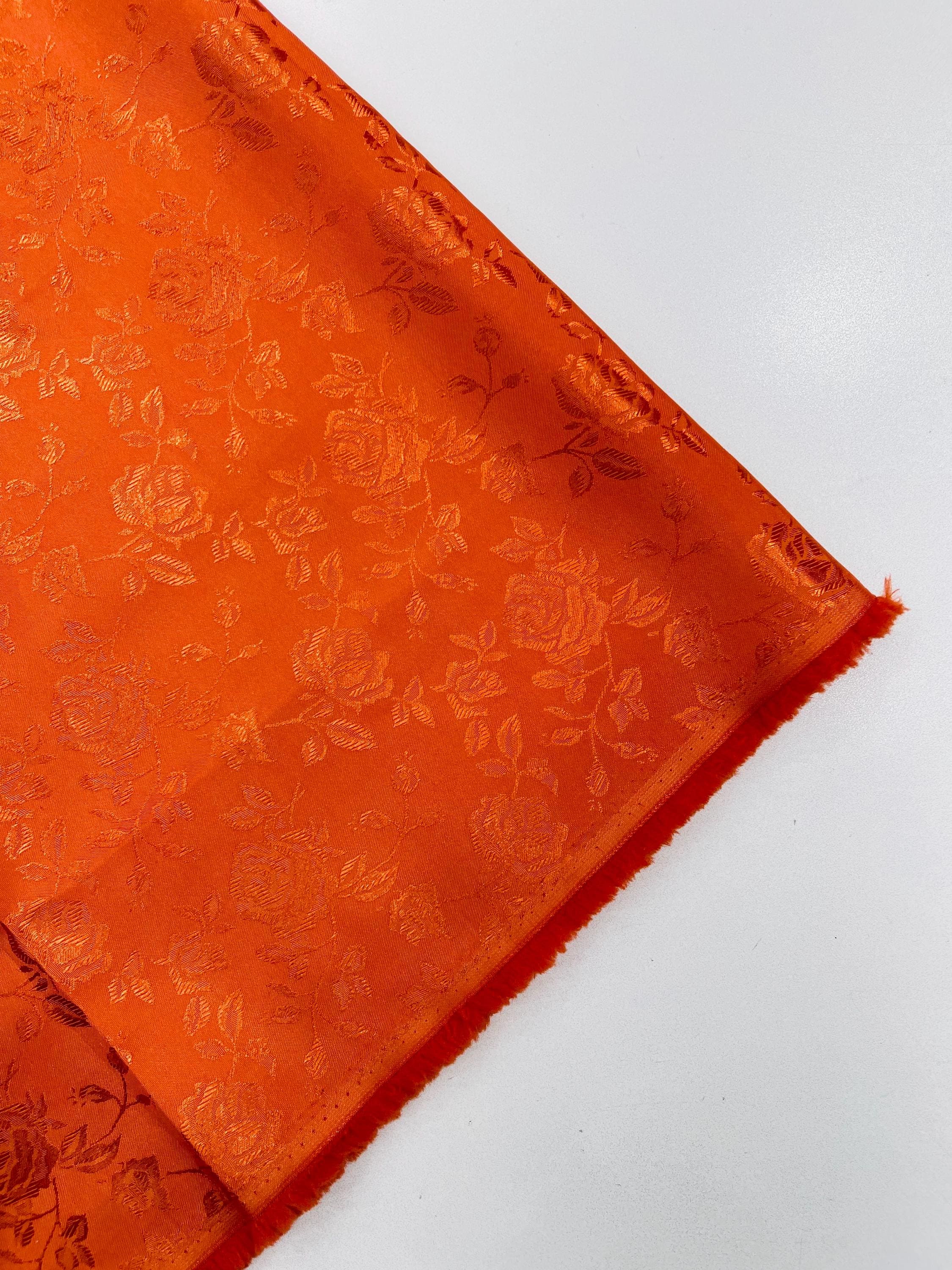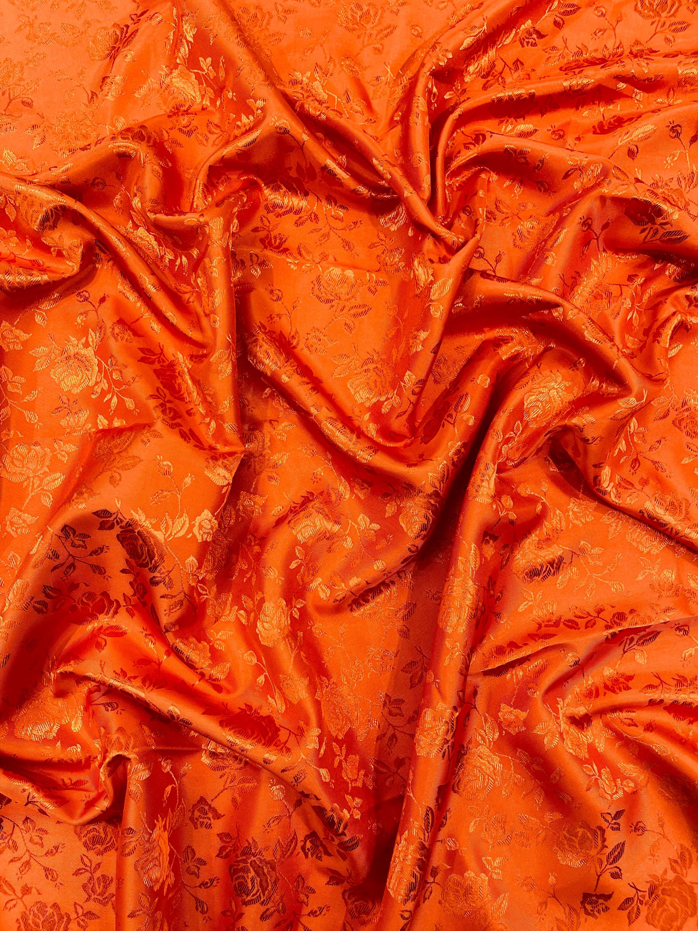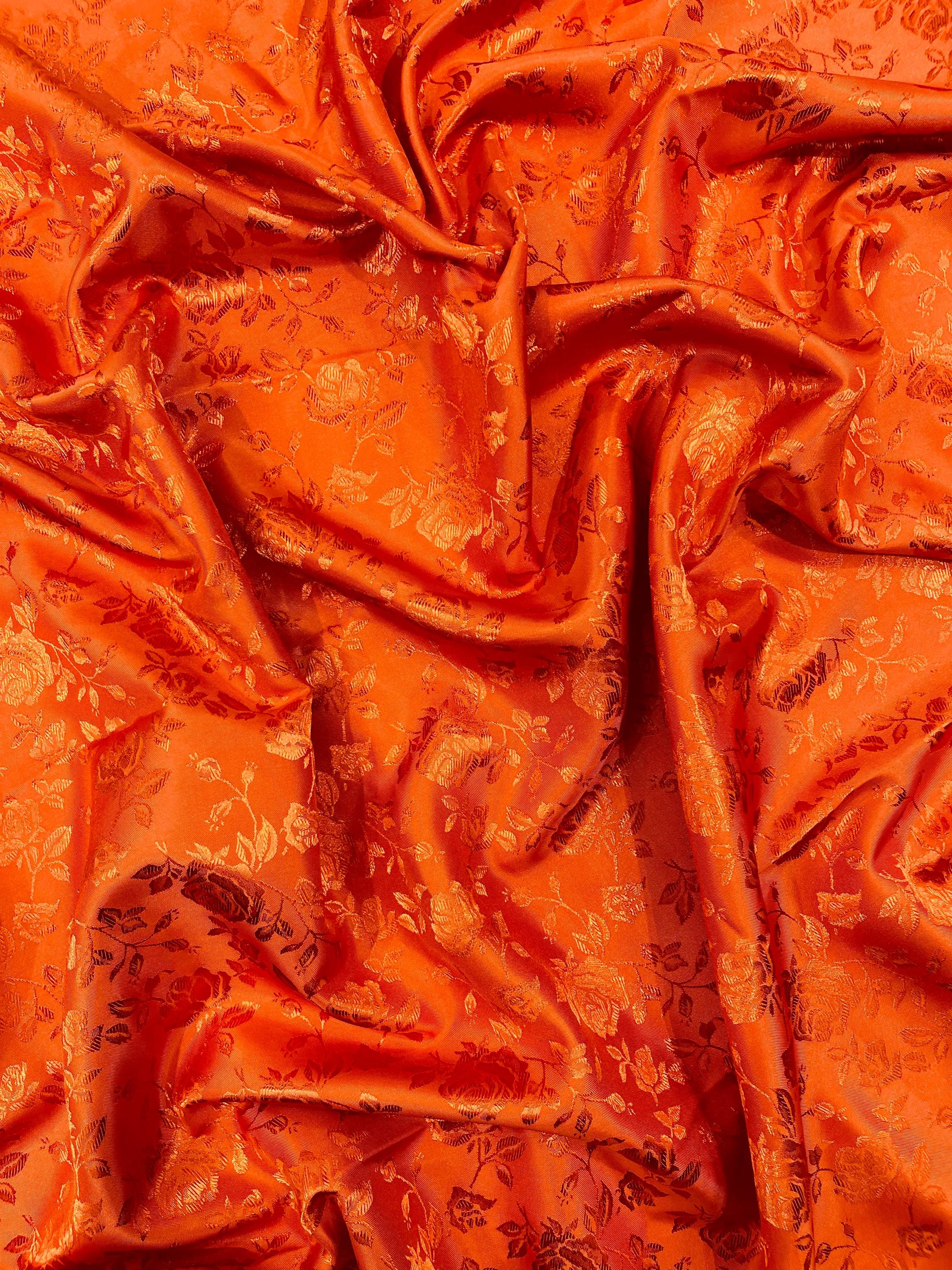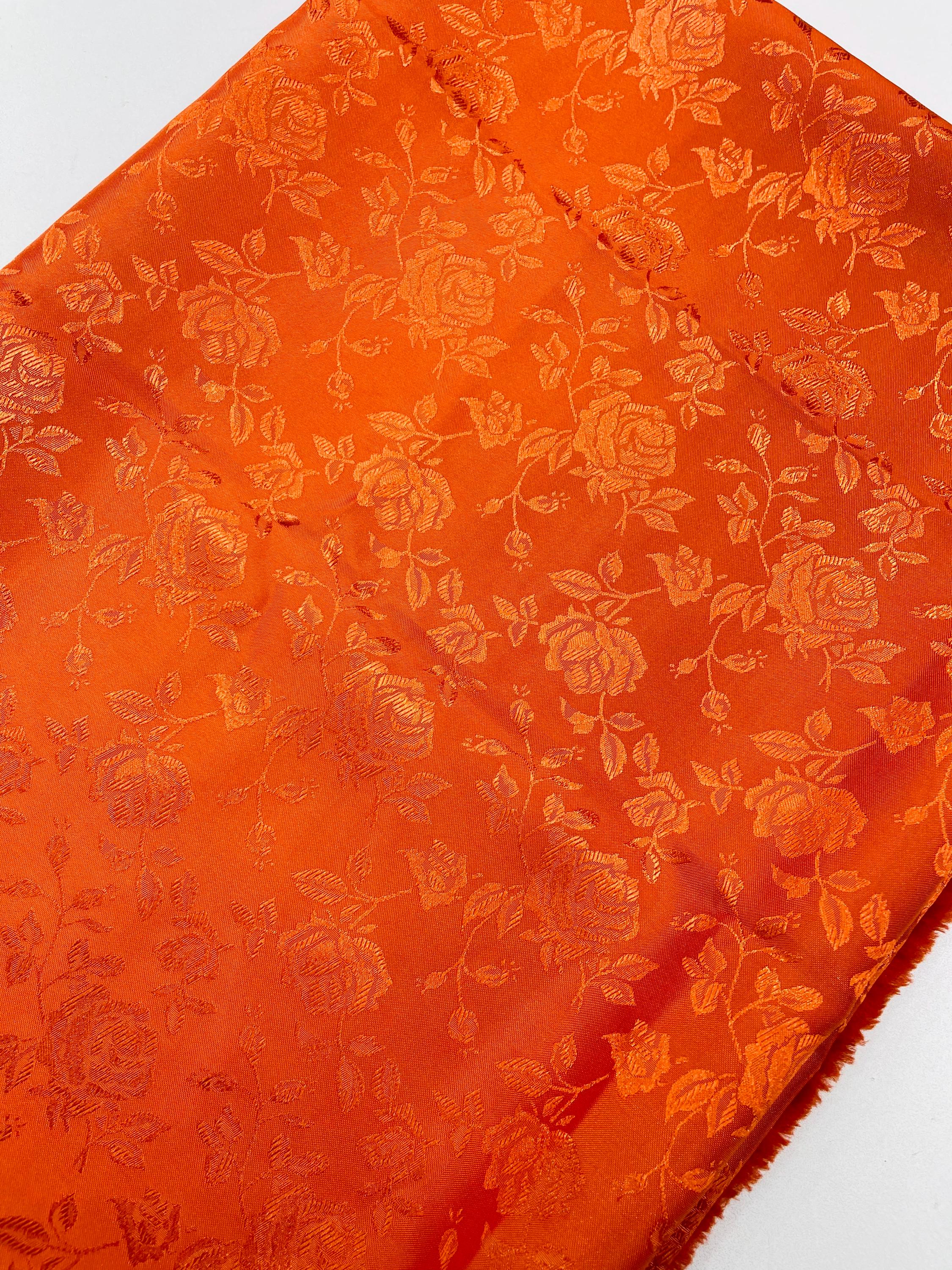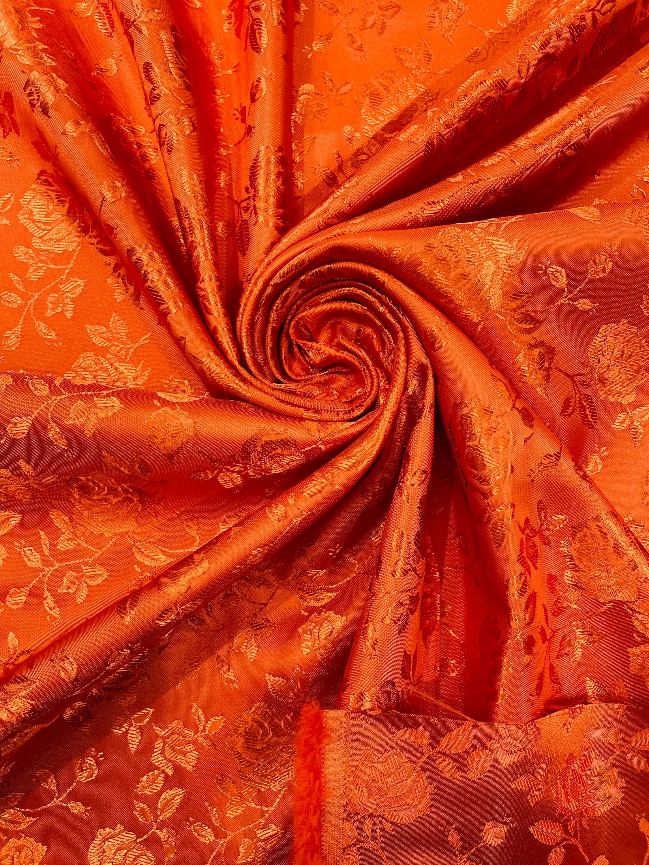 The subtle beauty of the floral pattern stitched into this fabric grows more apparent the closer you look. The fabric has a slight shine, but the pattern is stitched with a matte thread producing a very unique effect as it moves through the light. Note that the flower images are slightly different for each color (all are lovely) and since it is a brocade, the pattern is visible on both sides.