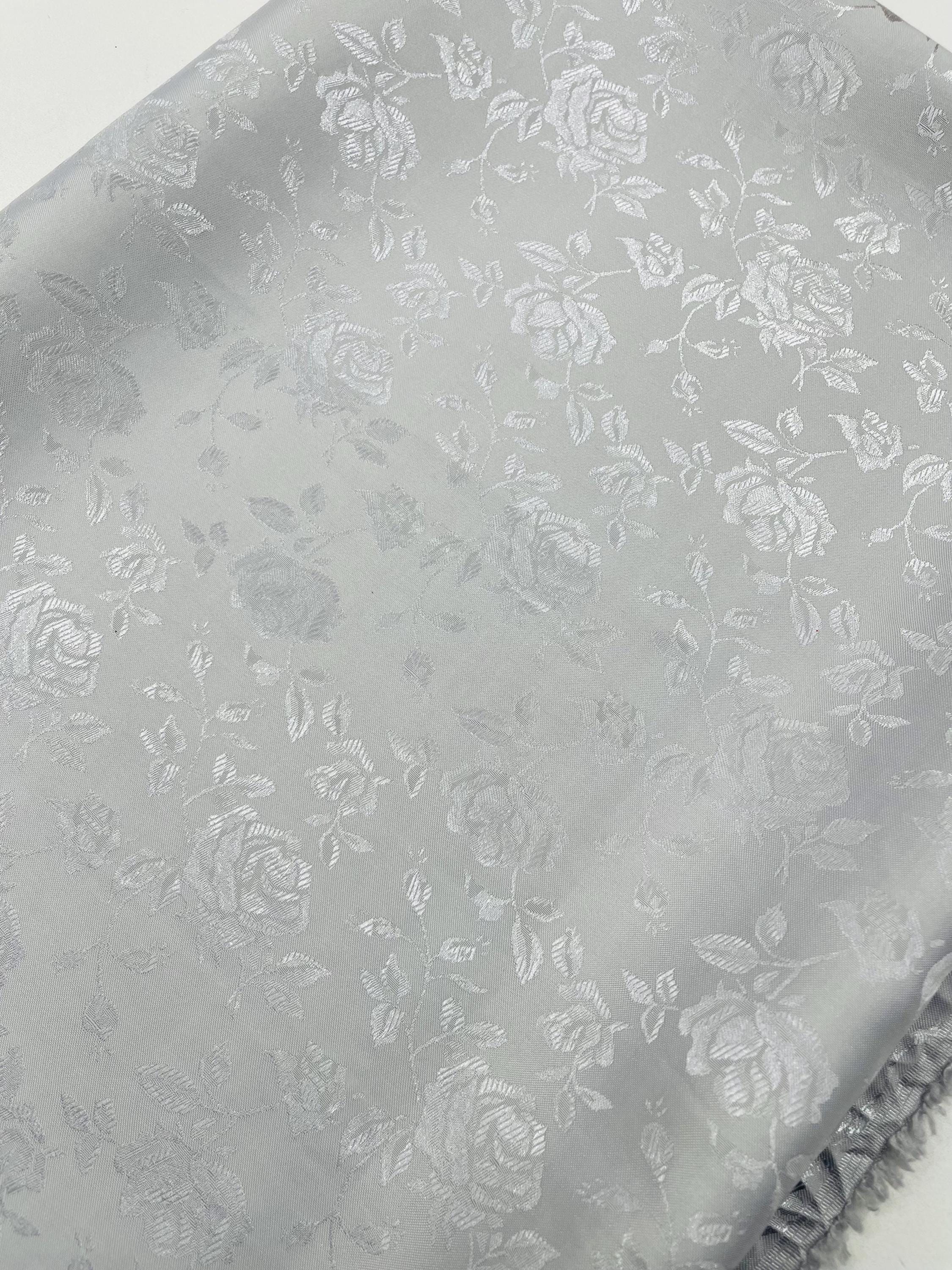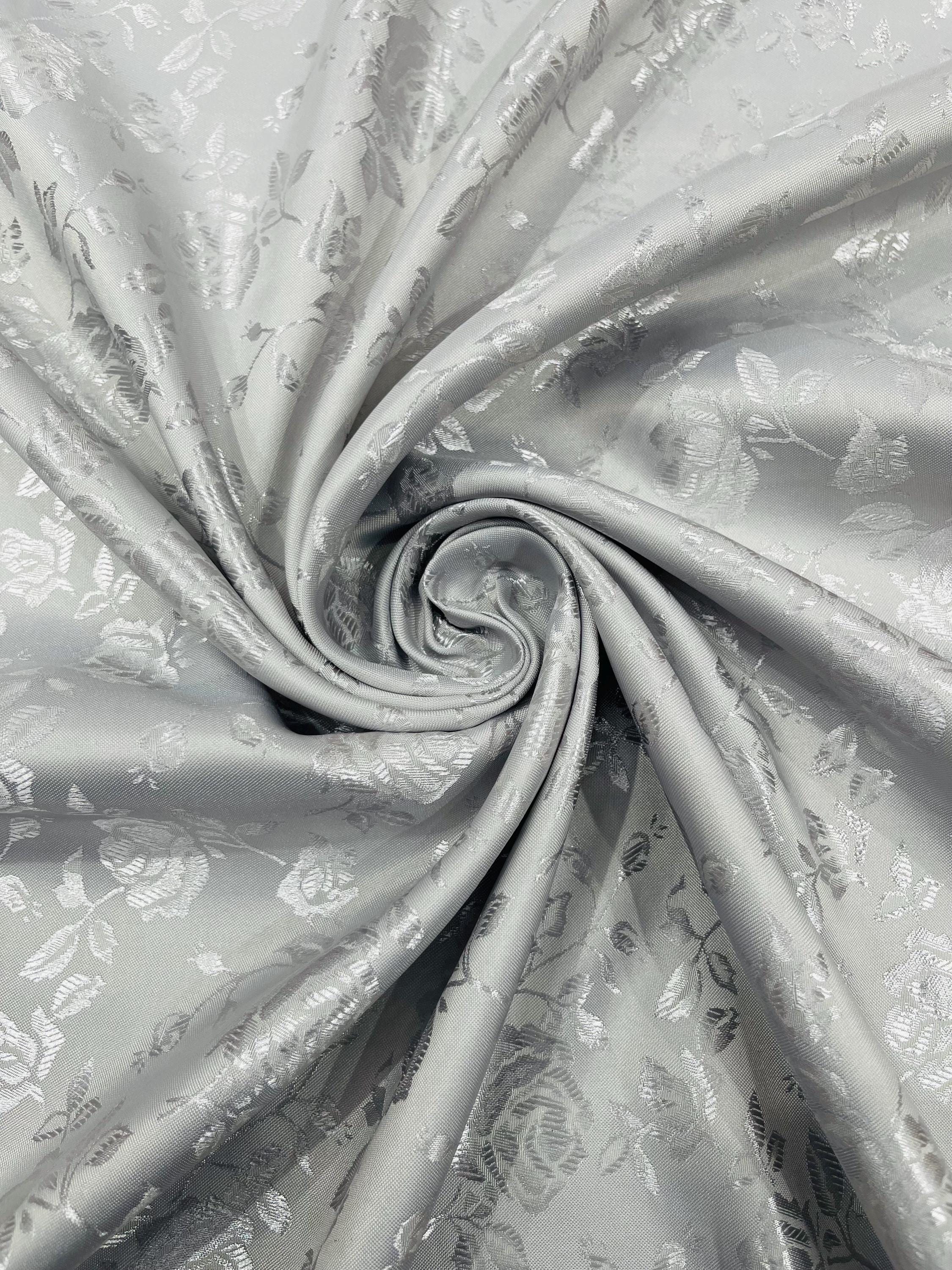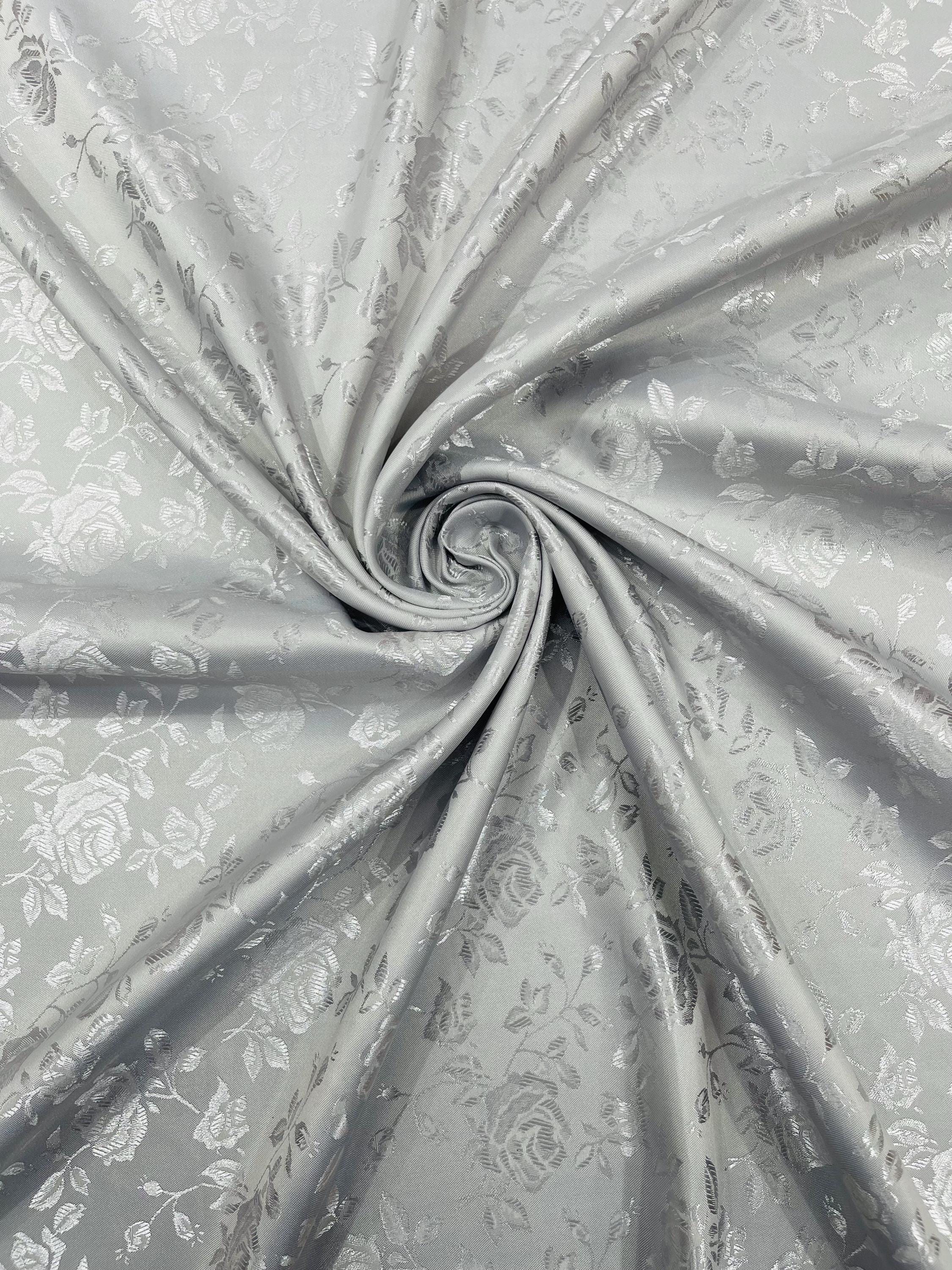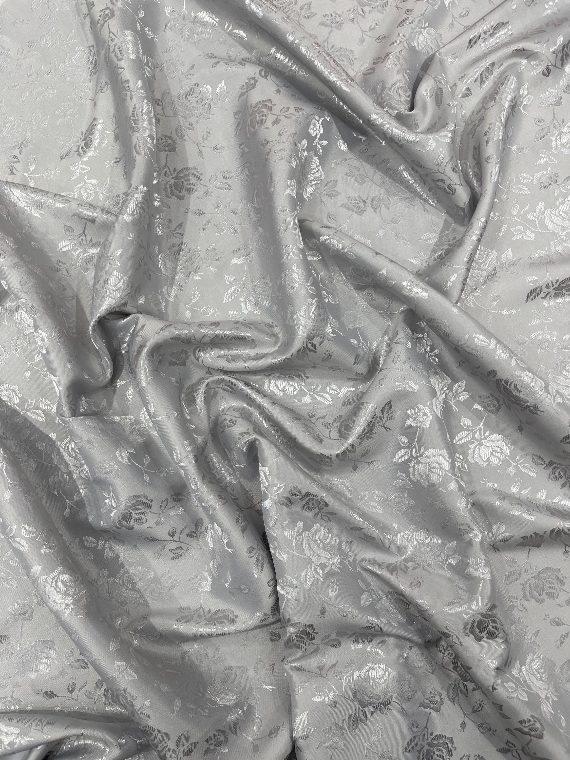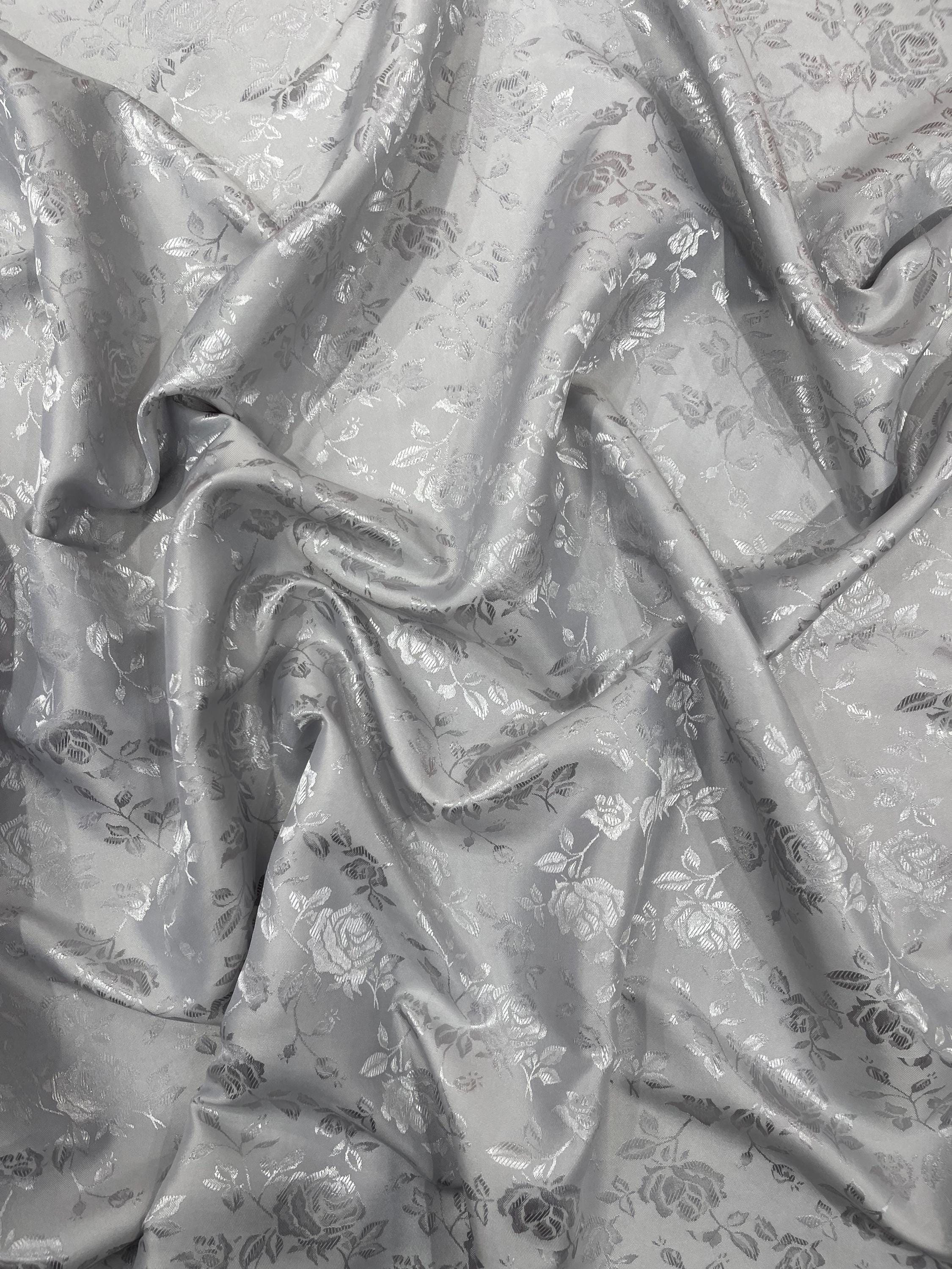 Floral Brocade Jacquard Satin Fabric: Silver Polyester, 58/60" Wide, Sold By The Yard