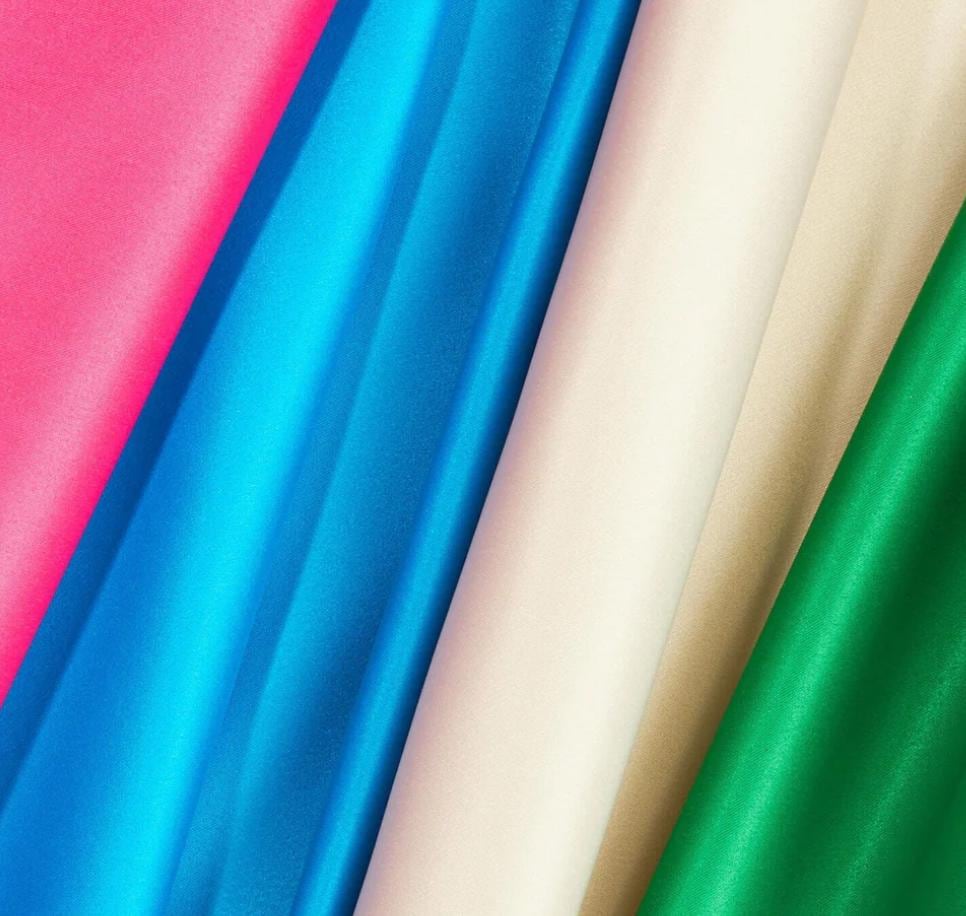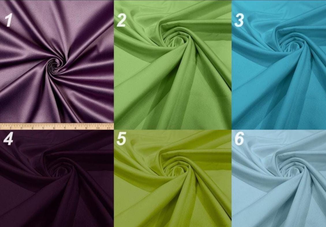 Matte satin (Peau de Soie) fabric is 60" inches wide, 100% polyester and has a medium weight of 6 oz per linear yard. This fabric features a smooth satin feel with a stiff finish, which helps the fabric maintain a luxurious body. However, although the matte satin or peau de soie may feel like a satin, this fabric is far less shiny and has a unique matte appearance. It's got all the great qualities of a satin minus the sheen. This fabric's medium weight, strong body and matte finish make it a versatile choice for all types of garments, crafts and event decorations.