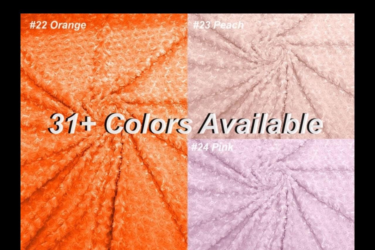 Tear-resistant, shrink-resistant and delightfully textured, our Minky Swirl Rose Blossom Ball Rosebud Fabric features a repeating array of raised, 2.5mm blossoming roses growing right out of the fur! Perfect for blankets, robes, toys, stuffed animals, plush bedspreads, pillows and any kind of cuddly apparel, decor, or apparel for baby.