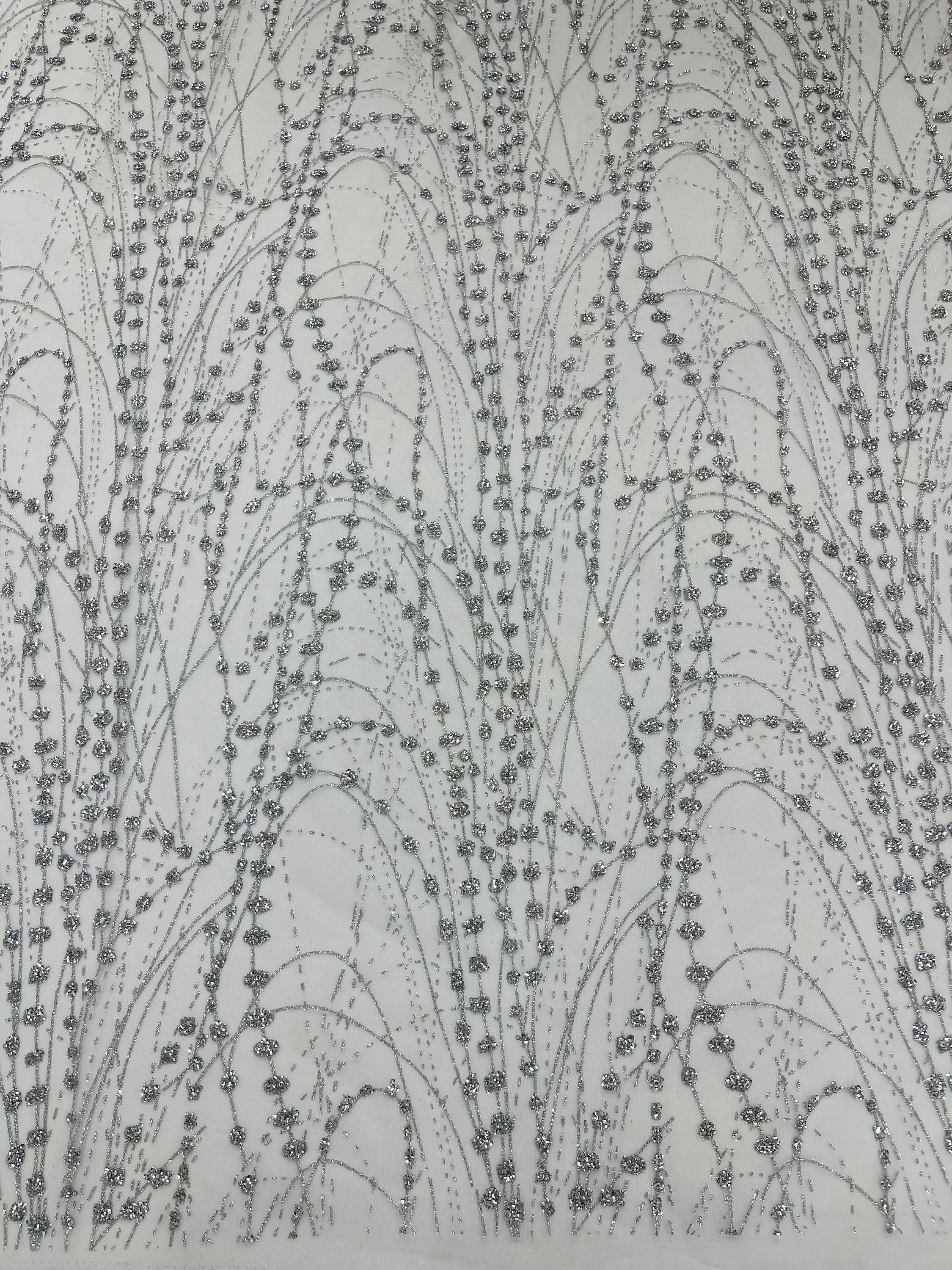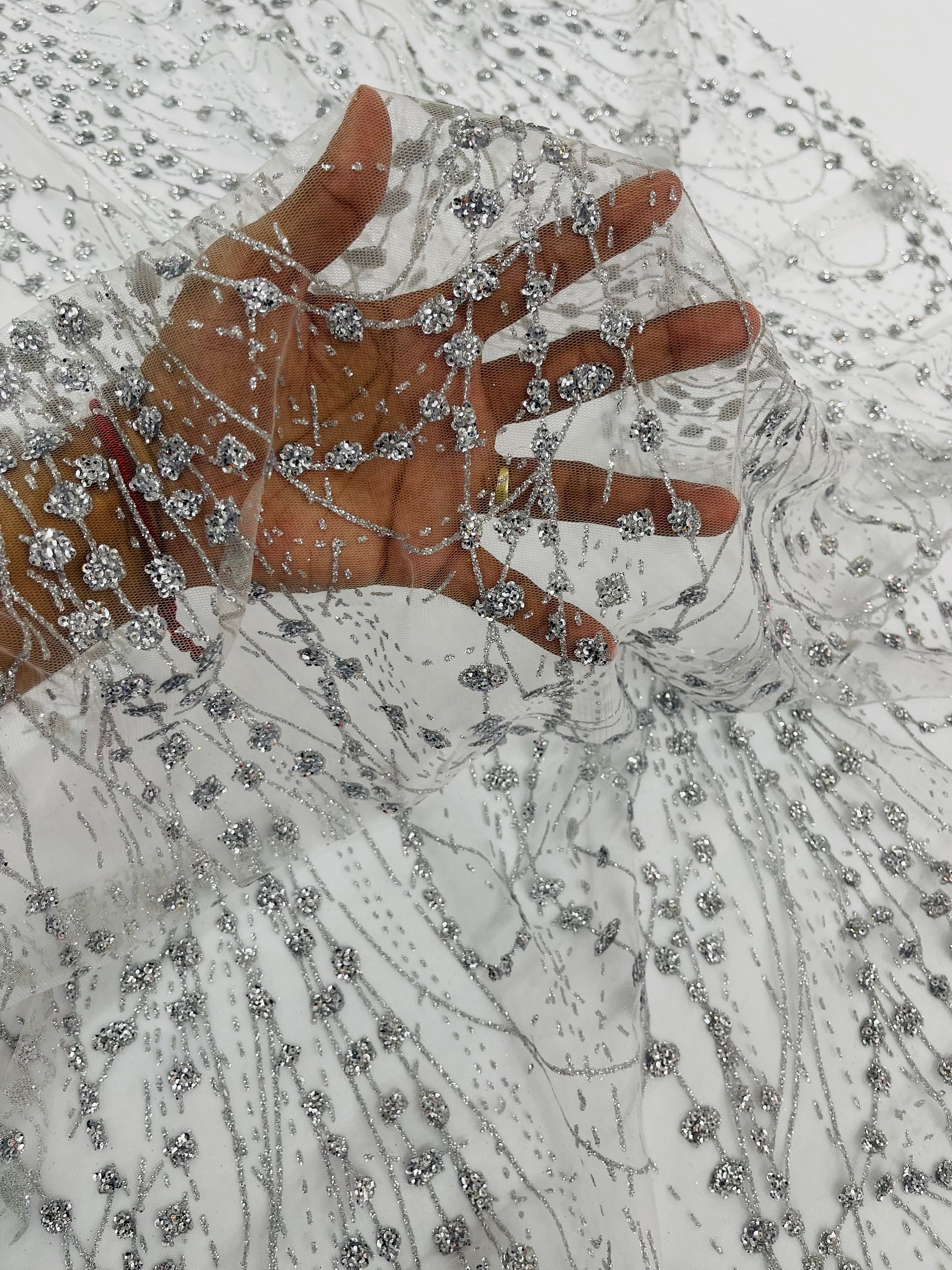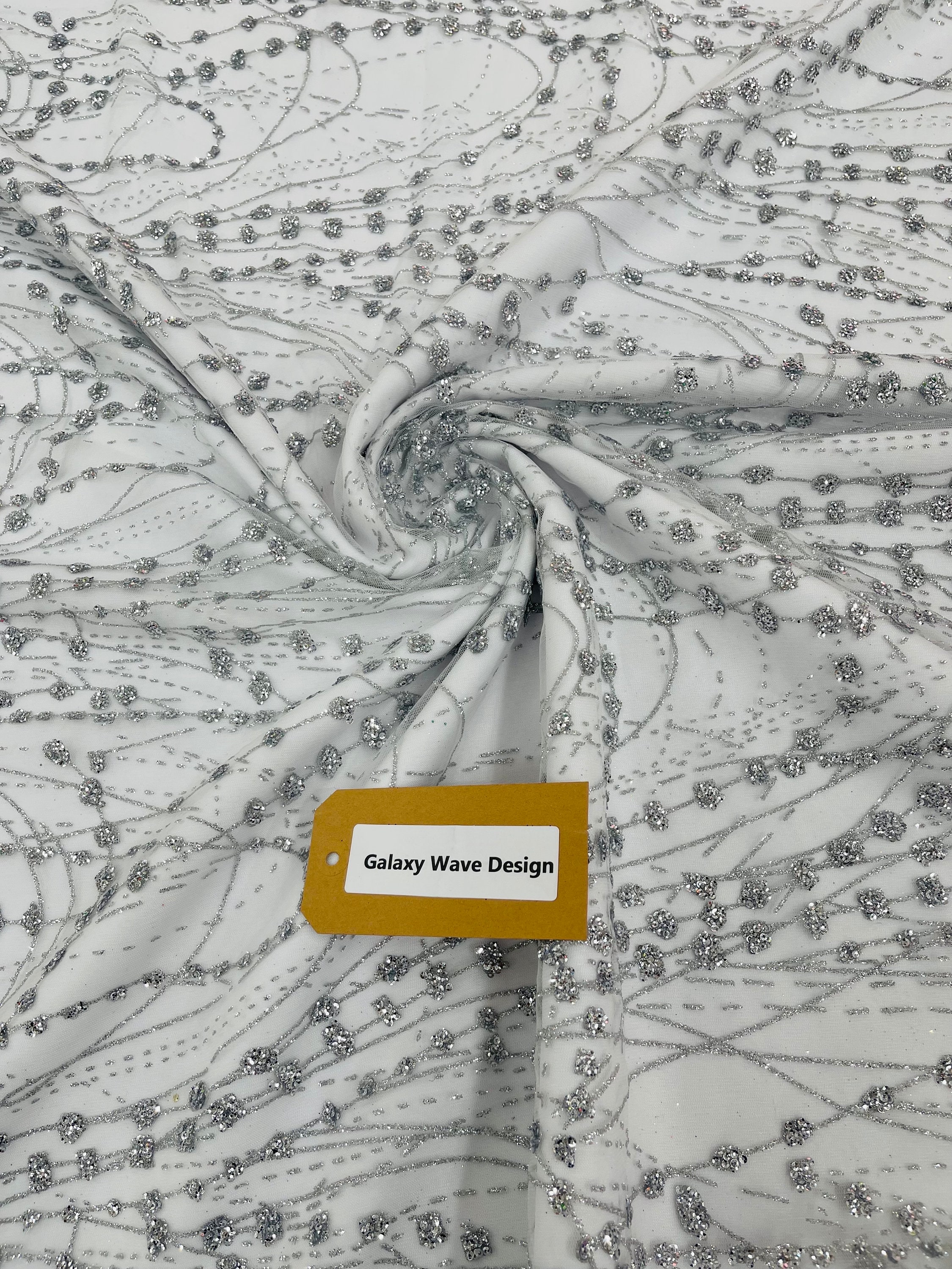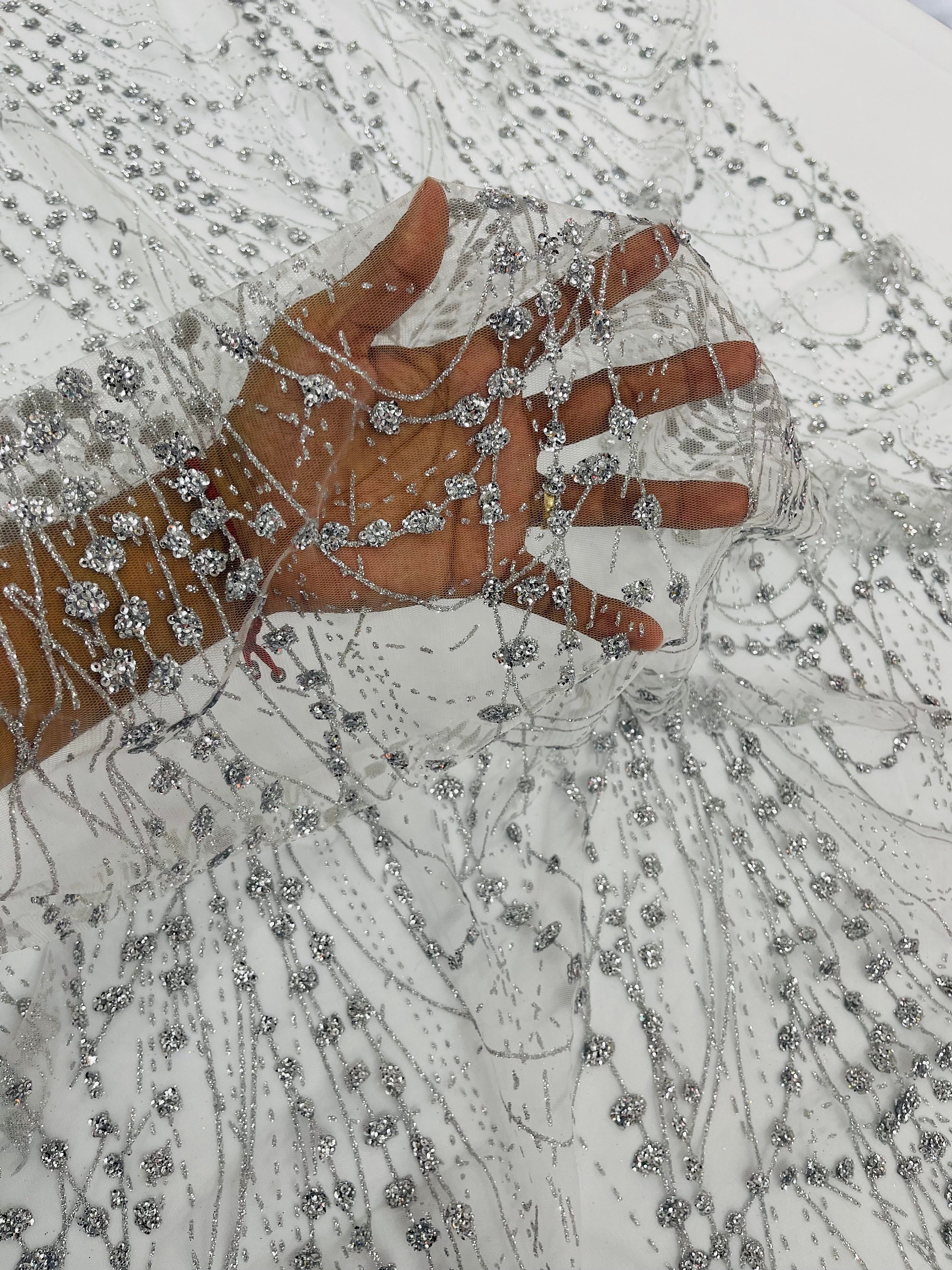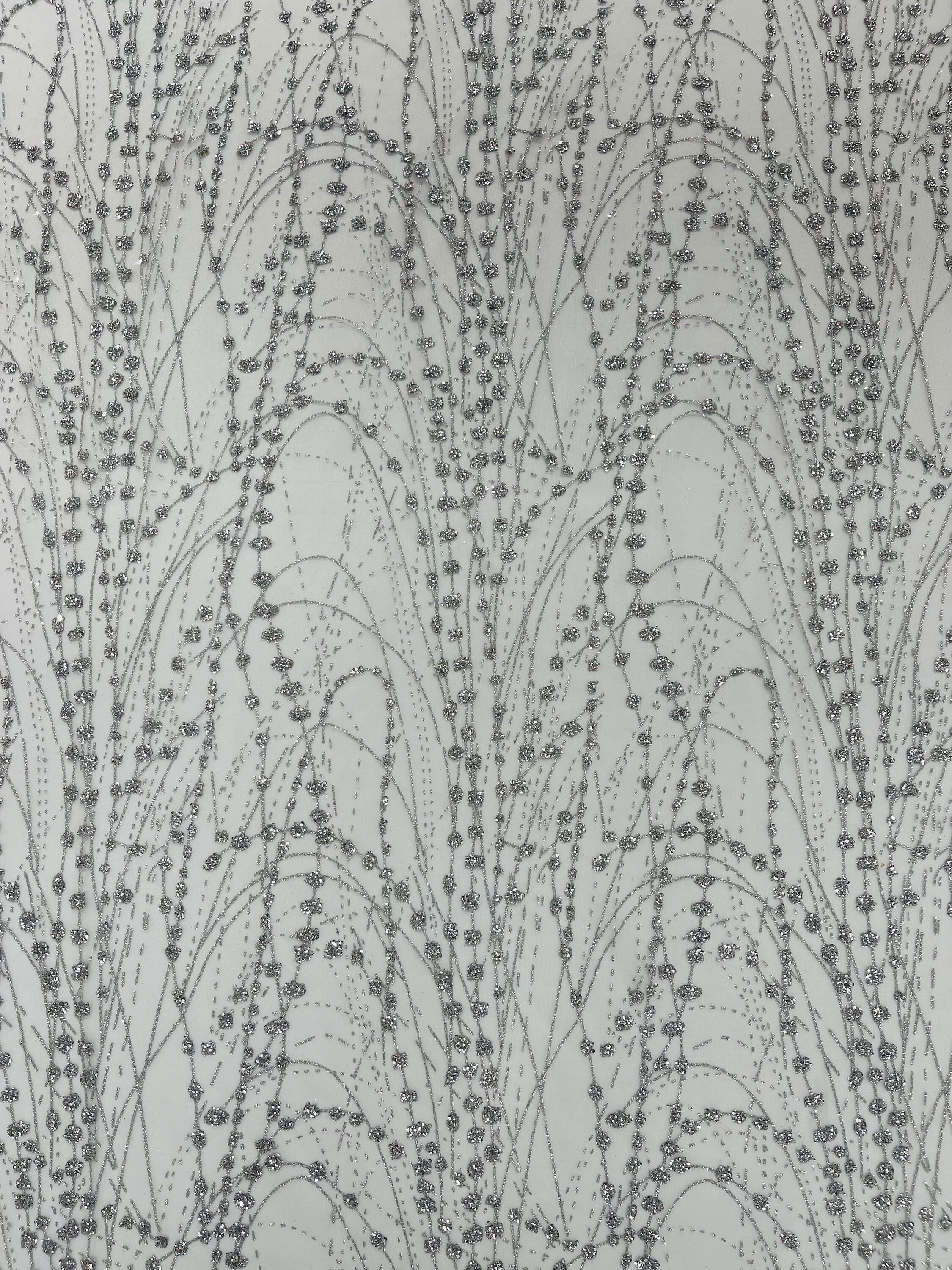 Silver Glitter Mesh Lace Fabric – Galaxy Sparkle Bridal, Prom Decor