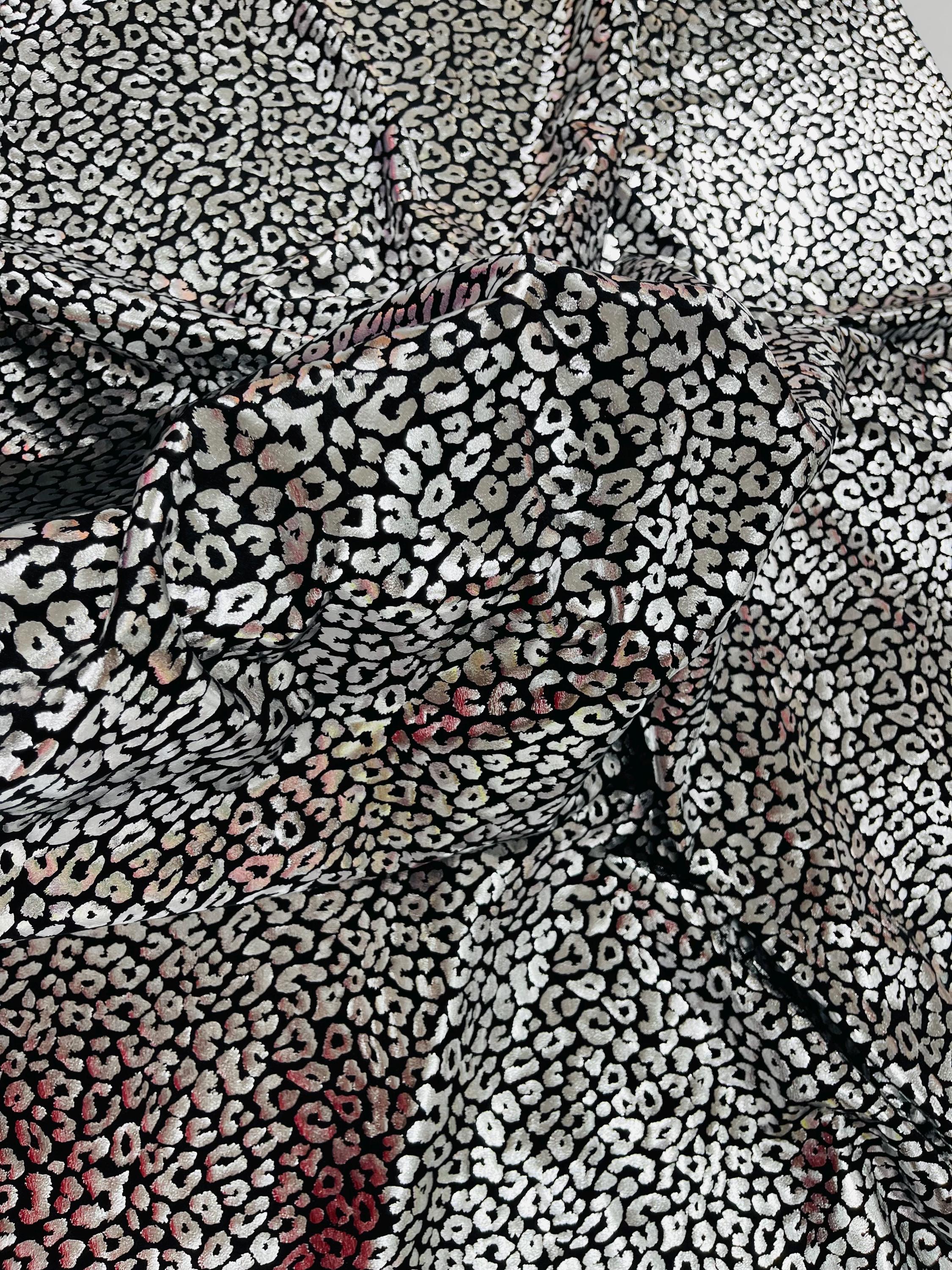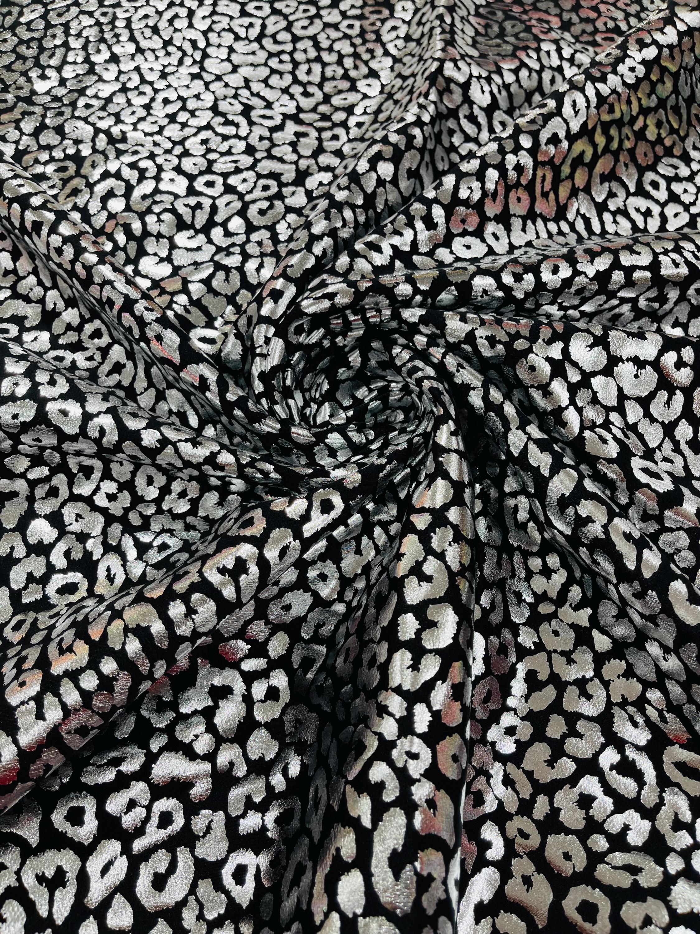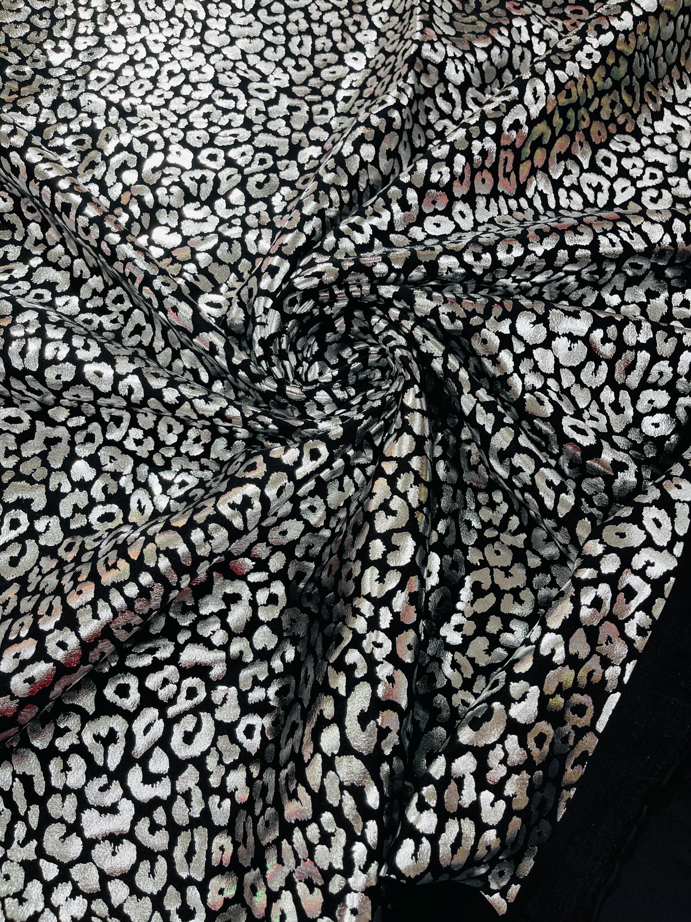 Cheetah Design Nylon Spandex Hologram Metallic, Print Leopard Foil 4 Way Stretch 58/60” Sold By The Yard