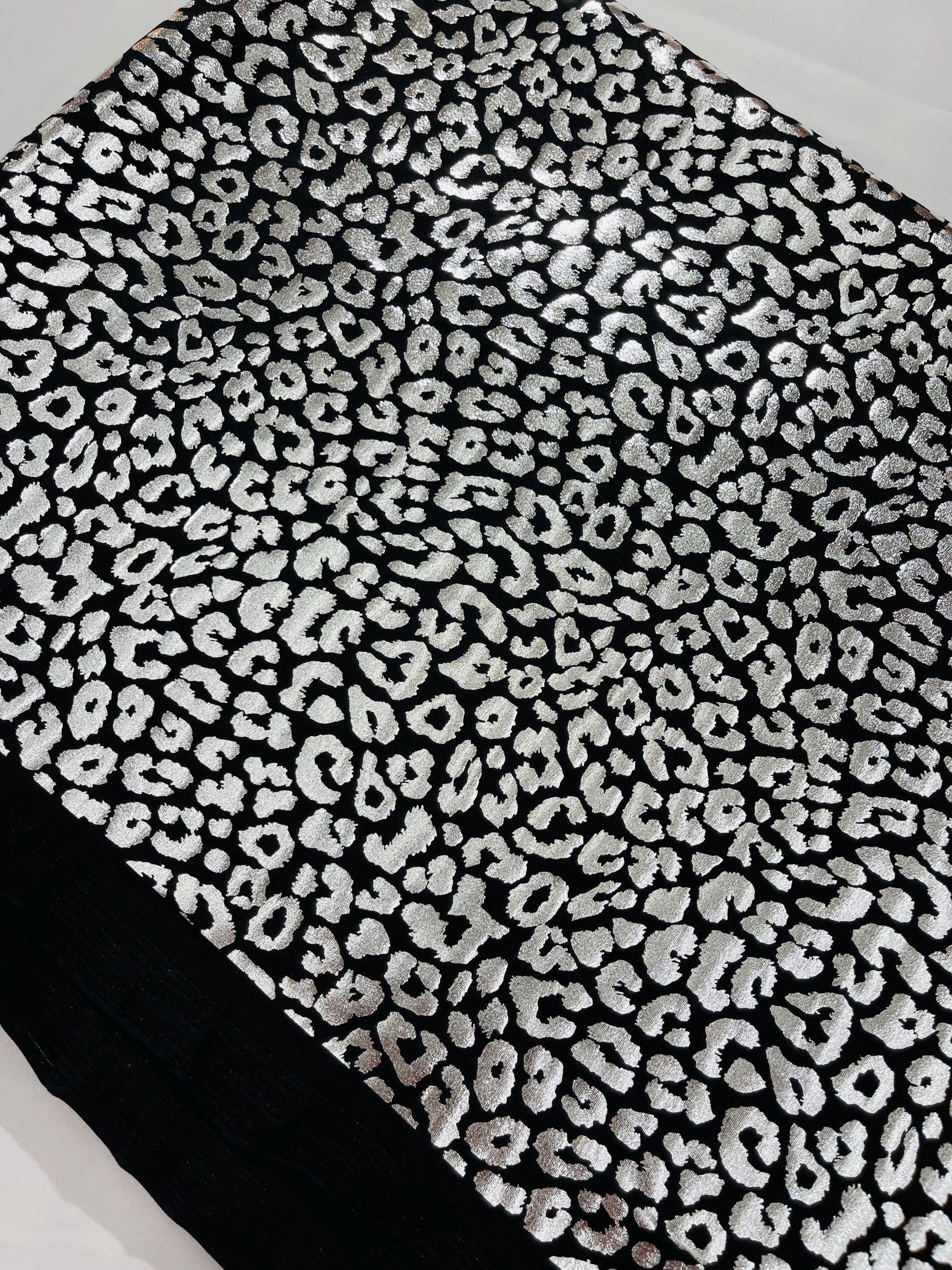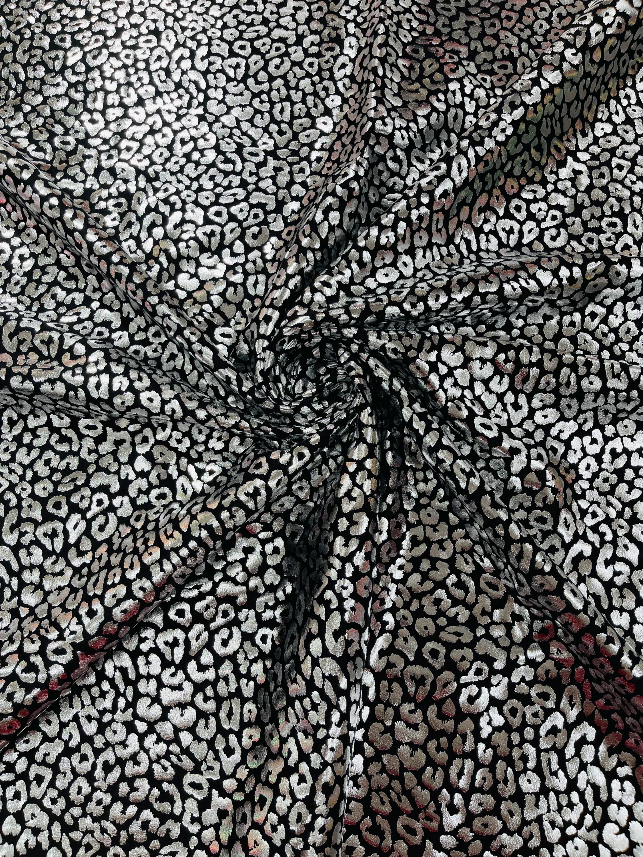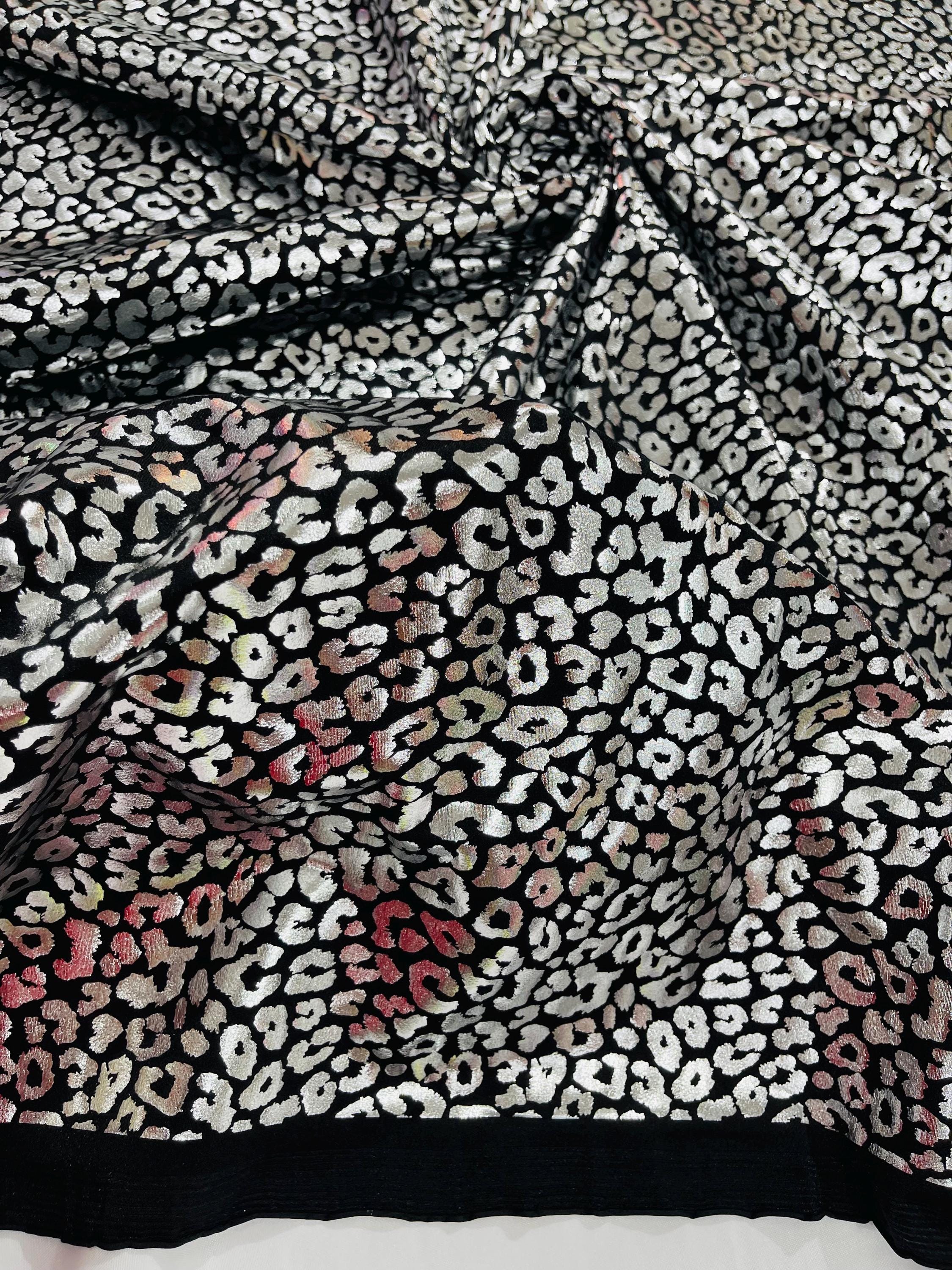 Cheetah Design Nylon Spandex Hologram Metallic, Print Leopard Foil 4 Way Stretch 58/60” Sold By The Yard