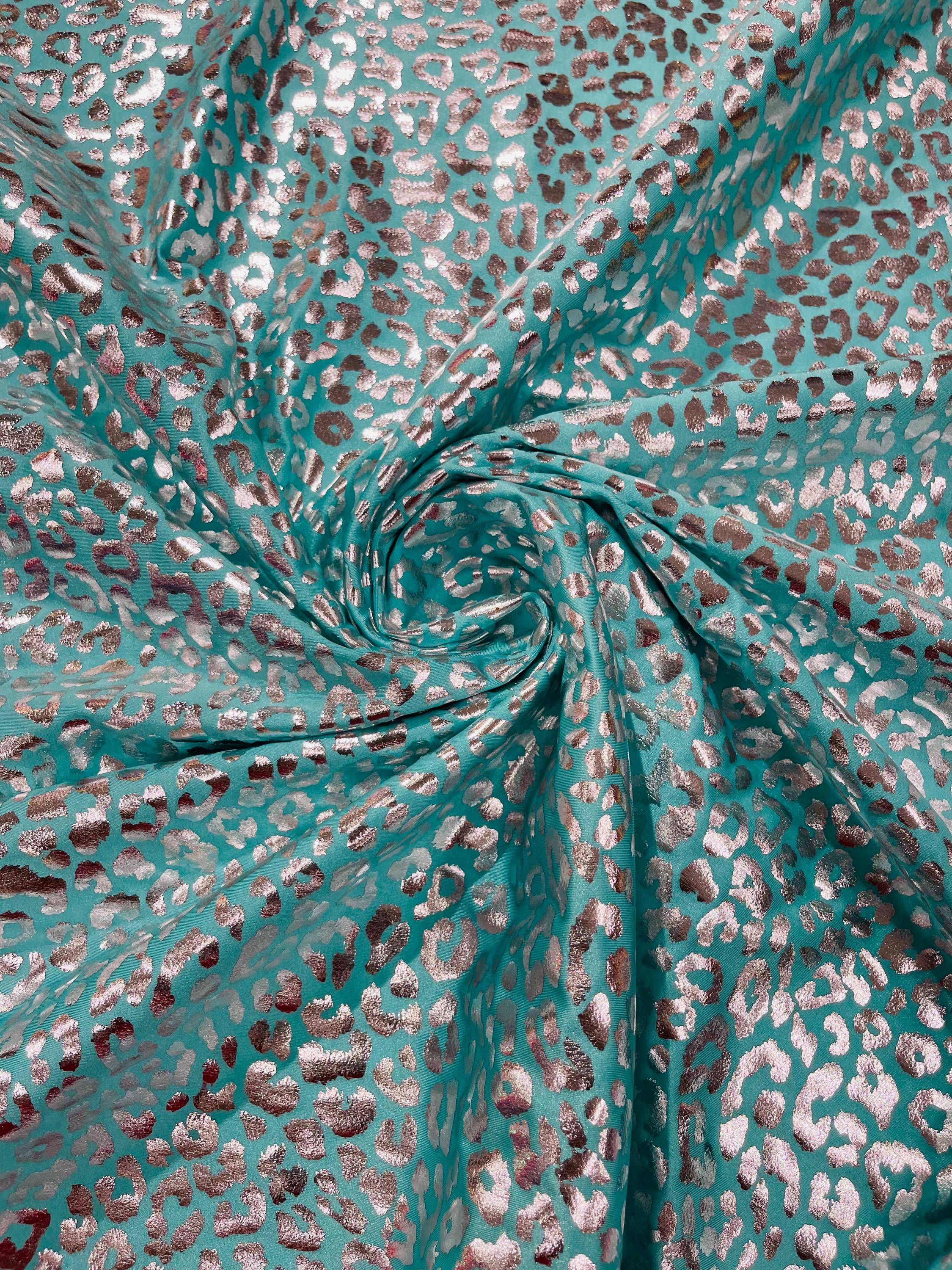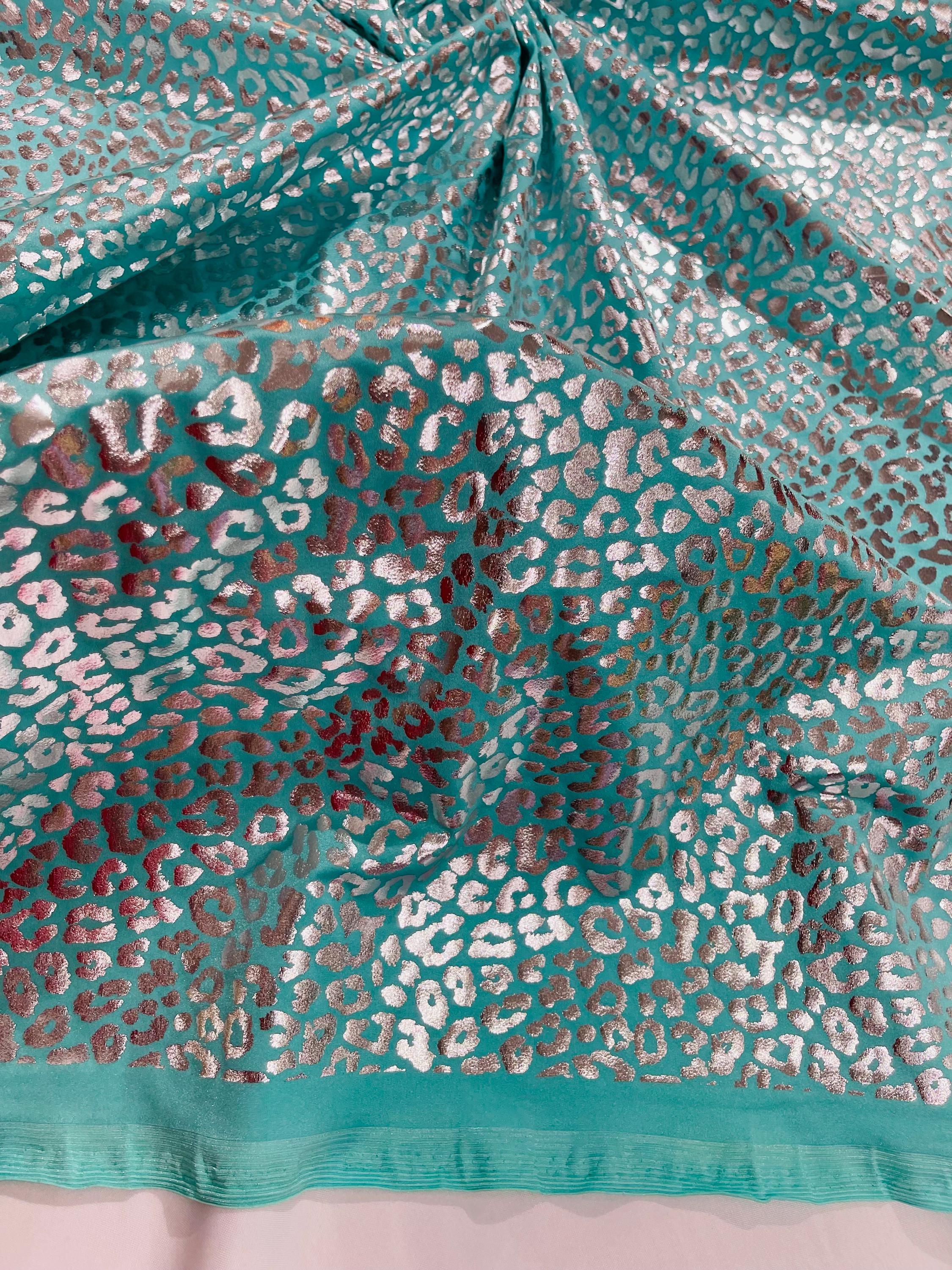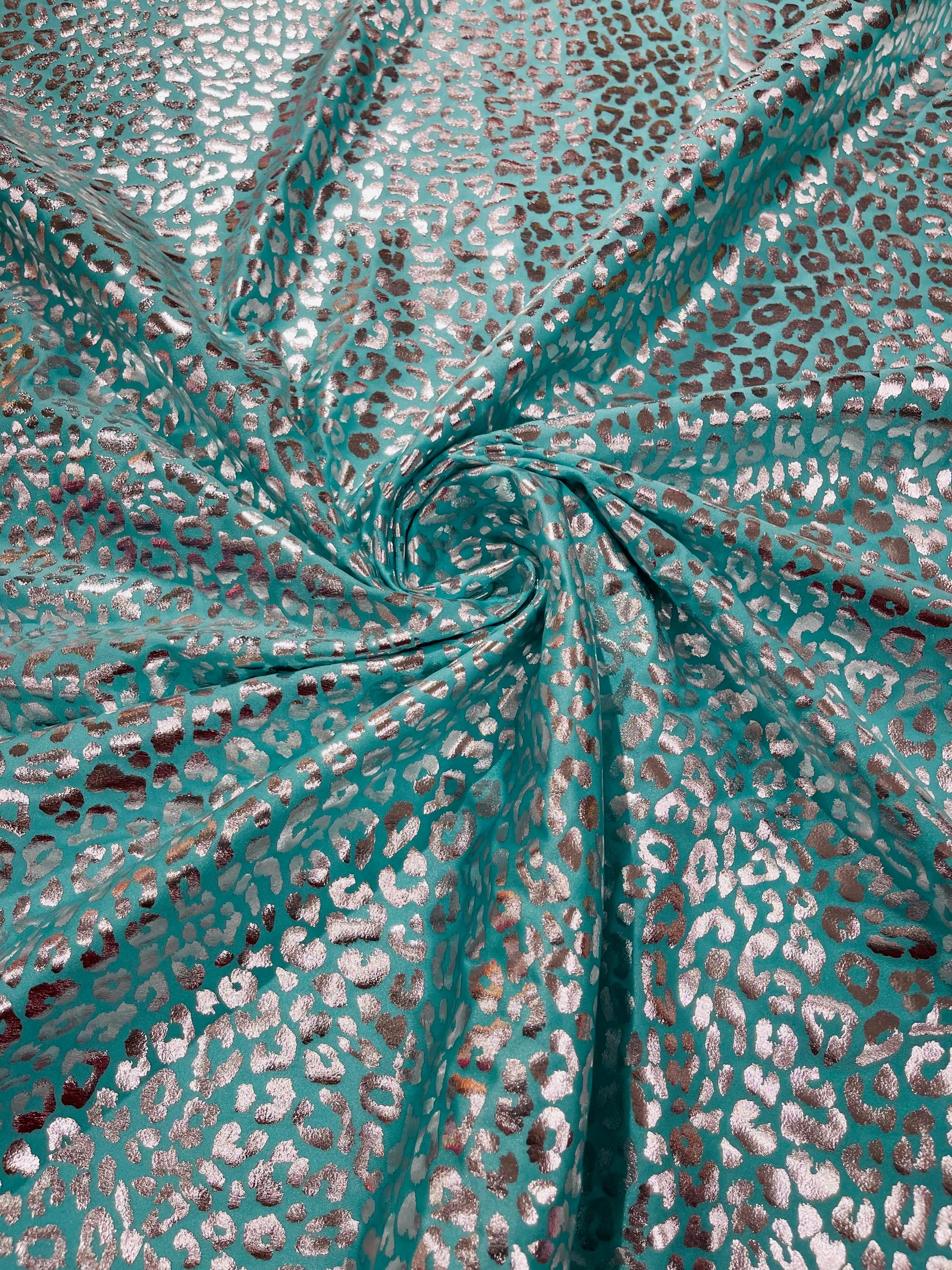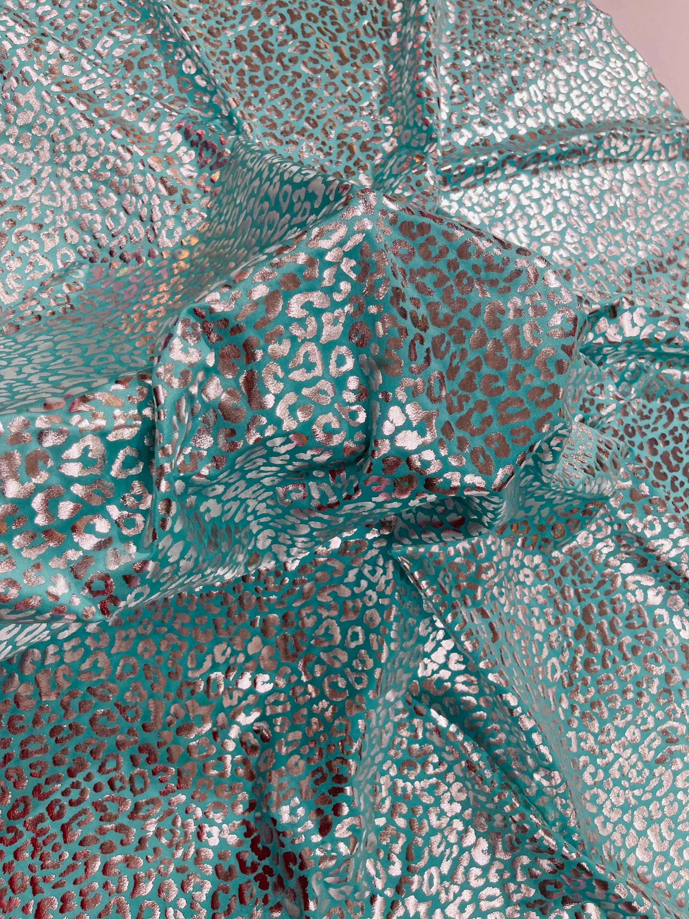 Cheetah Design Nylon Spandex Hologram Metallic, Print Leopard Foil 4 Way Stretch 58/60” Sold By The Yard