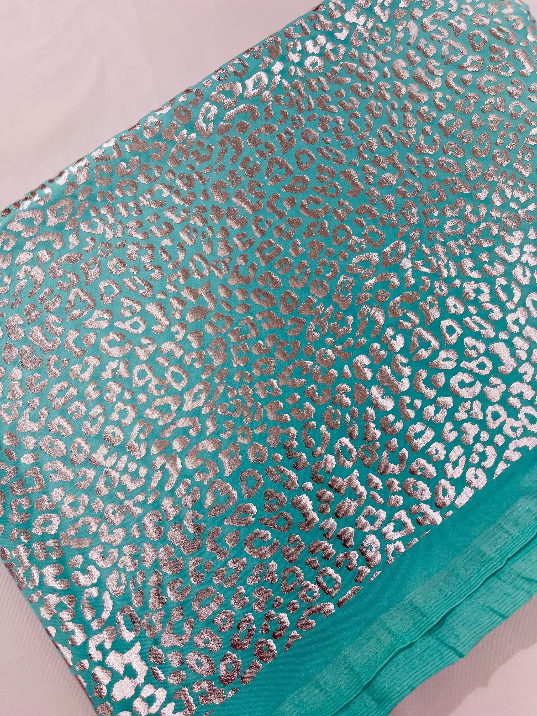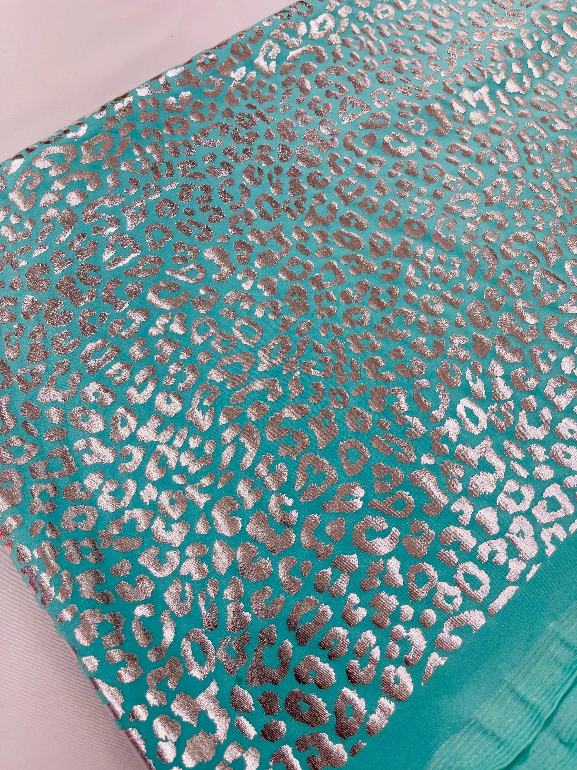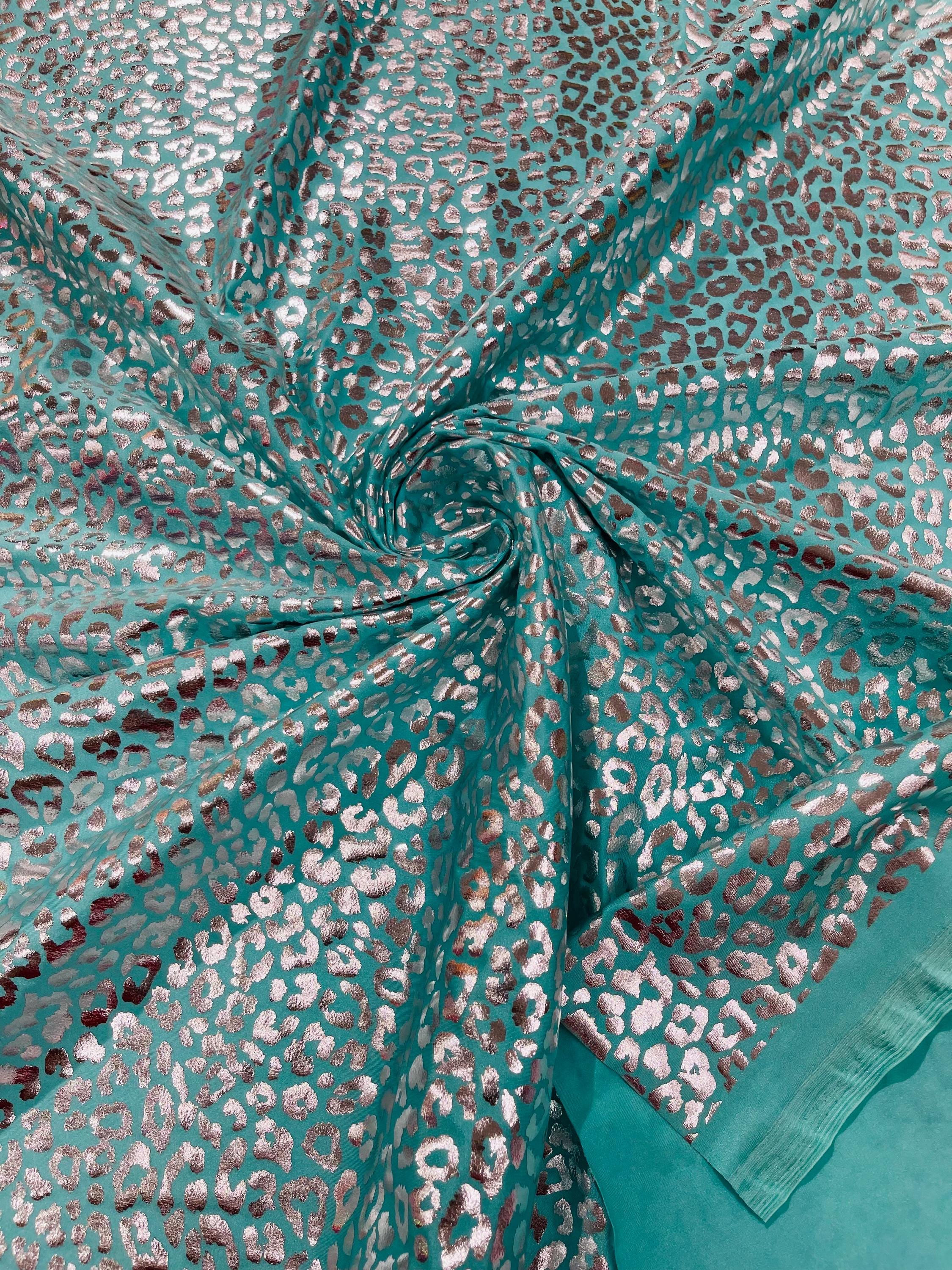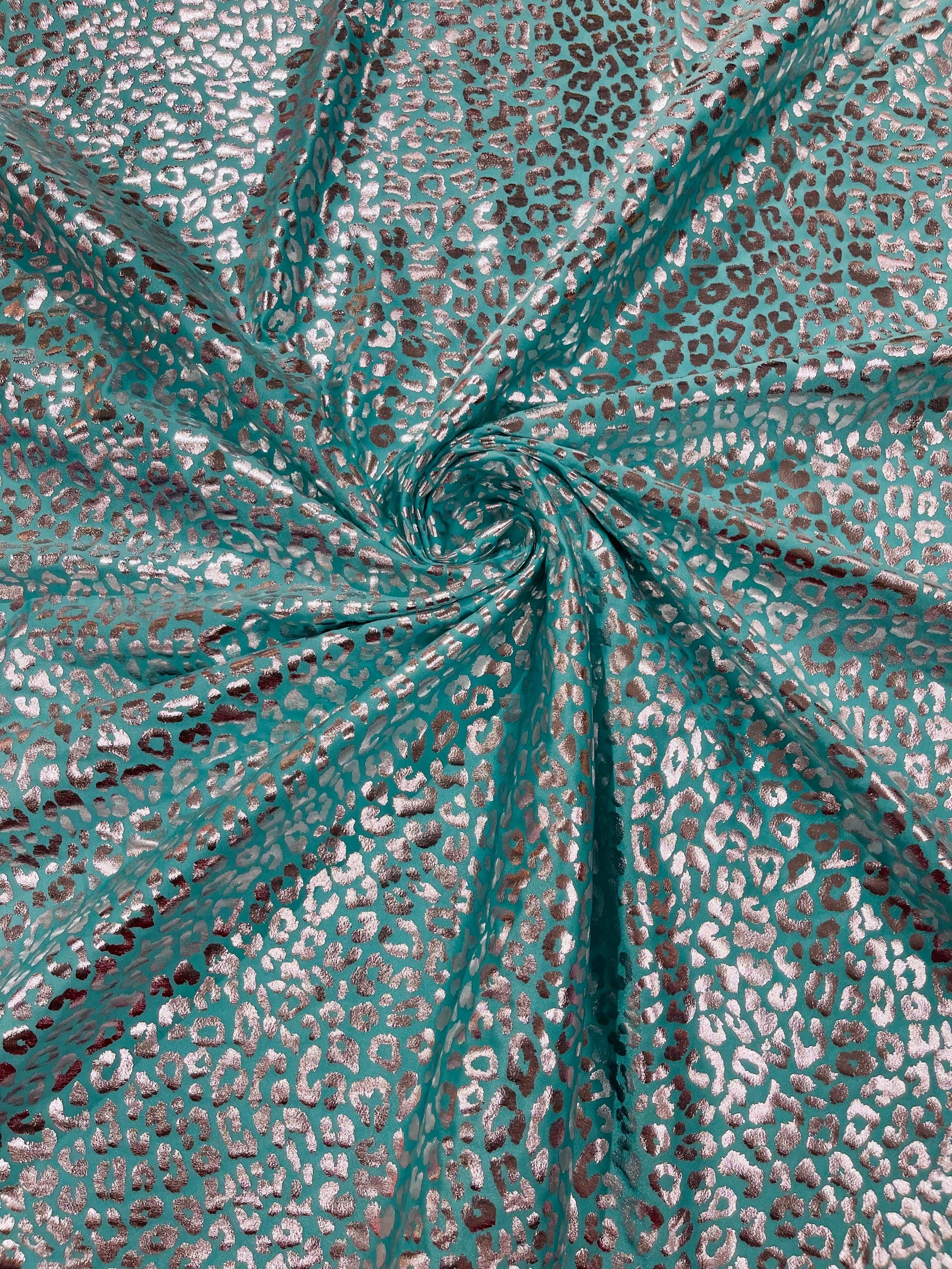 Cheetah Design Nylon Spandex Hologram Metallic, Print Leopard Foil 4 Way Stretch 58/60” Sold By The Yard