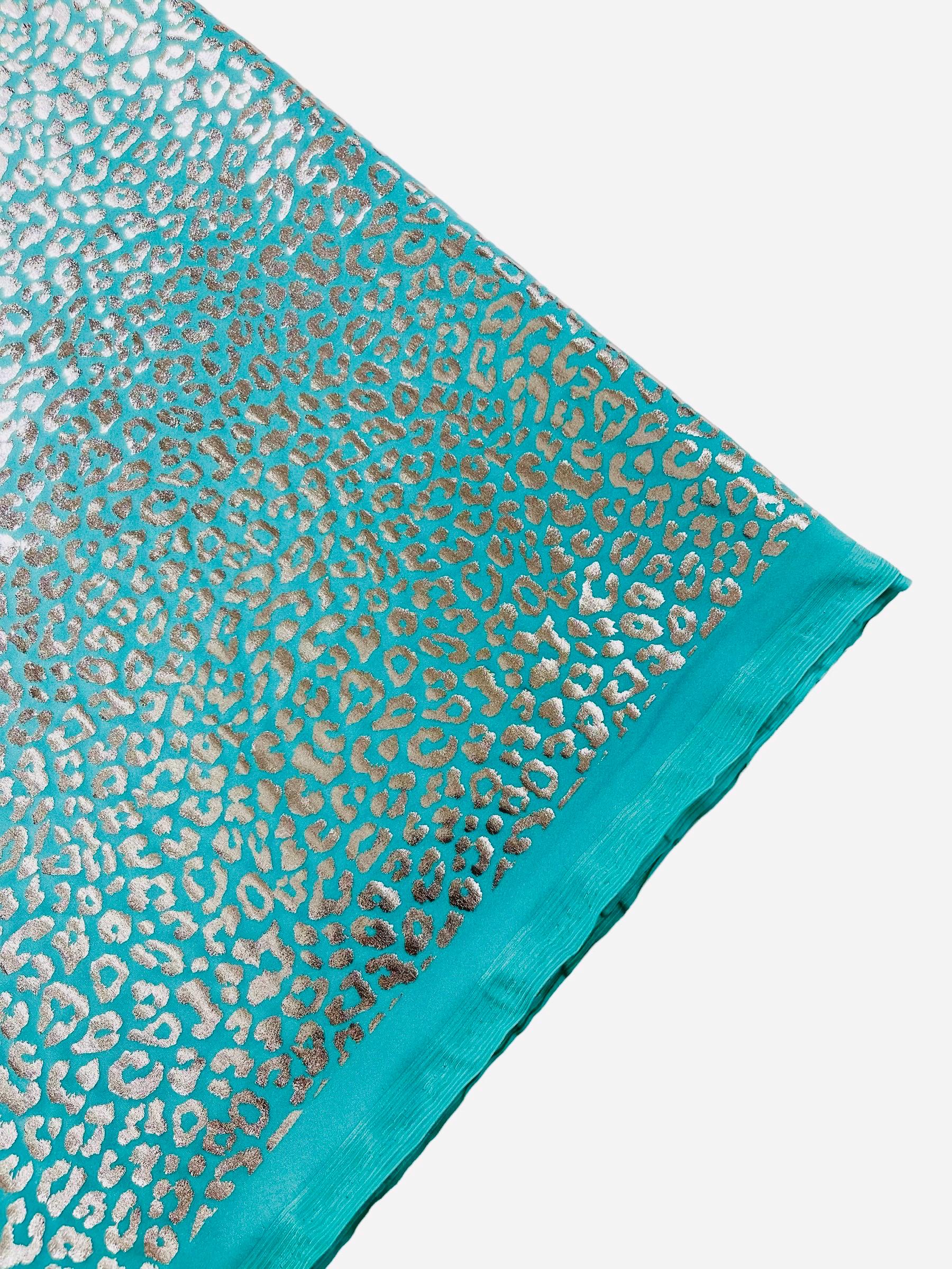 Blue/Silver Metallic Leopard Print Nylon Spandex Fabric, 4 Way Stretch