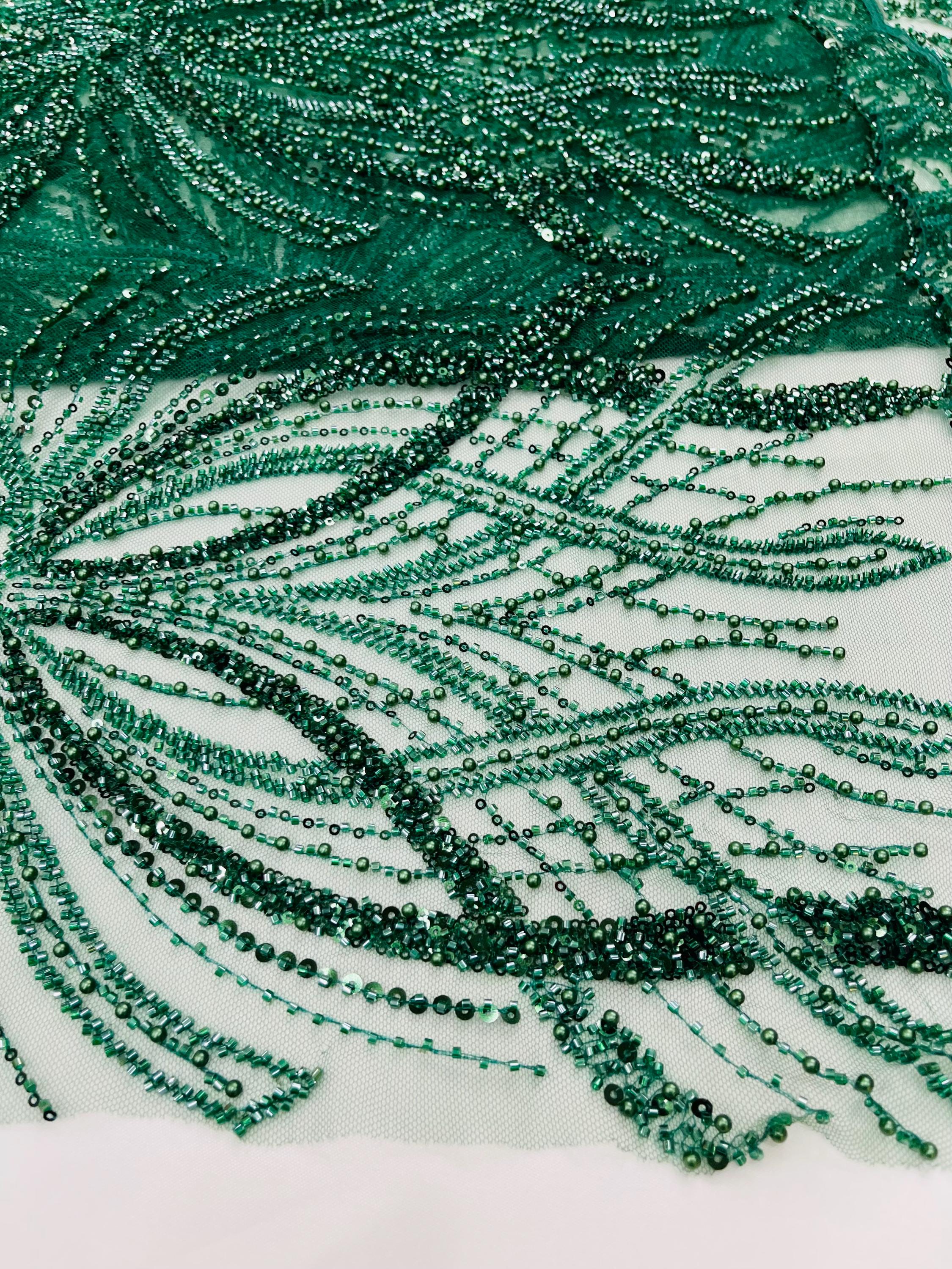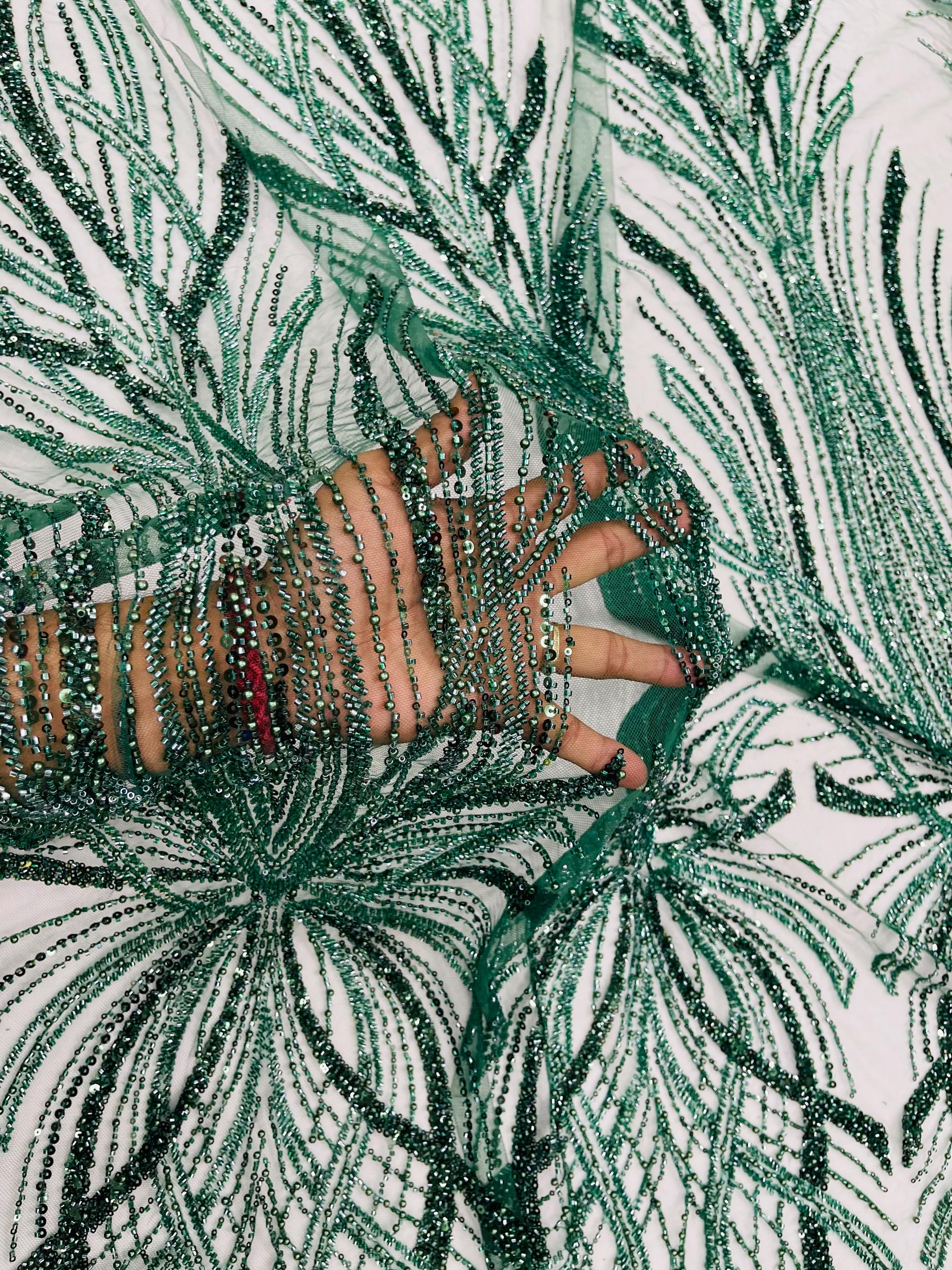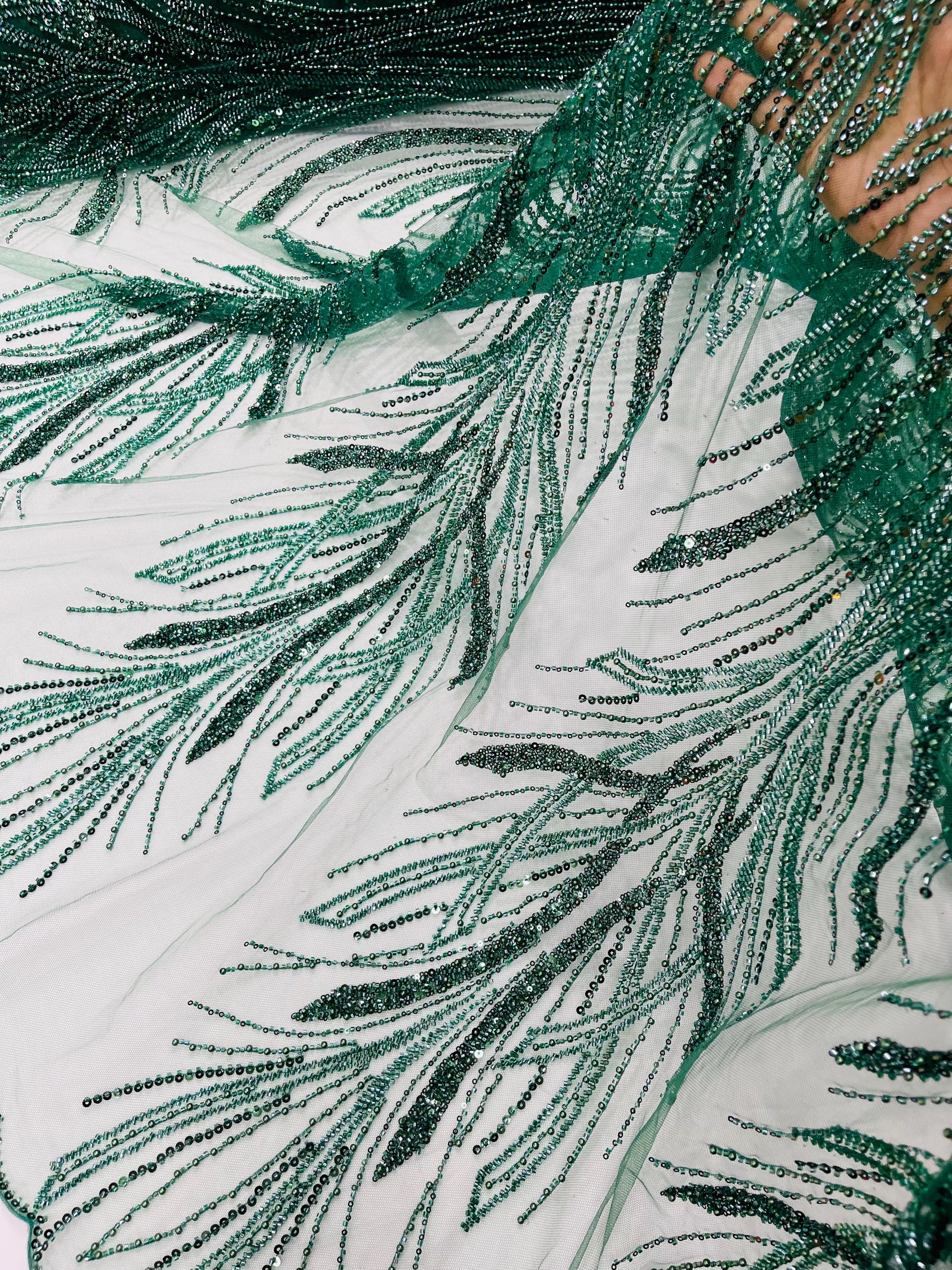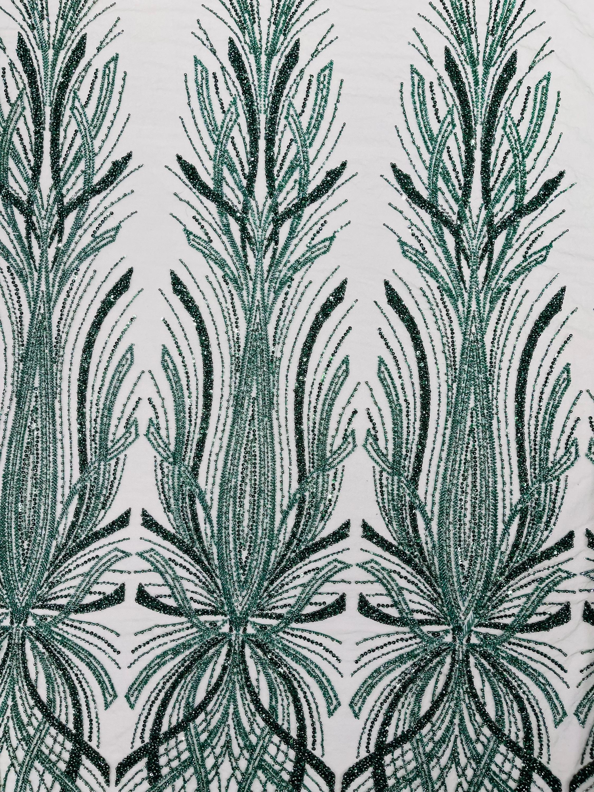 The beautiful design includes embroidered Flower patterns with beads across a mesh fabric of great quality. It has a beautiful border on both ends. This lace can be used for dresses, tablecloths, nightgowns, prom gowns, bridesmaid gowns, wedding gowns, table covers/runners, pillows, home /event decorations, and much more.