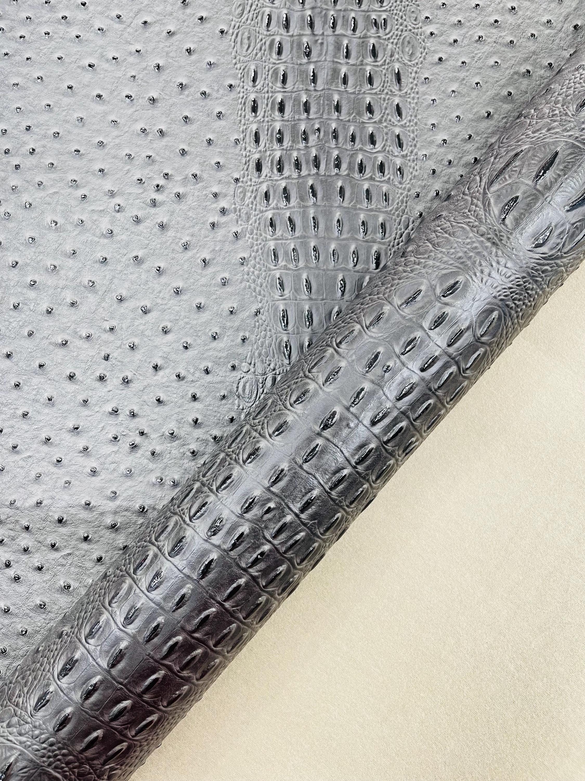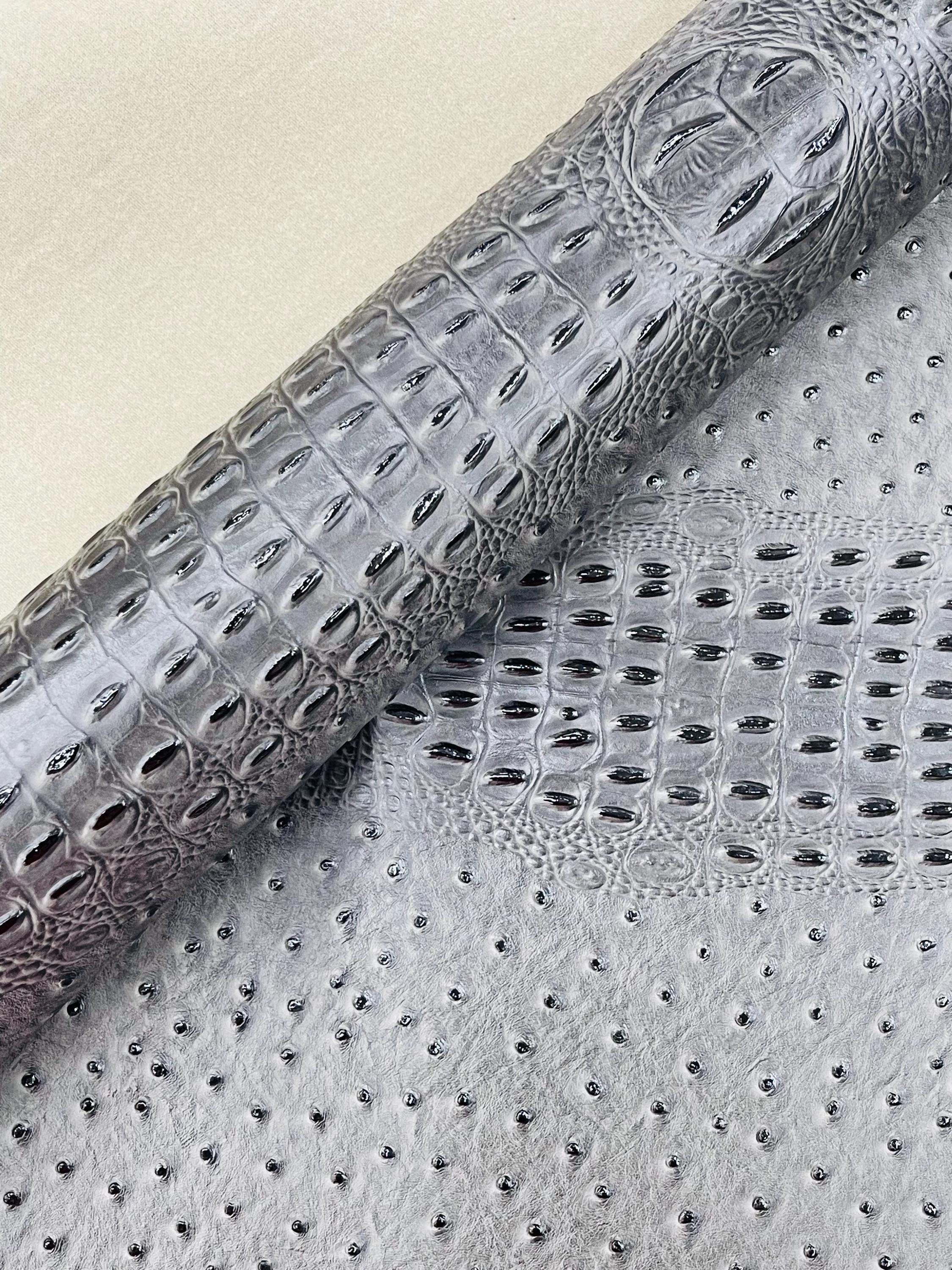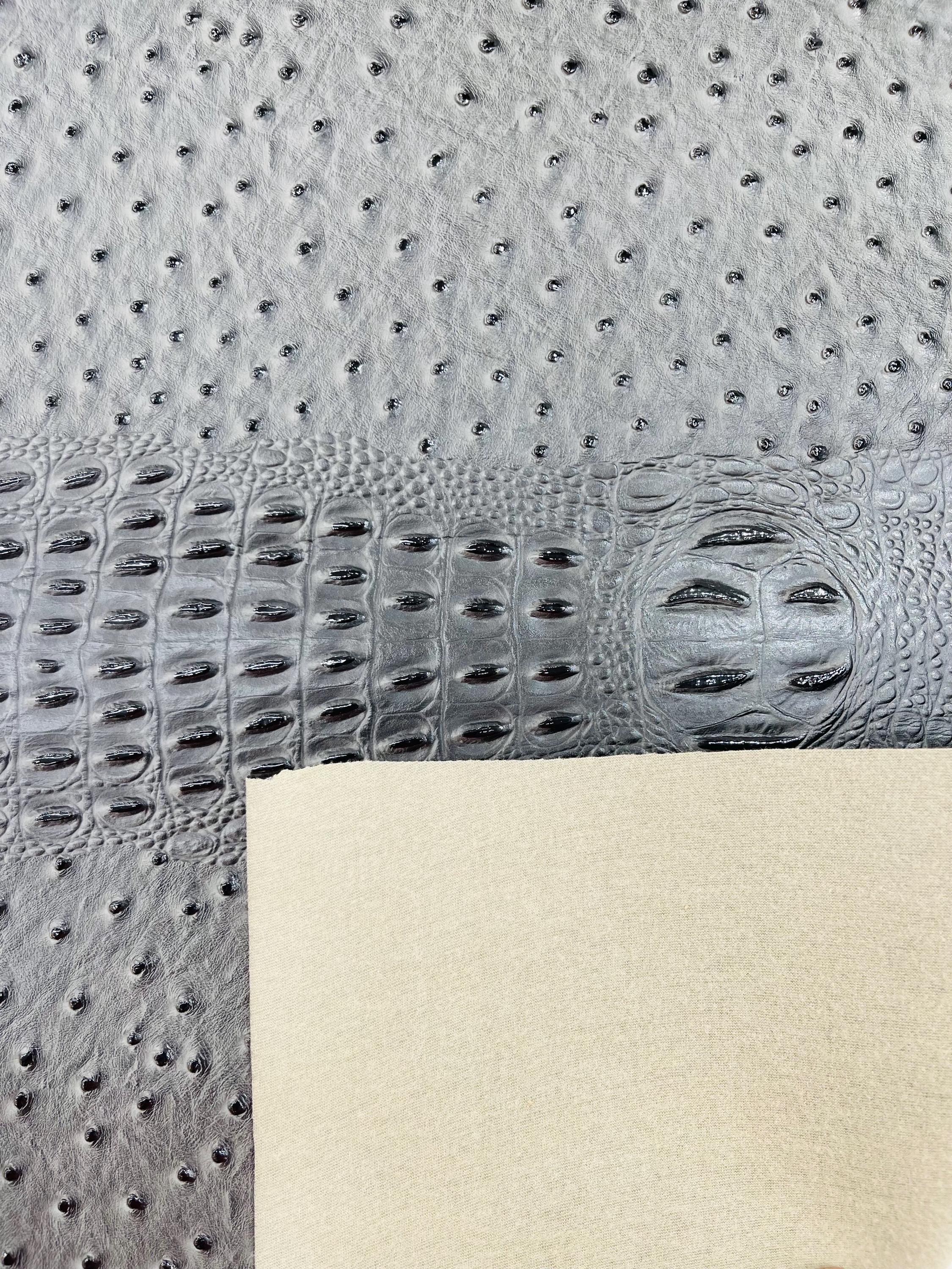 This Ostrich Gator Fabric Vinyl feels like the real leather but it's made of pvc. This Crocodile Fabric is embossed and it looks exotic and it has a great texture.
