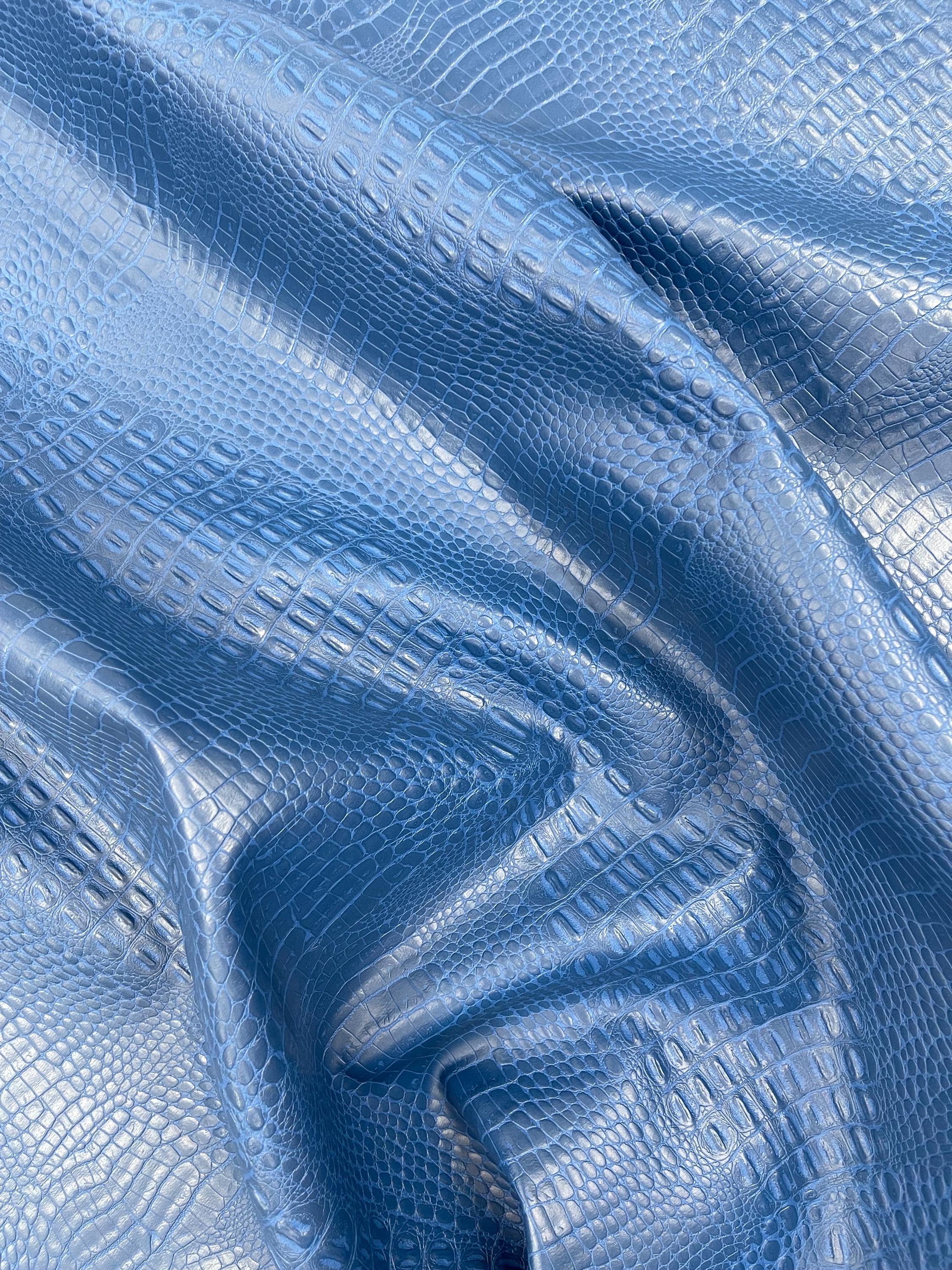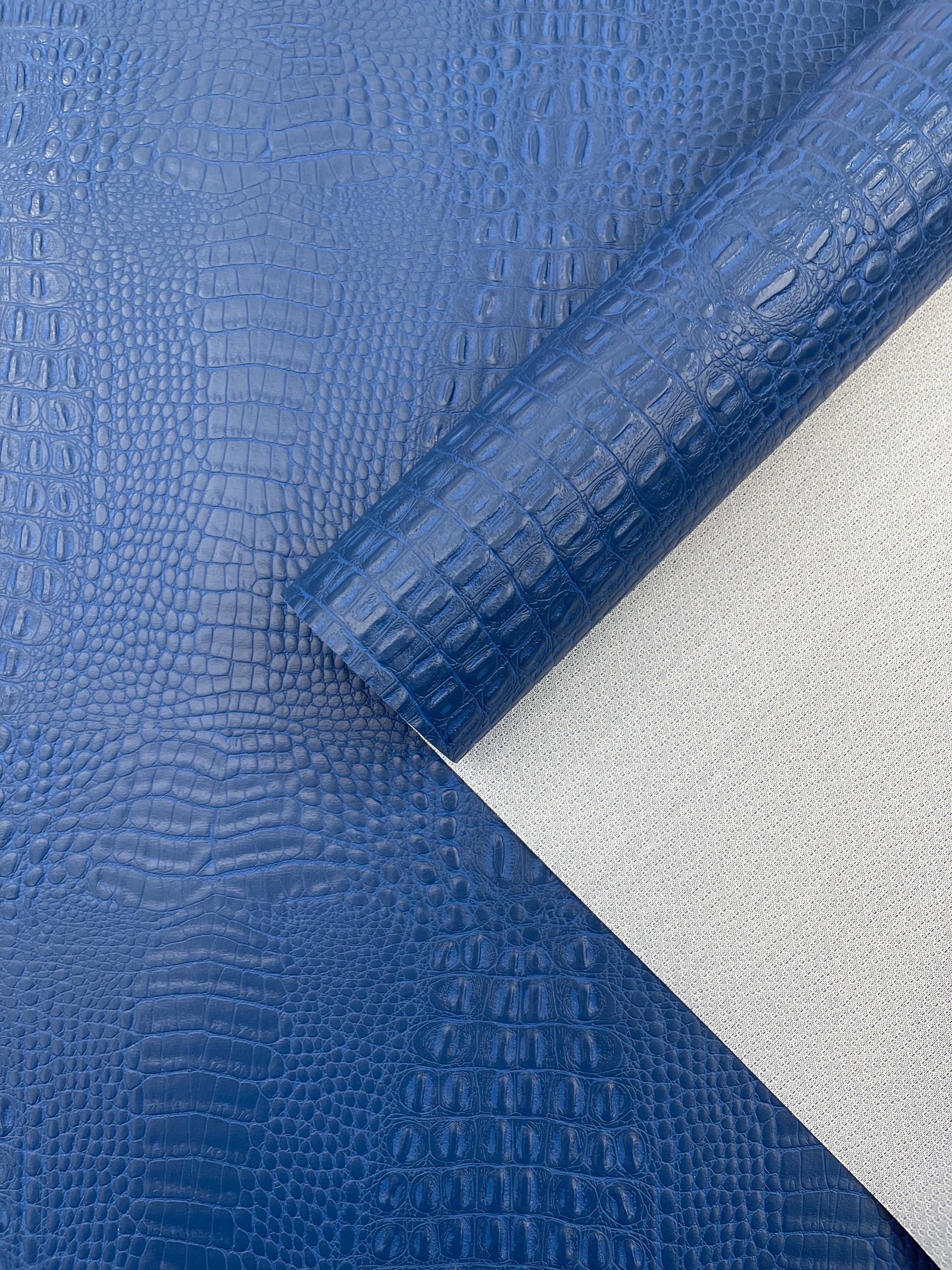 Royal Blue Crocodile Marine Vinyl Fabric: Waterproof Outdoor Upholstery