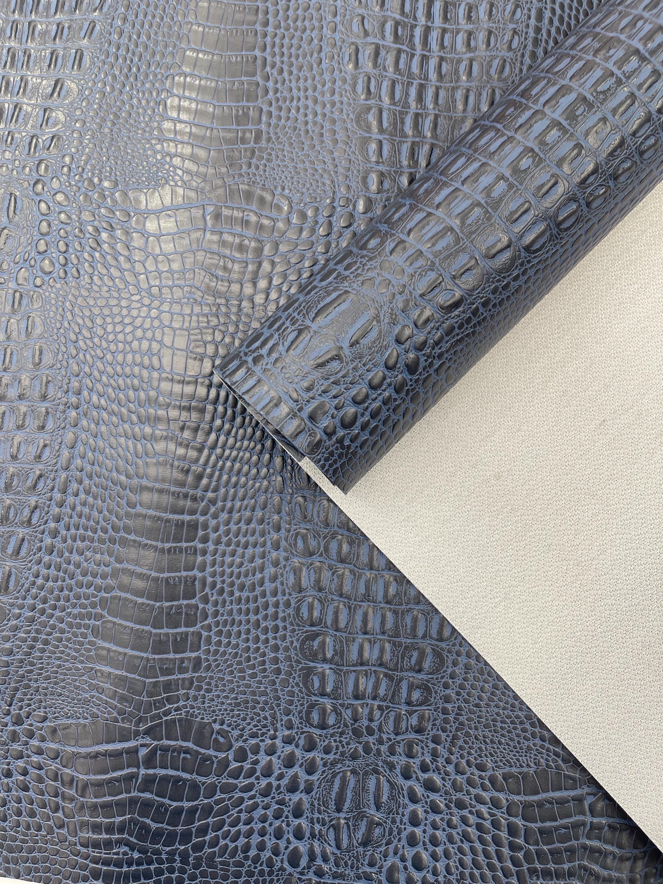 Navy Blue Crocodile Marine Vinyl Fabric: Waterproof Outdoor Upholstery