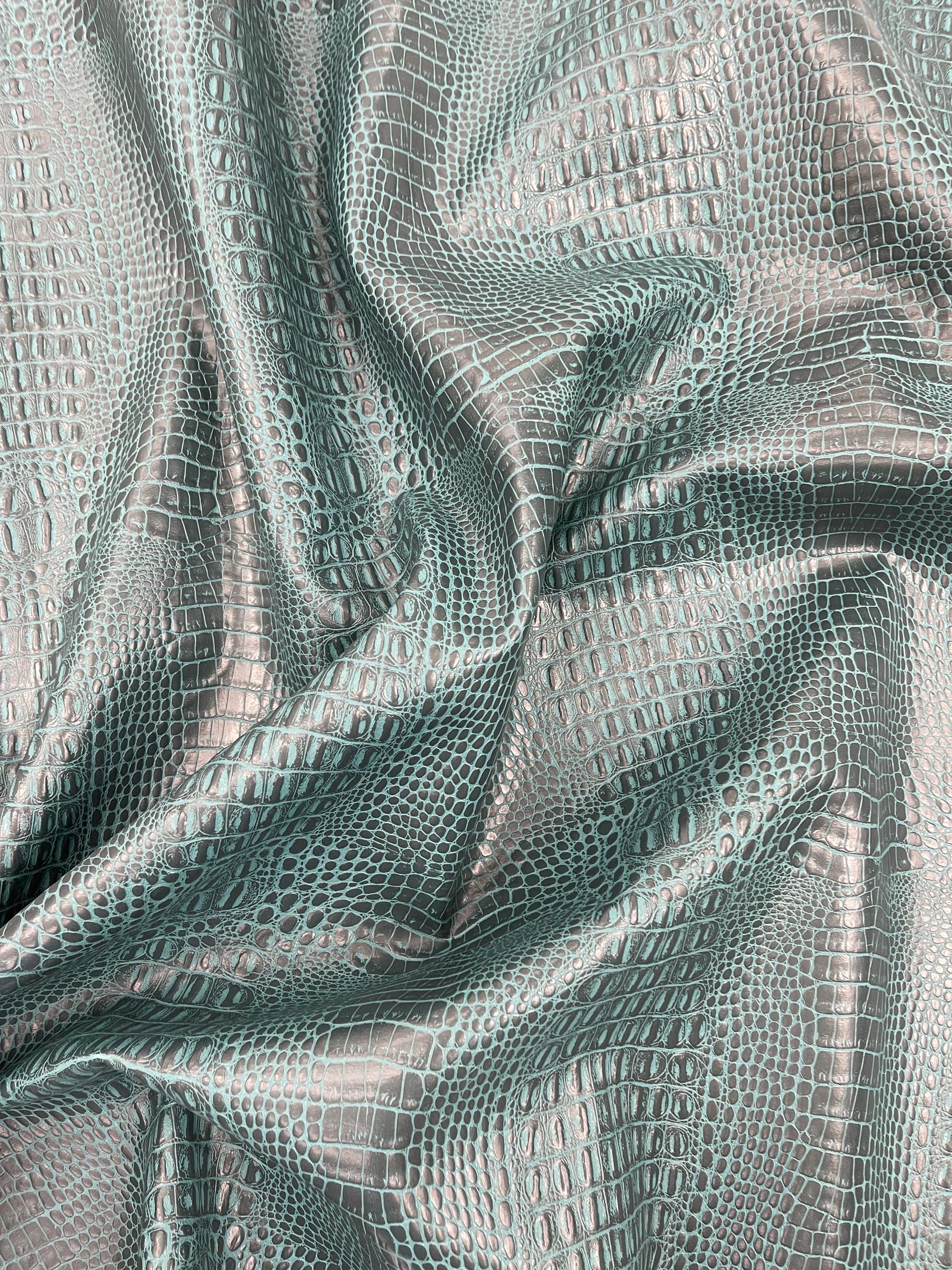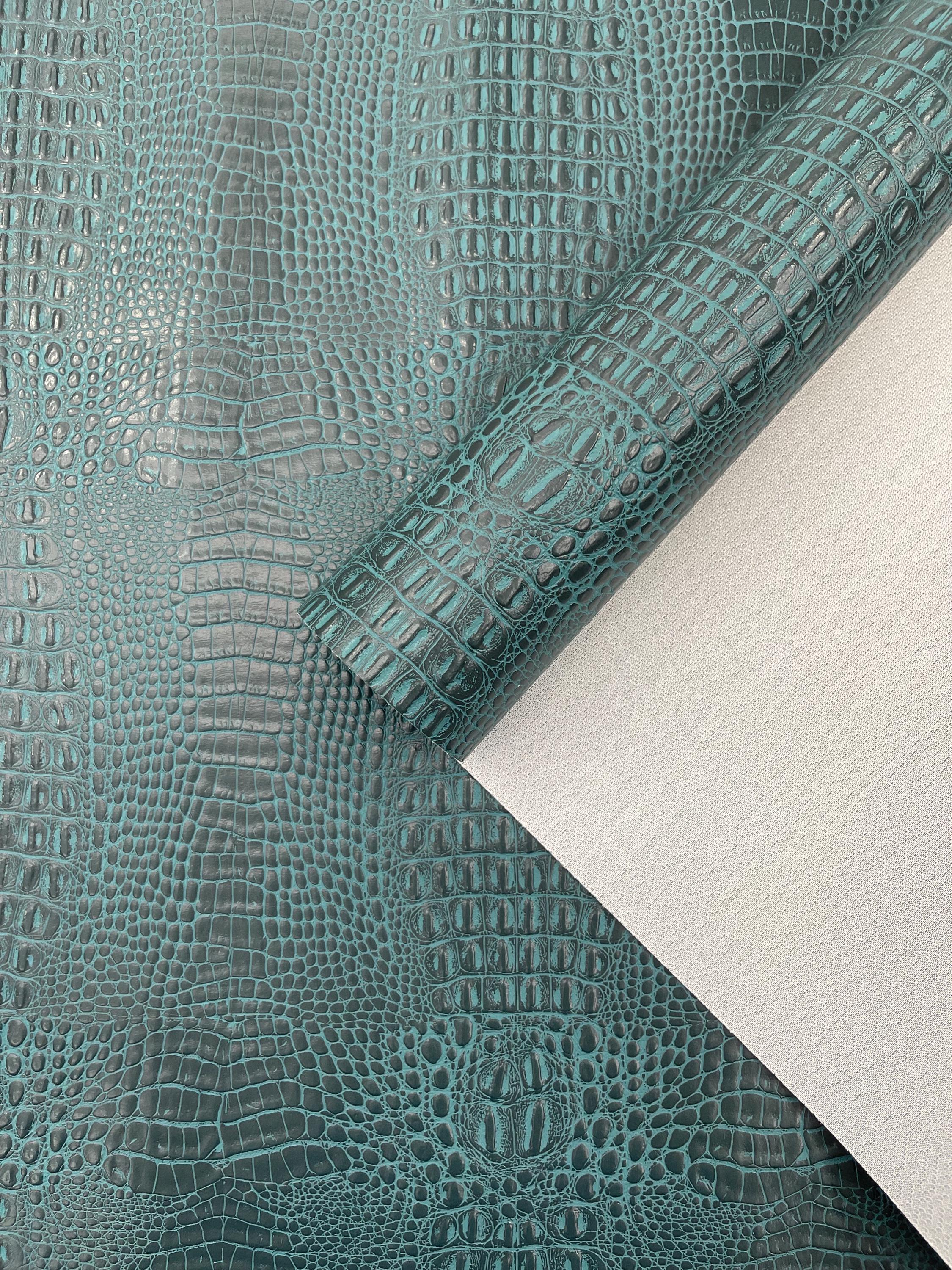 Teal Crocodile Marine Vinyl Fabric: Waterproof, Anti-Fungal Upholstery