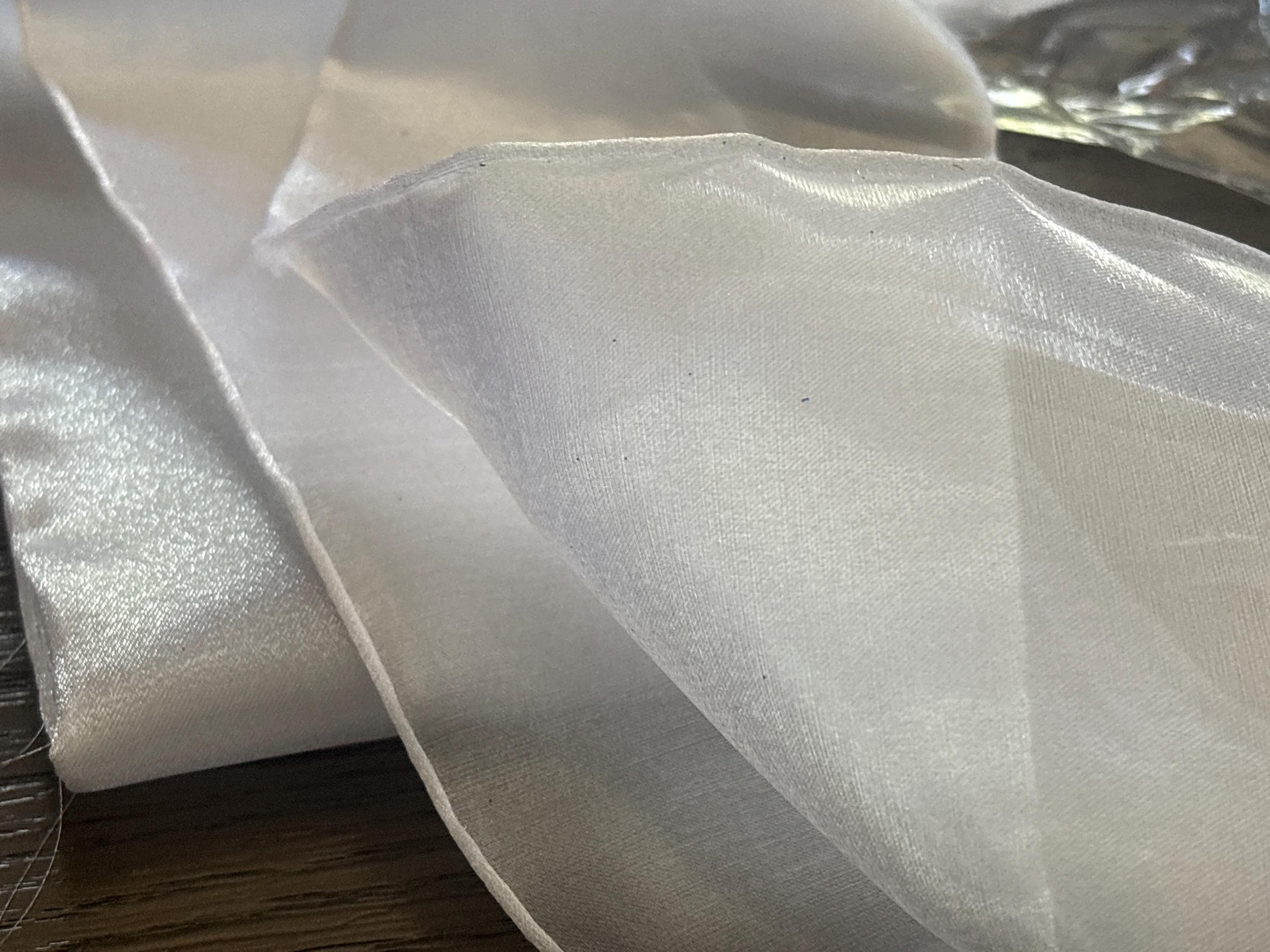 Glossy Organza, also known as liquid Organza, is a luxurious and lightweight fabric characterized by its smooth, fluid drape and subtle sheen. This semi-sheer material combines the delicate, airy qualities of traditional Organza with a glossy finish, giving it an elegant and sophisticated appearance. It is made from 100% polyester , but has a very silky feel to it. The fabric has a soft, almost liquid-like feel, with a natural flow that makes it ideal for creating flowing dresses, evening gowns, scarves, and other garments where movement and fluidity are desired. glossy Organza is popular in high-fashion and formal wear due to its ability to catch and reflect light beautifully, adding a touch of glamour to any design. Its versatility allows for both structured and loose silhouettes, making it suitable for a wide range of styles.
