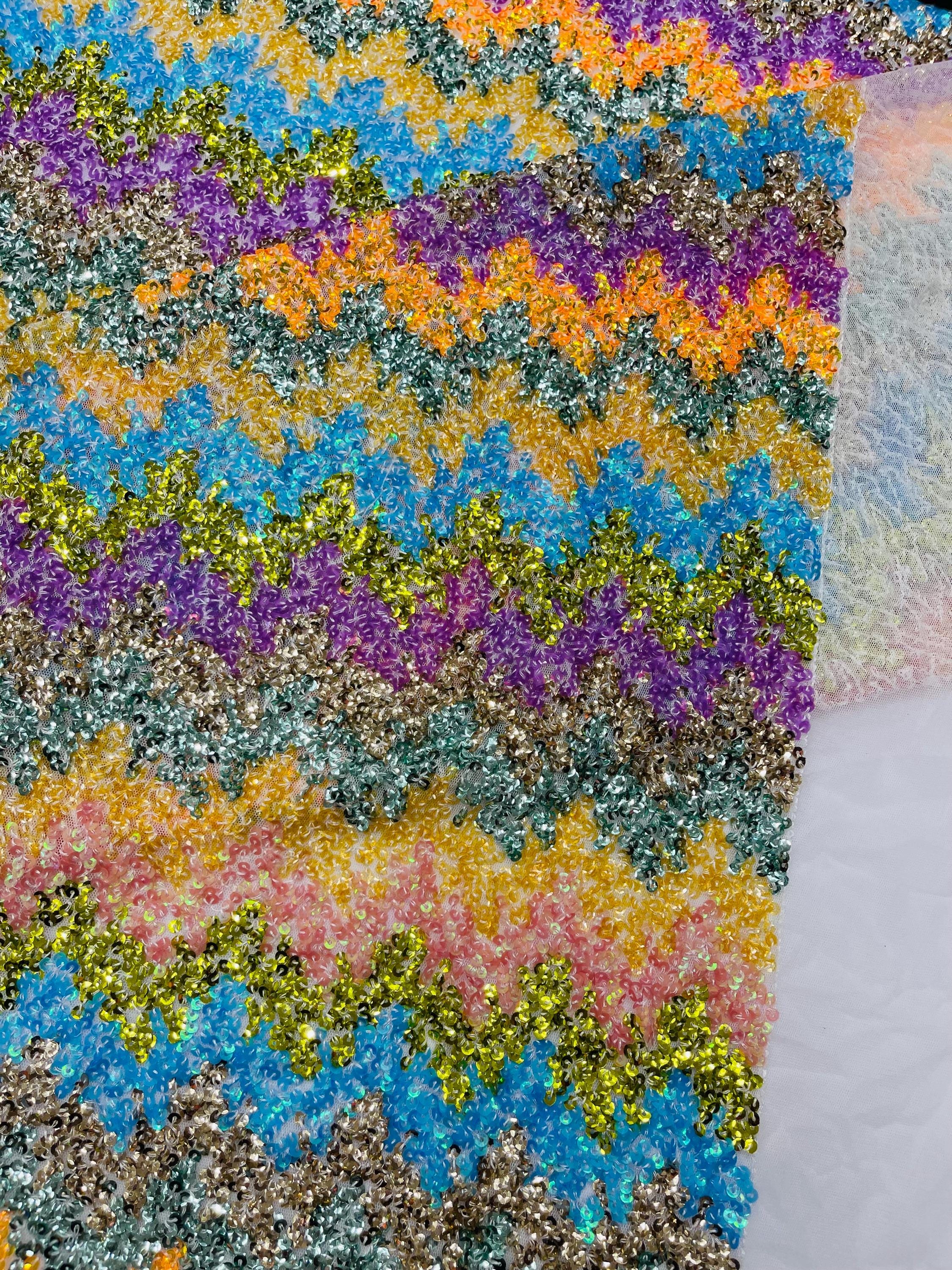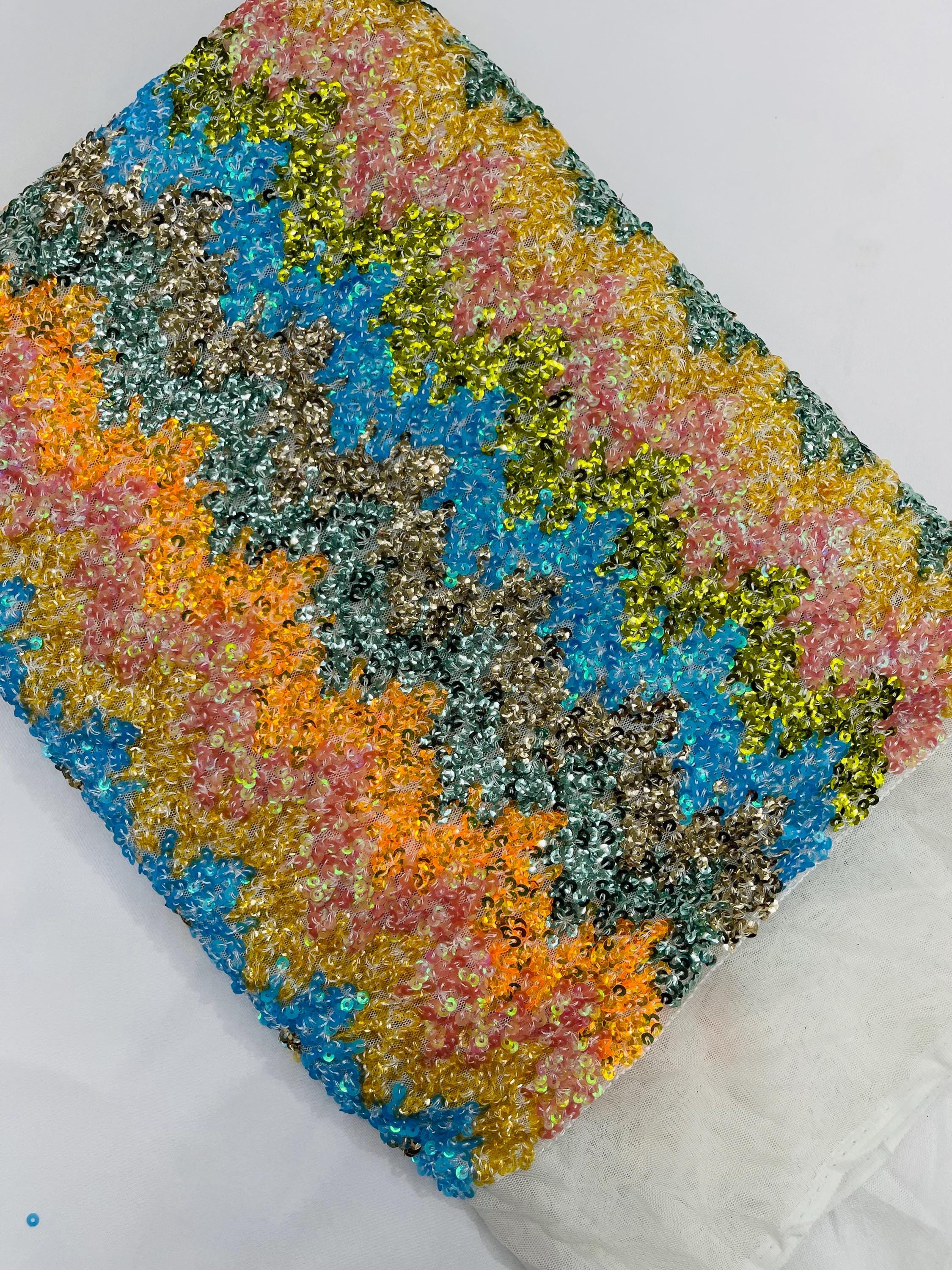 The sequins has especial and extraordinary design on the Mesh . It is super elegant and classy, The royalty design is embroidered with sequins on a mesh and can be used for dresses, tablecloths, backdrops, night gowns, skirts, prom dresses, wedding dresses, runners for tables, decorations and much more.