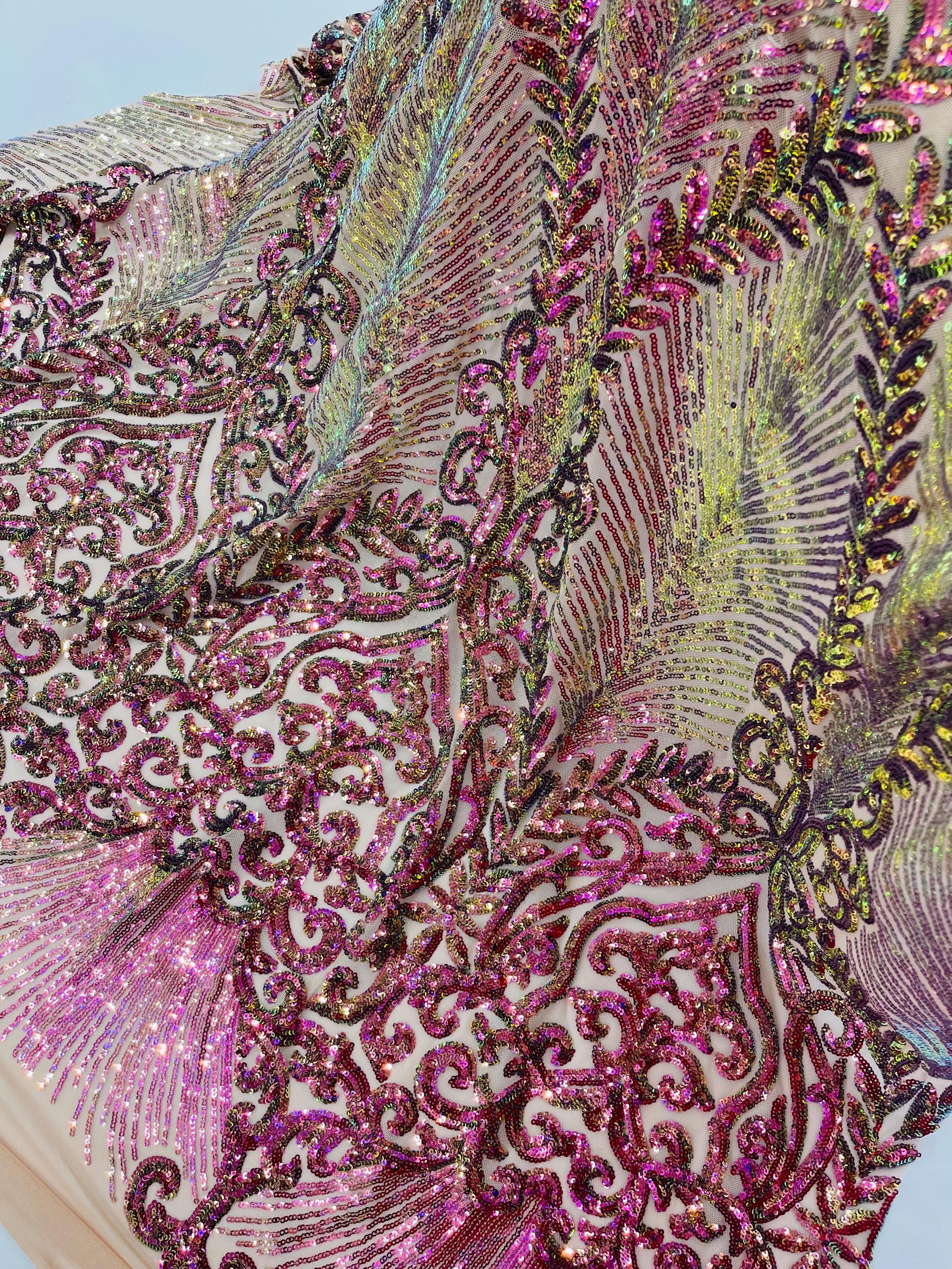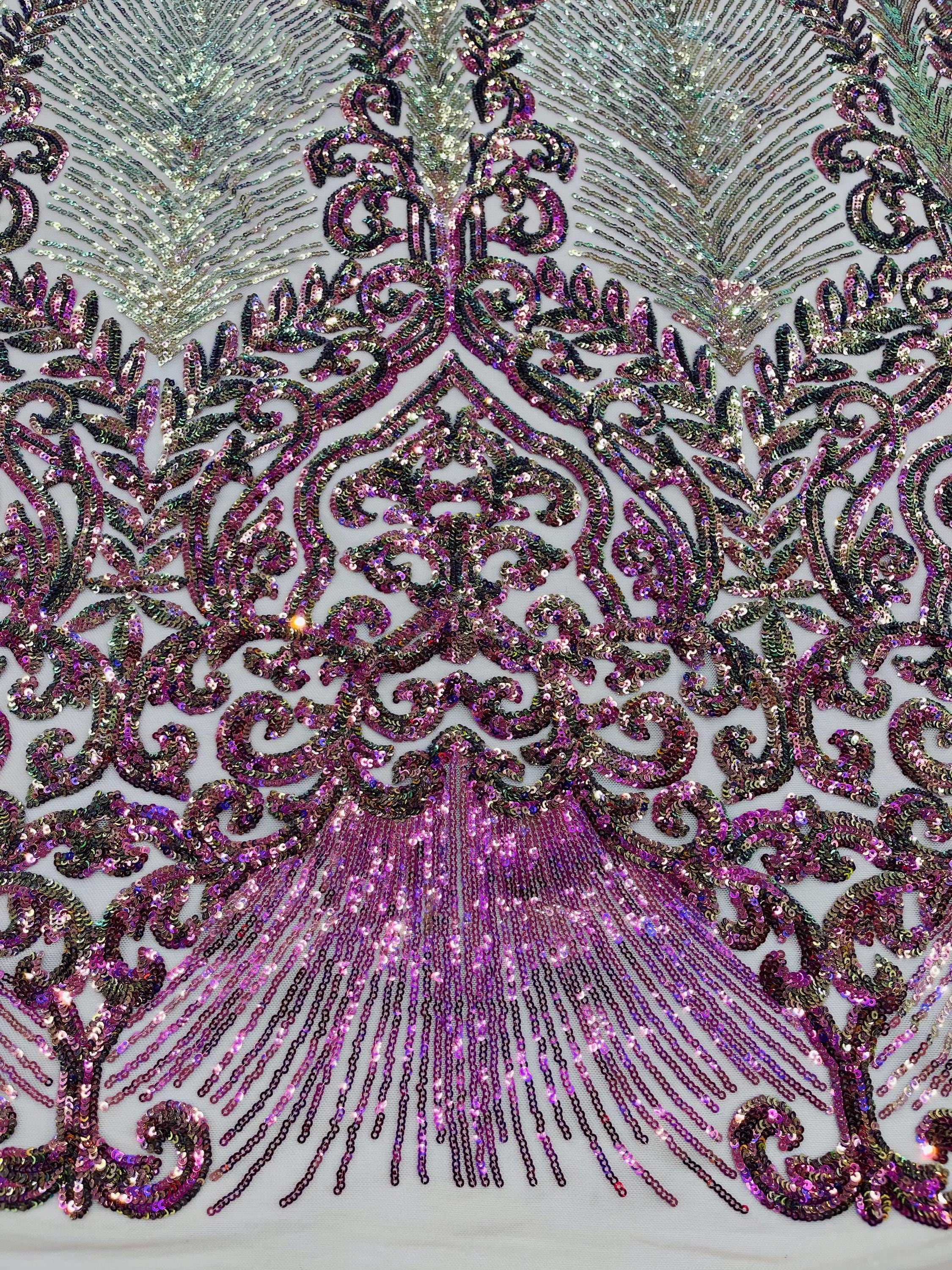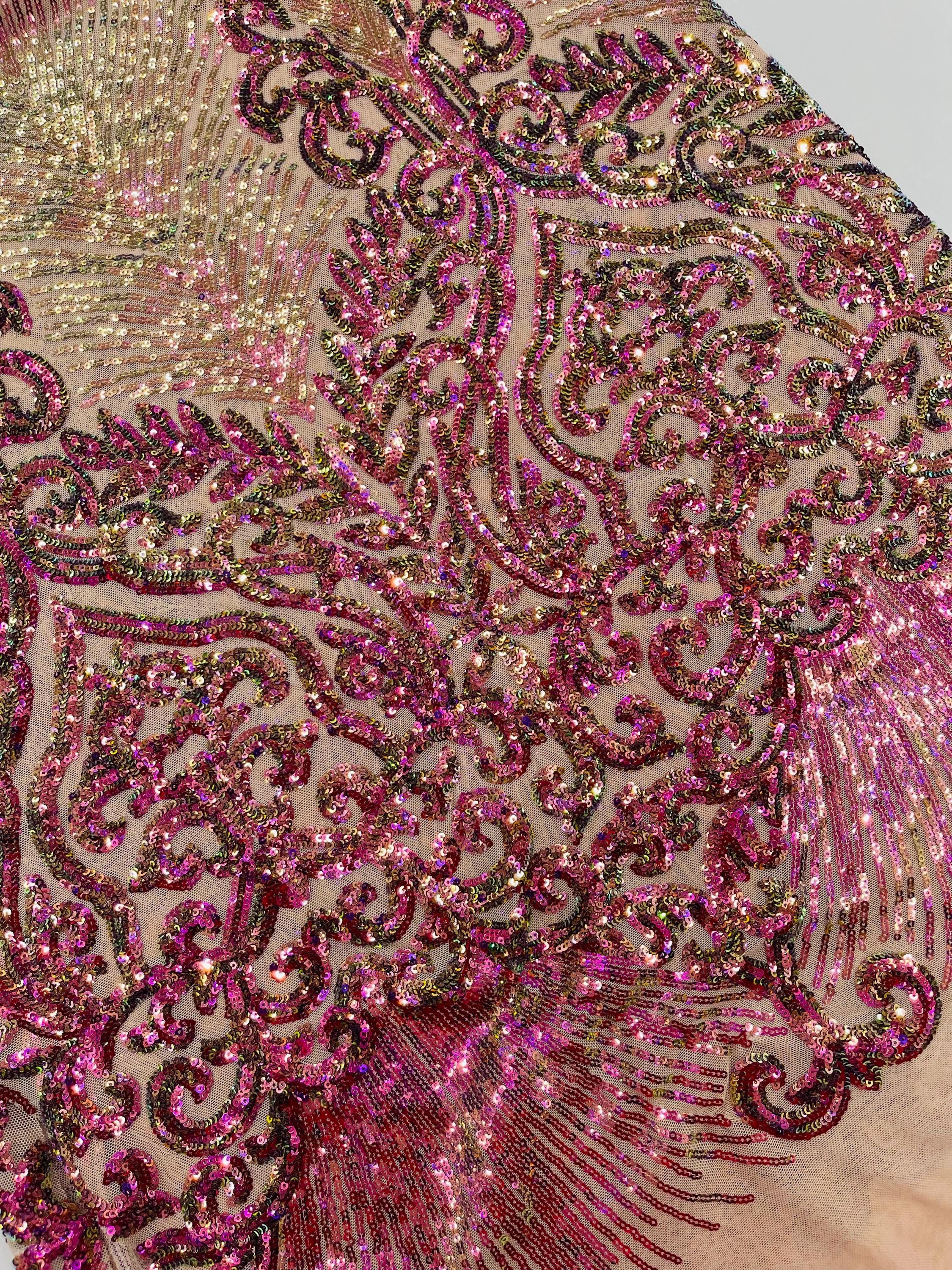 The sequins has especial and extraordinary design on the Mesh . It is super elegant and classy, The royalty design is embroidered with sequins on a mesh and can be used for dresses, tablecloths, backdrops, night gowns, skirts, prom dresses, wedding dresses, runners for tables, decorations and much more.