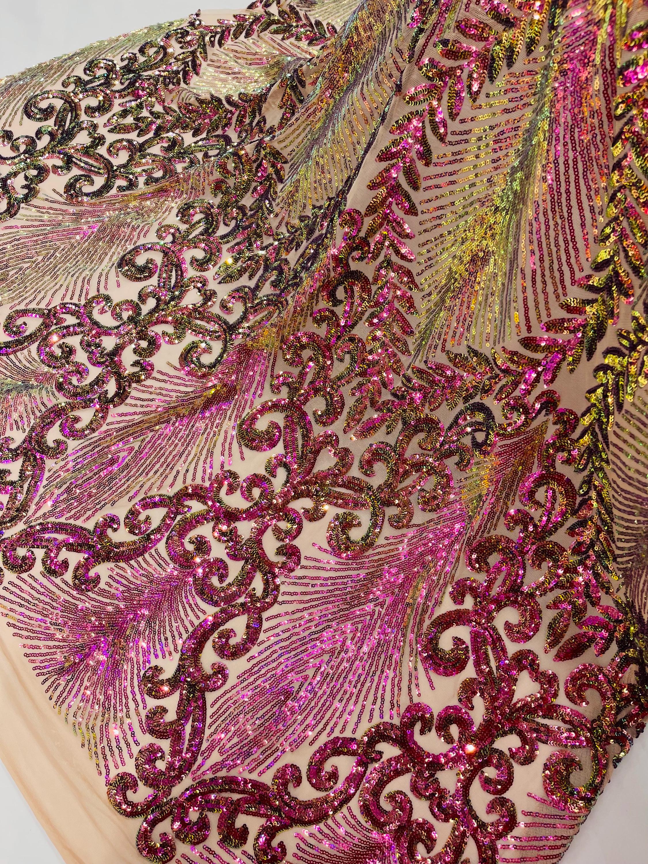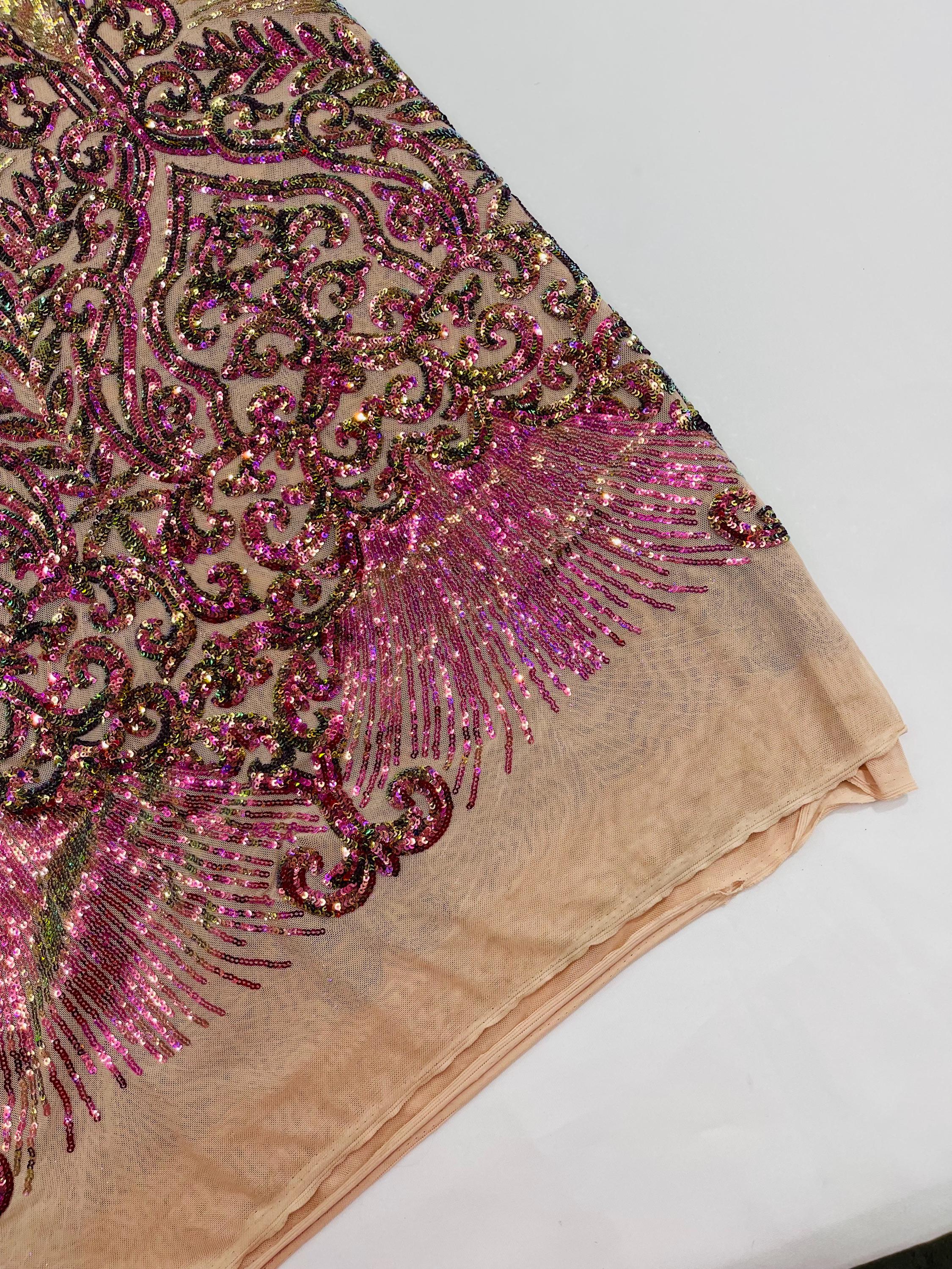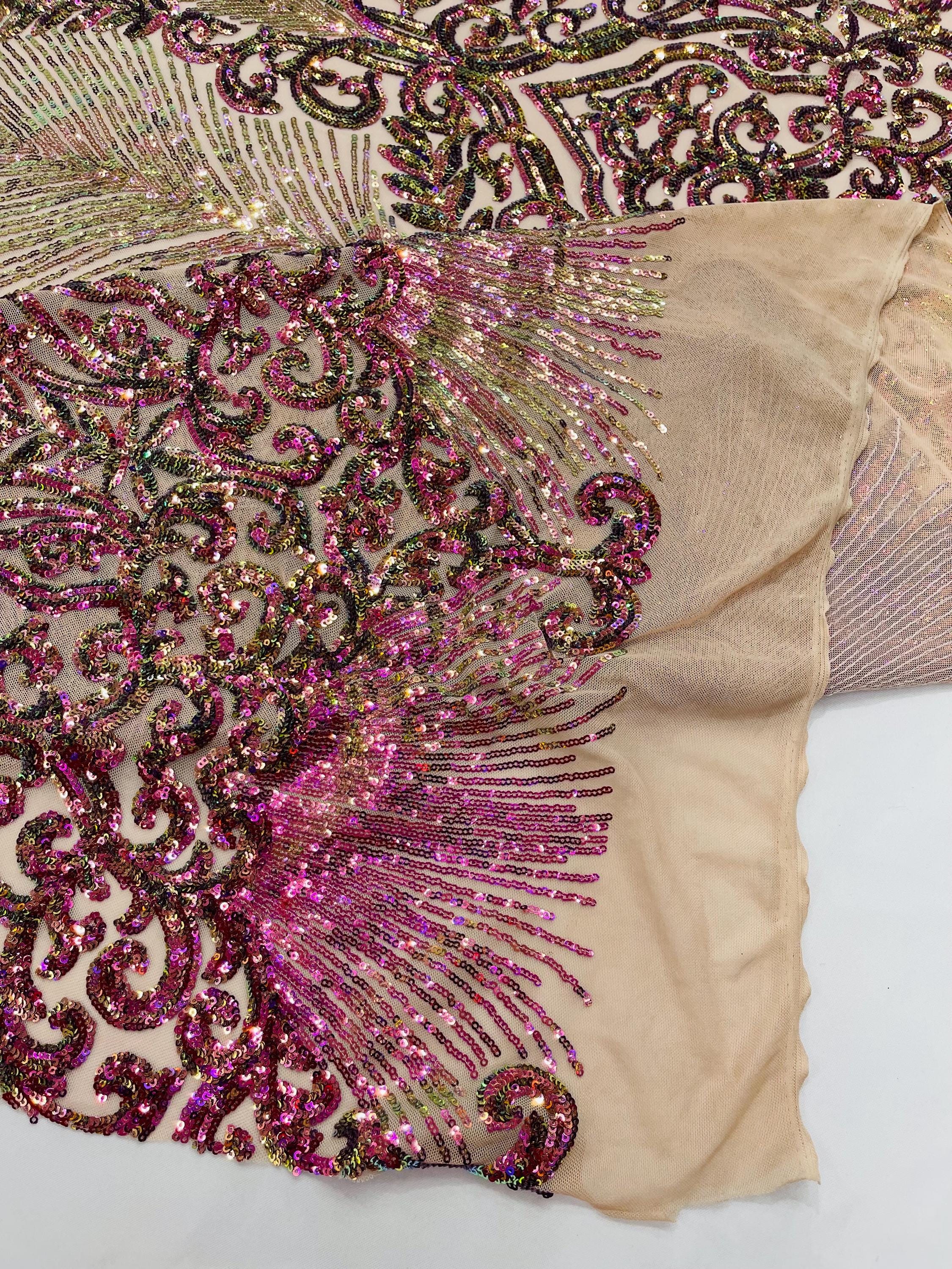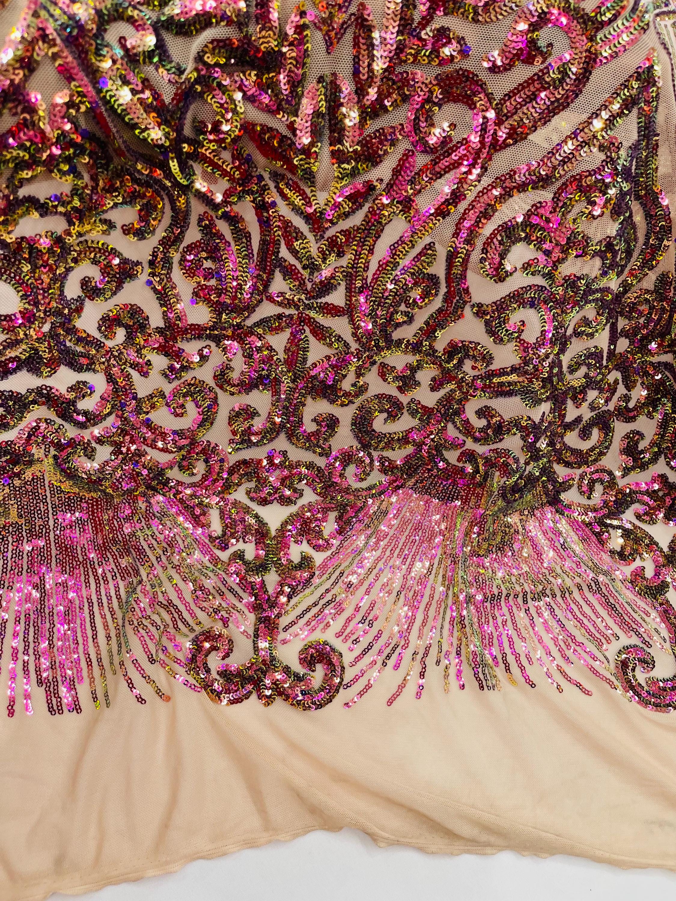 The sequins has especial and extraordinary design on the Mesh . It is super elegant and classy, The royalty design is embroidered with sequins on a mesh and can be used for dresses, tablecloths, backdrops, night gowns, skirts, prom dresses, wedding dresses, runners for tables, decorations and much more.