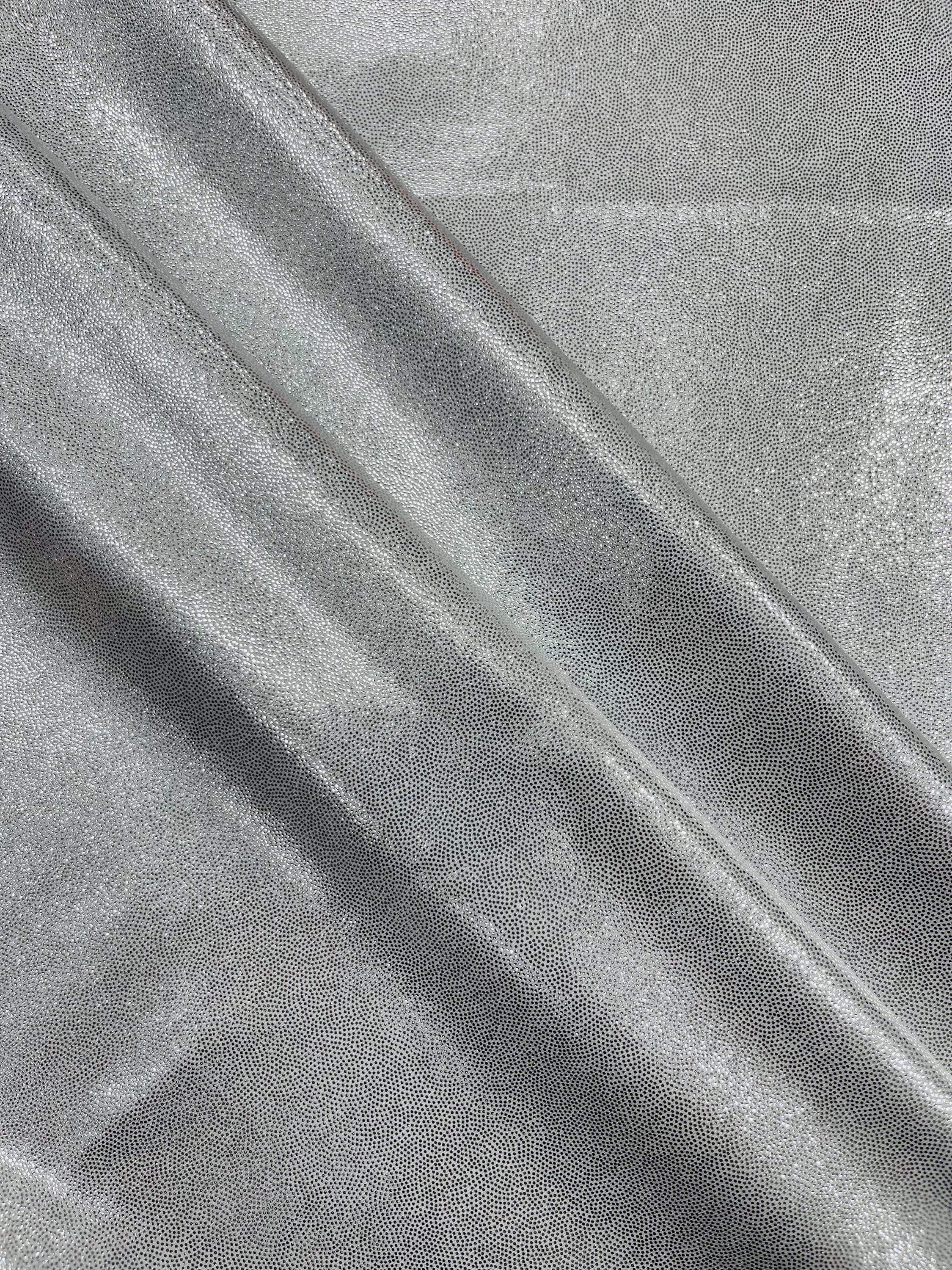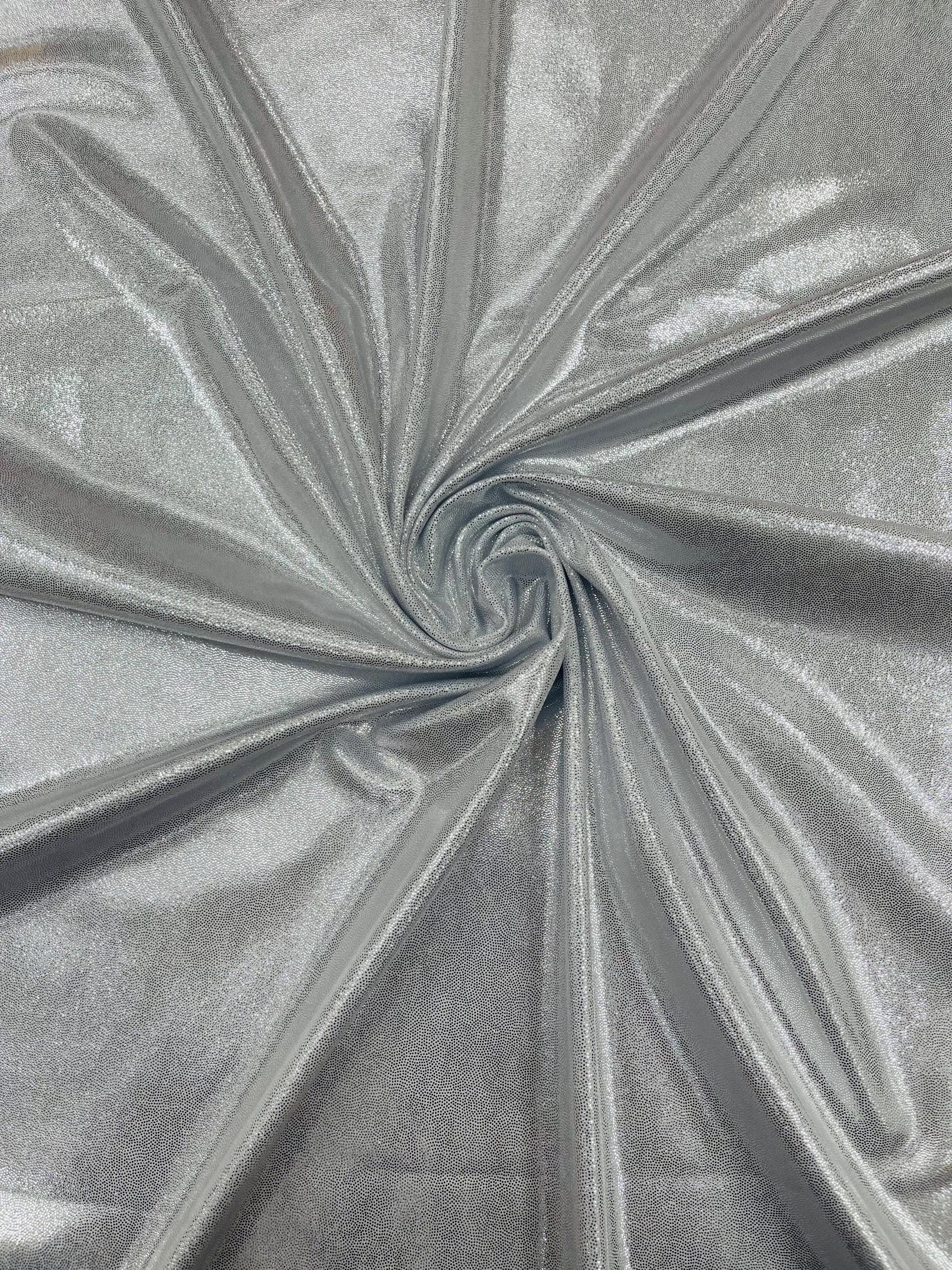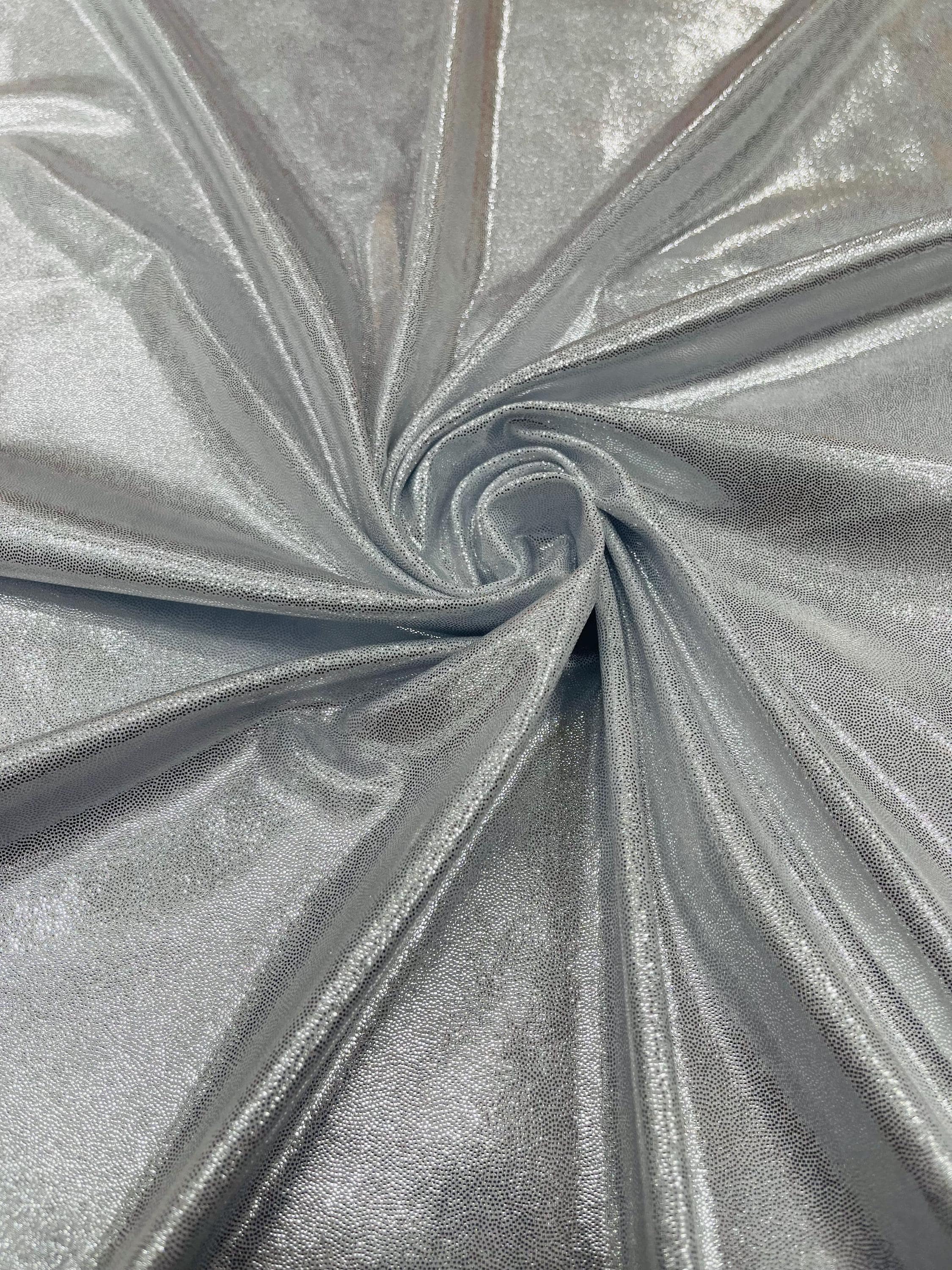 White Silver Foggy Foil all over Foil Metallic Spandex Fabric: Stretch Swimwear Costume 60" Wide