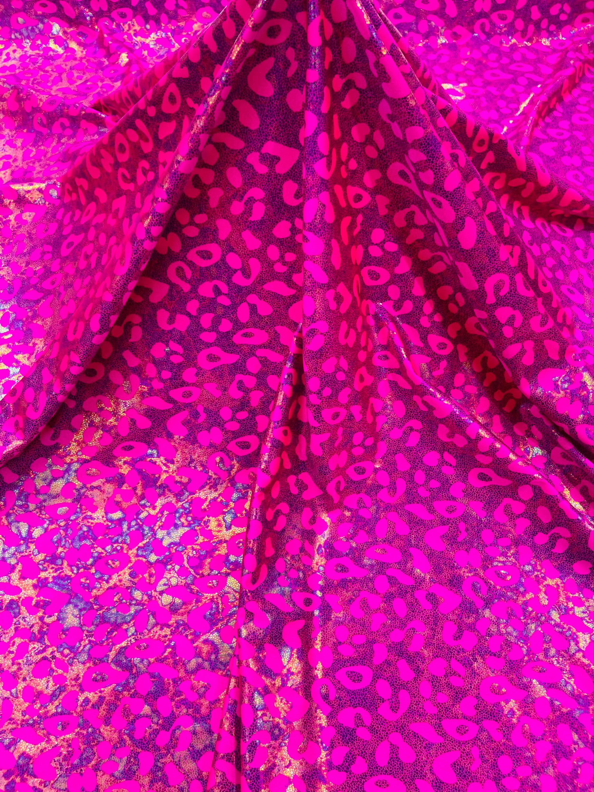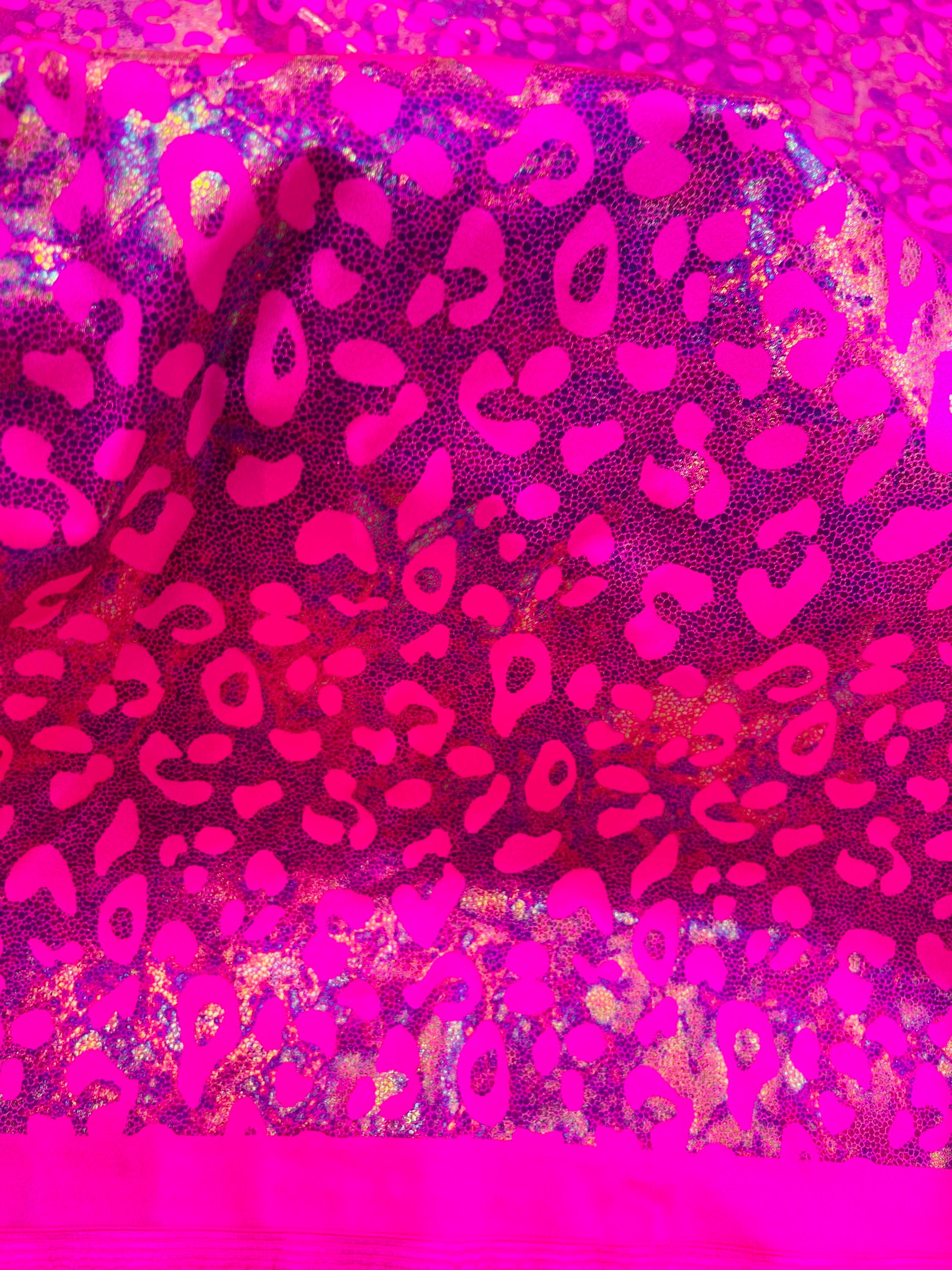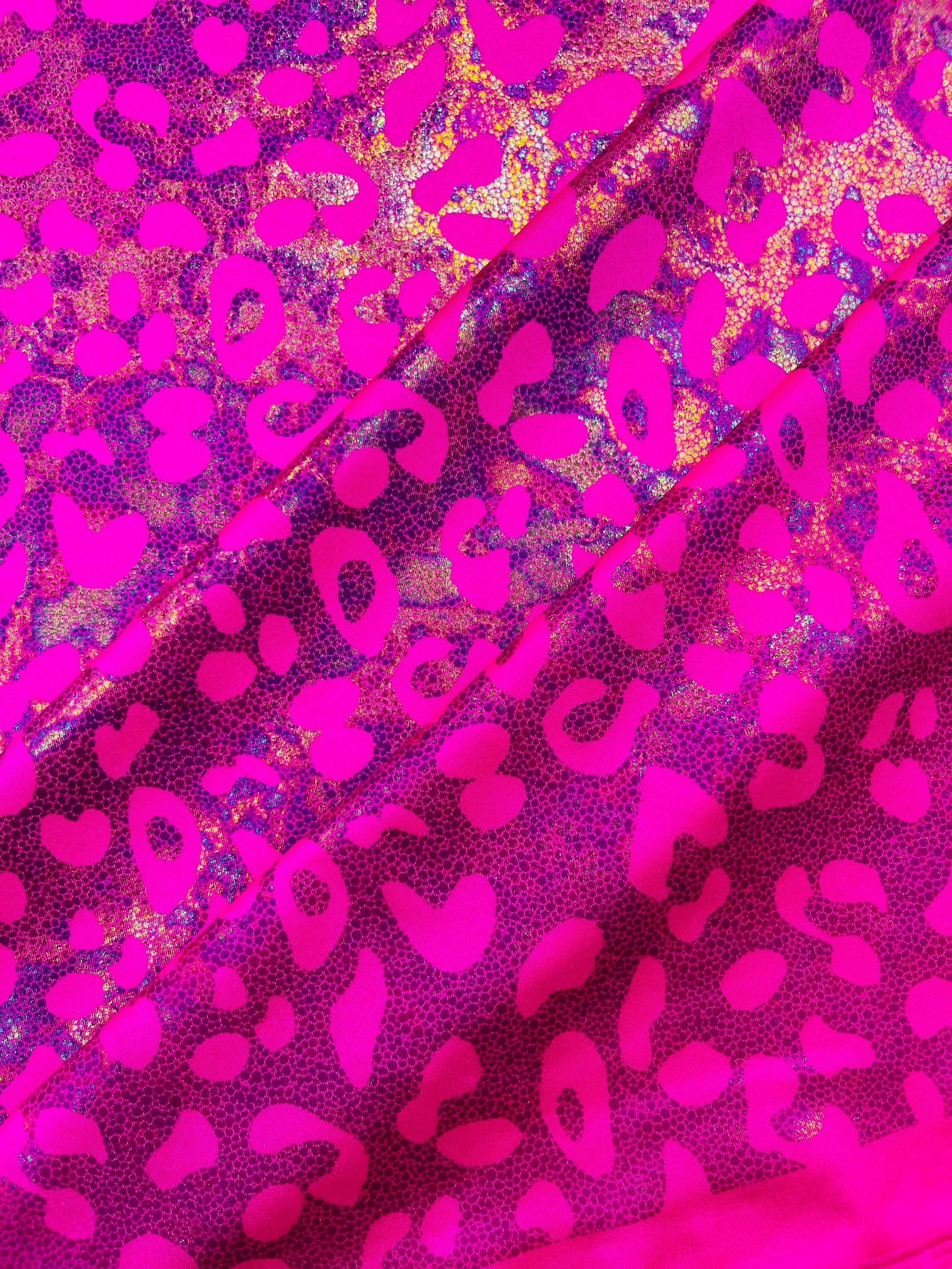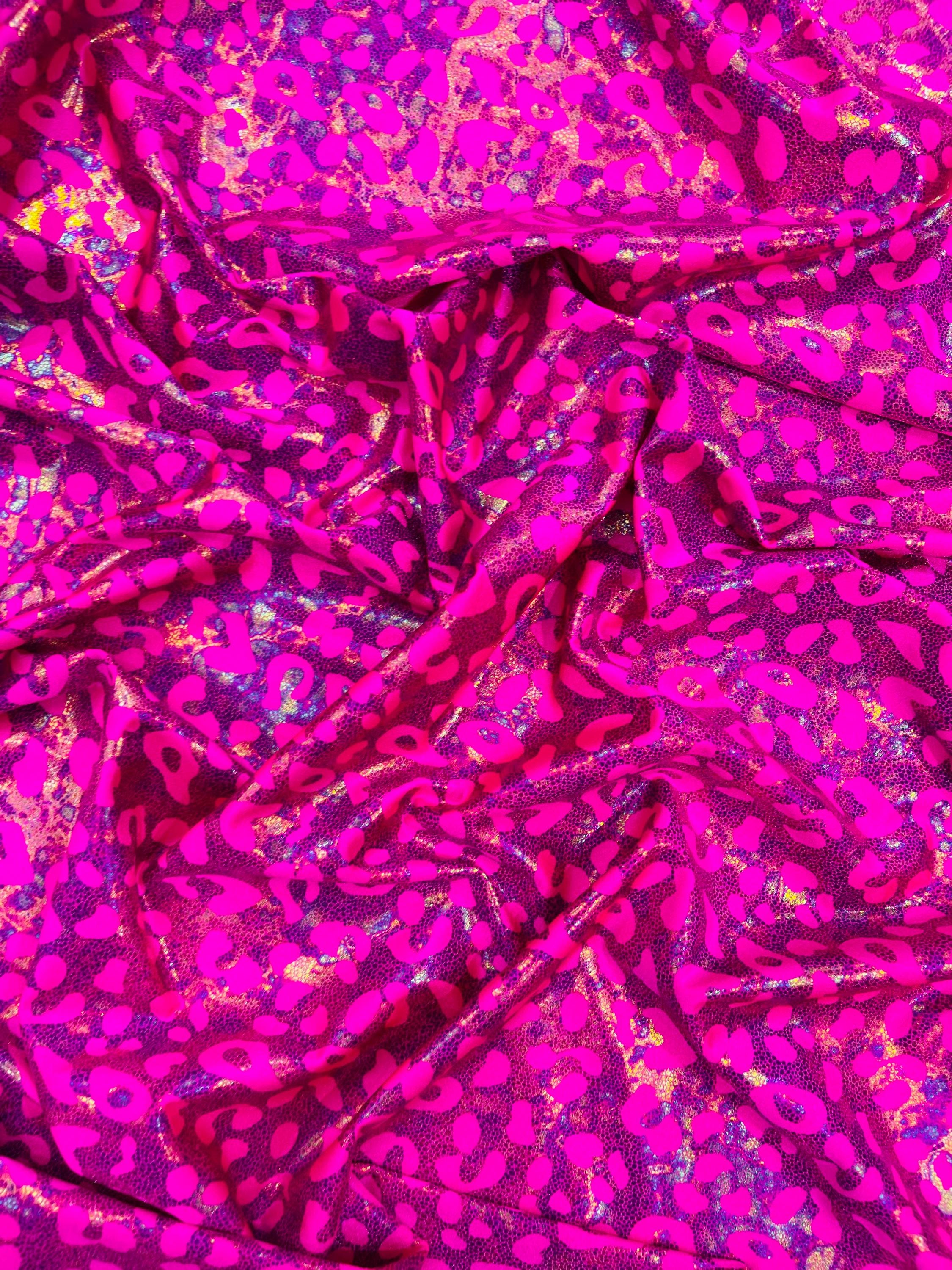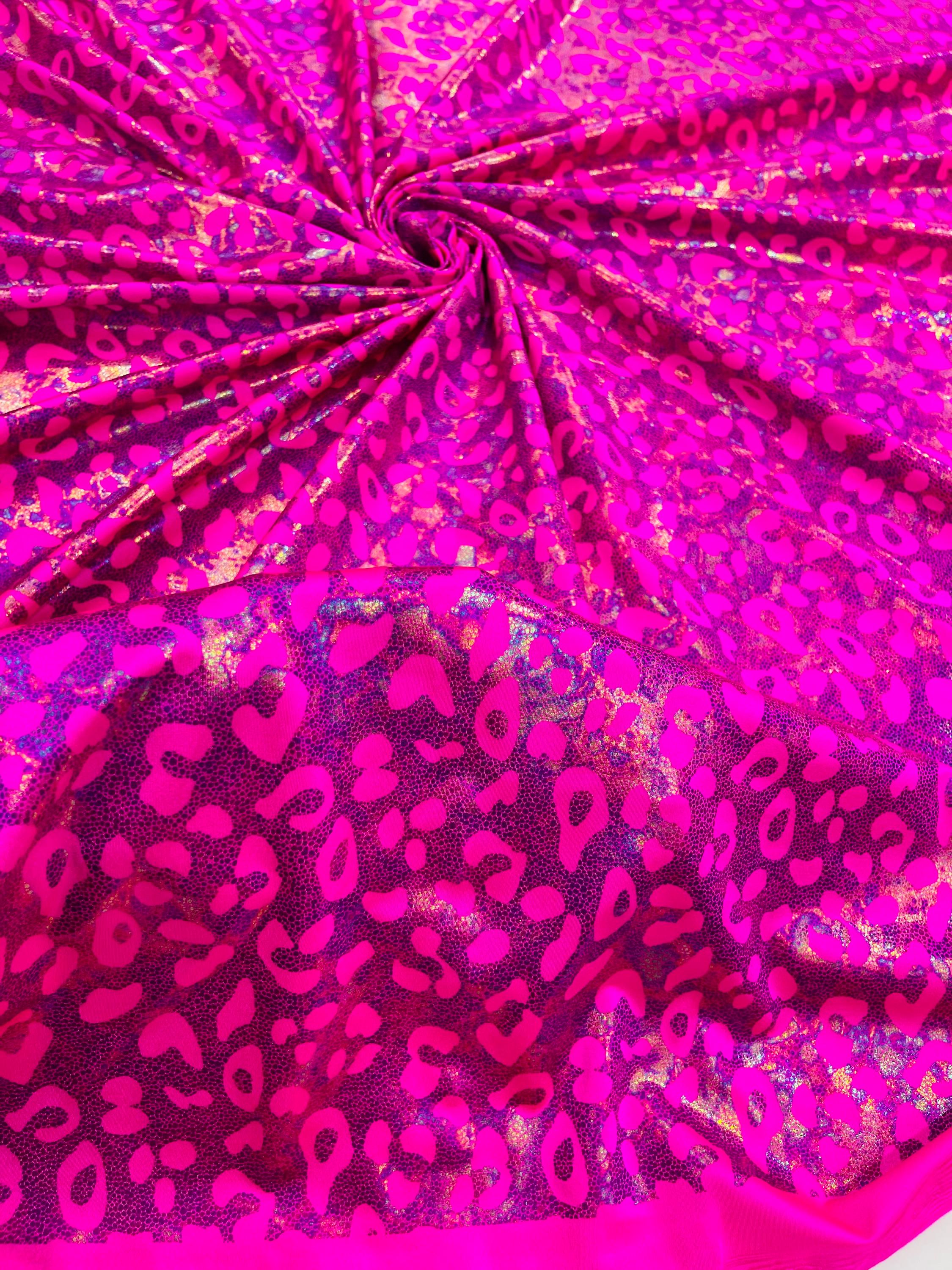 Hot Pink Metallic Leopard Print Nylon Spandex Fabric, 4 Way Stretch 60” Wide