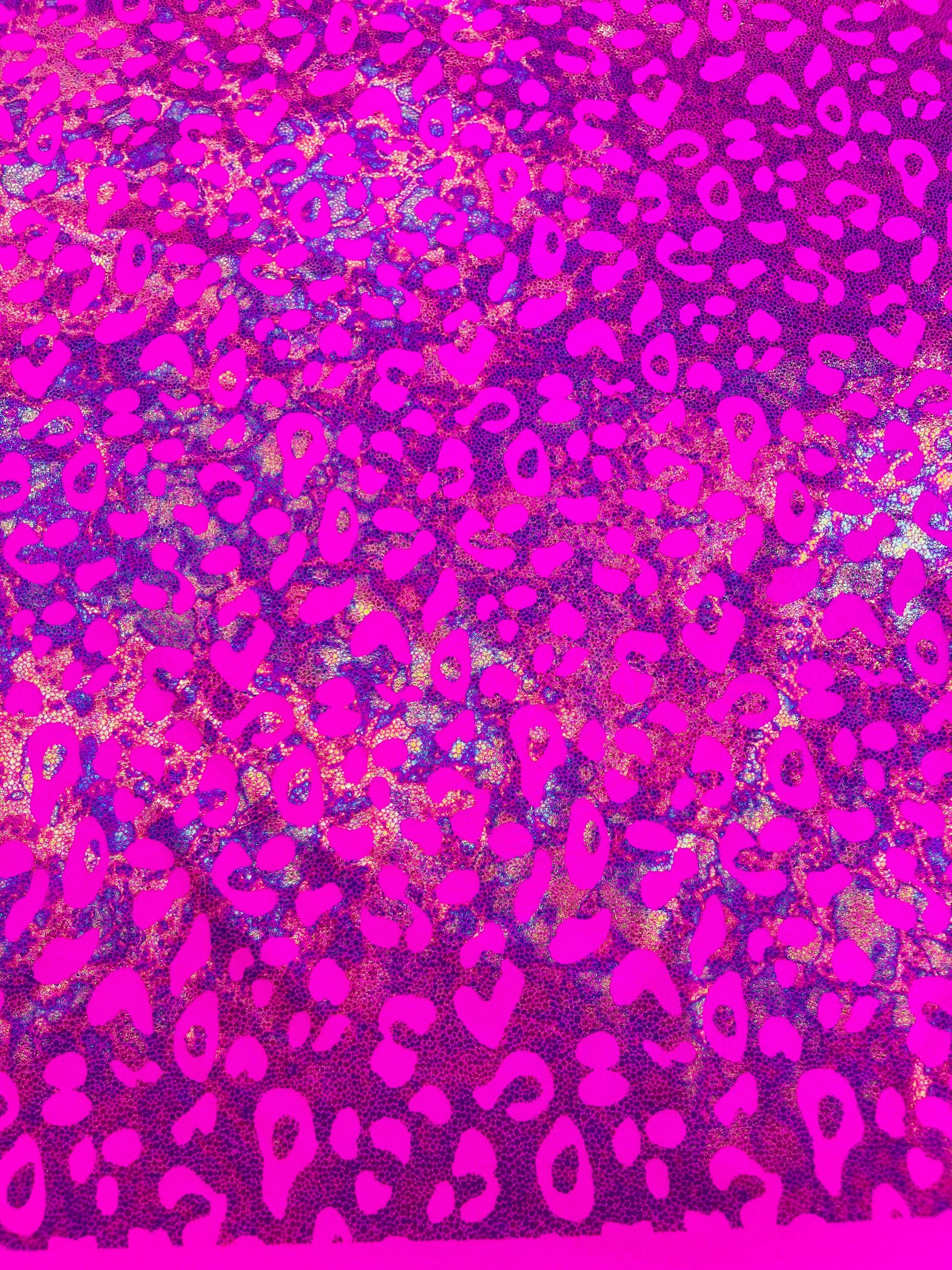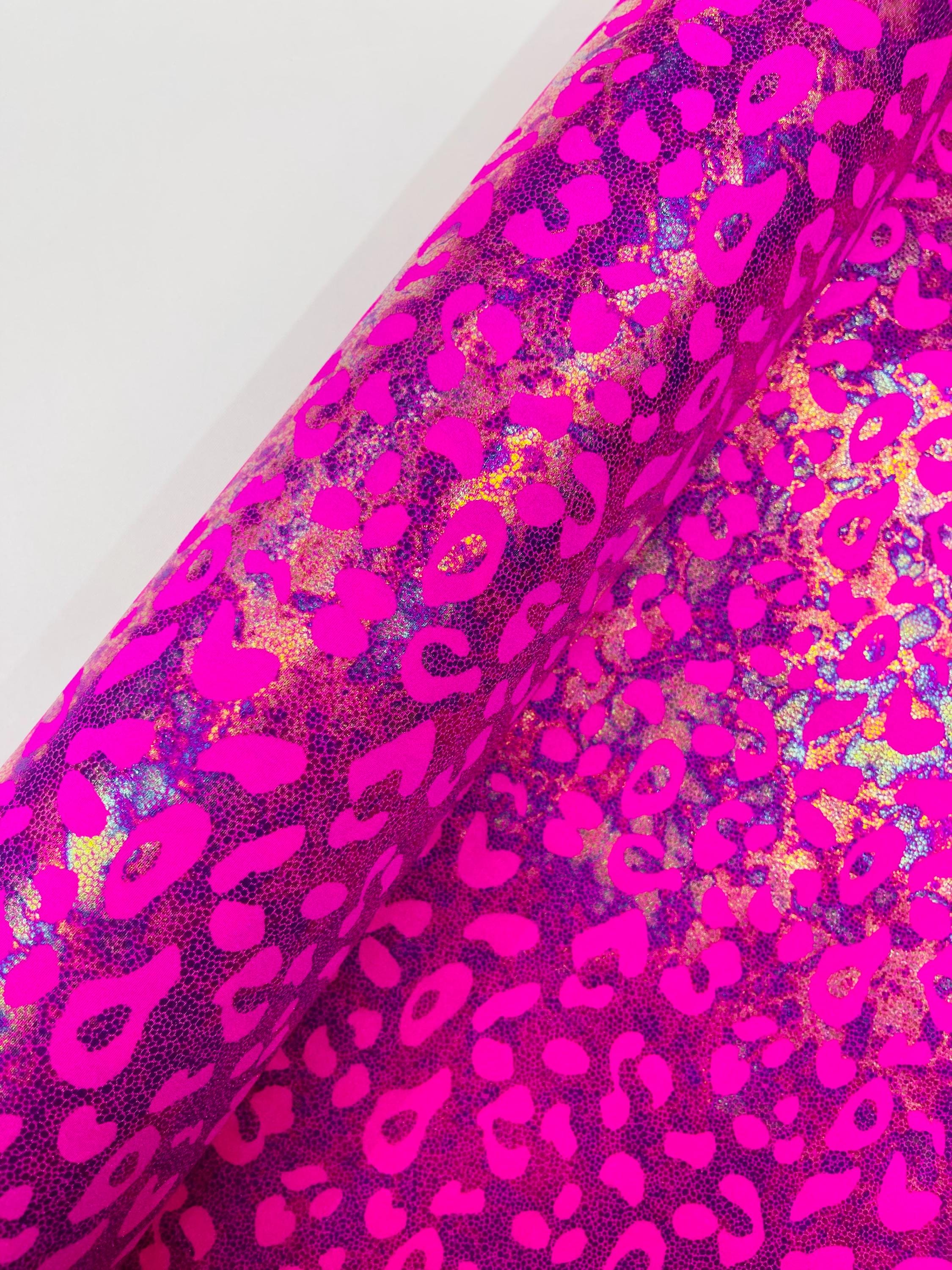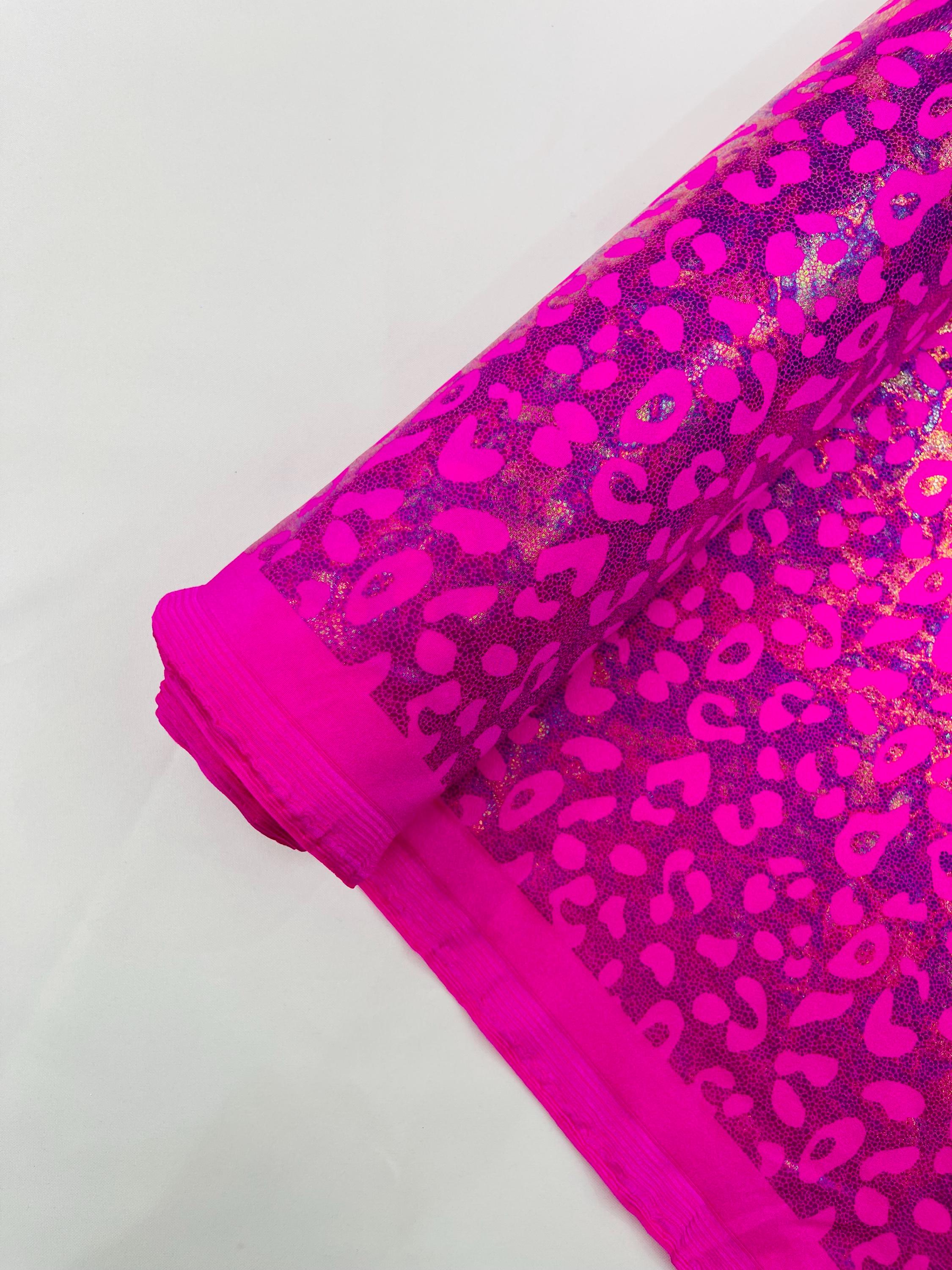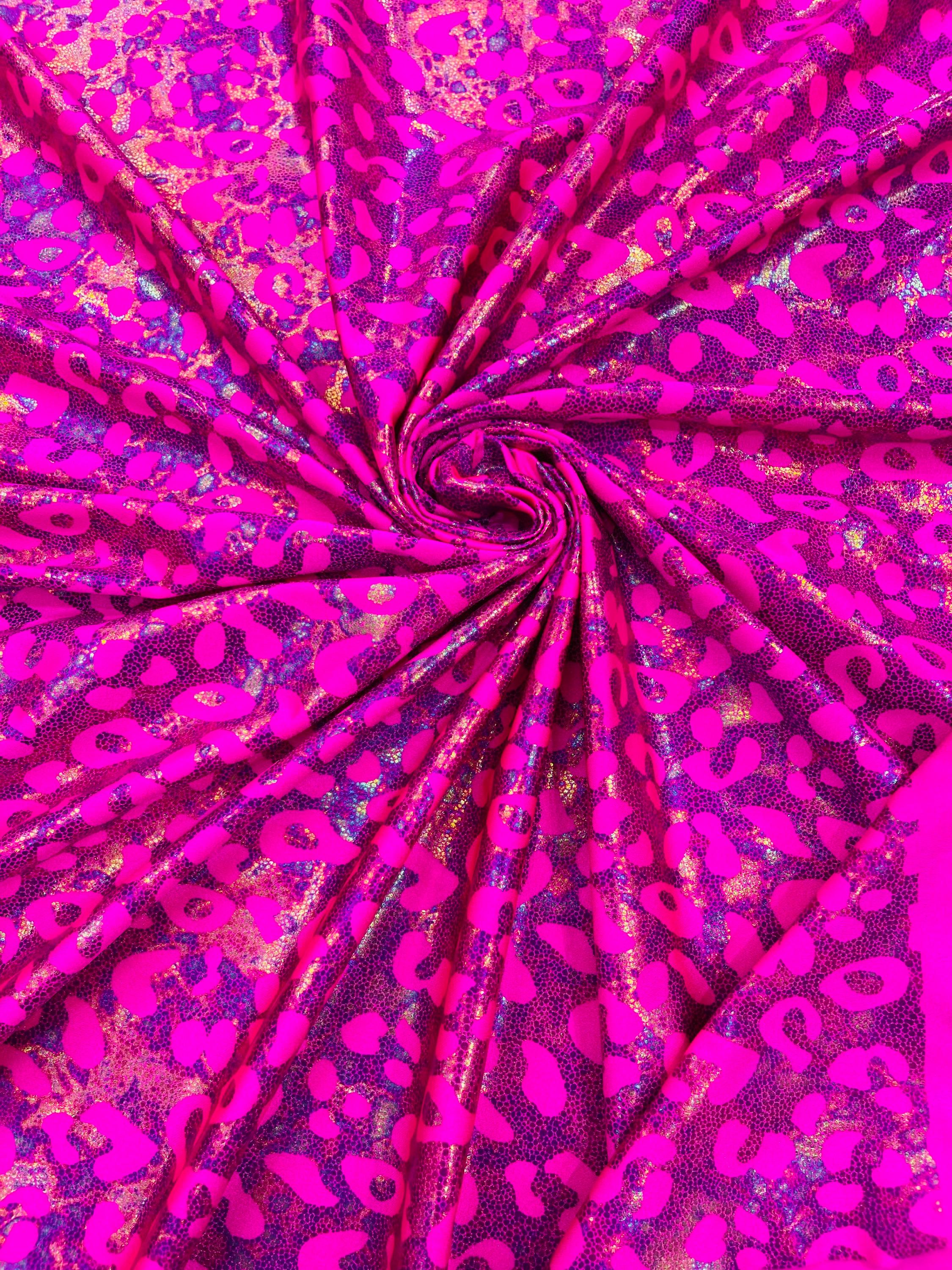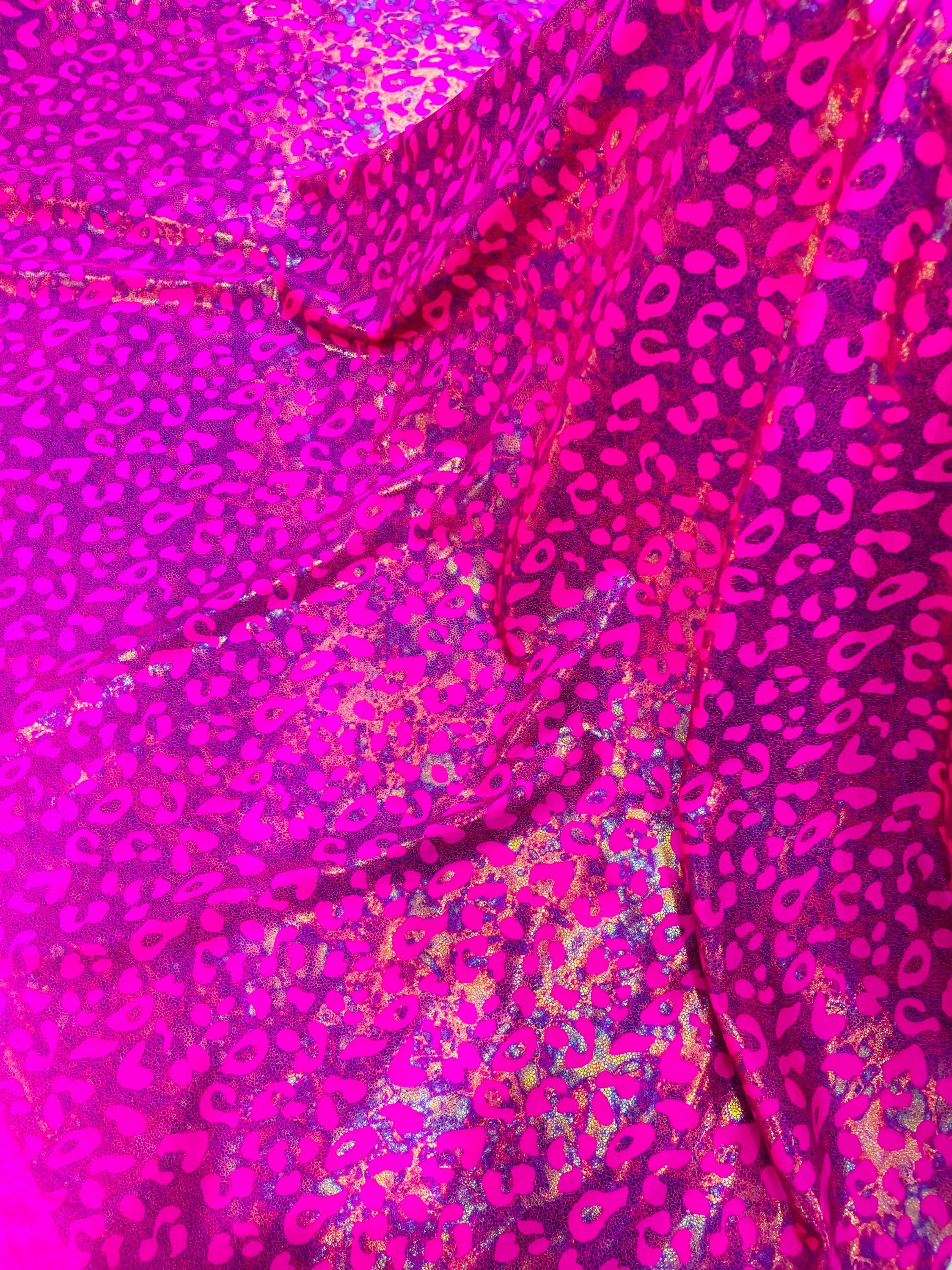 Hot Pink Metallic Leopard Print Nylon Spandex Fabric, 4 Way Stretch 60” Wide