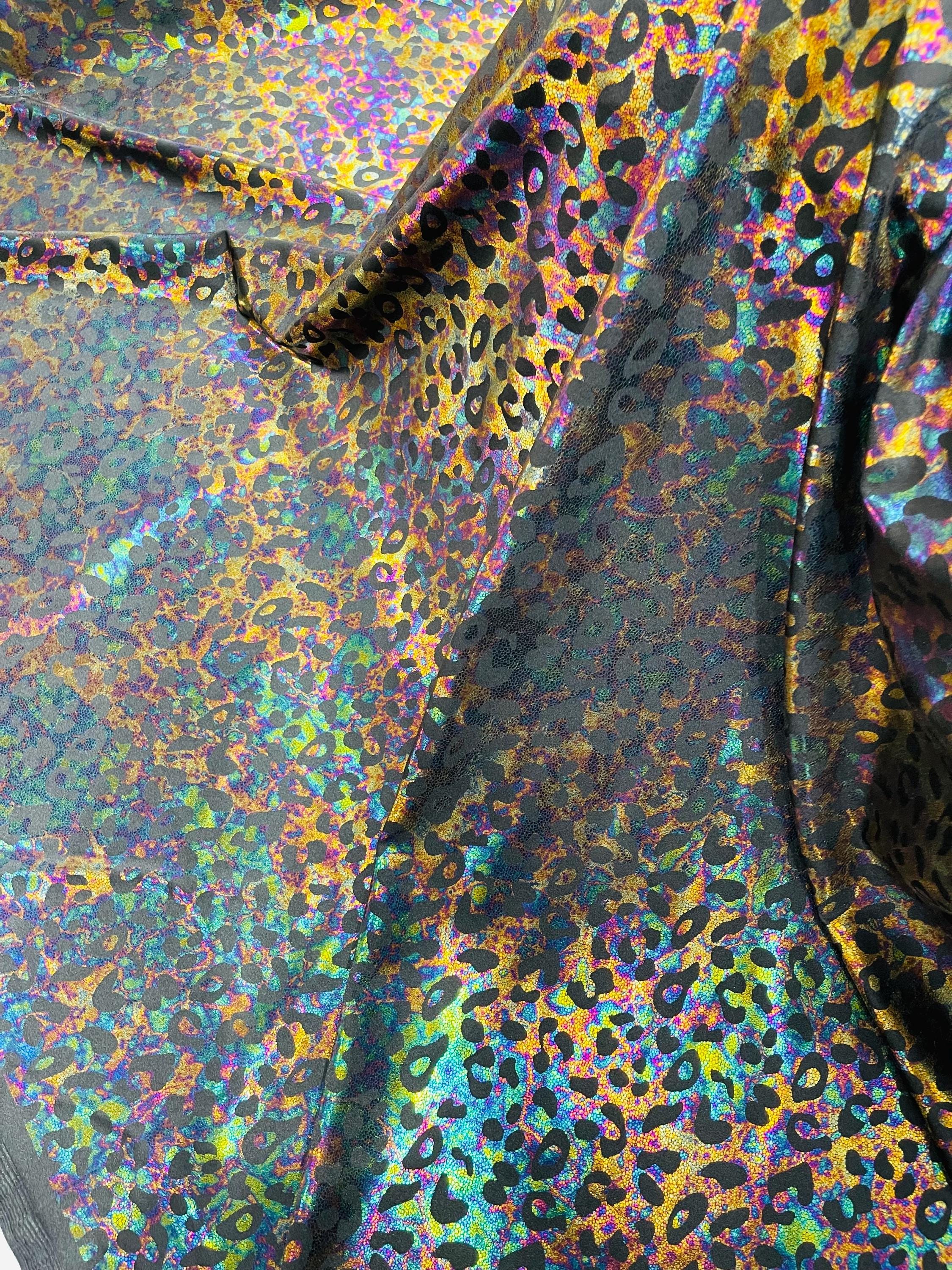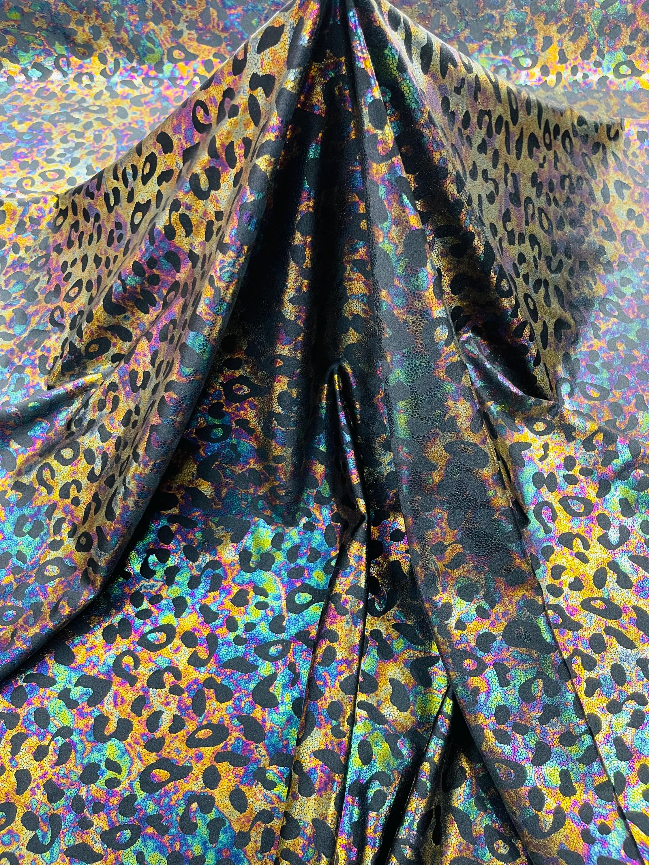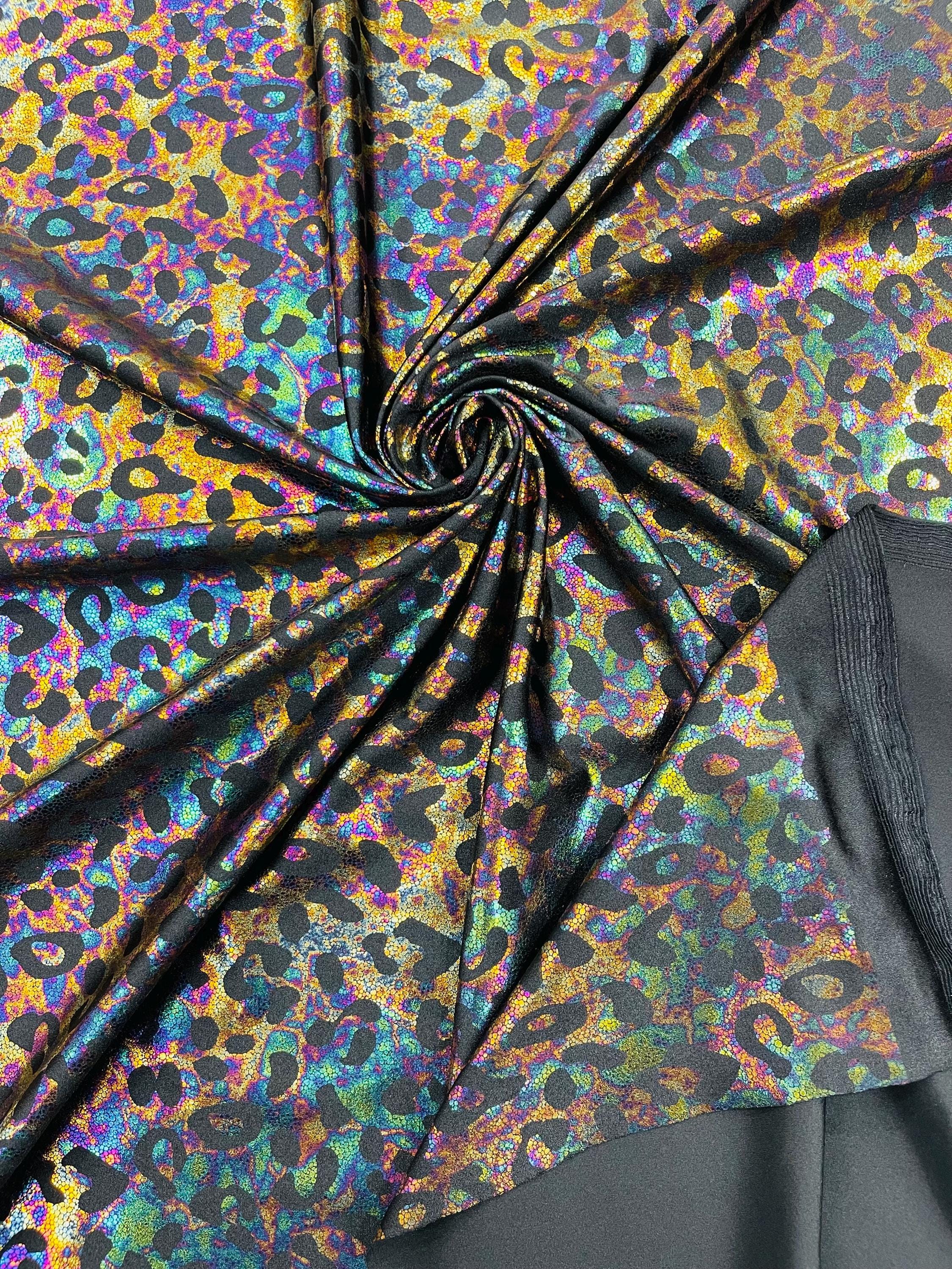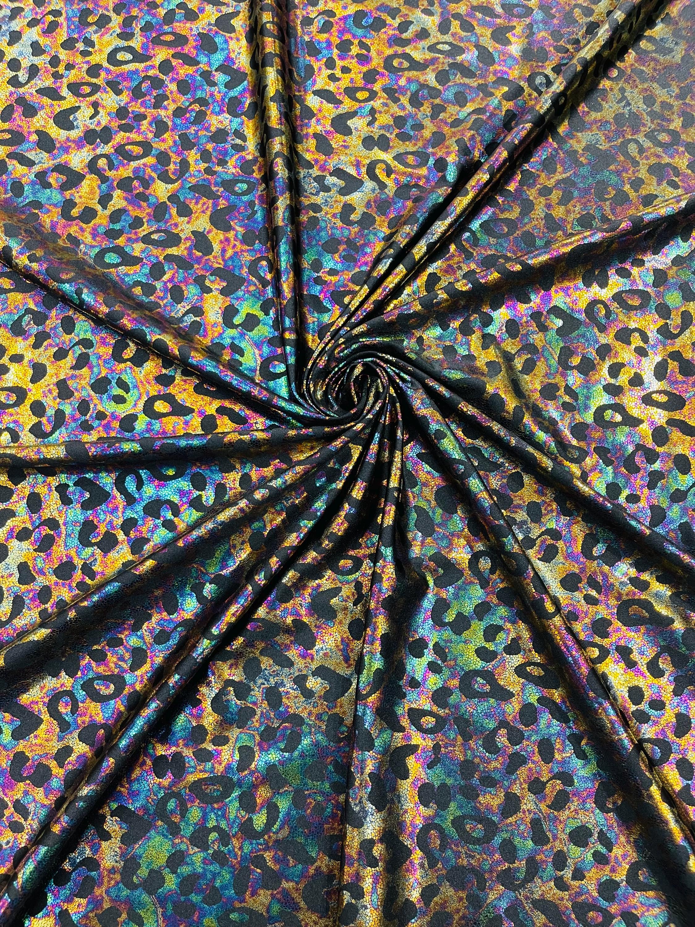 Metallic Leopard Print Nylon Spandex Fabric, 4 Way Stretch 58/60” Sold By The Yard