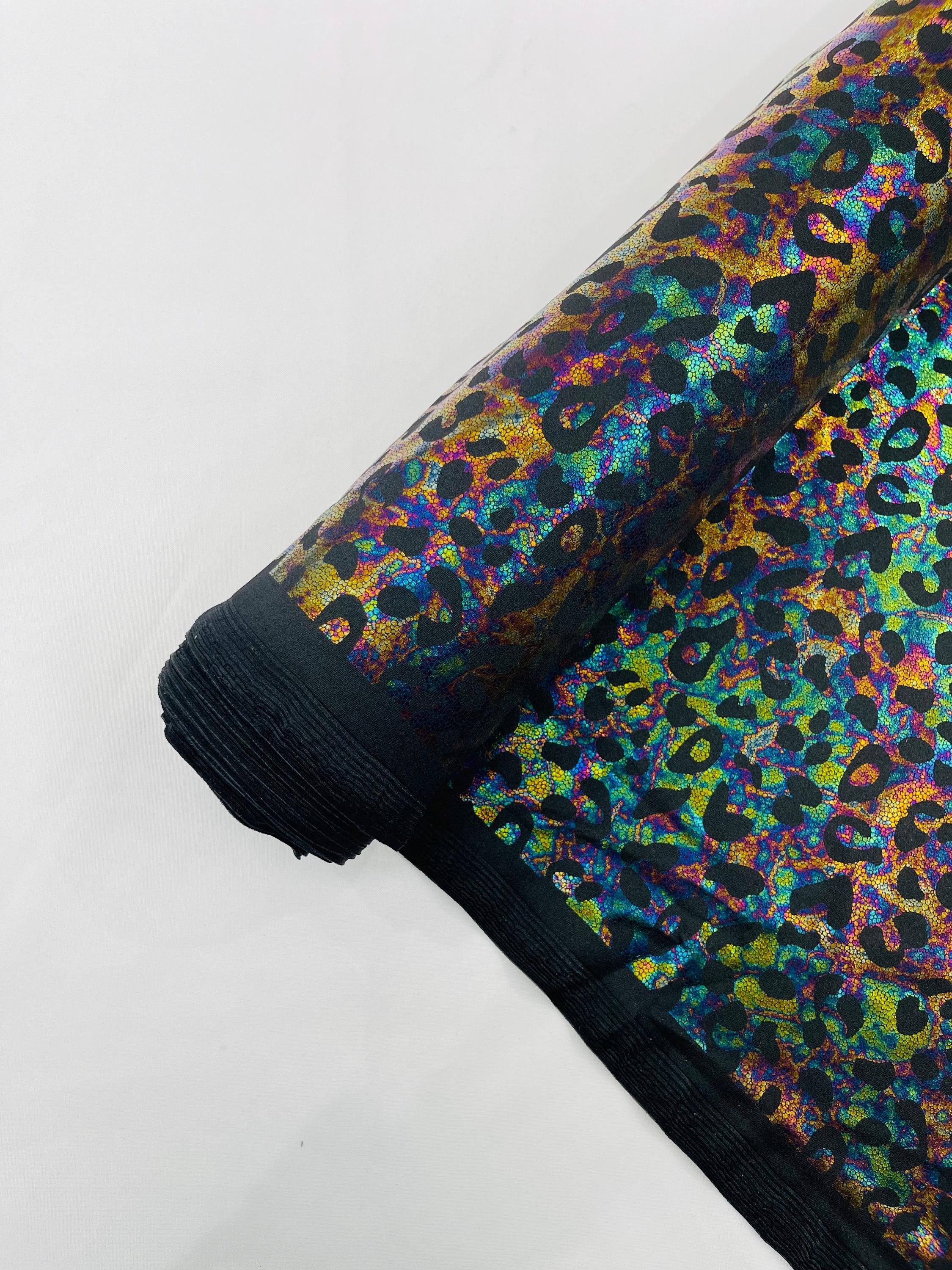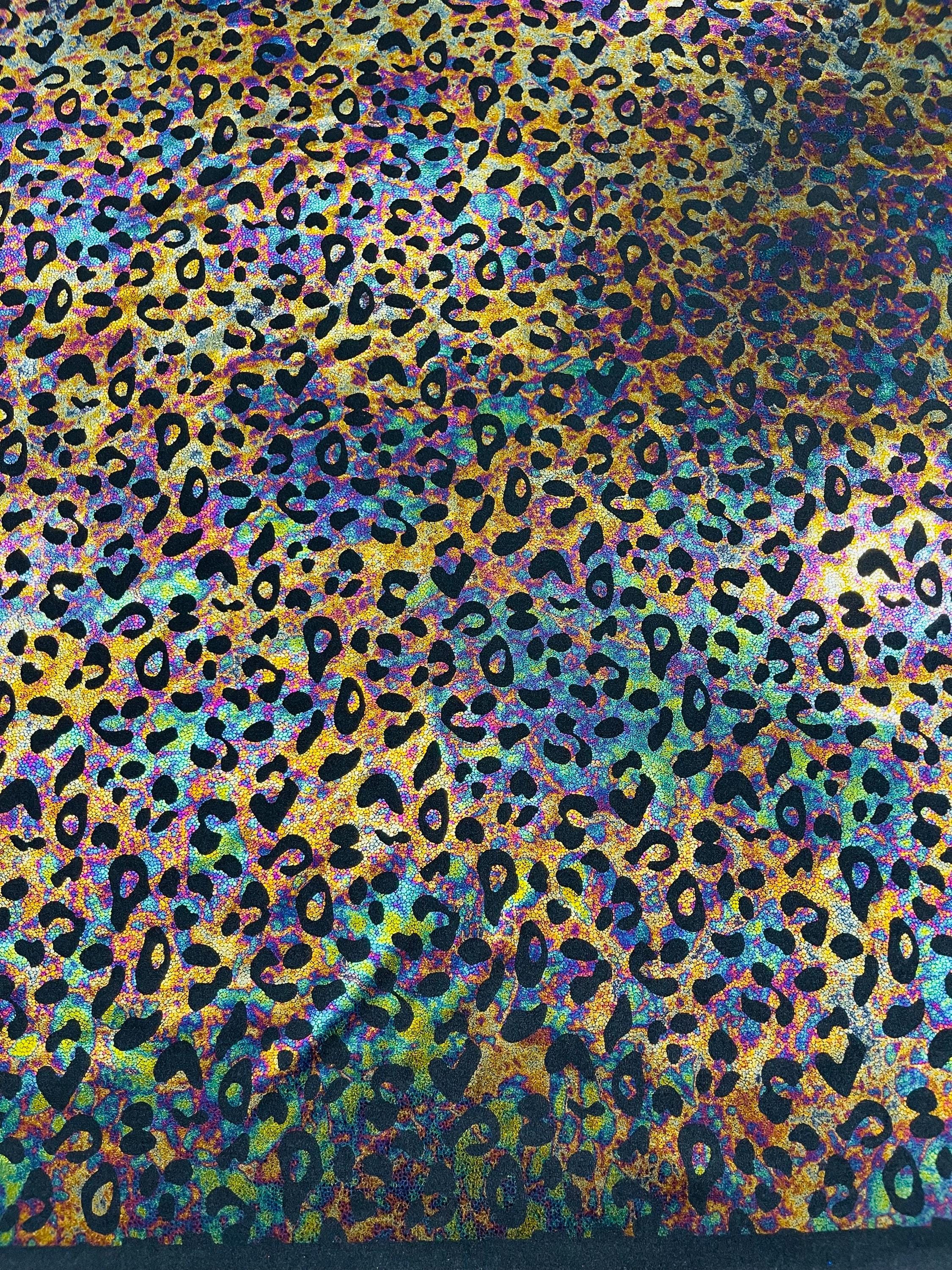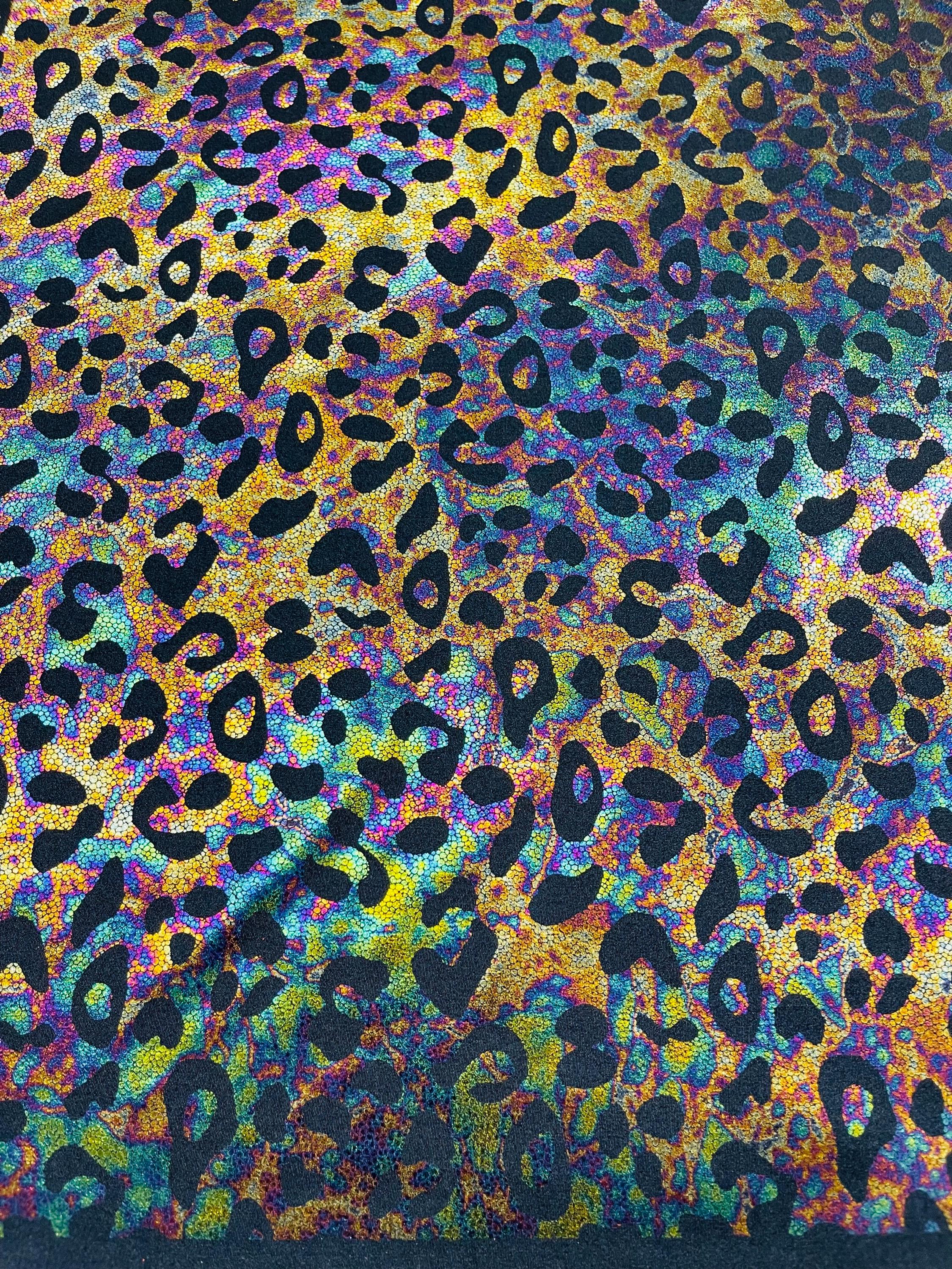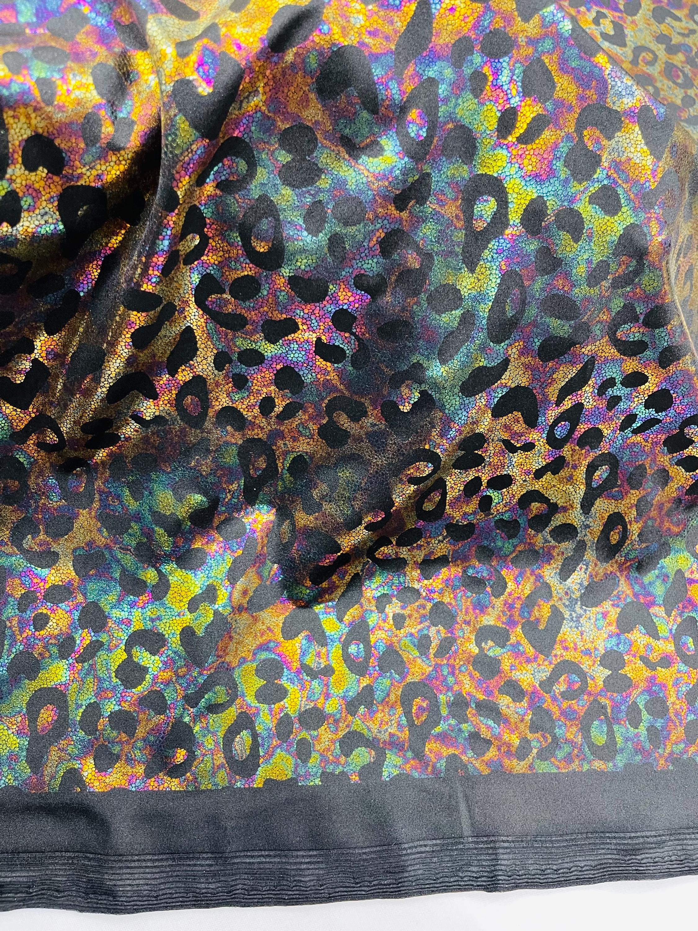 Metallic Leopard Print Nylon Spandex Fabric, 4 Way Stretch 58/60” Sold By The Yard