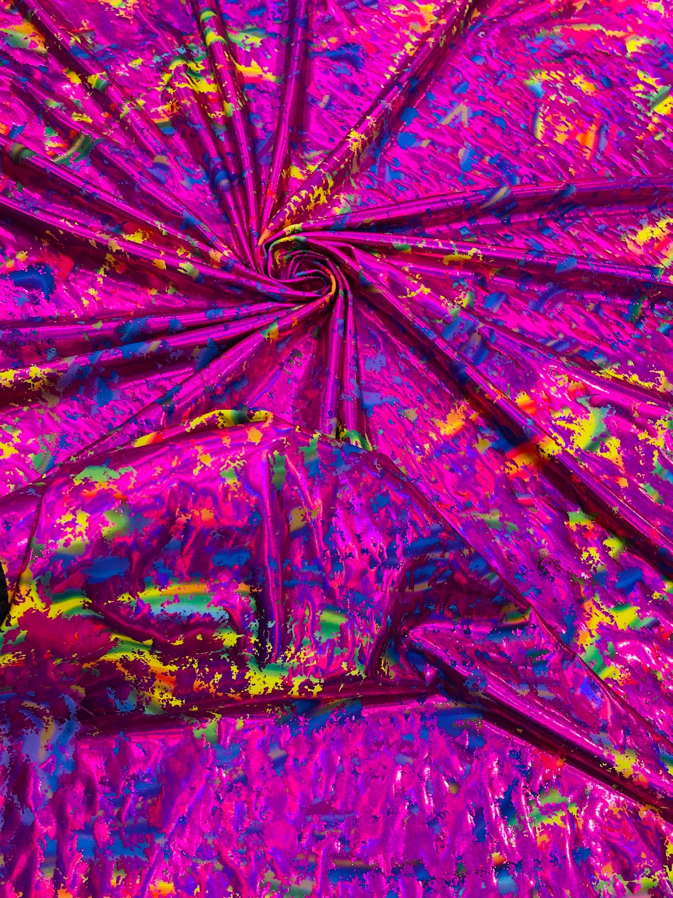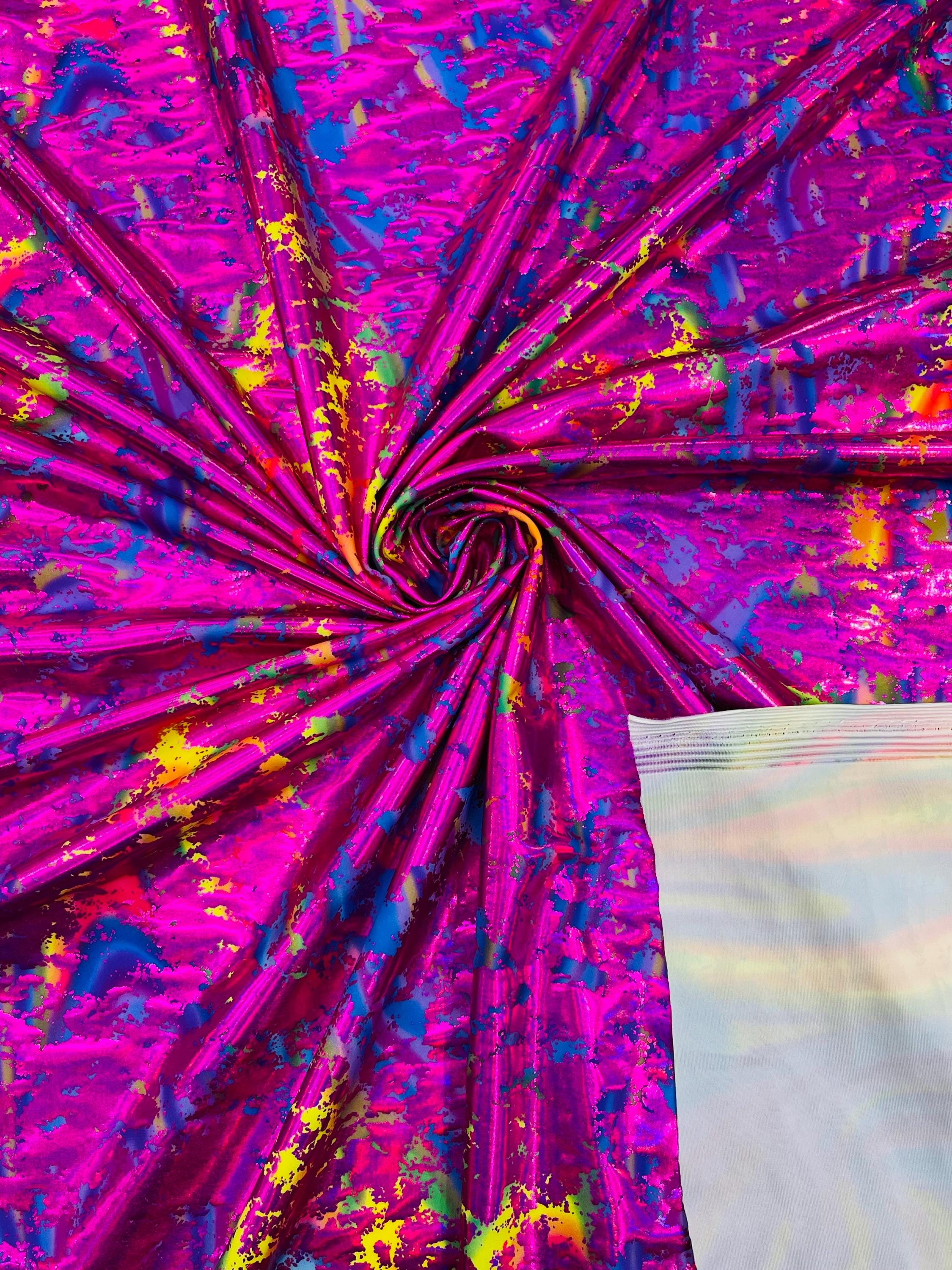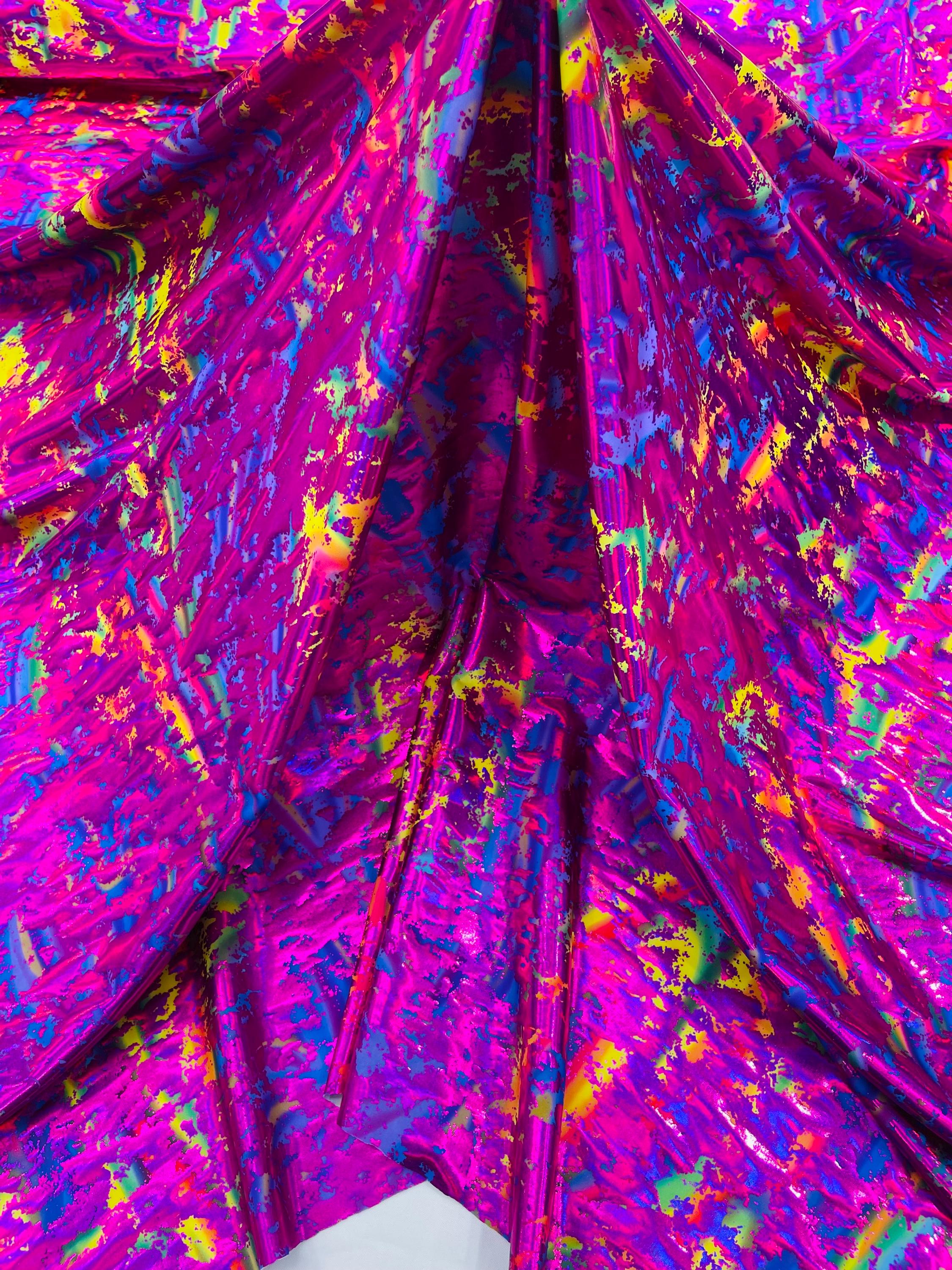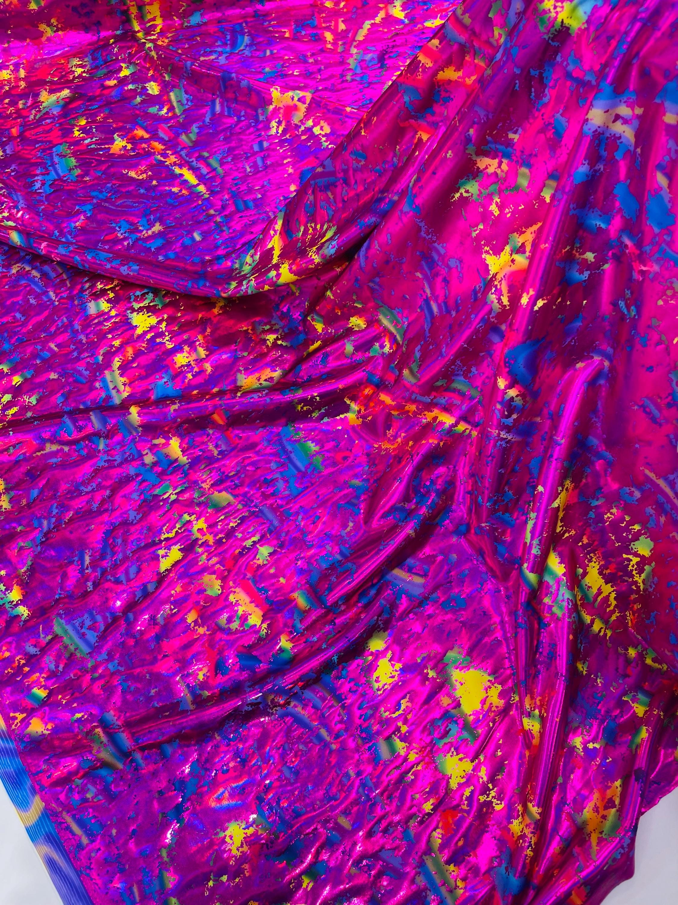 Fuchsia Metallic Foil Splatter Paint Design Print Nylon Spandex Fabric, 4Way Stretch 60” Wide