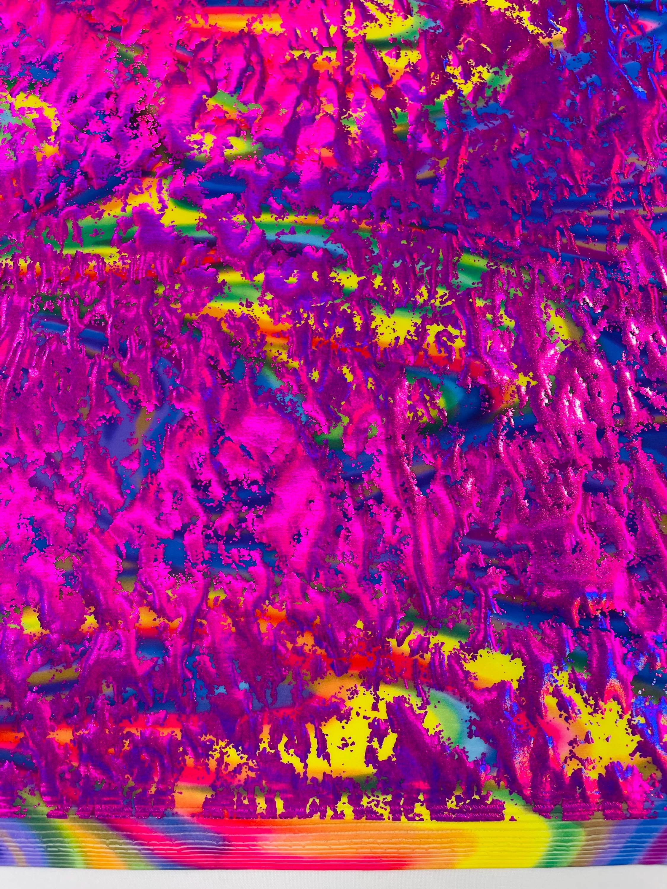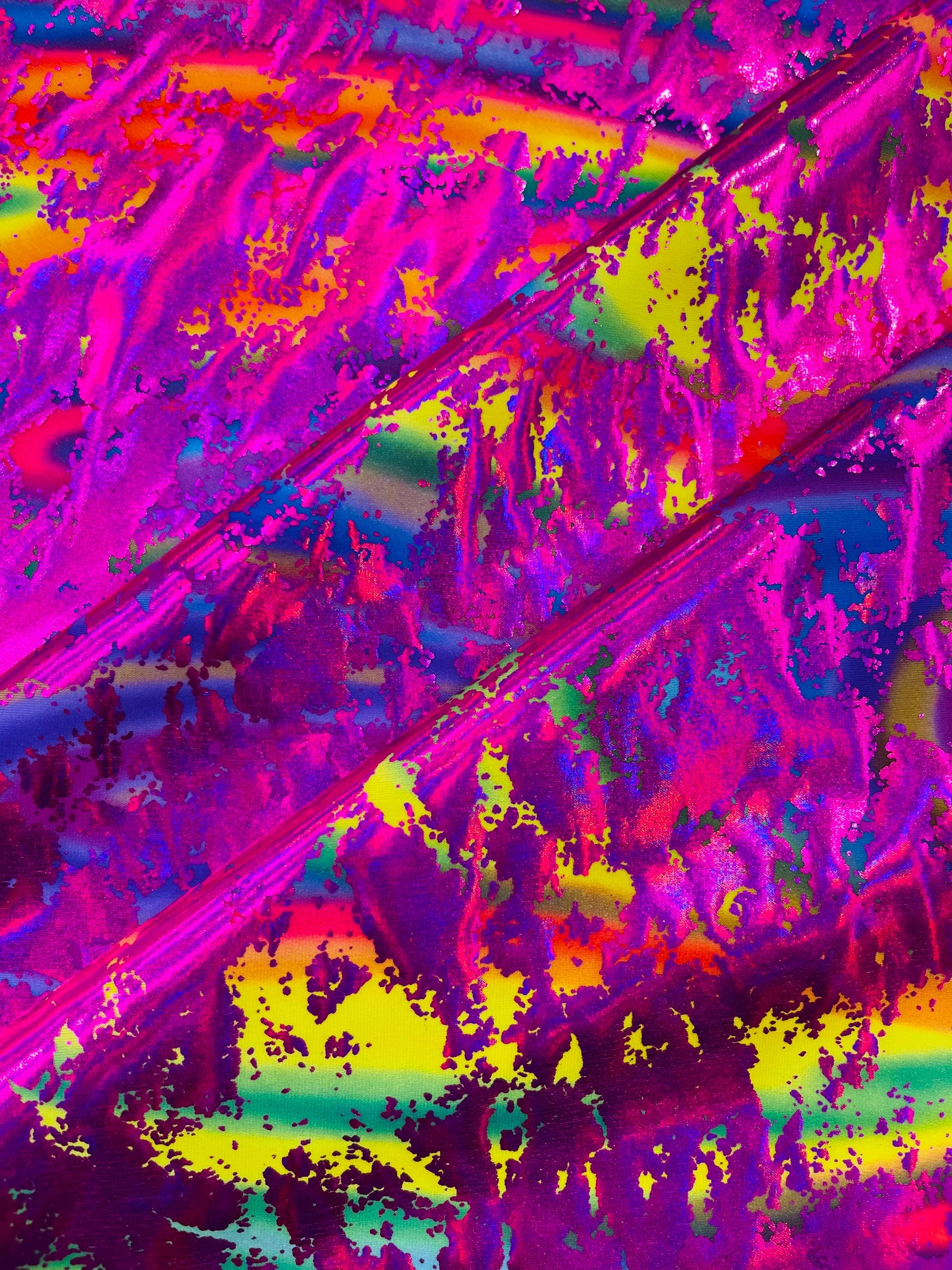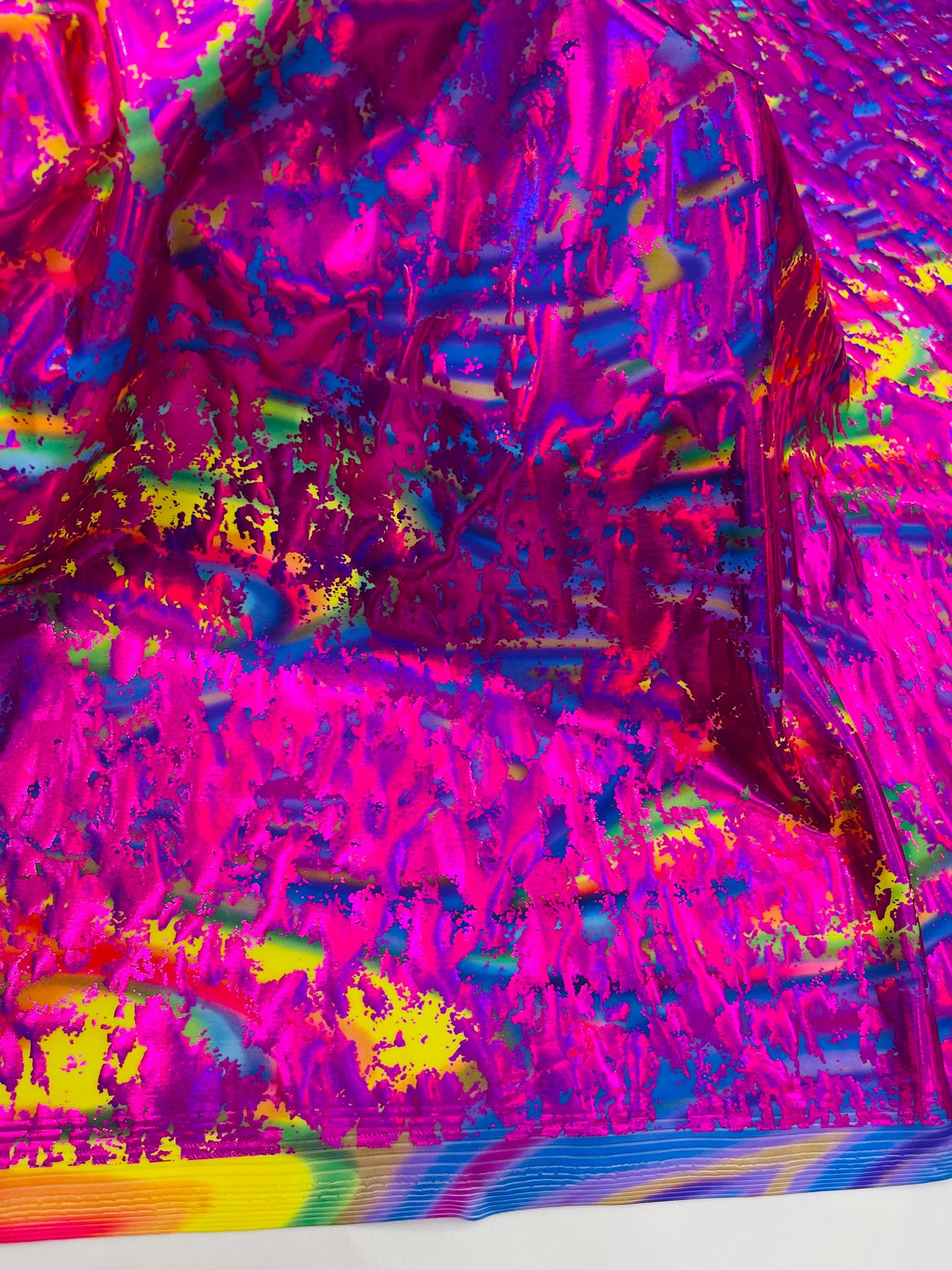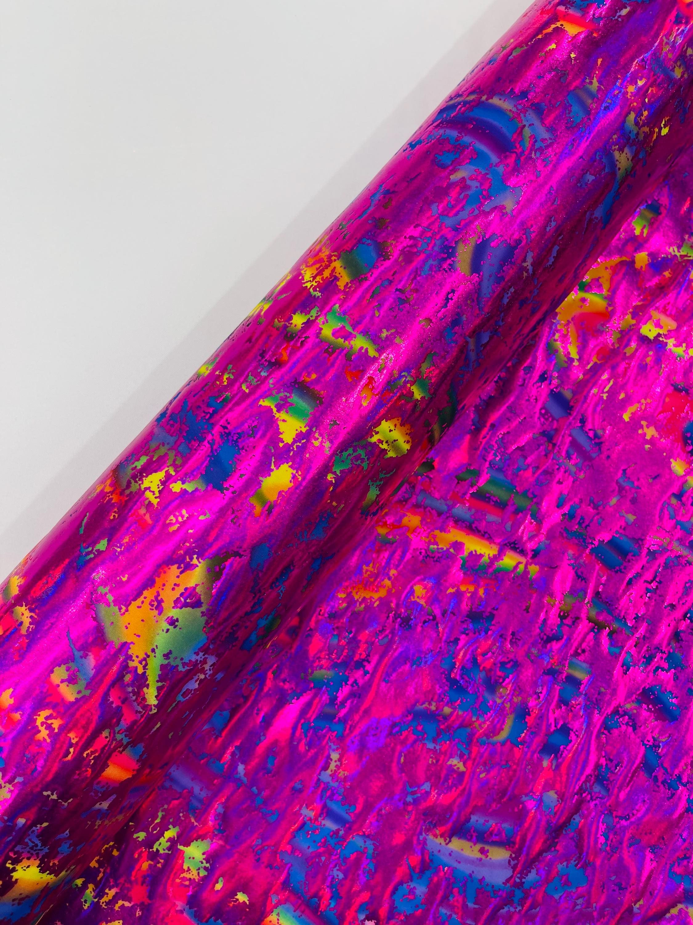 Fuchsia Metallic Foil Splatter Paint Design Print Nylon Spandex Fabric, 4Way Stretch 60” Wide
