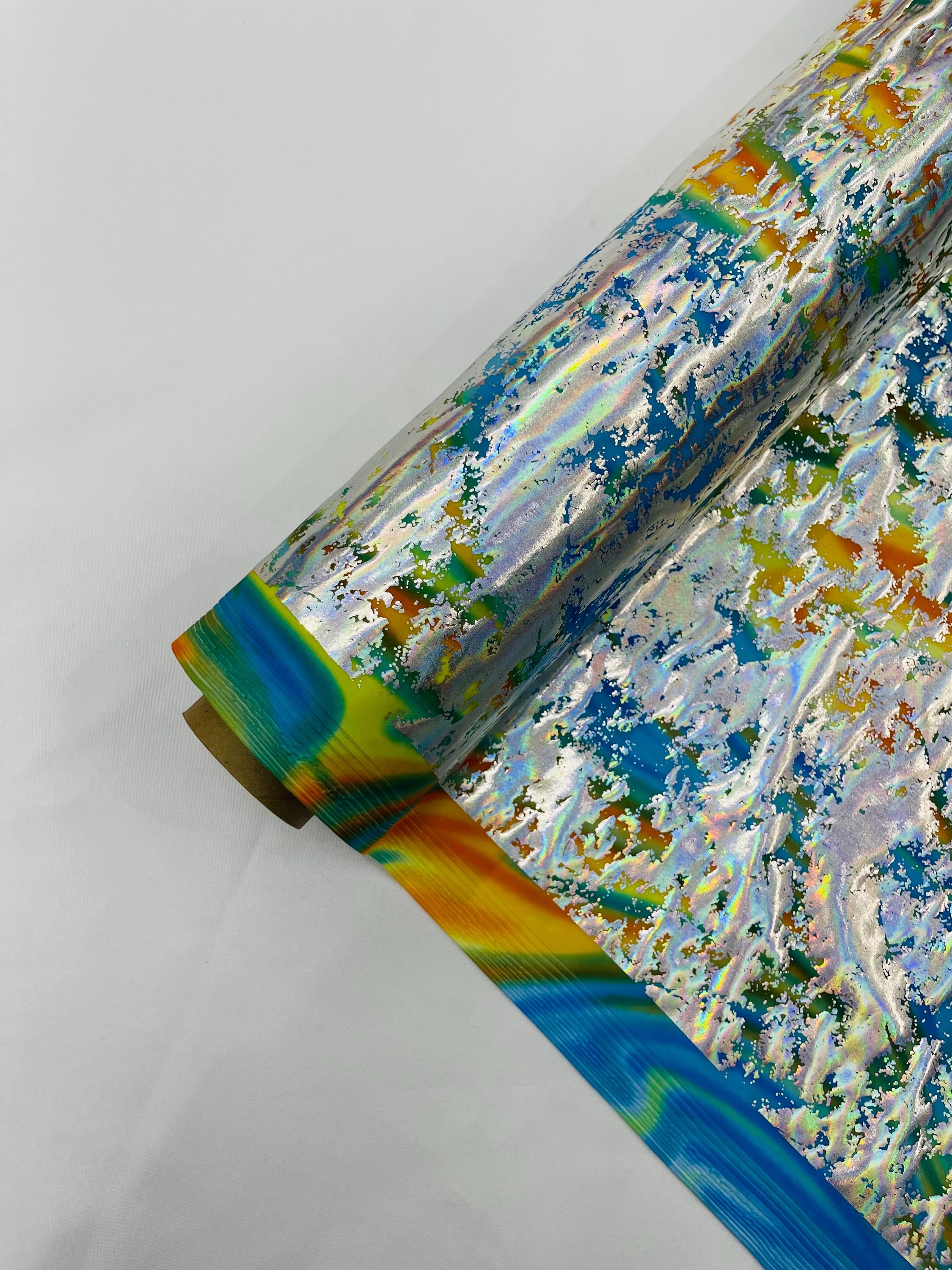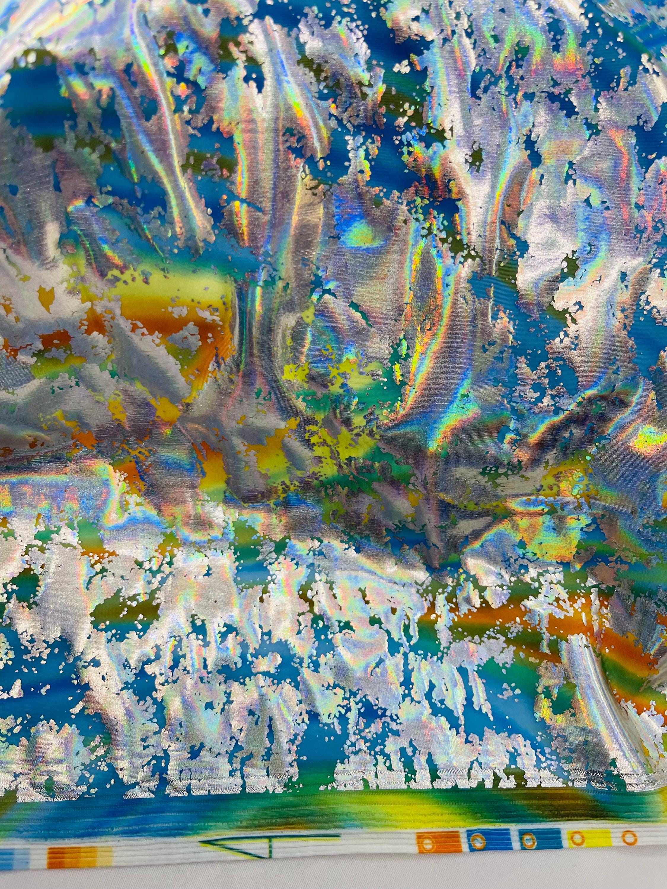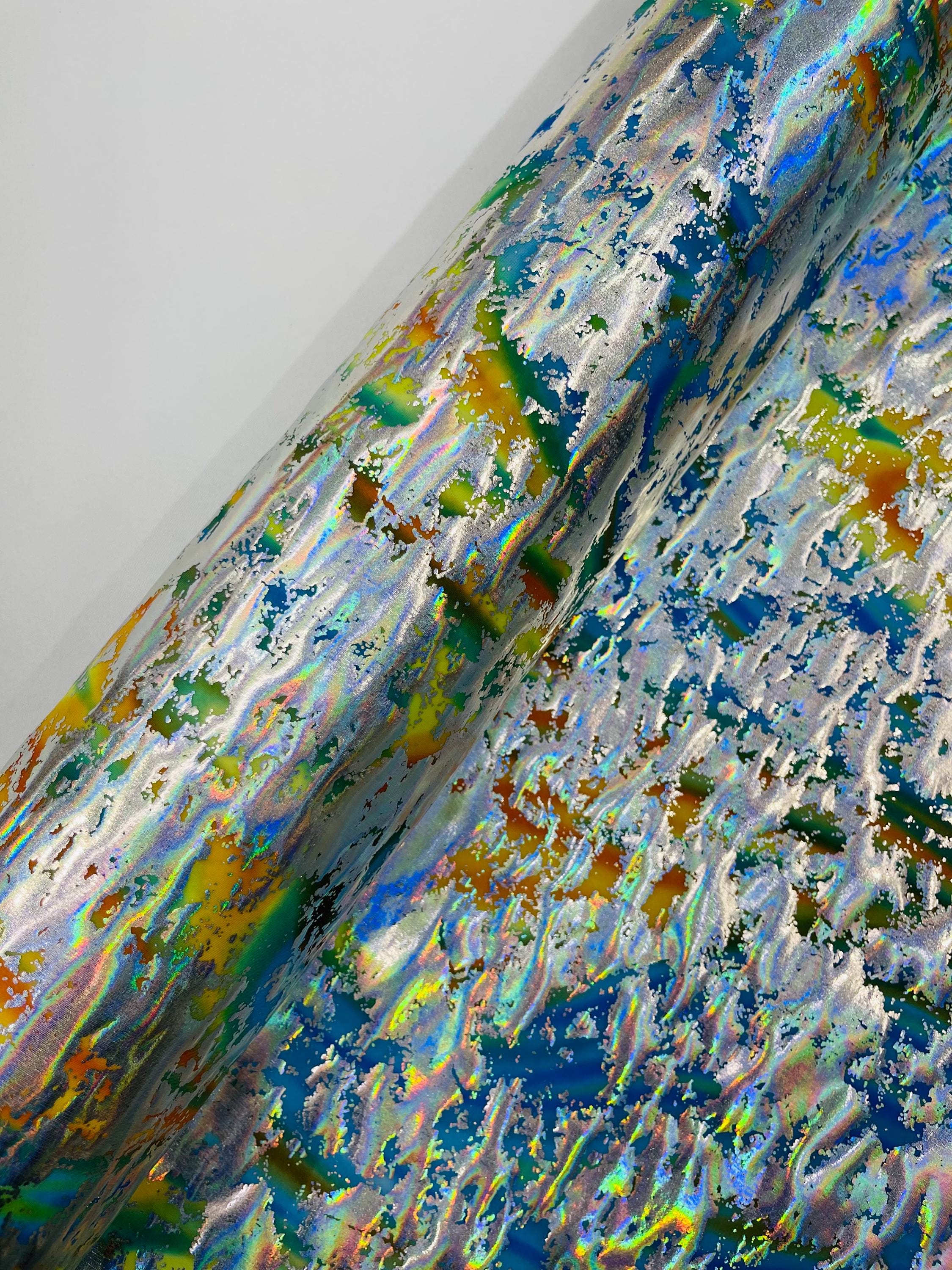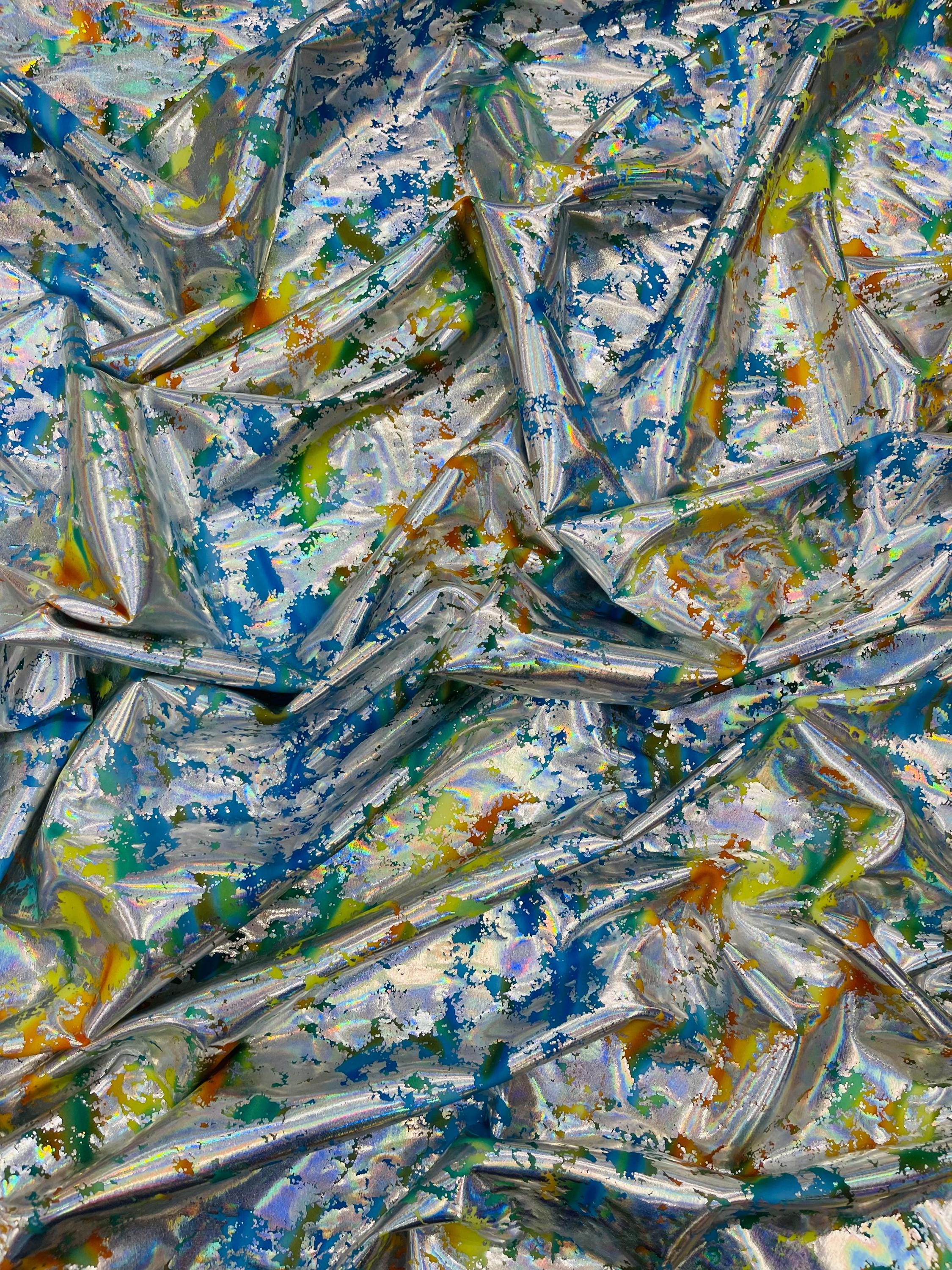 Metallic Splatter Paint Design Print Nylon Spandex Fabric, 4 Way Stretch 60” Wide Sold By The Yard