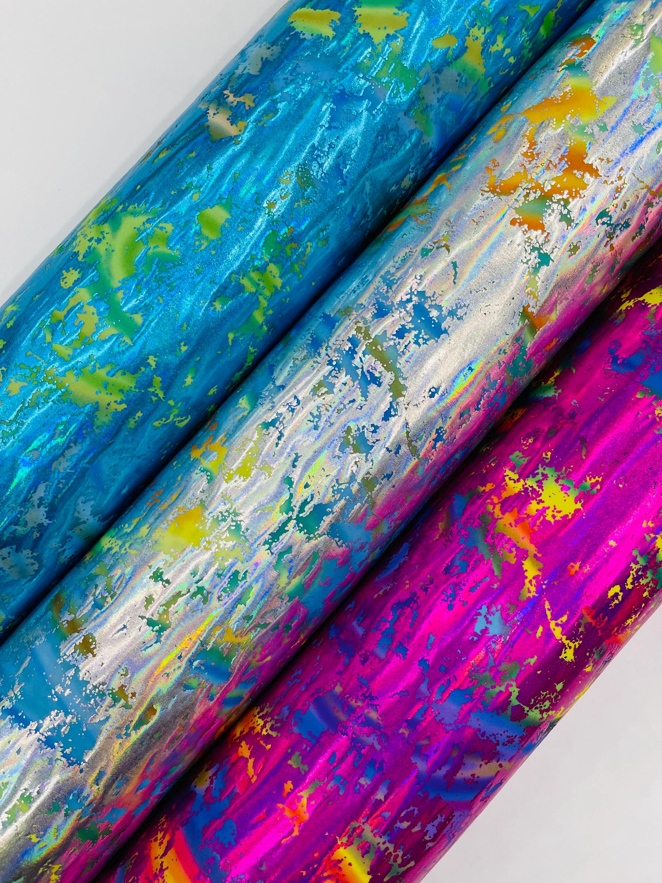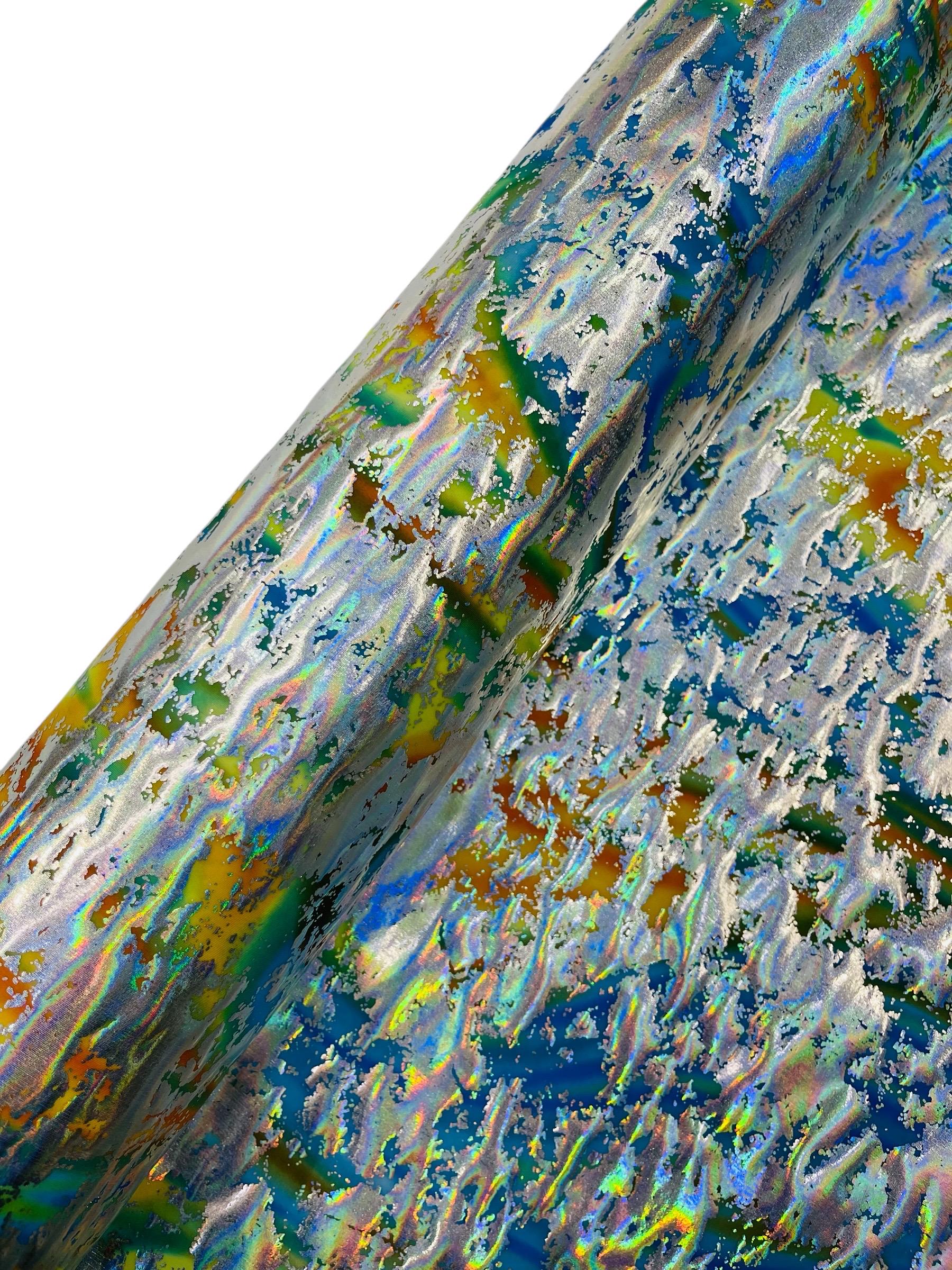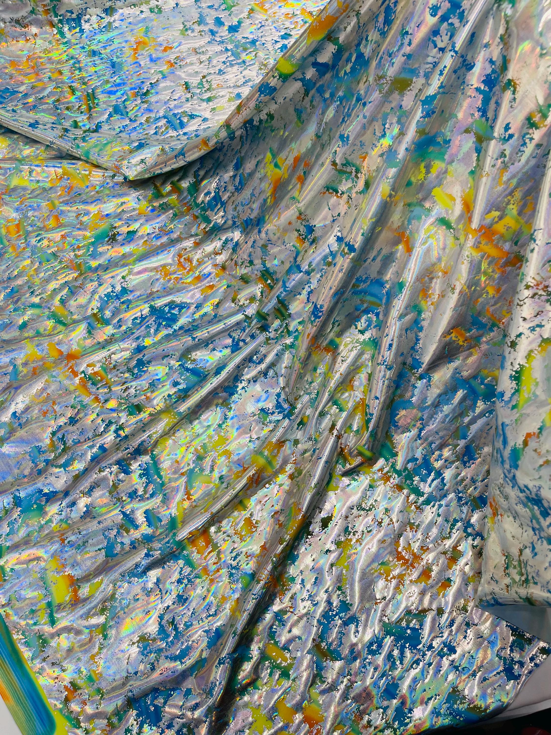 Metallic Foil Splatter Paint Design Print Nylon Spandex Fabric, 4Way Stretch 60” Wide Sold By The Yard