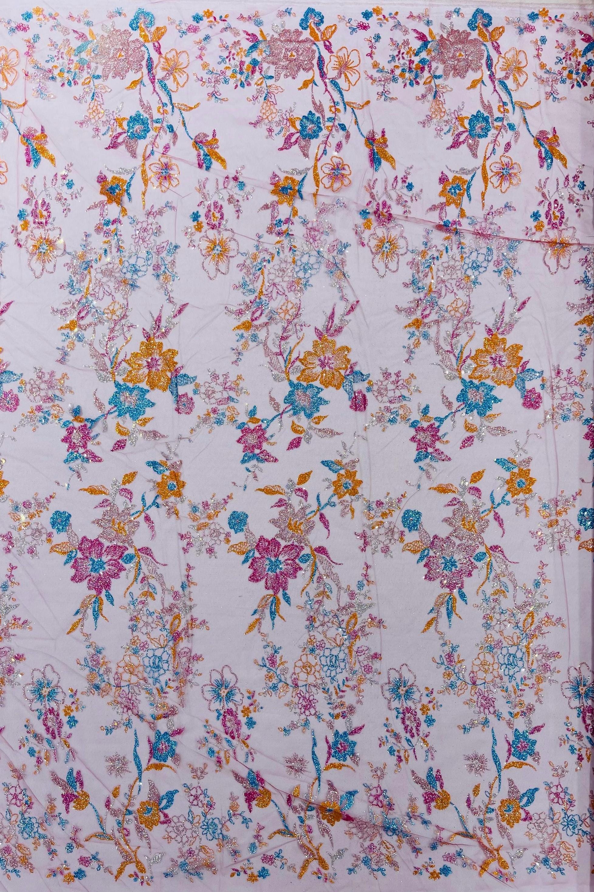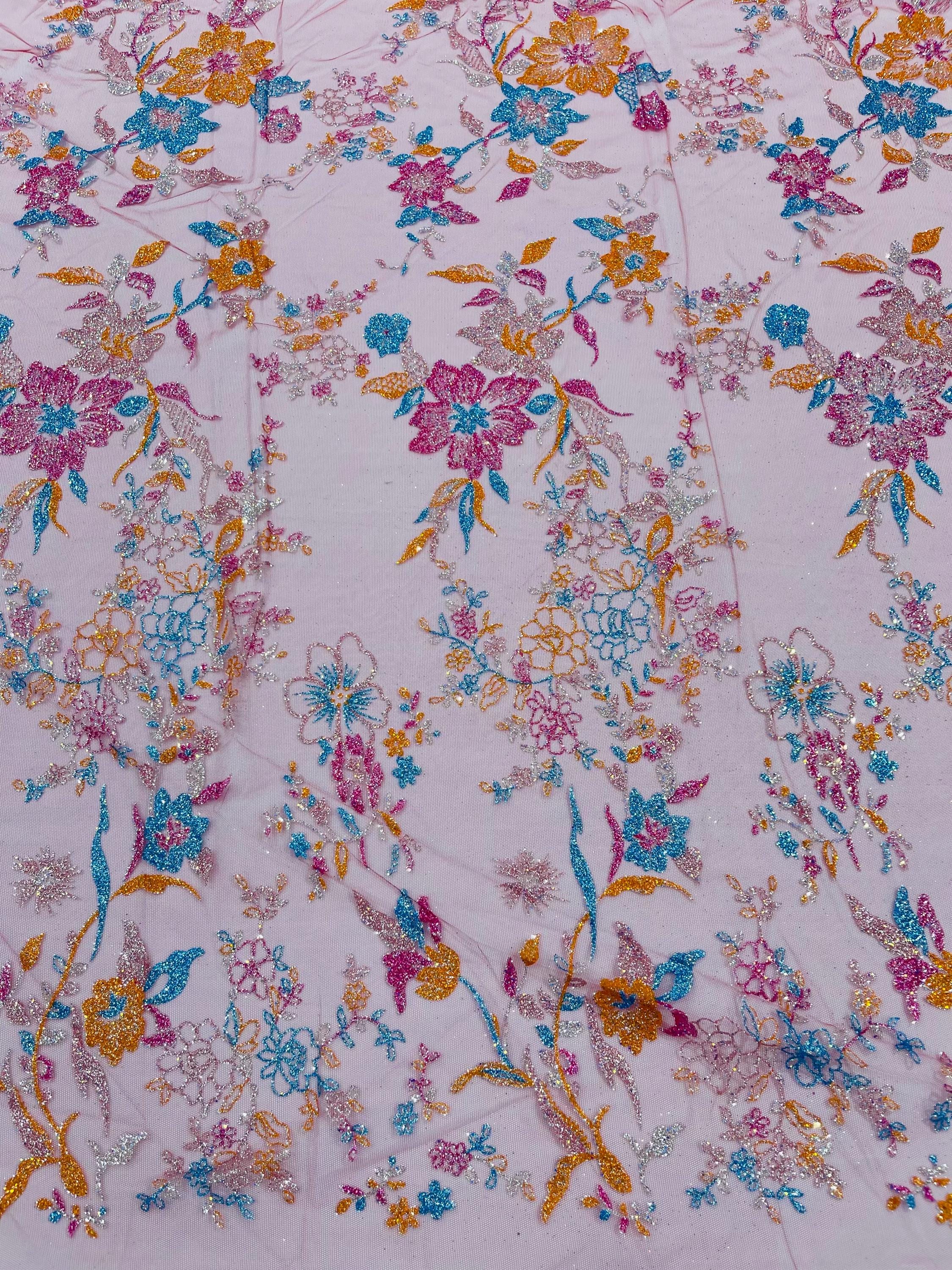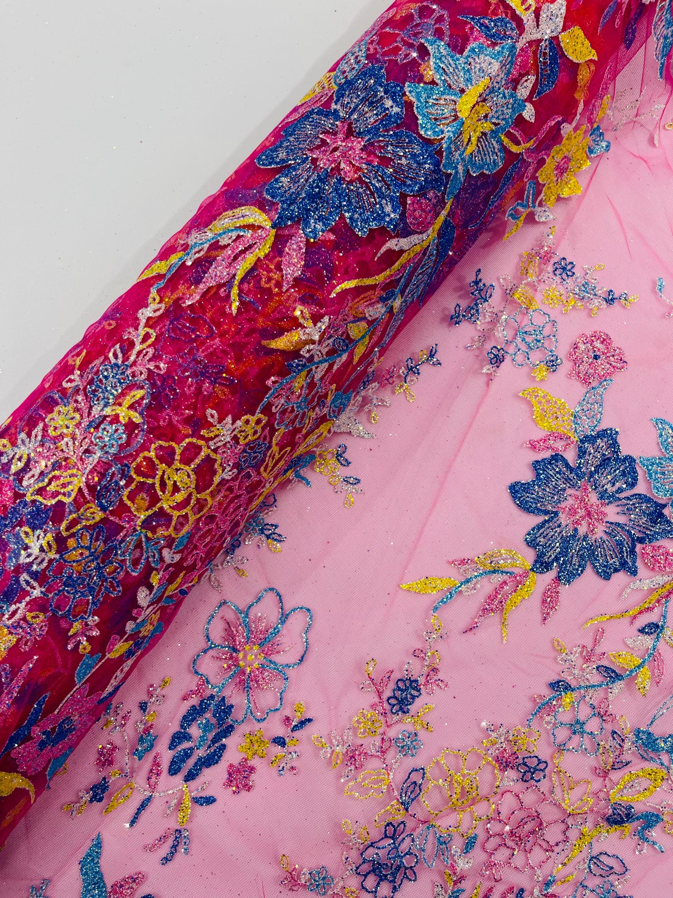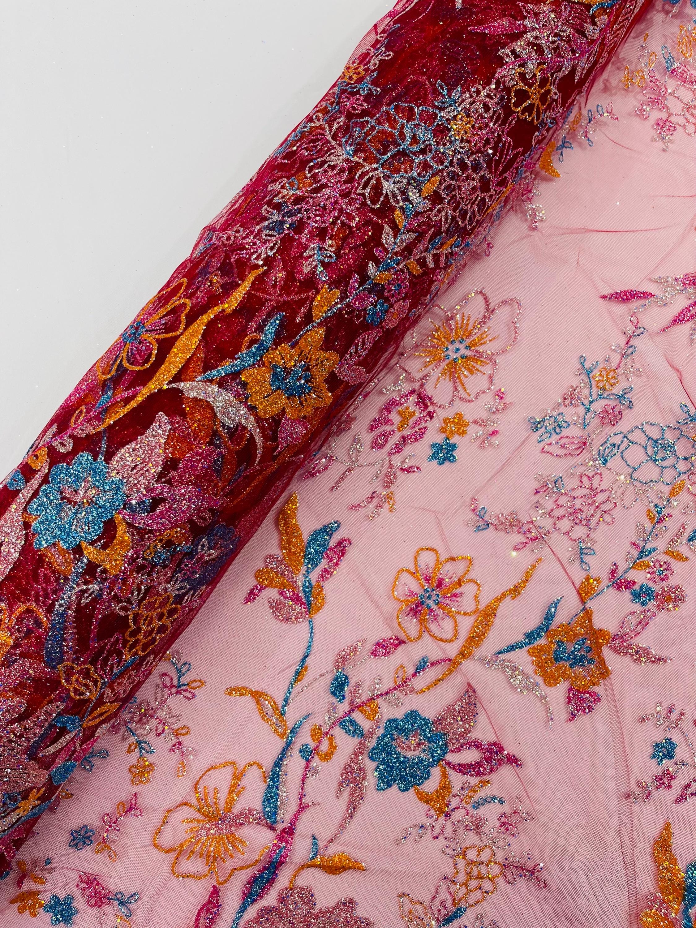 Mesh Glitter Lace Fabric, Multi Color Floral Design, For Wedding Decor Bridal/Prom