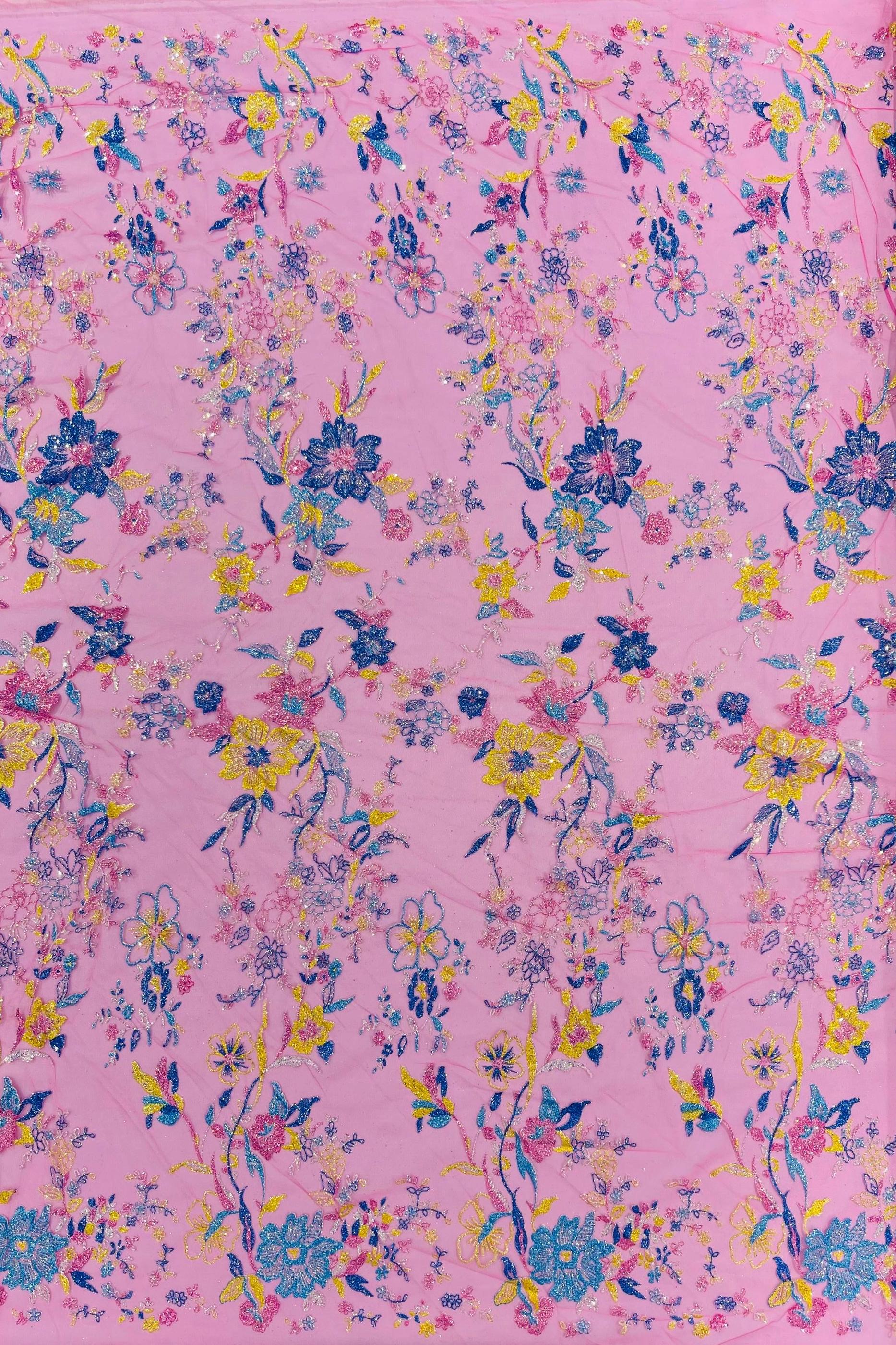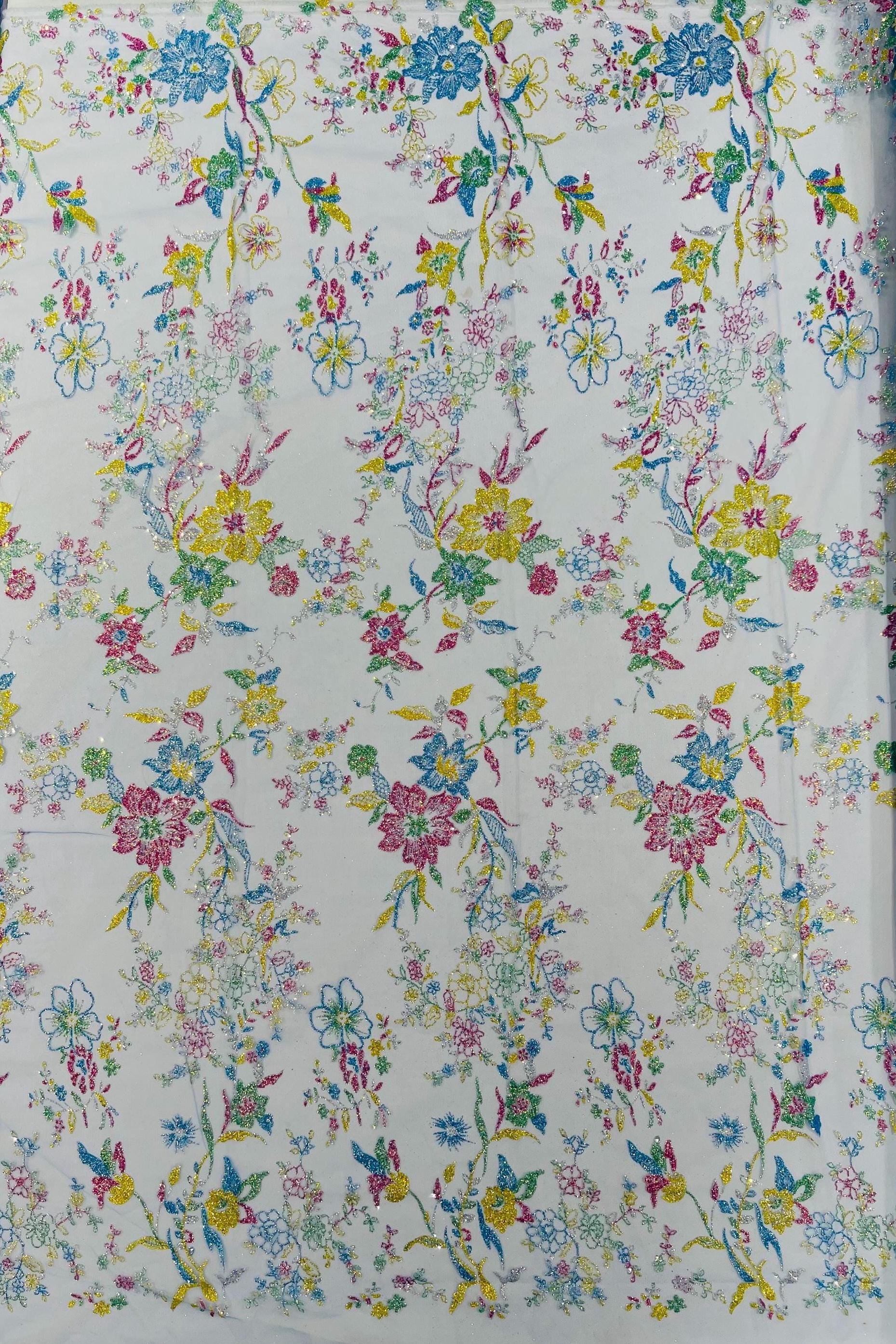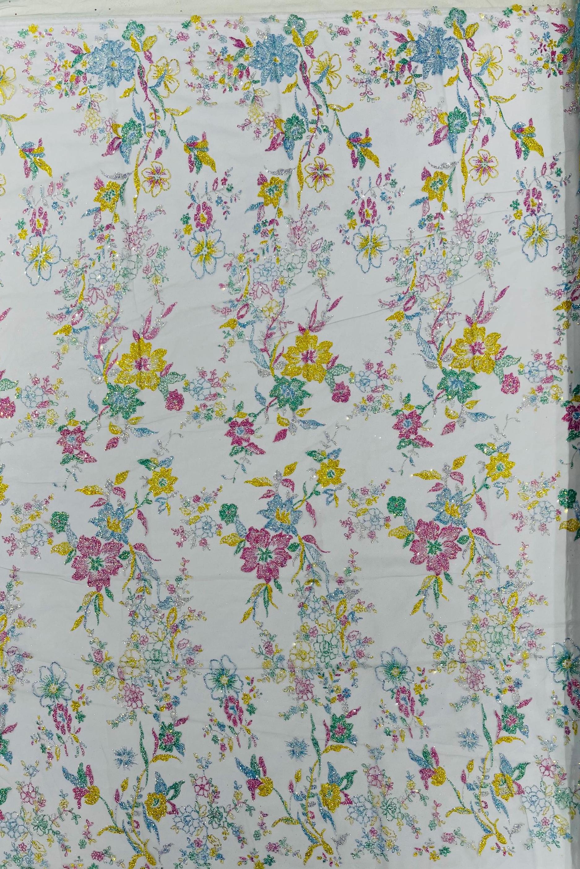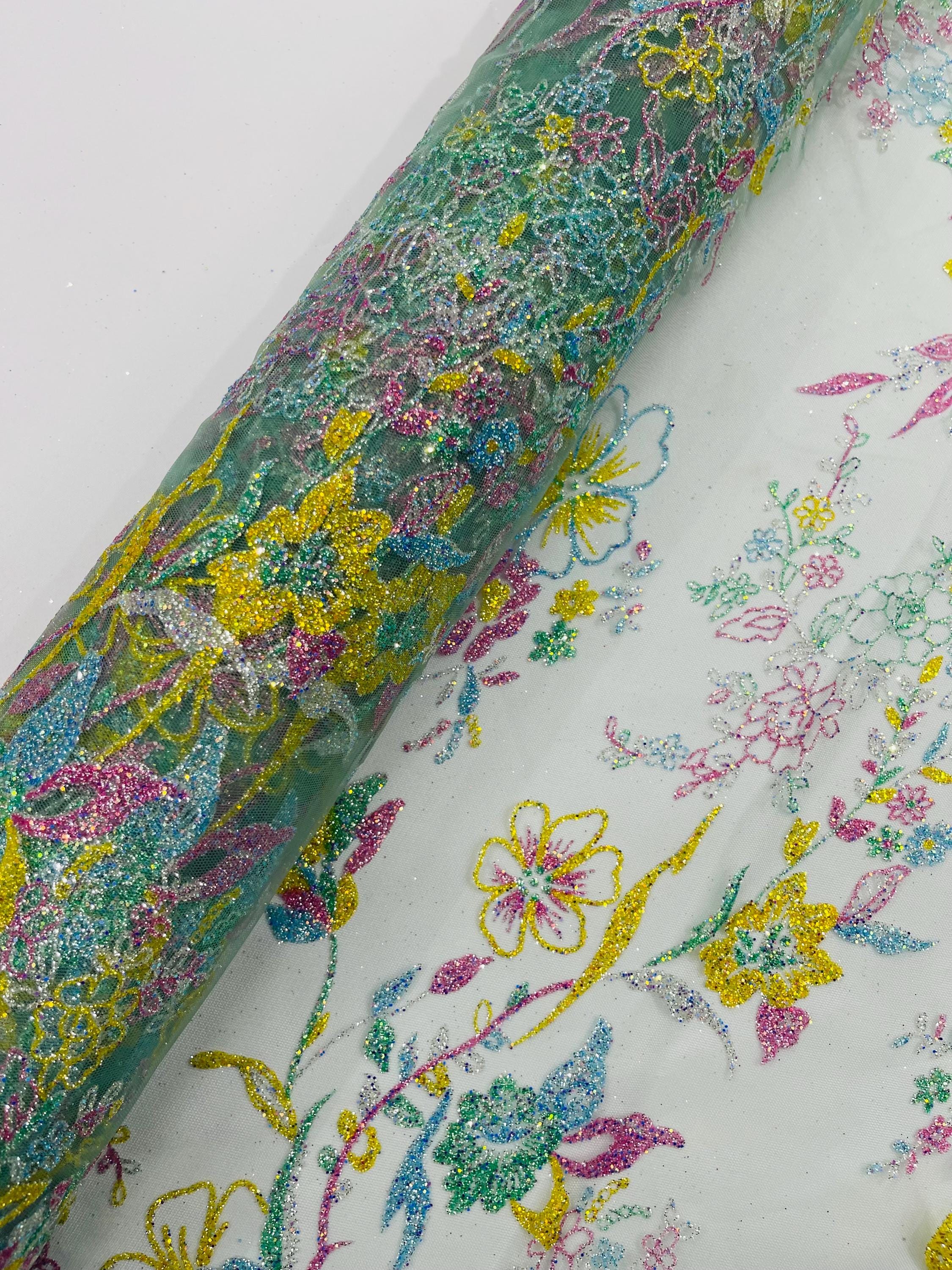 Mesh Glitter Lace Fabric, Multi Color Floral Design, For Wedding Decor Bridal/Prom