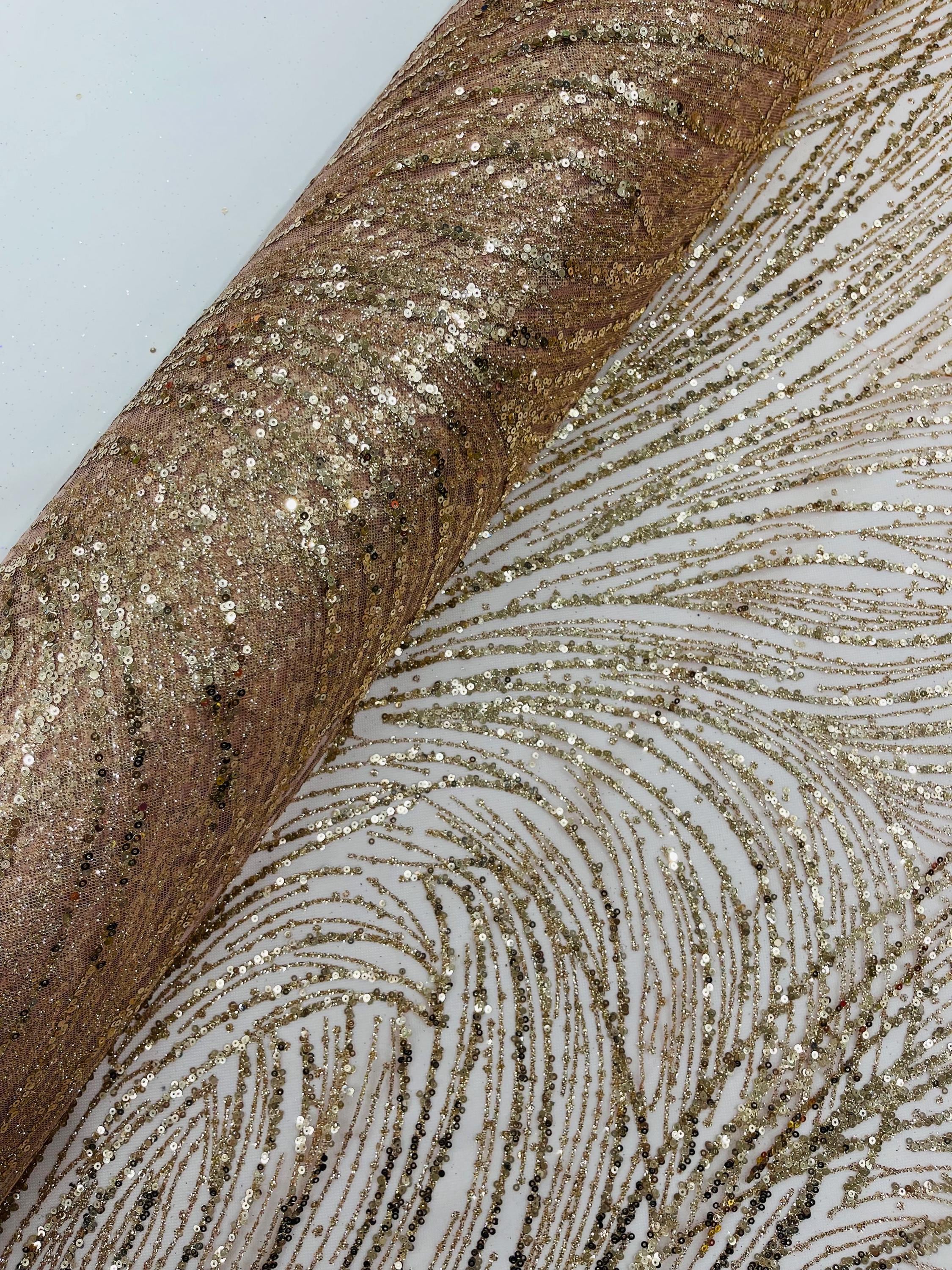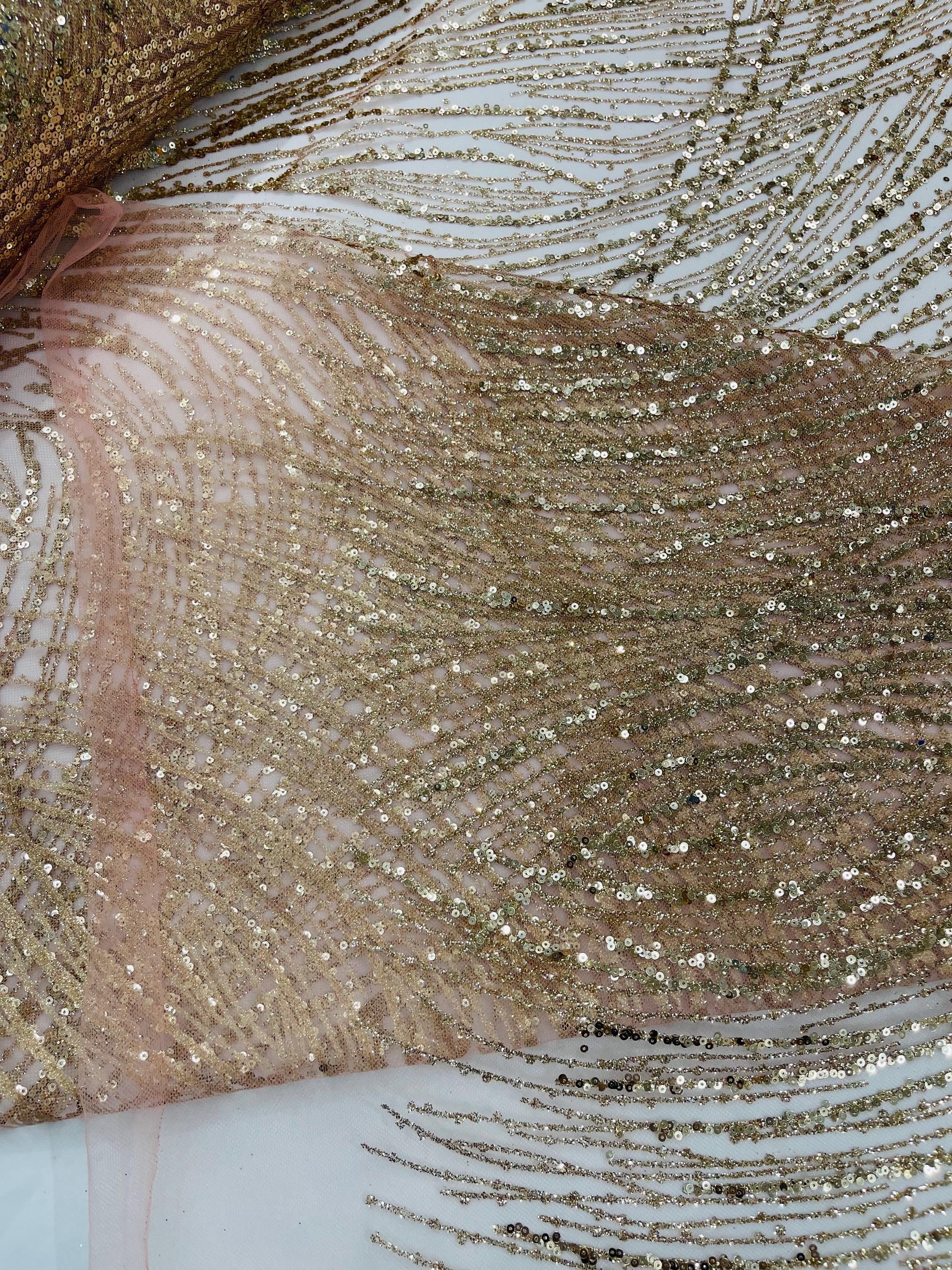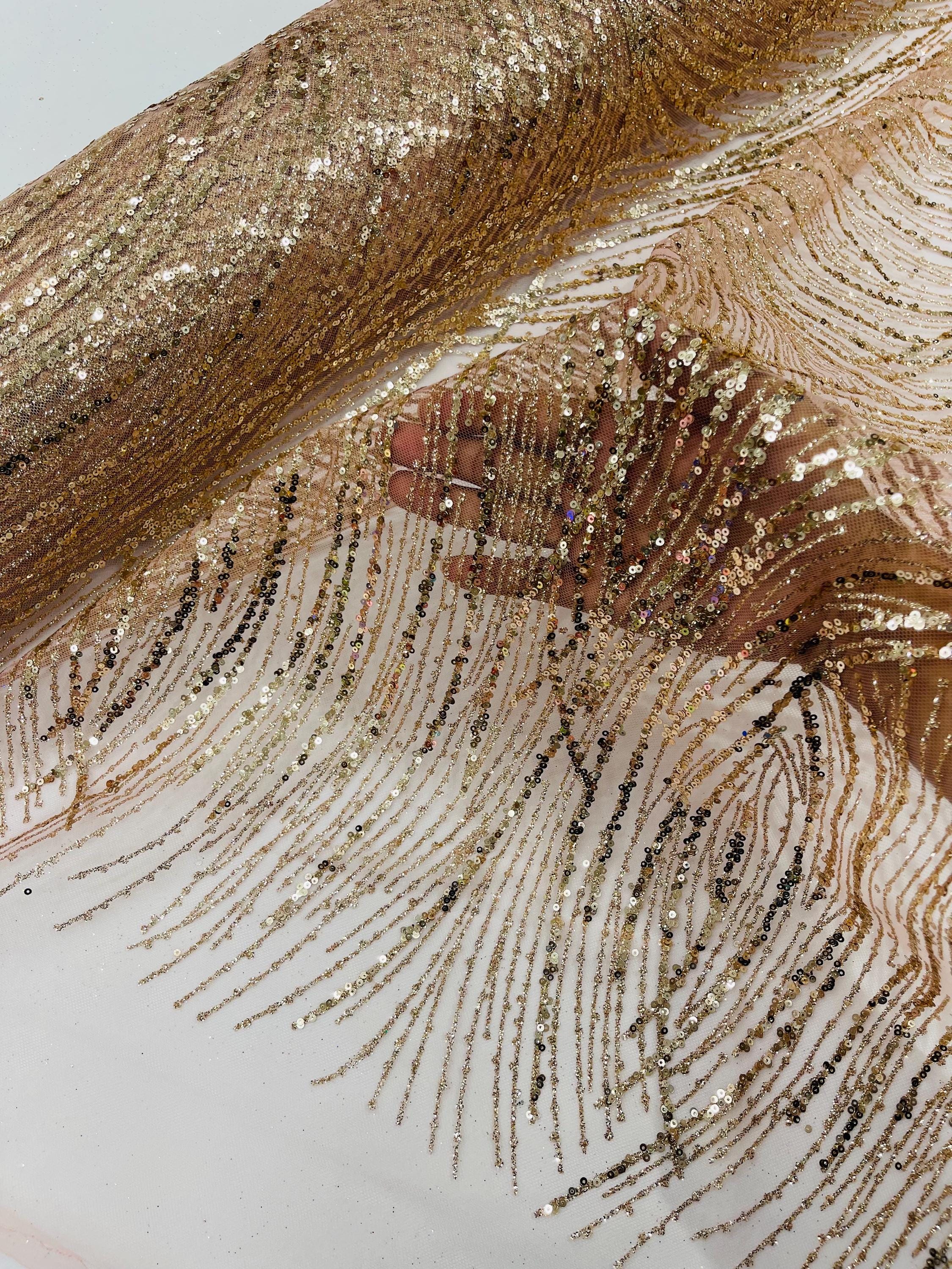Rose Gold Glitter Sequin on Mesh Lace Fabric, Wedding Decor Fabric Bridal/Prom/Sparkle