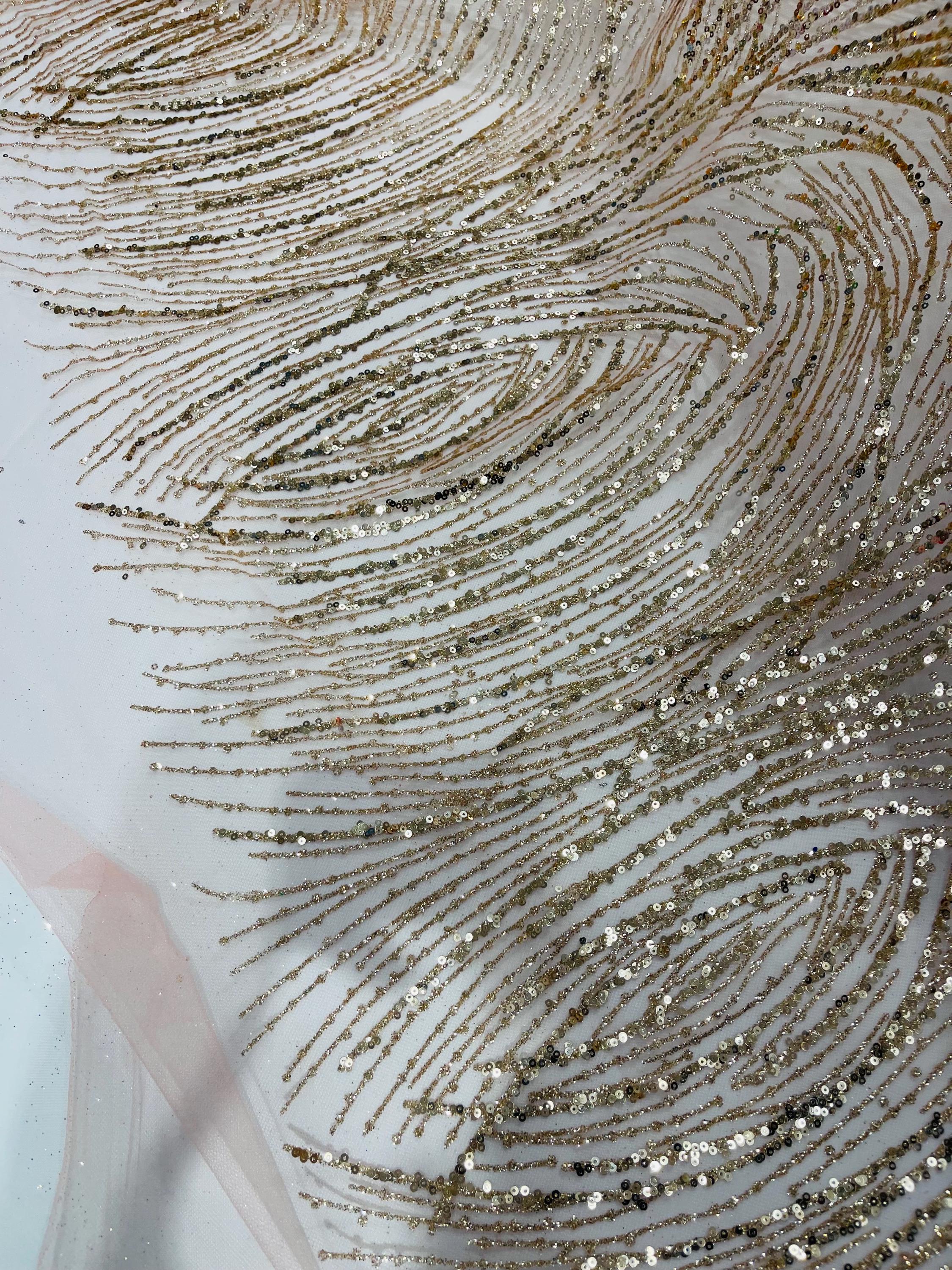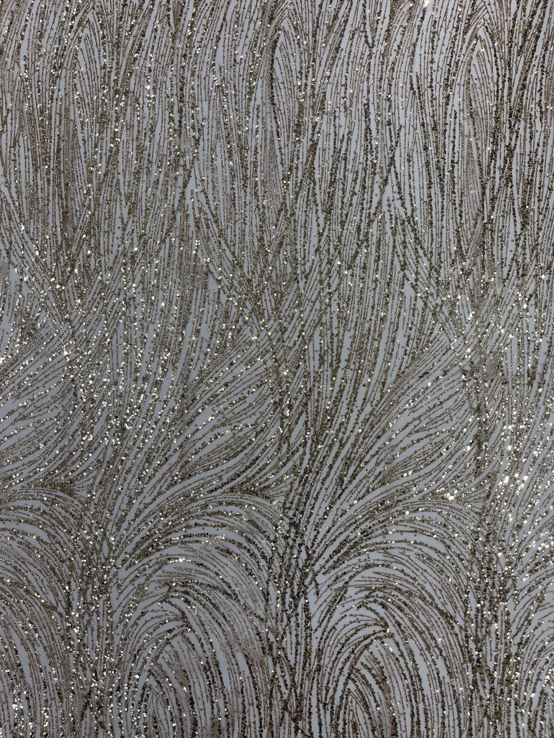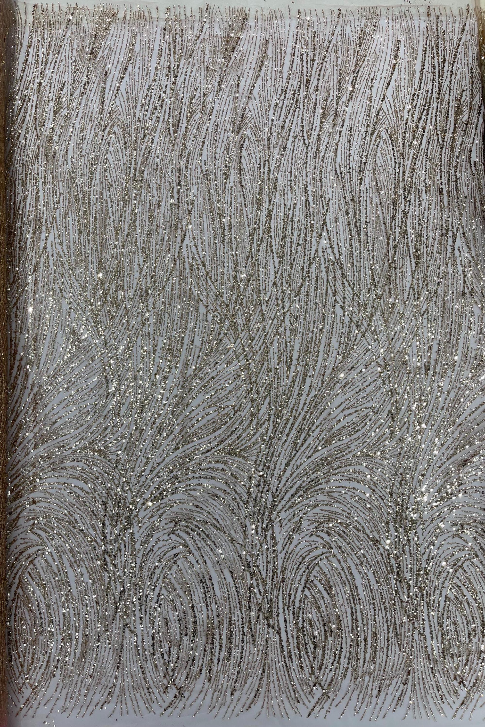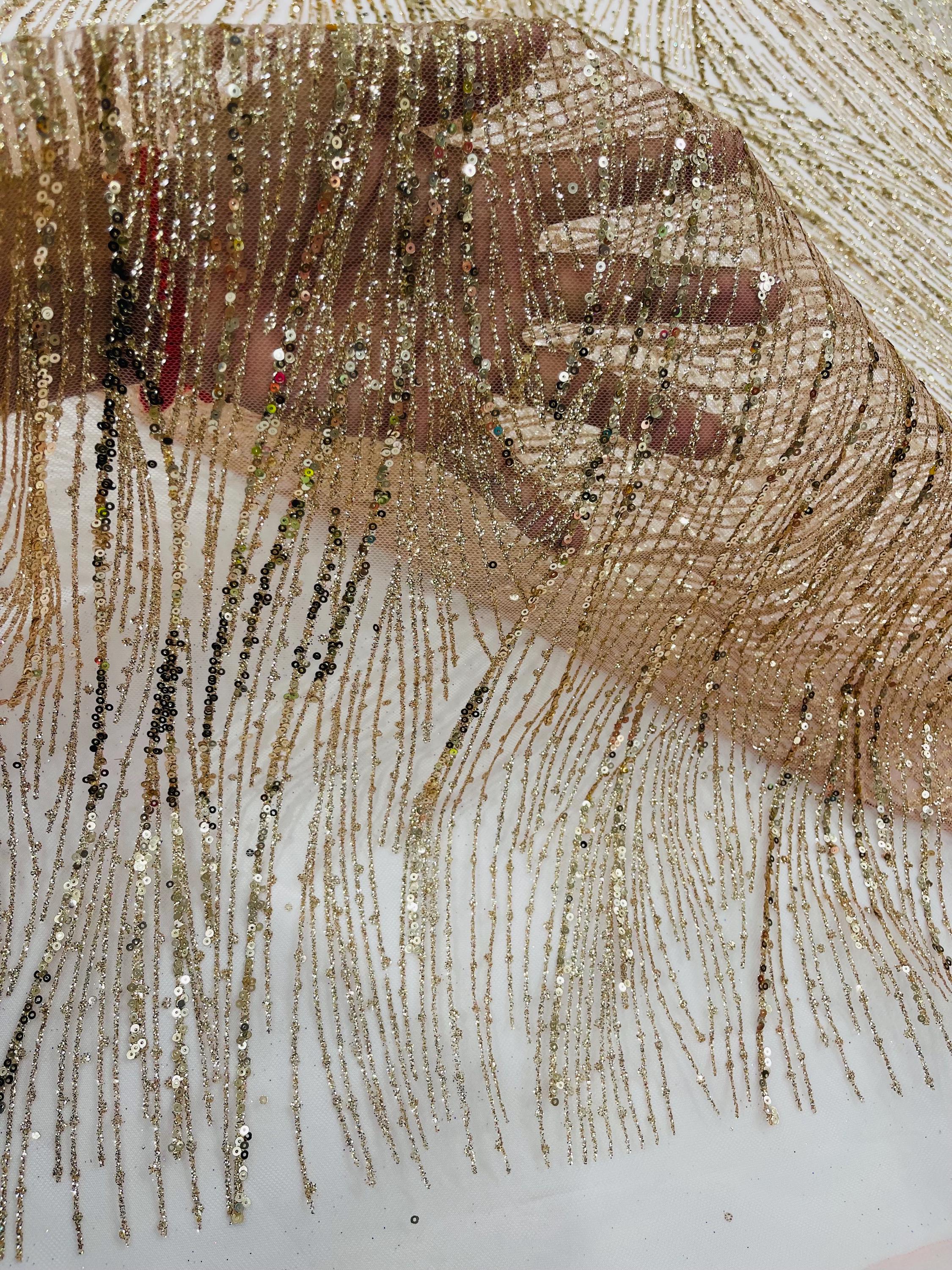 Rose Gold Glitter Sequin on Mesh Lace Fabric, Wedding Decor Fabric Bridal/Prom/Sparkle