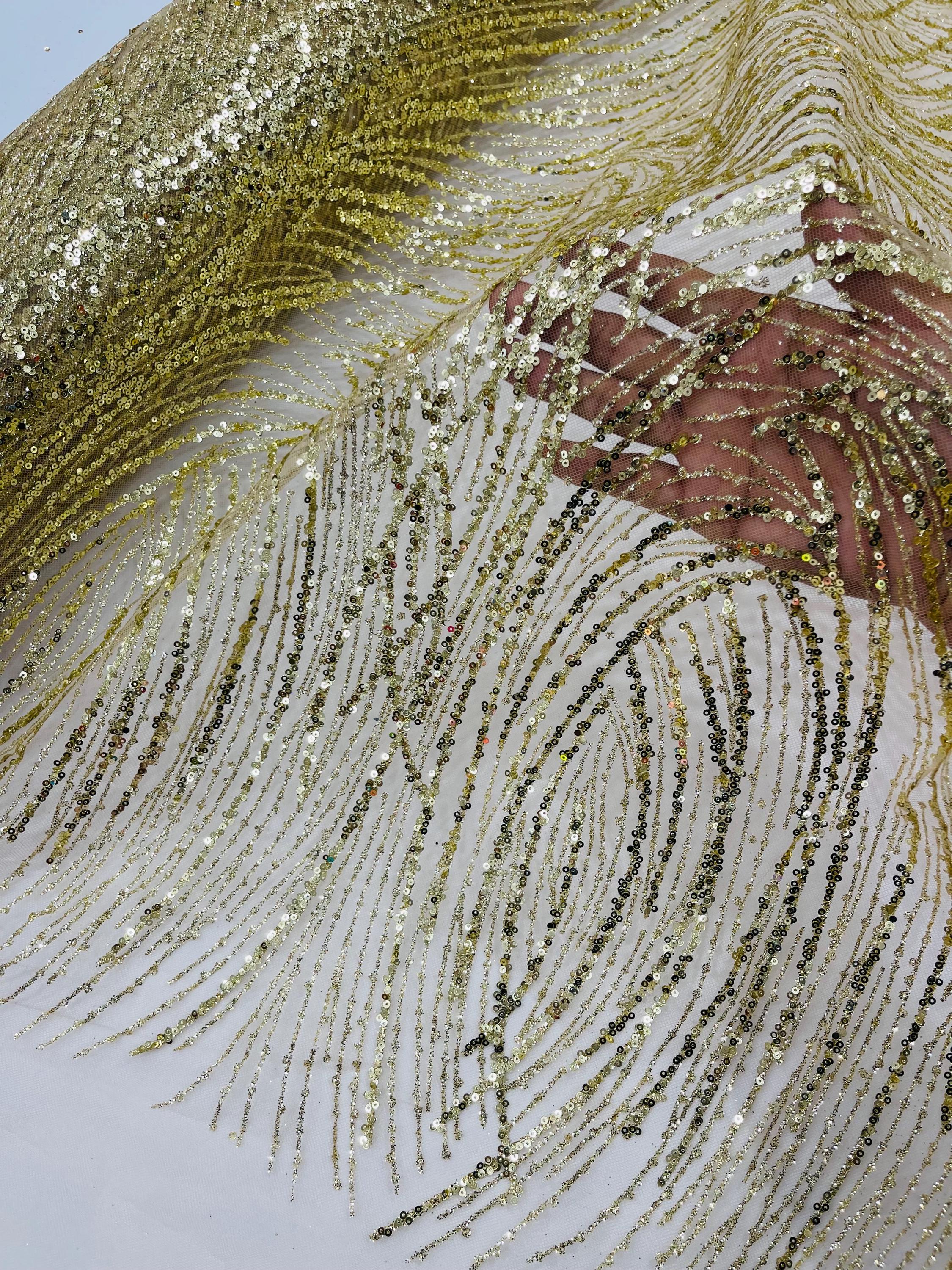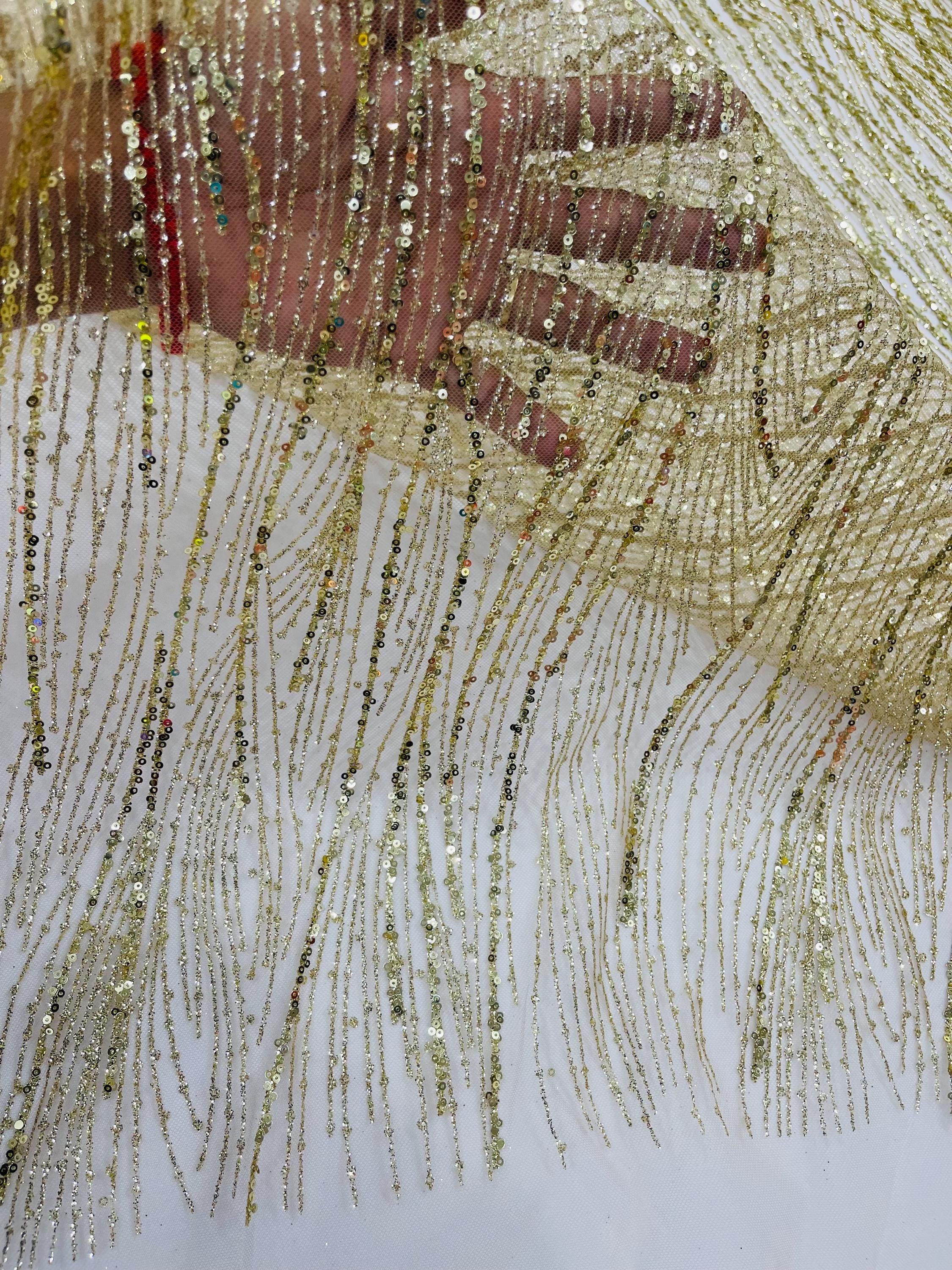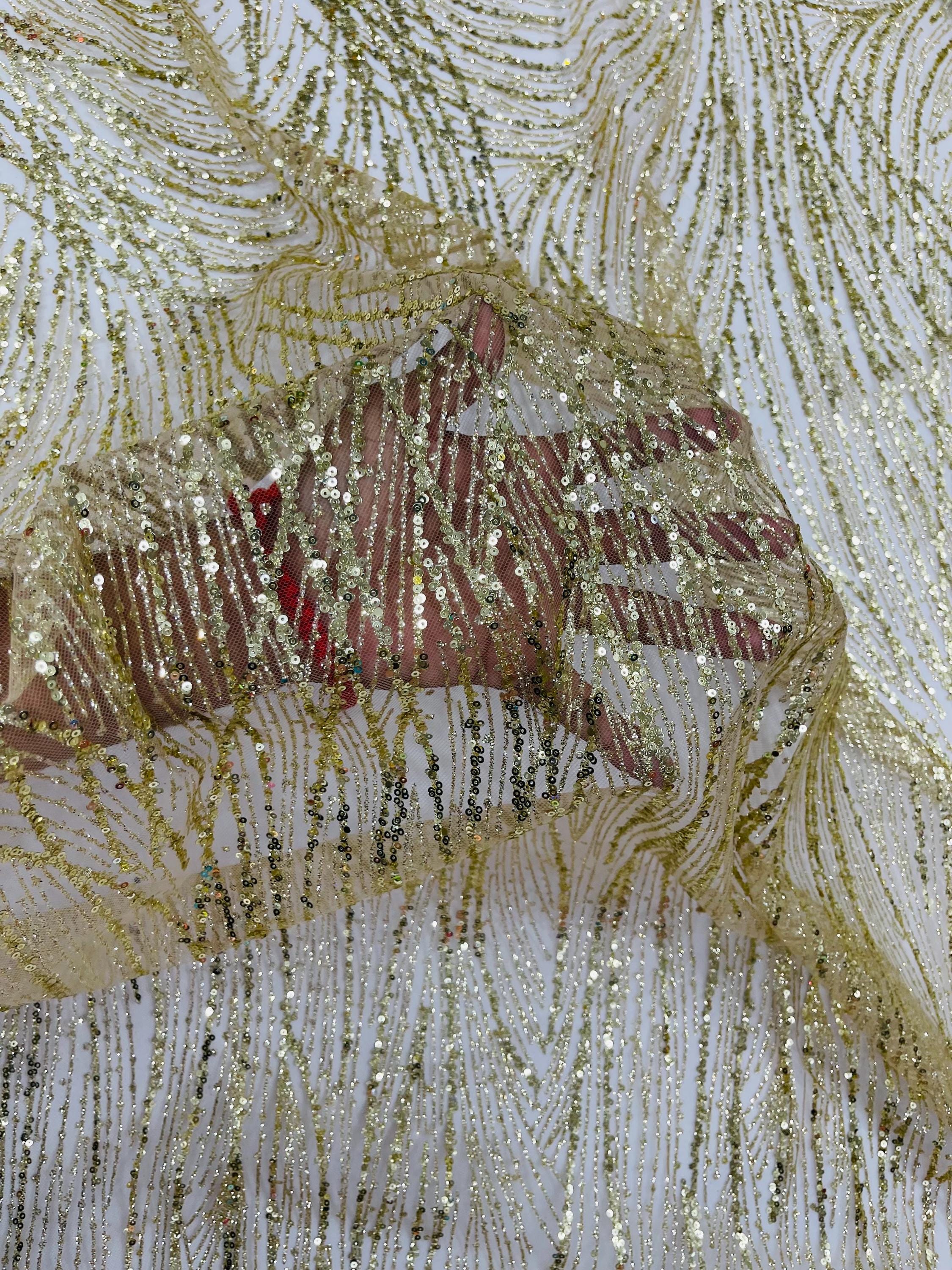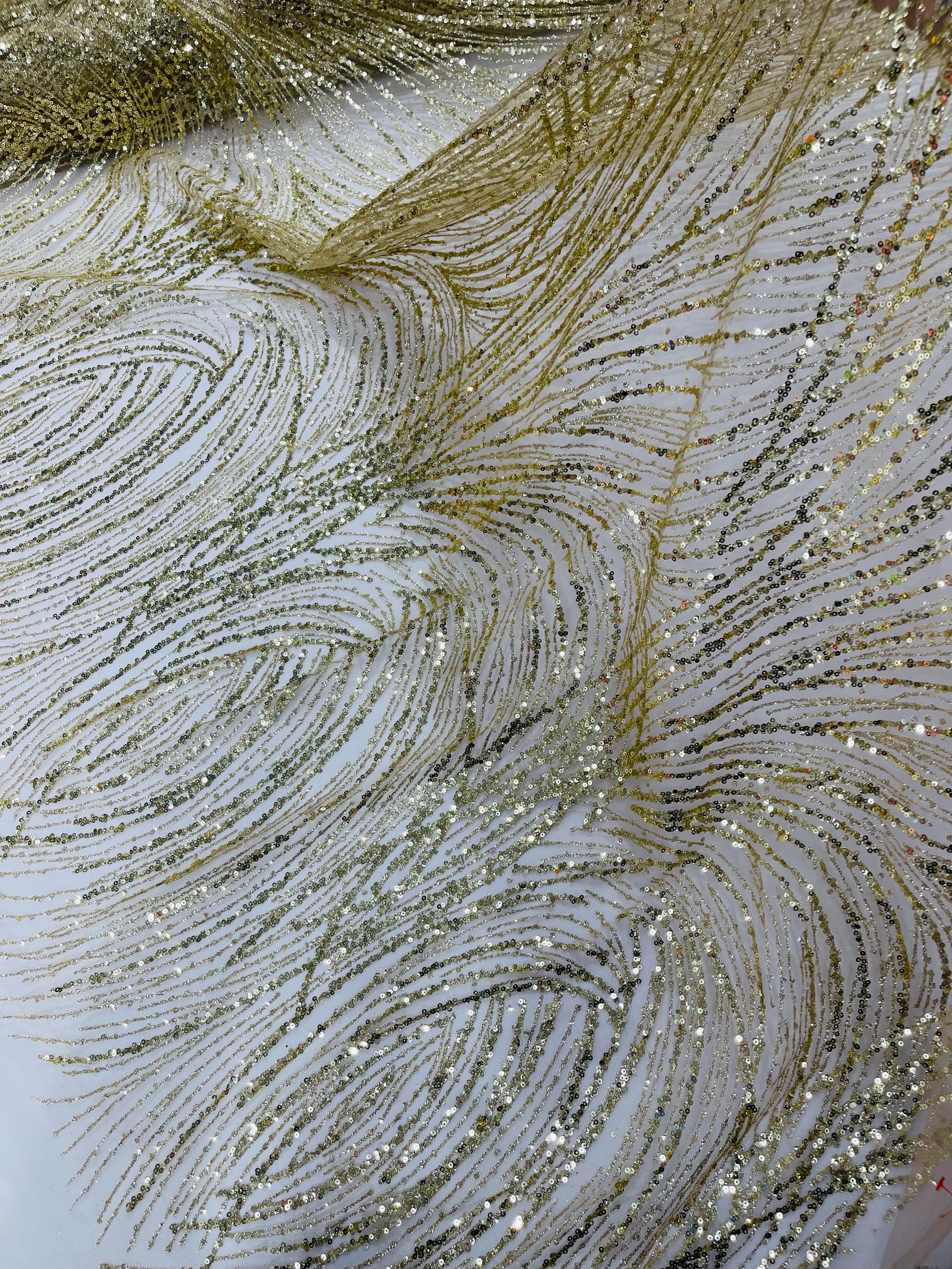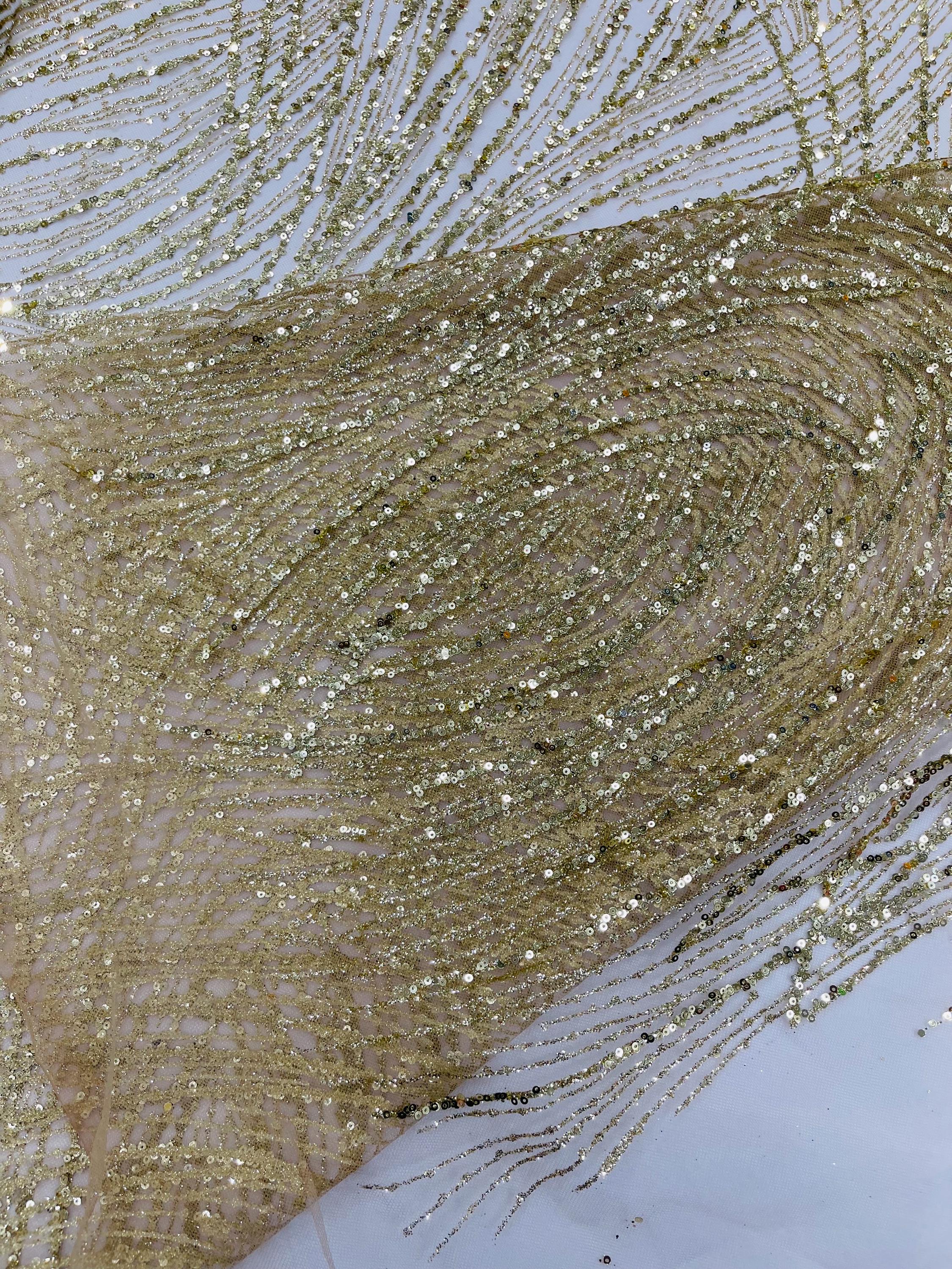 Champagne Glitter Sequin on Mesh Lace Fabric, Wedding Decor Fabric Bridal/Prom/Sparkle