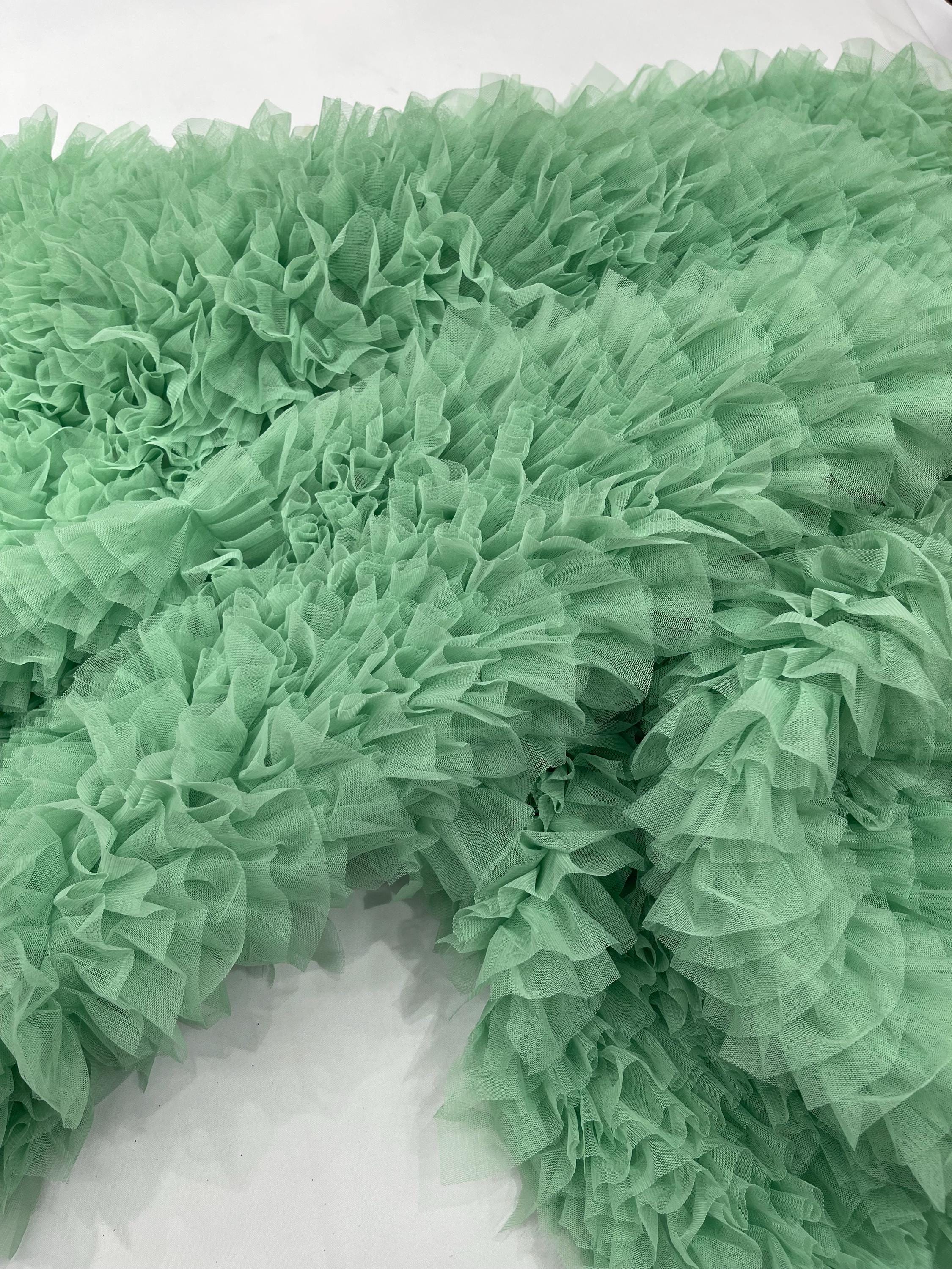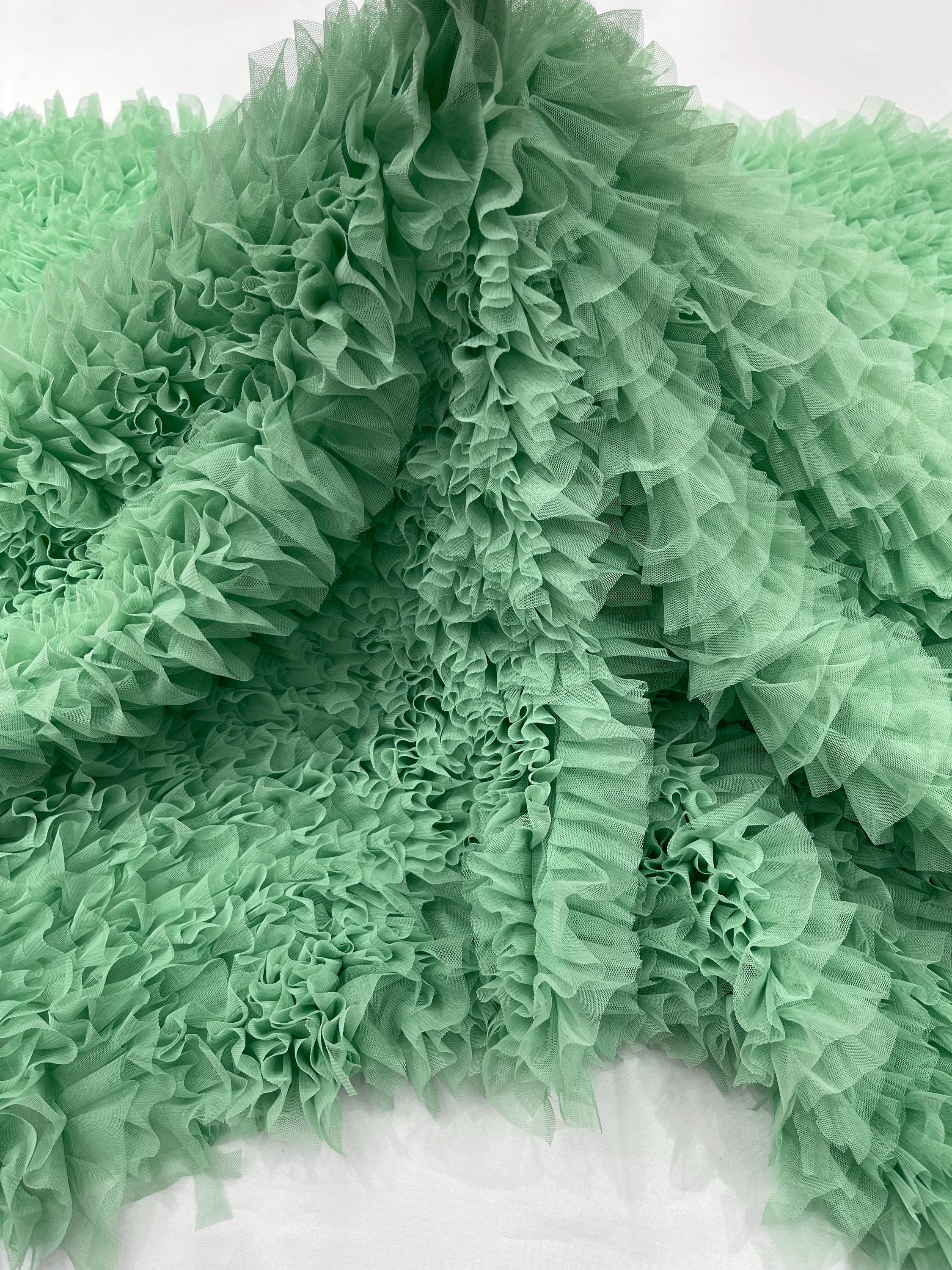 Mint Tulle Ruffle Fabric, 60" Wide Waves - Prom Dress Wedding & Decoration