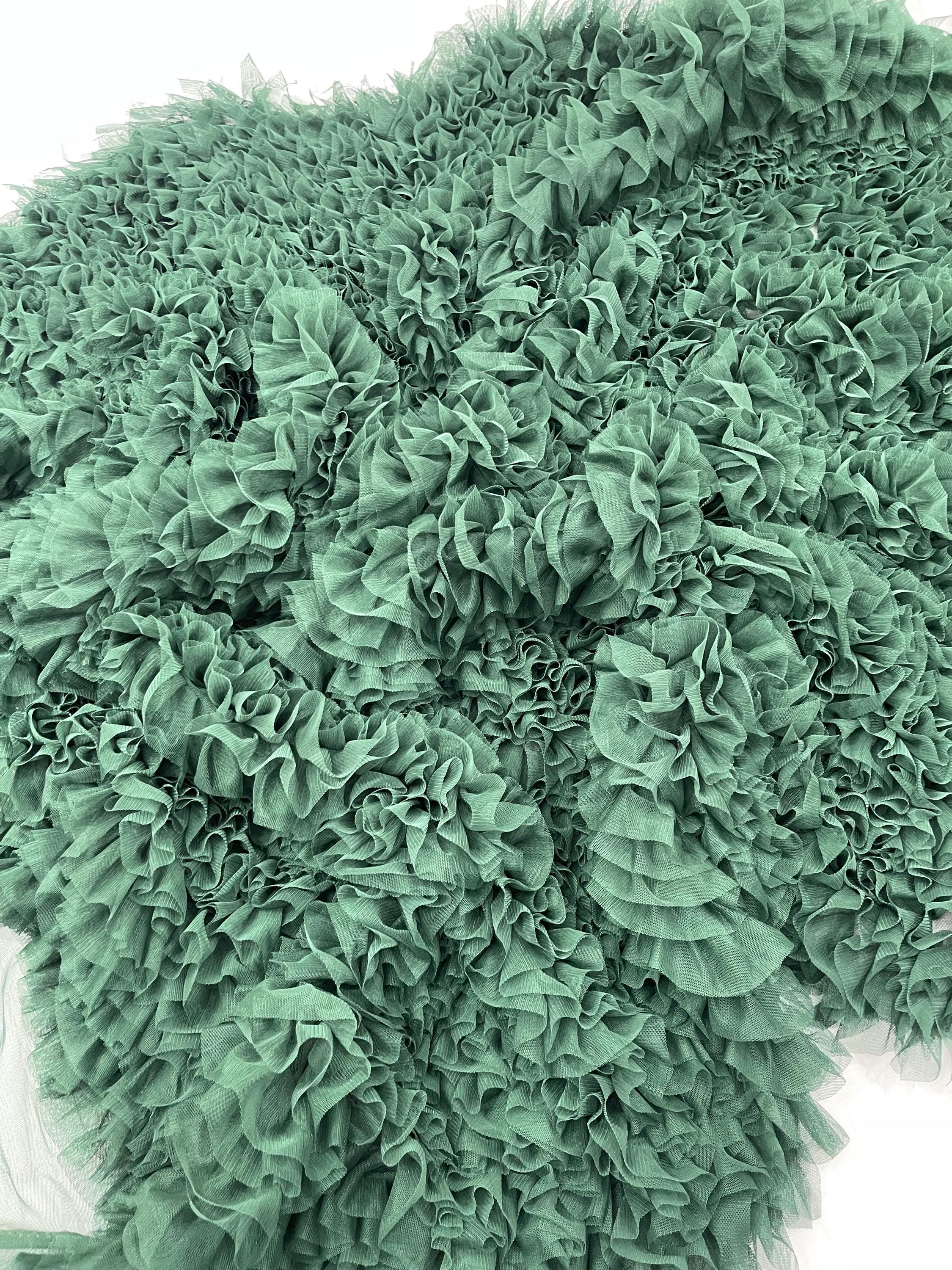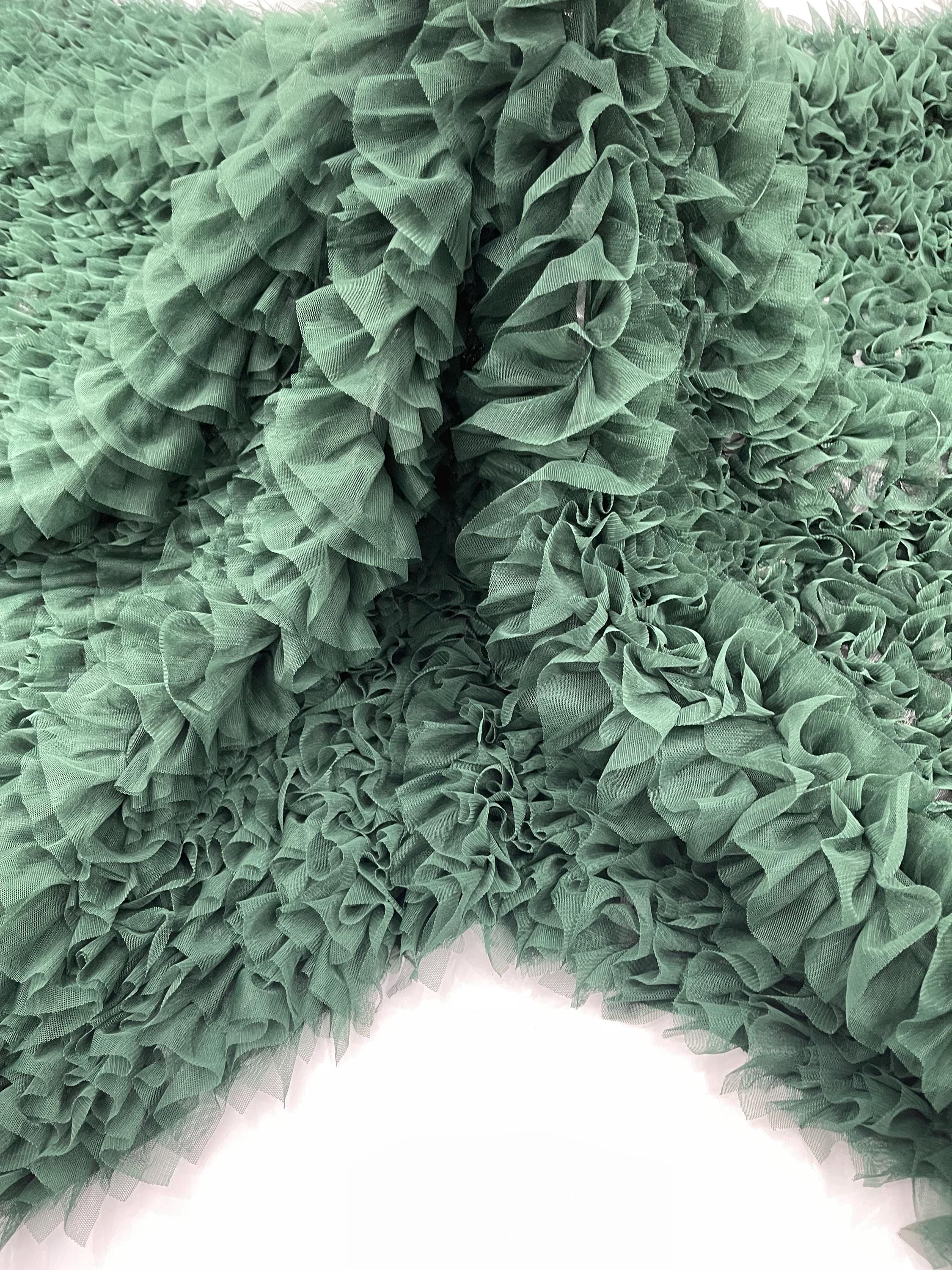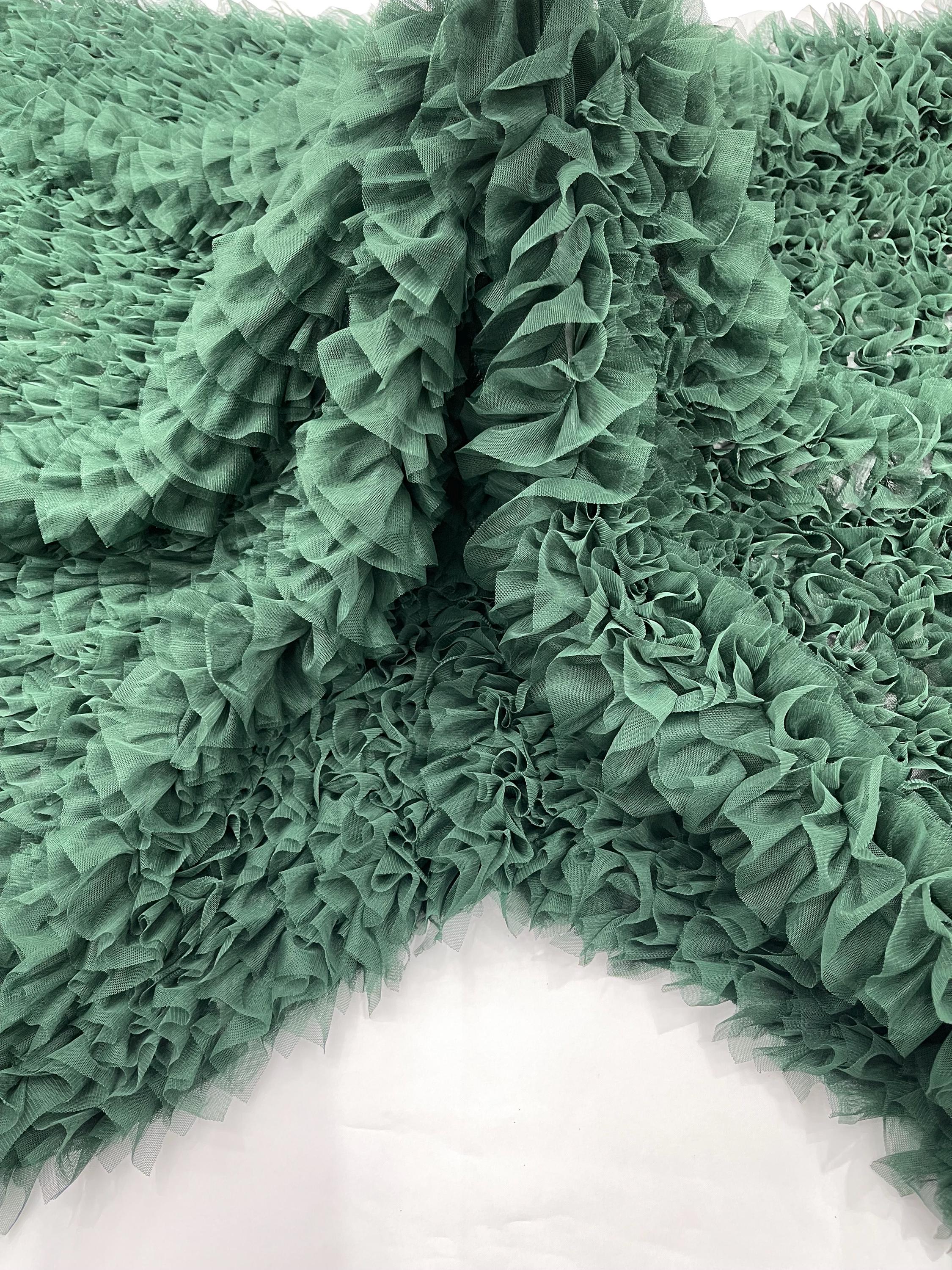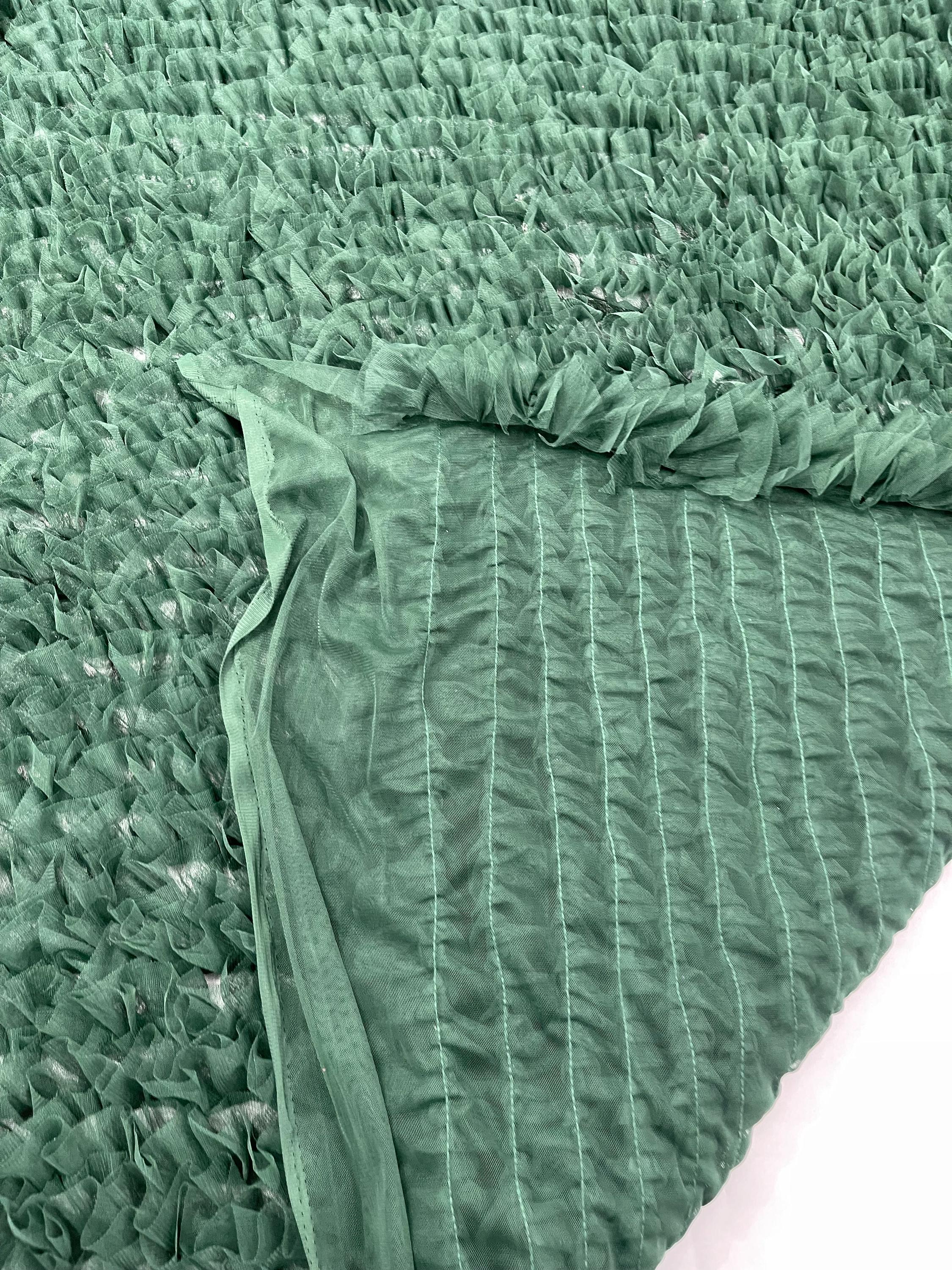 Hunter Green Tulle Ruffle Fabric, 60" Wide Waves - Prom Dress Wedding & Decoration