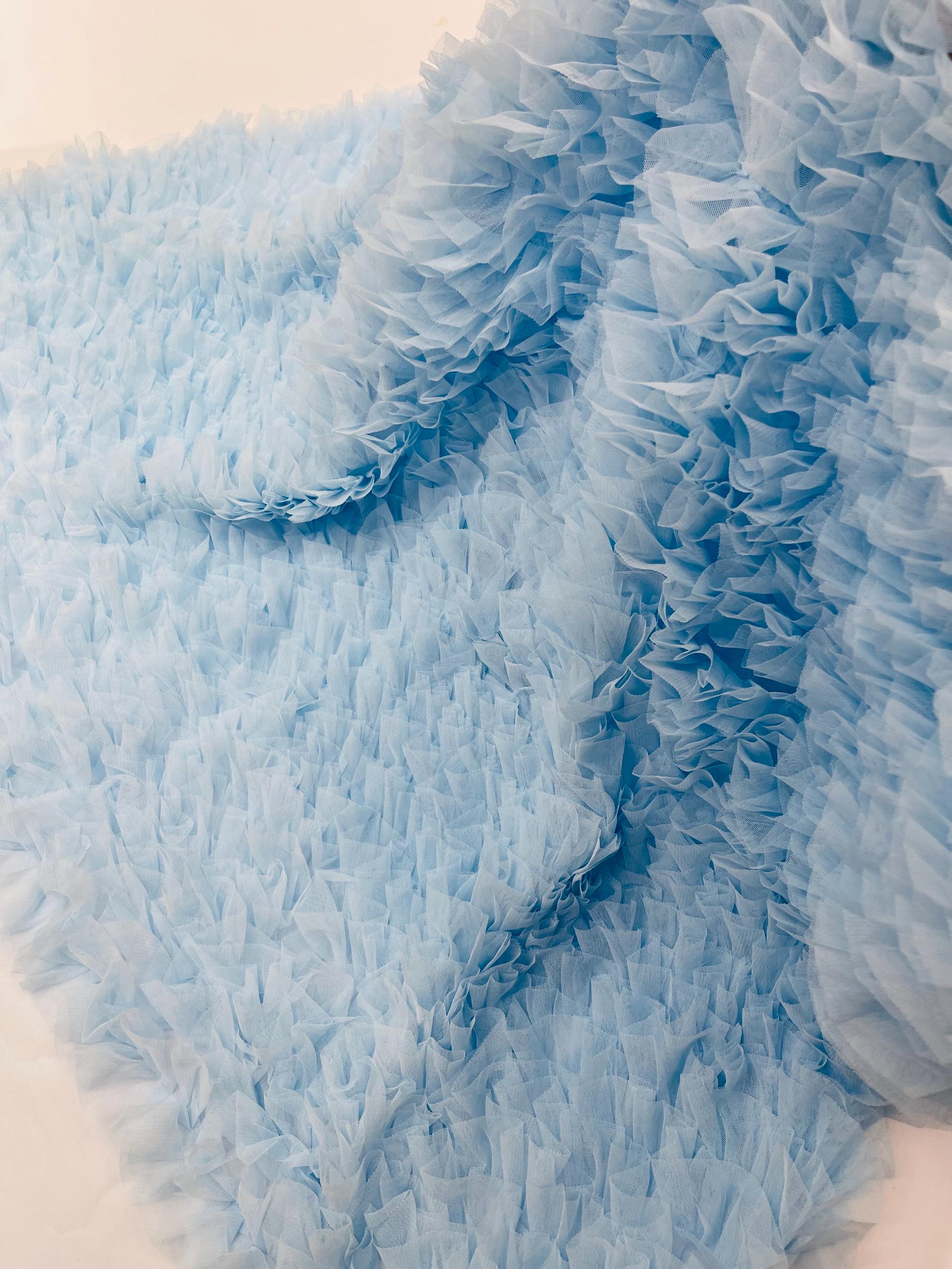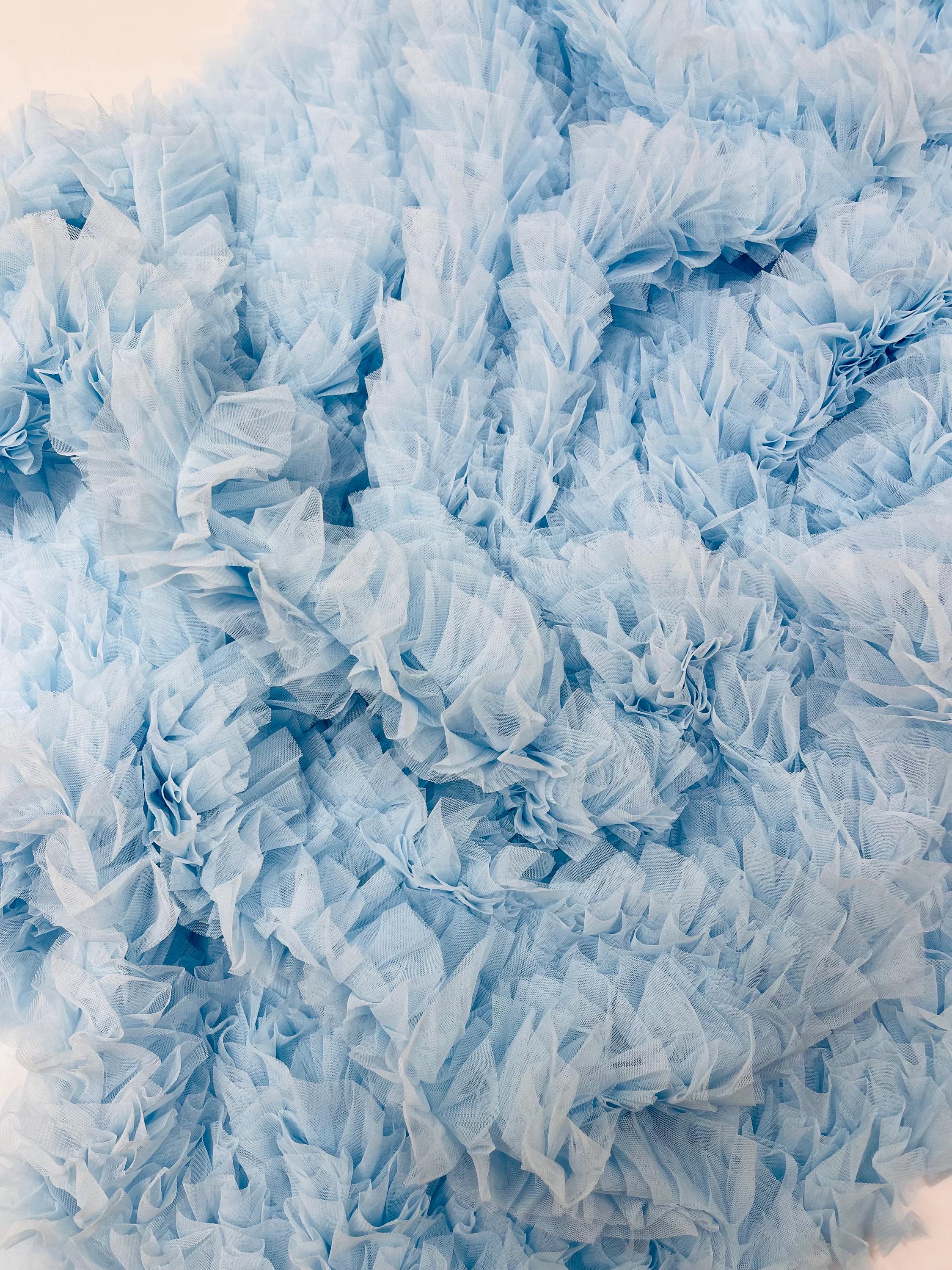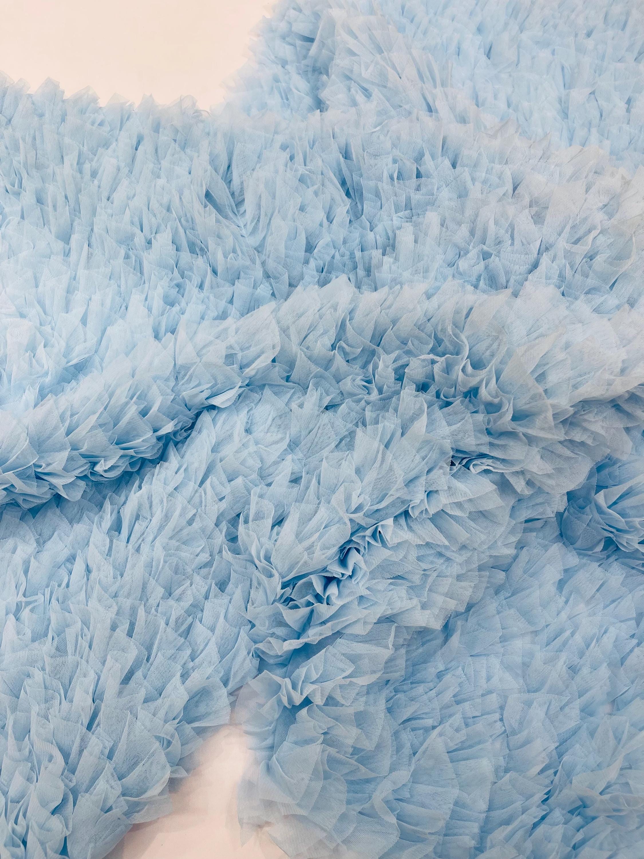 Baby Blue Tulle Ruffle Fabric, 60" Wide Waves - Prom Dress Wedding & Decoration
