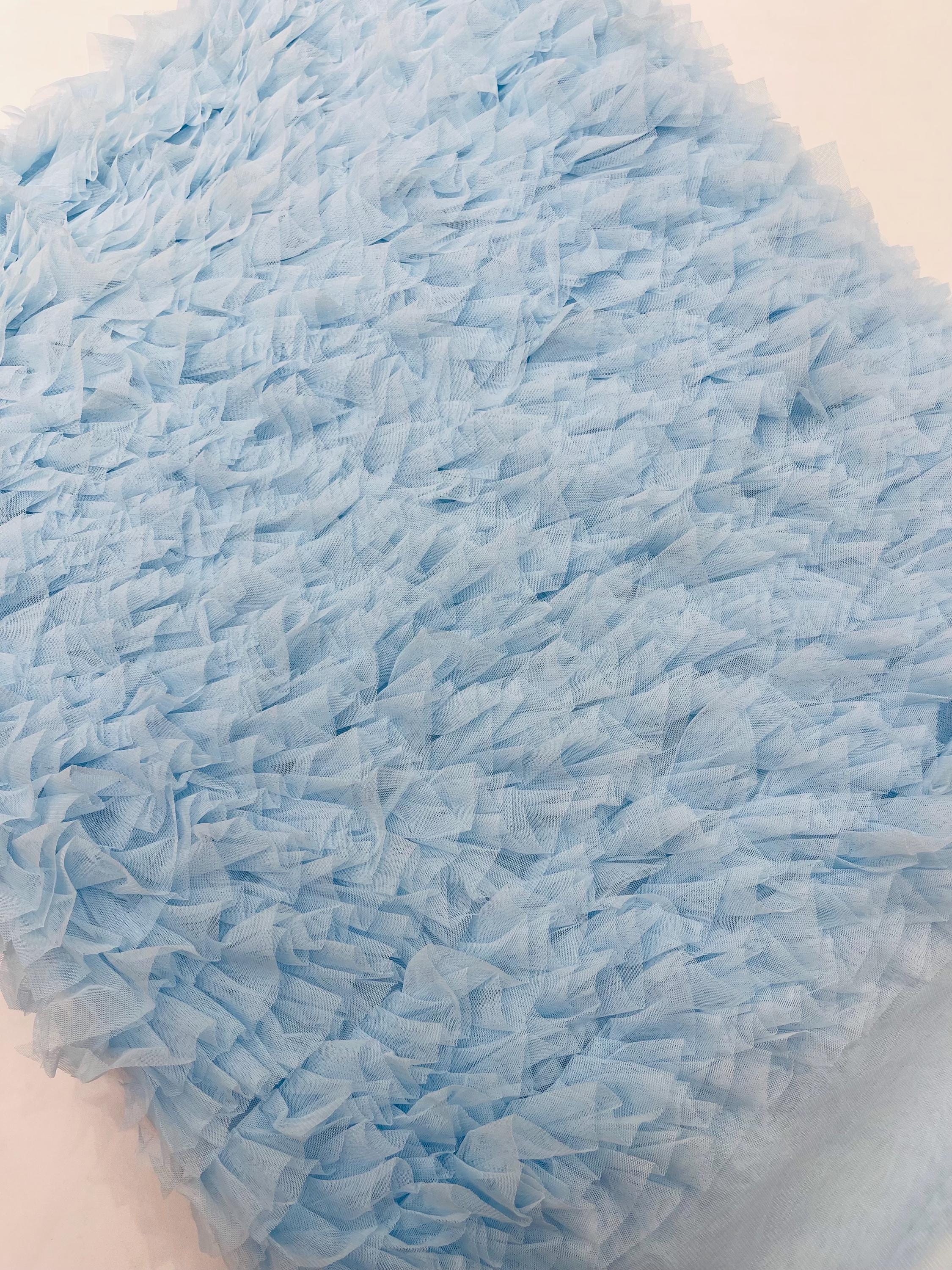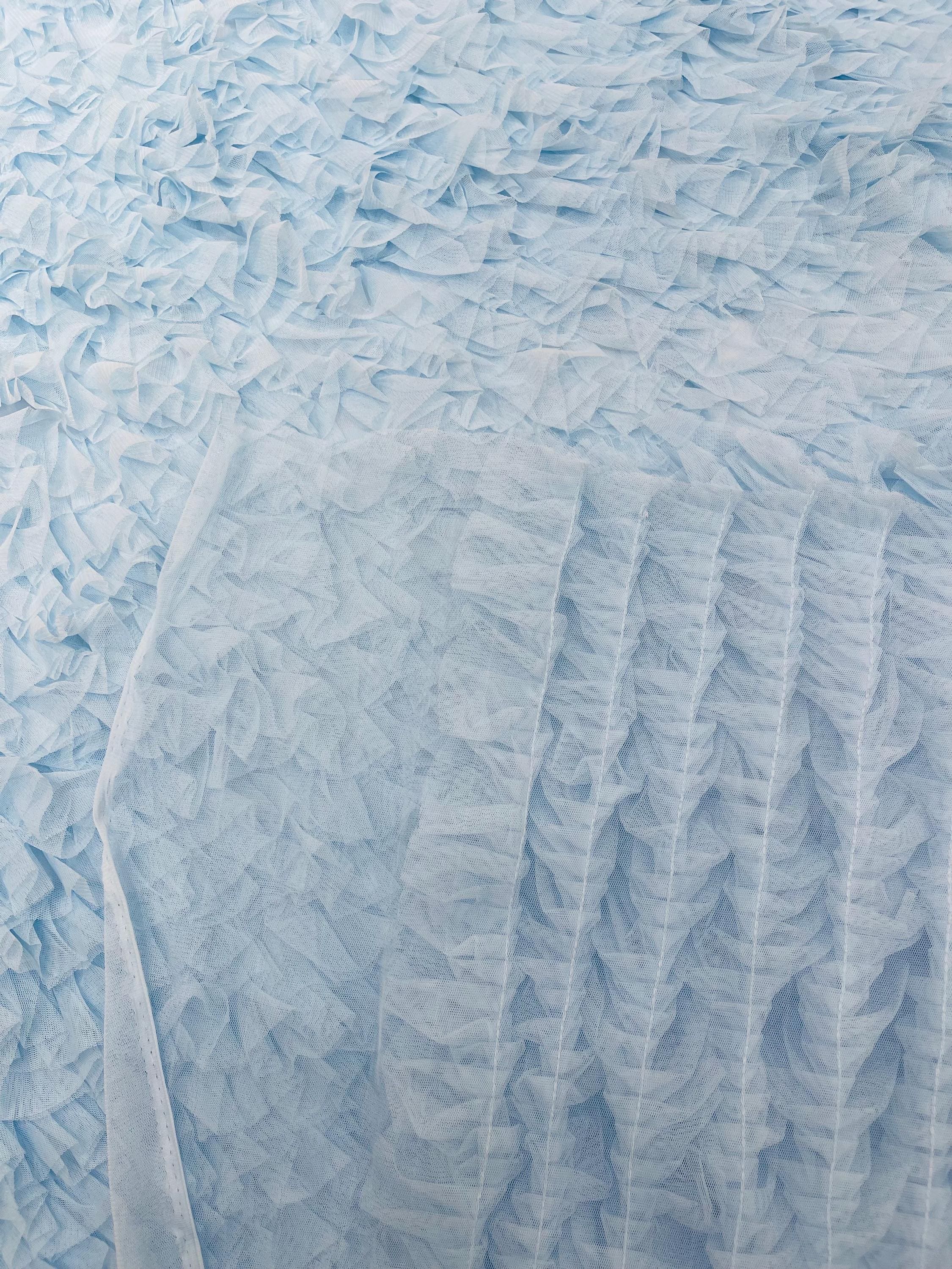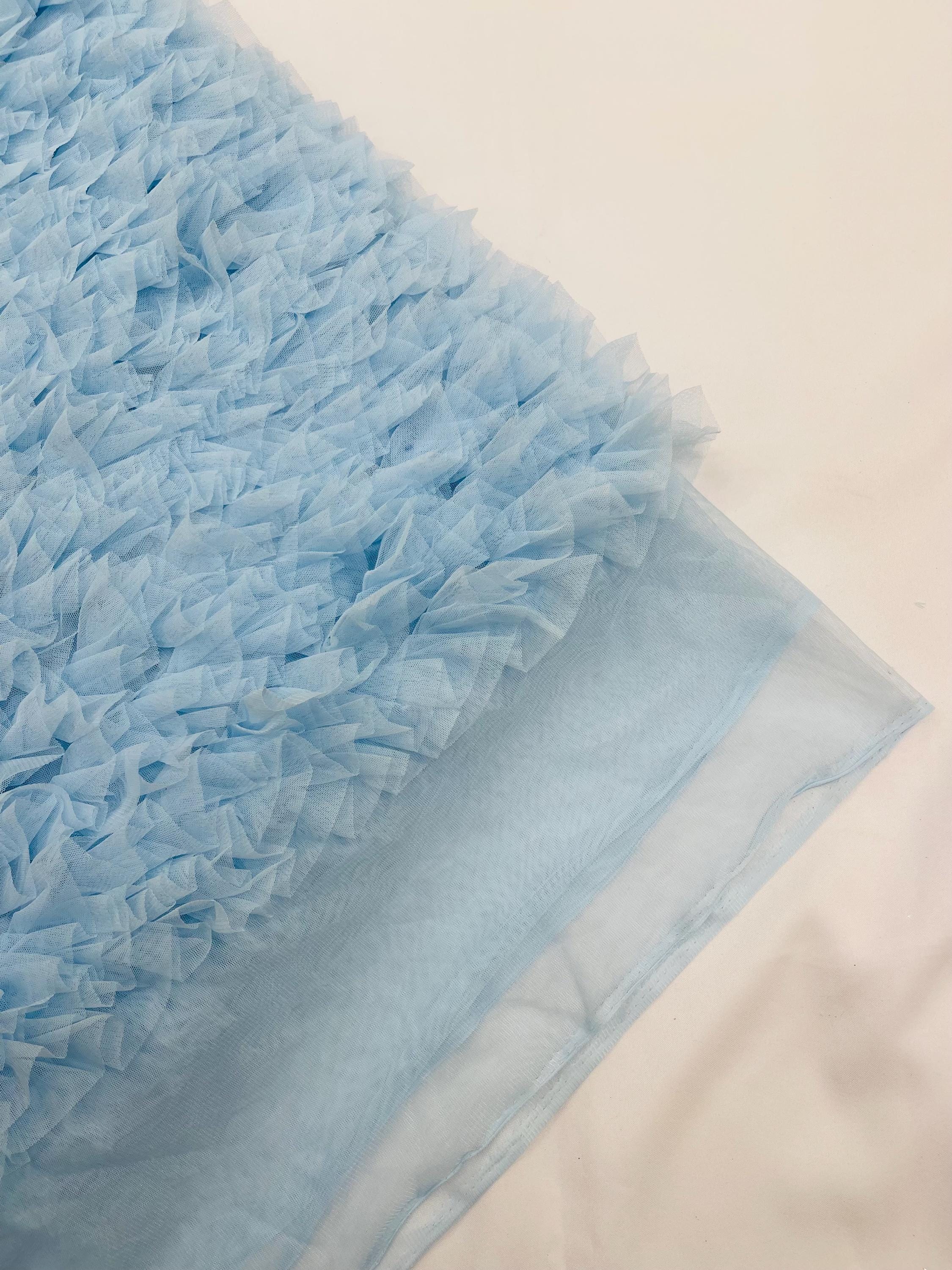 Baby Blue Tulle Ruffle Fabric, 60" Wide Waves - Prom Dress Wedding & Decoration