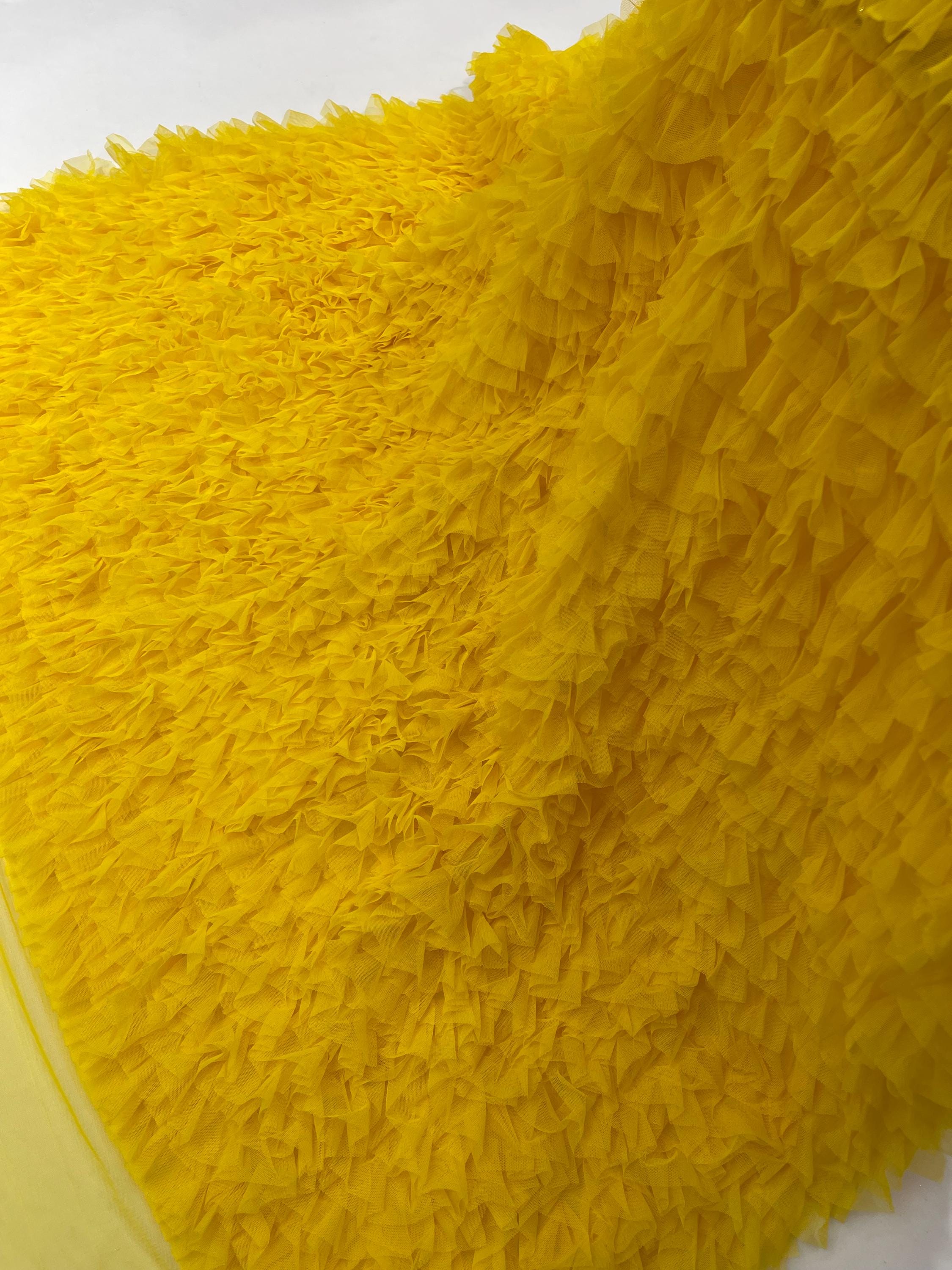Yellow Tulle Ruffle Fabric, 60" Wide Waves - Prom Dress Wedding & Decoration