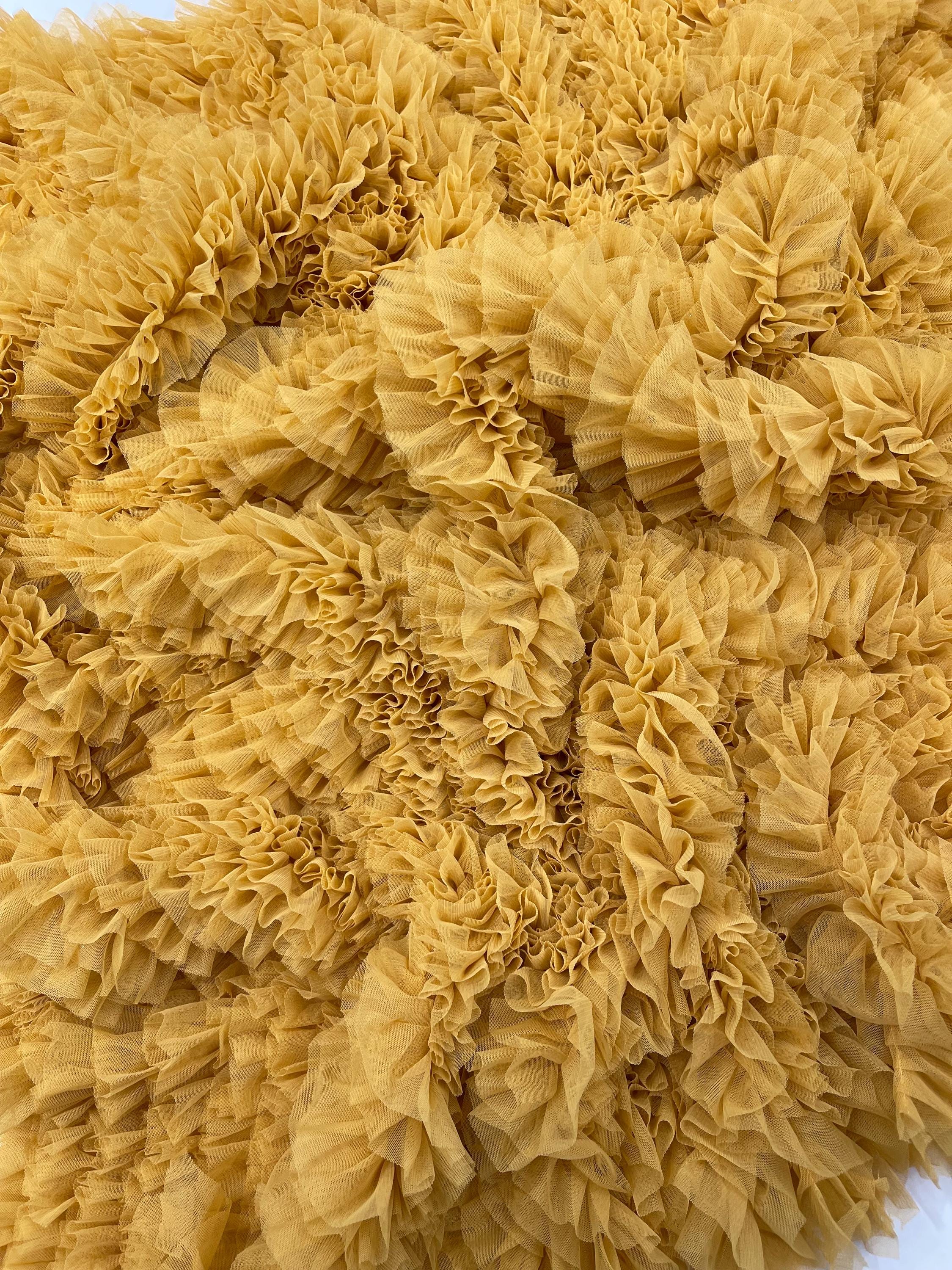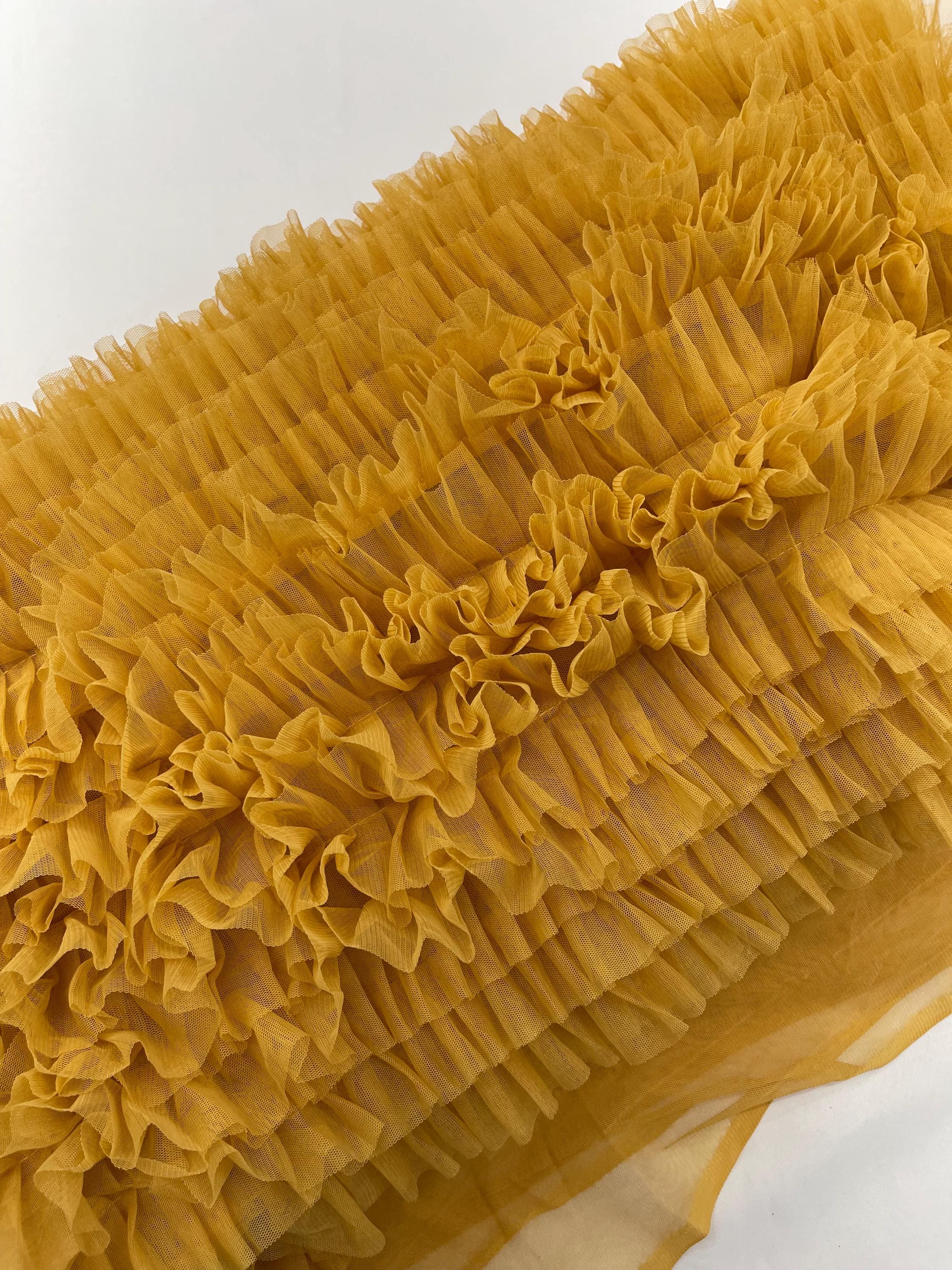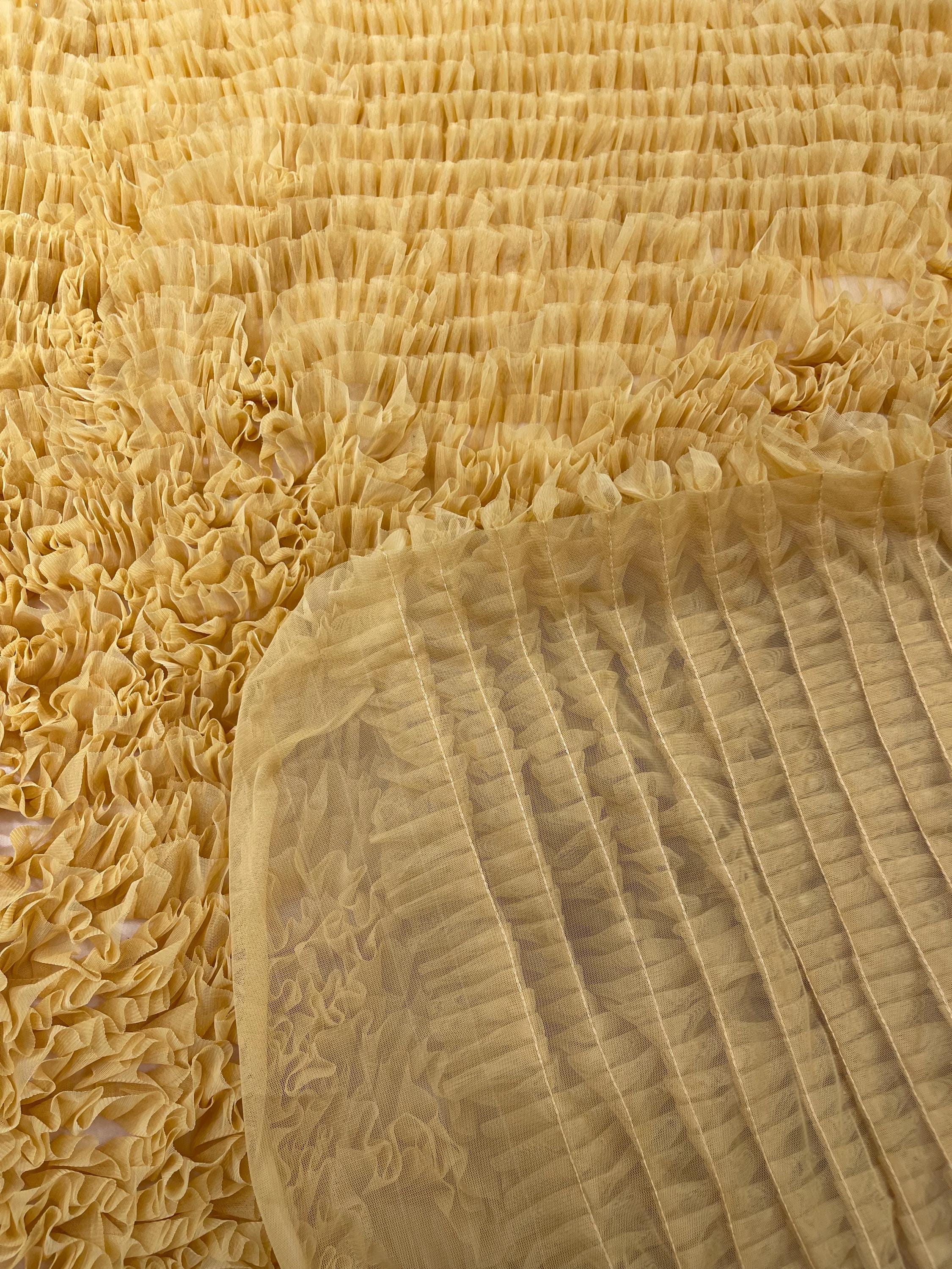 Gold Tulle Ruffle Fabric, 60" Wide Waves - Prom Dress Wedding & Decoration